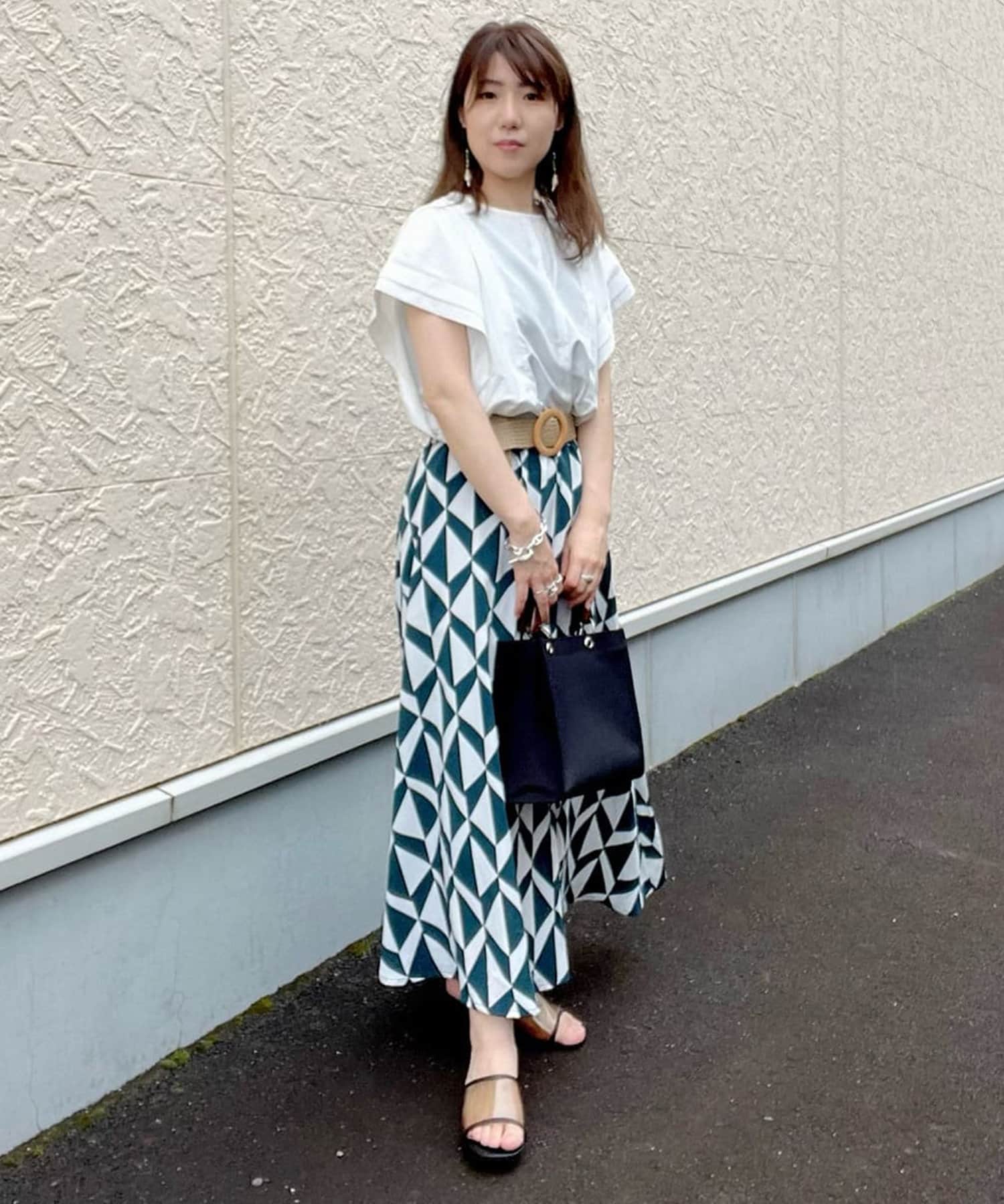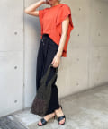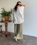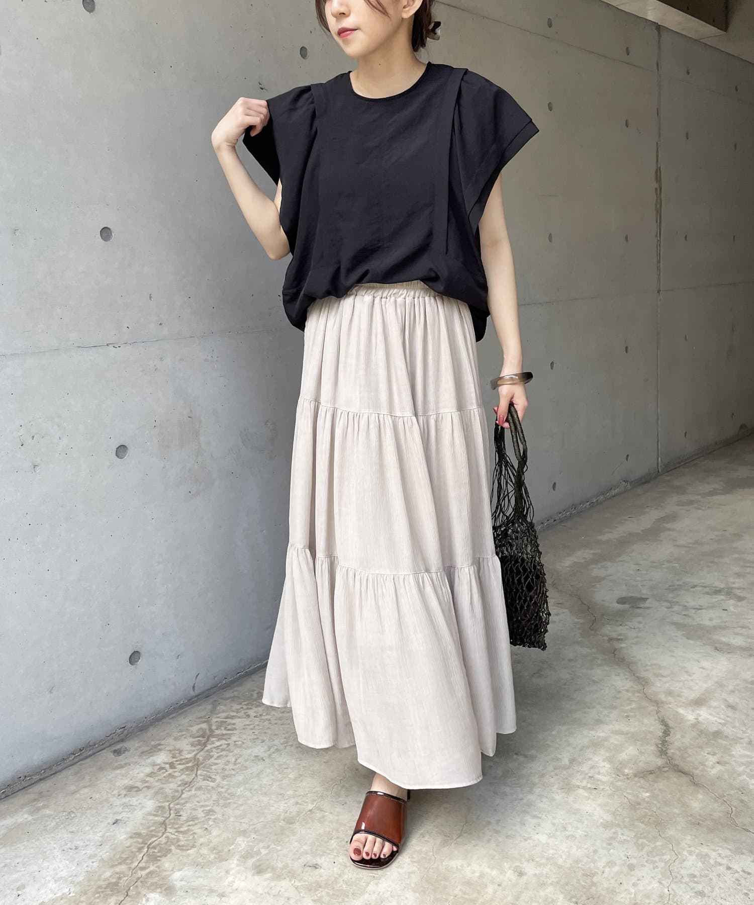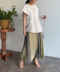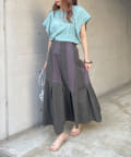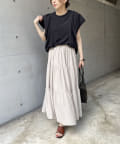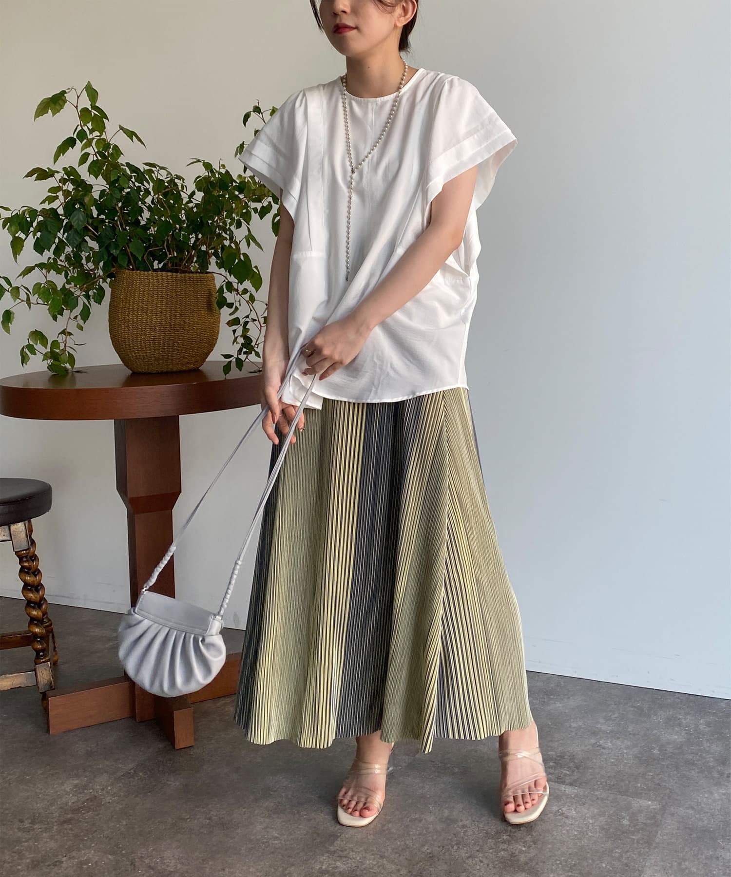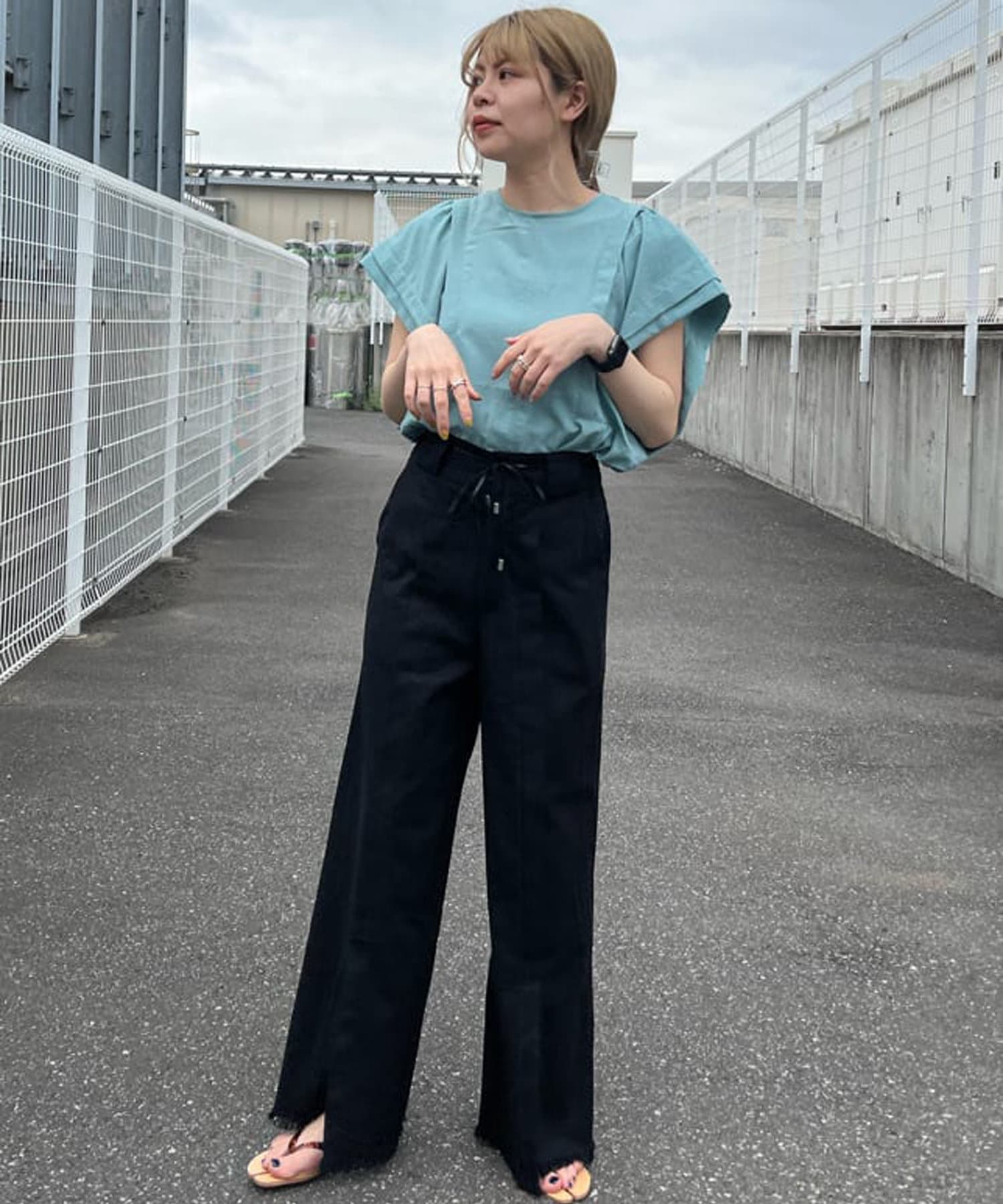 パンツやタイトスカートと合わせる際は前のみインして着るとスタイルアップ効果抜群です。