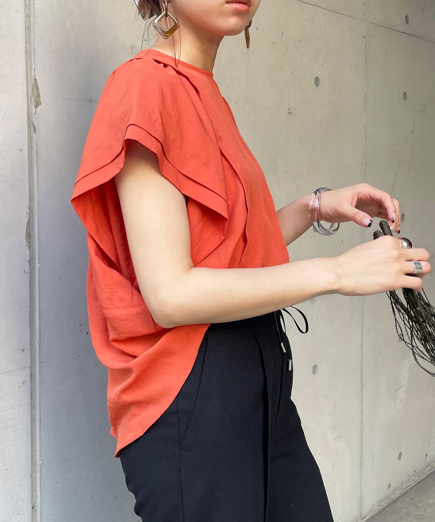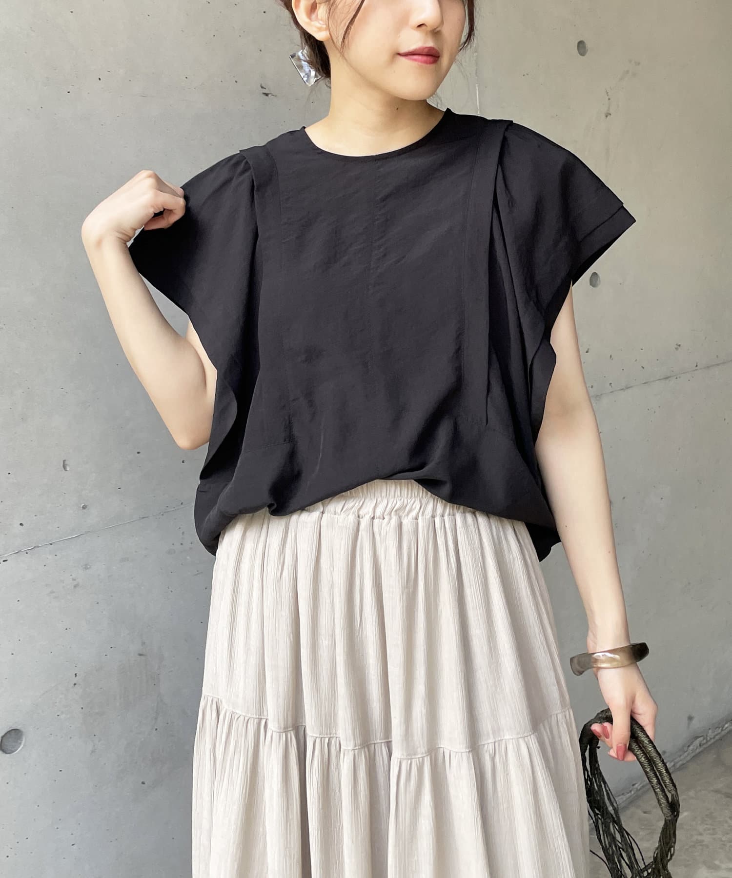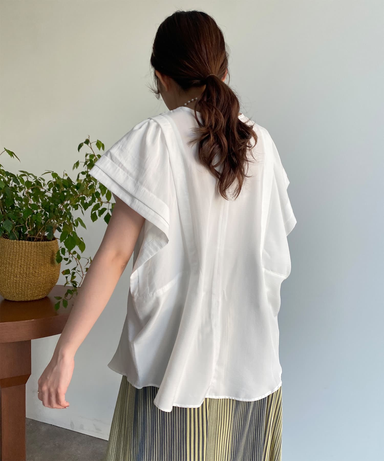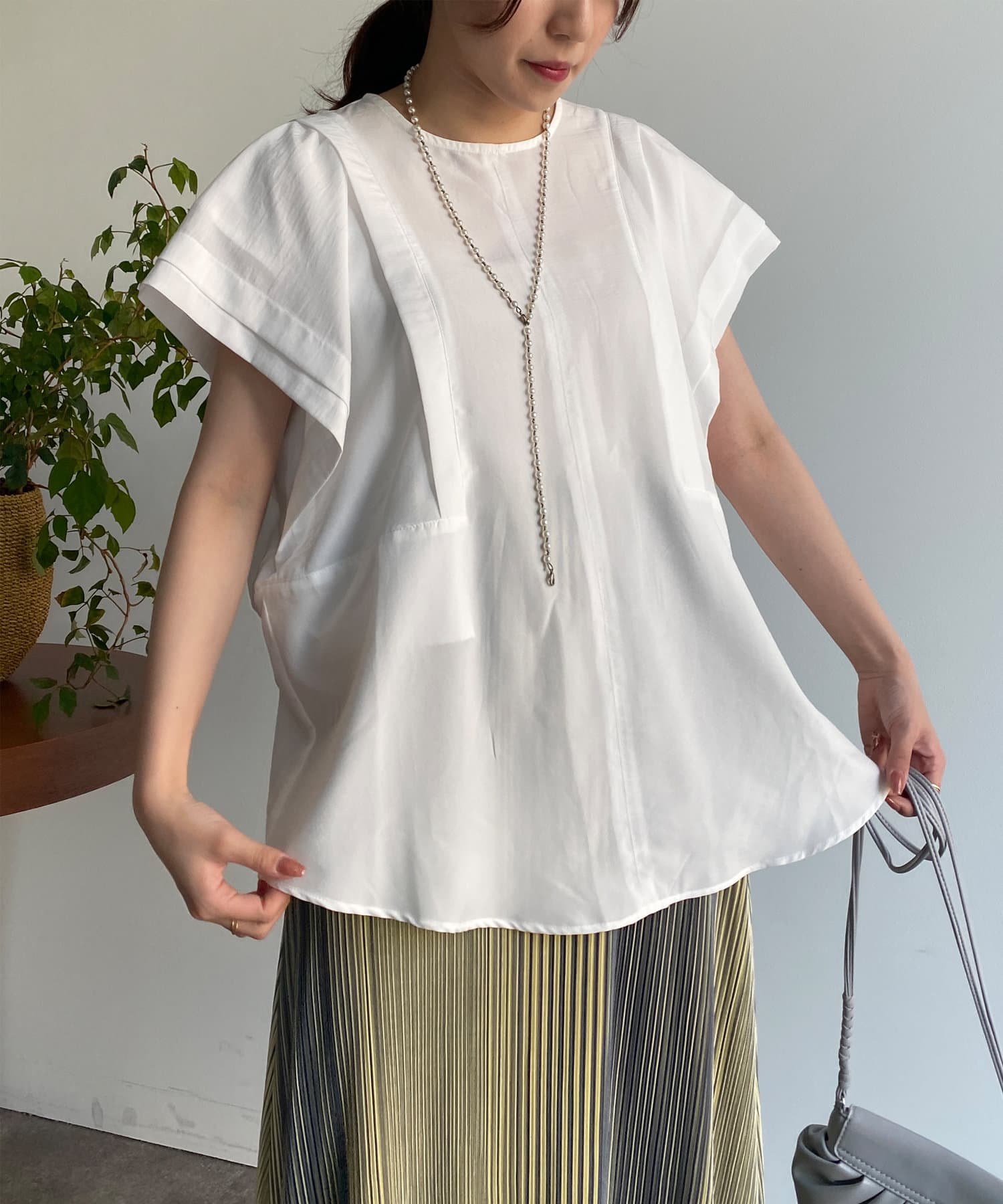・スクエア型のブラウスにタックやフリルを施したブラウス。