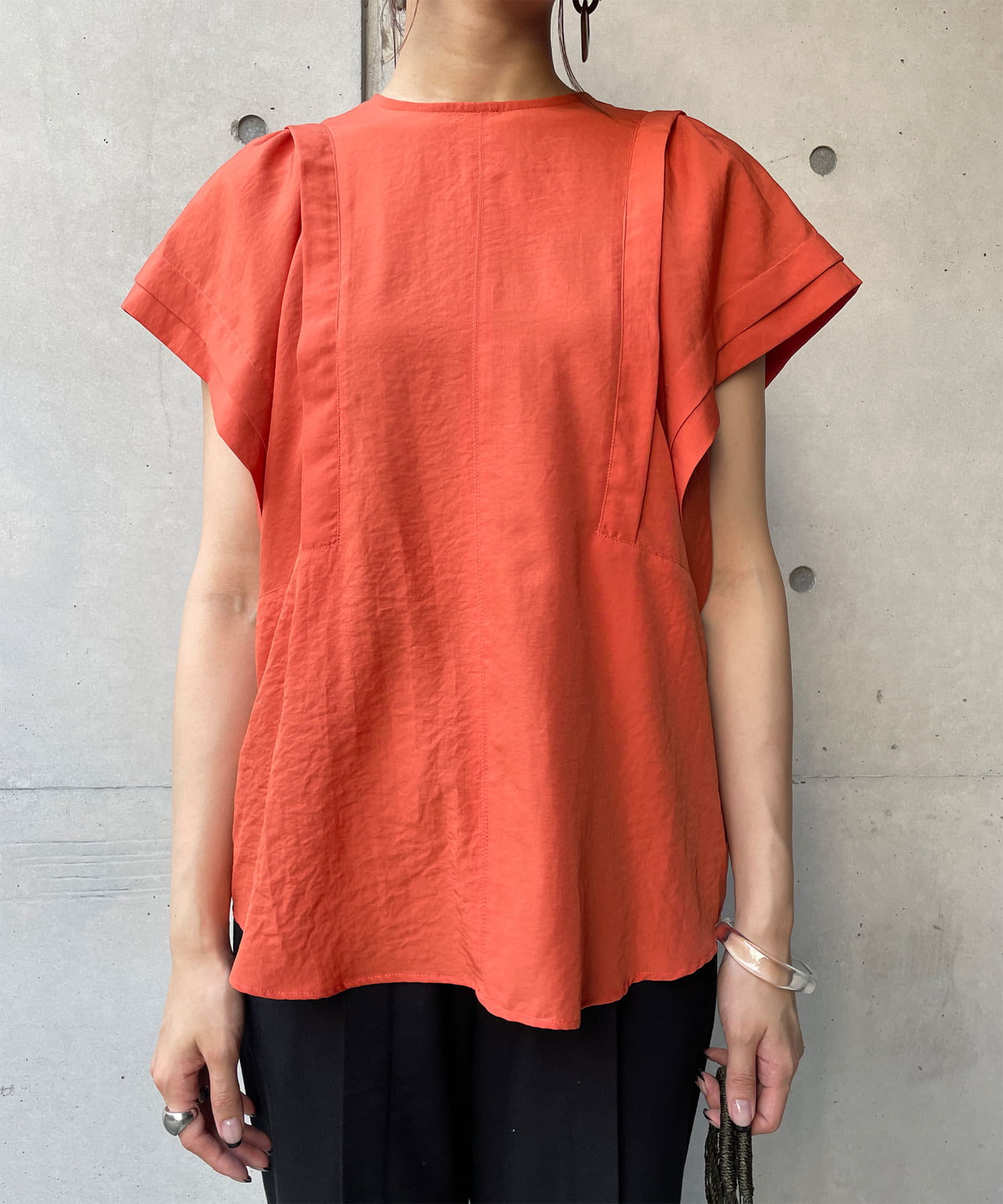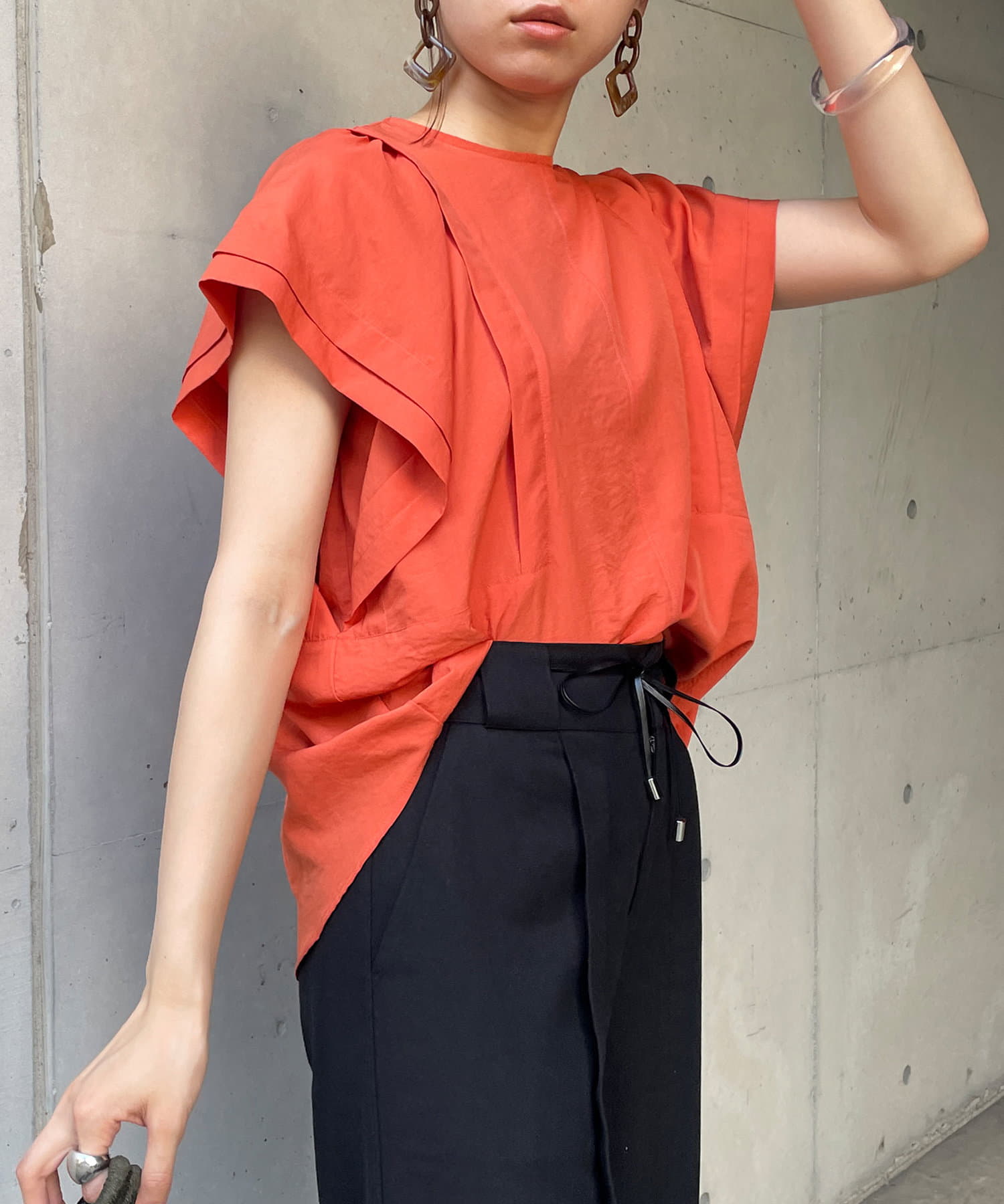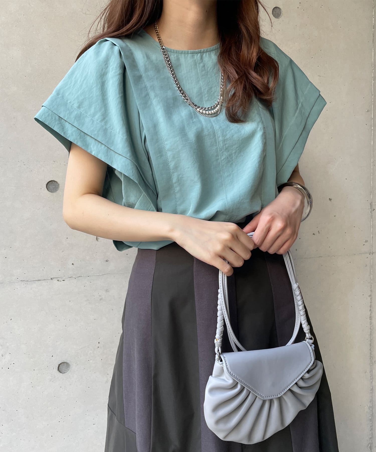 ・スクエア型のブラウスにタックやフリルを施したブラウス。