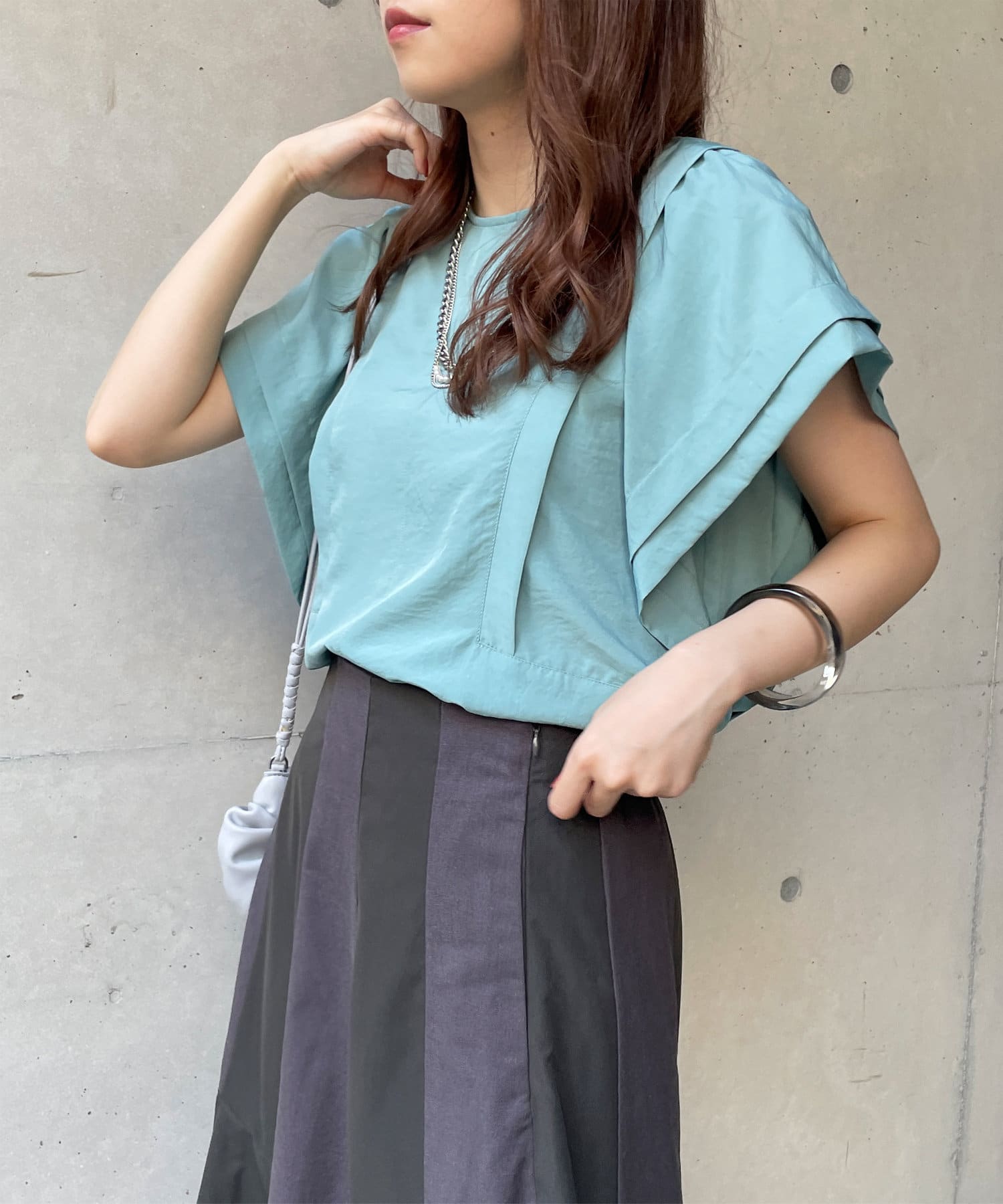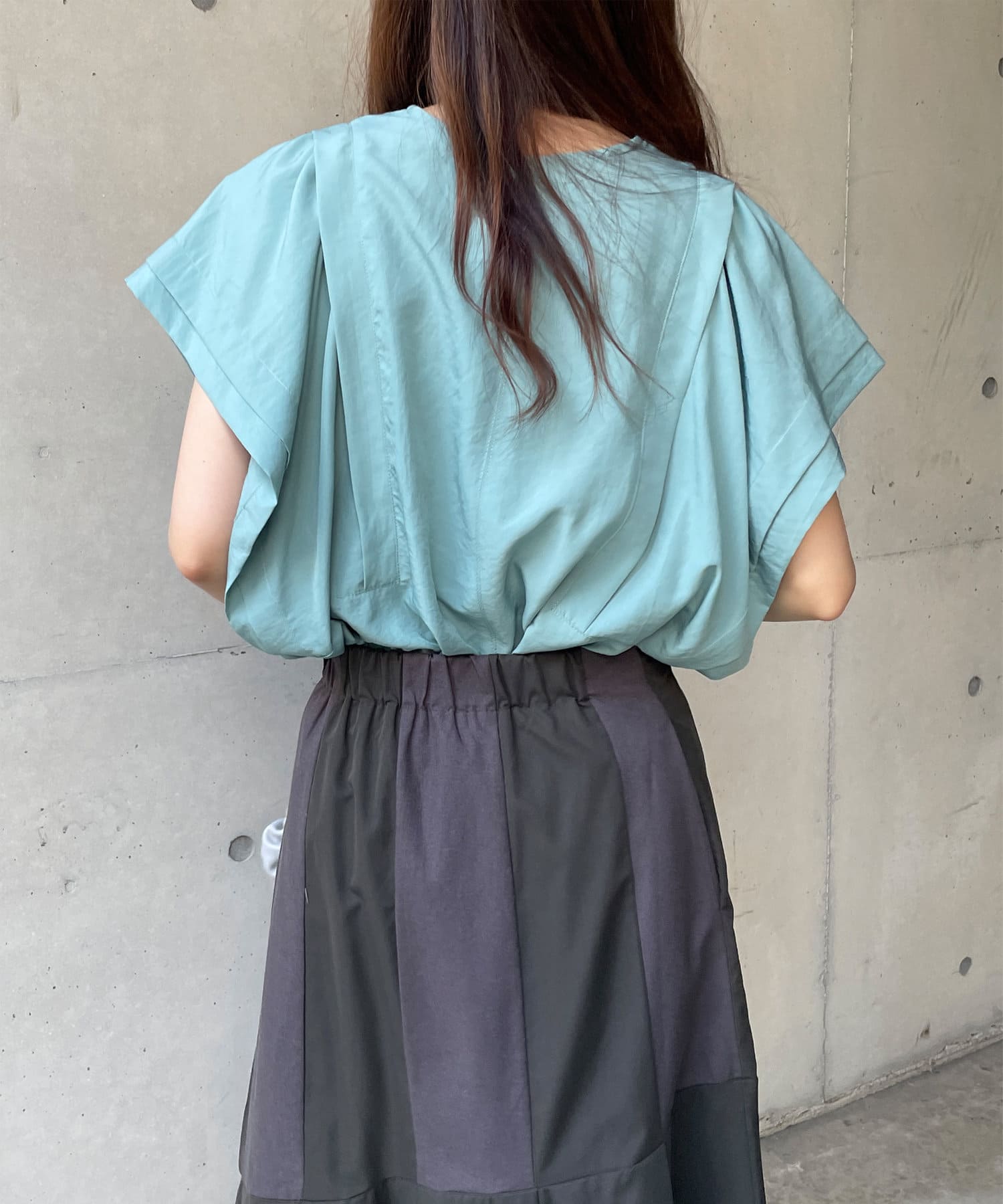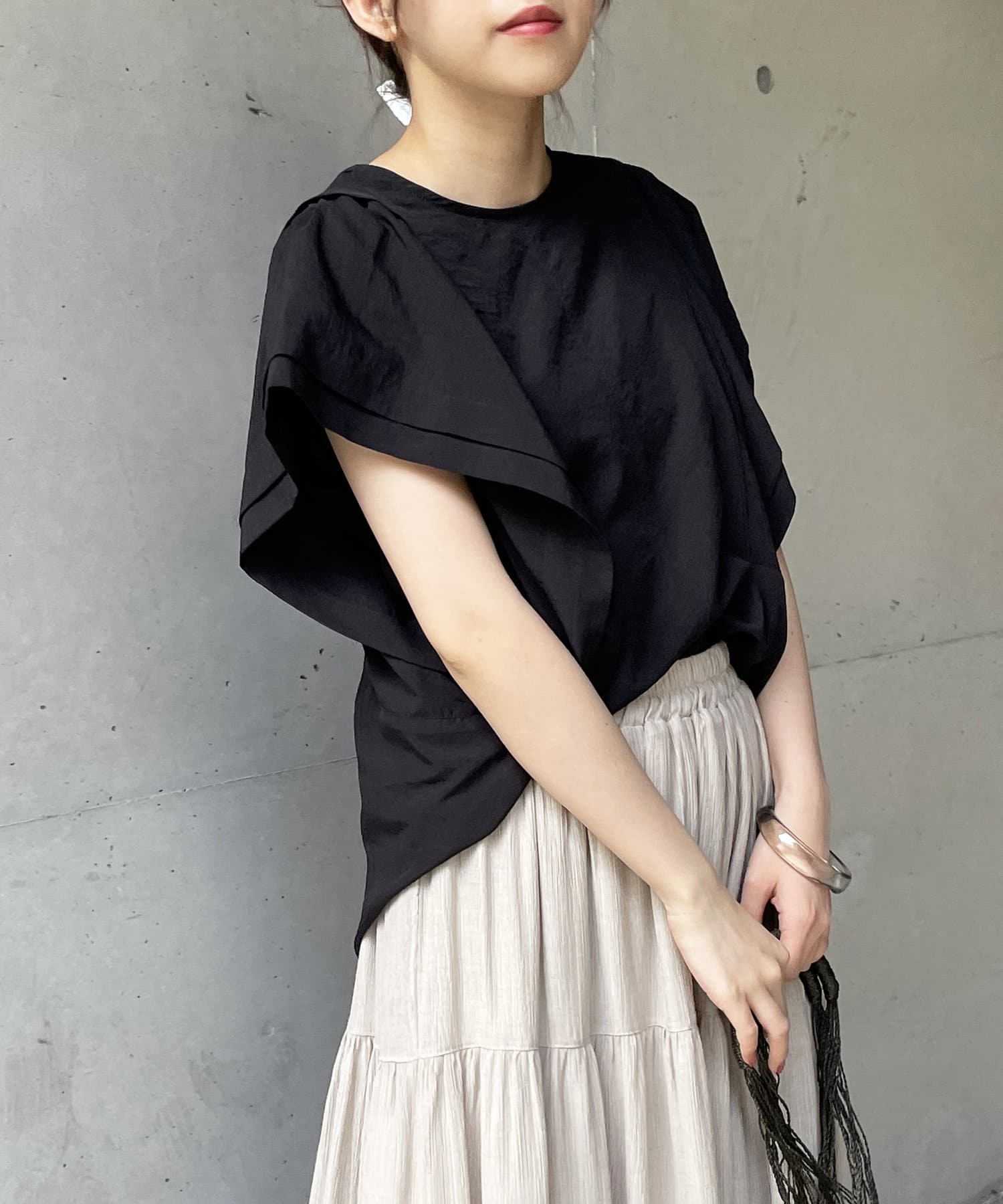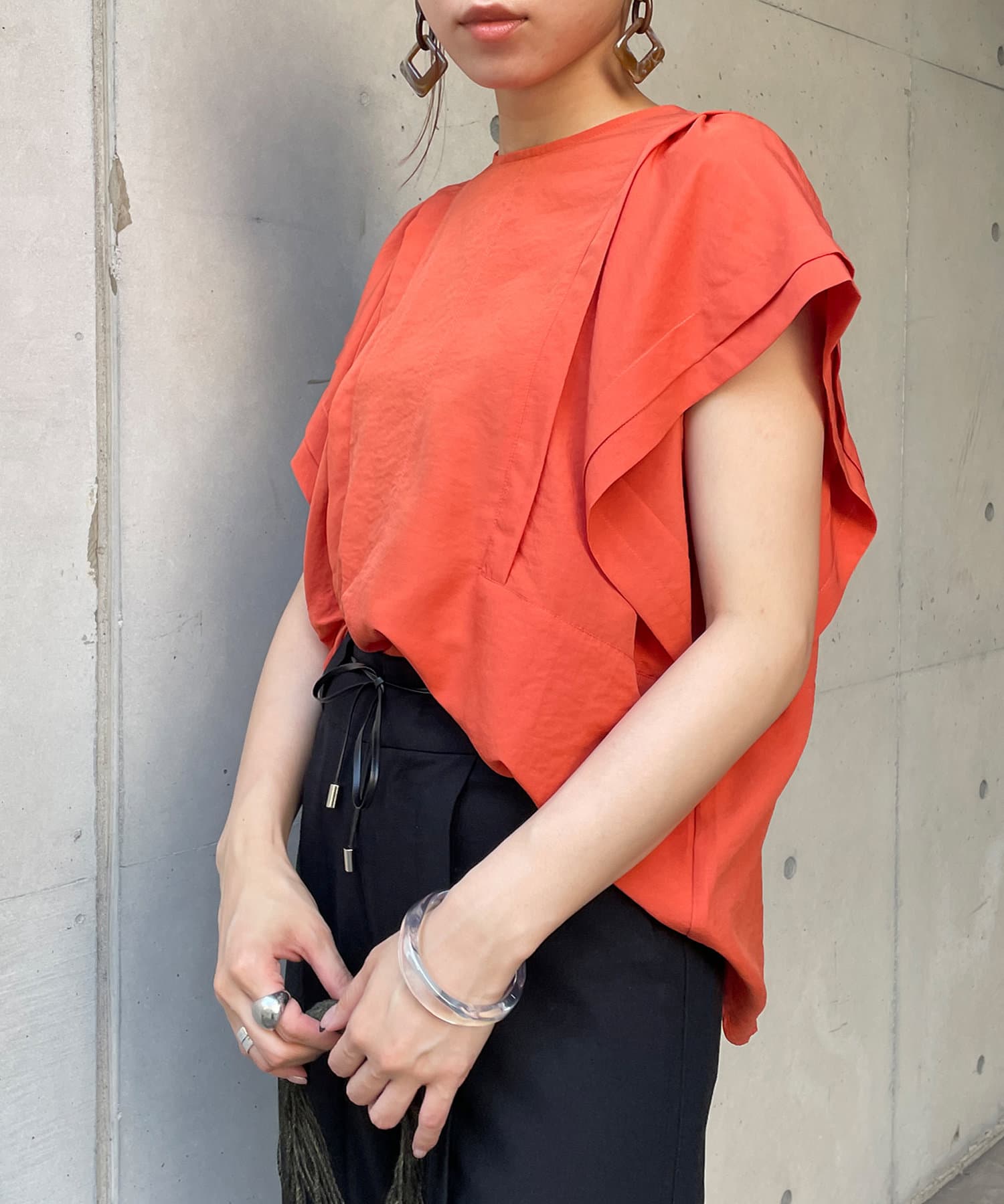 ・スクエア型のブラウスにタックやフリルを施したブラウス。