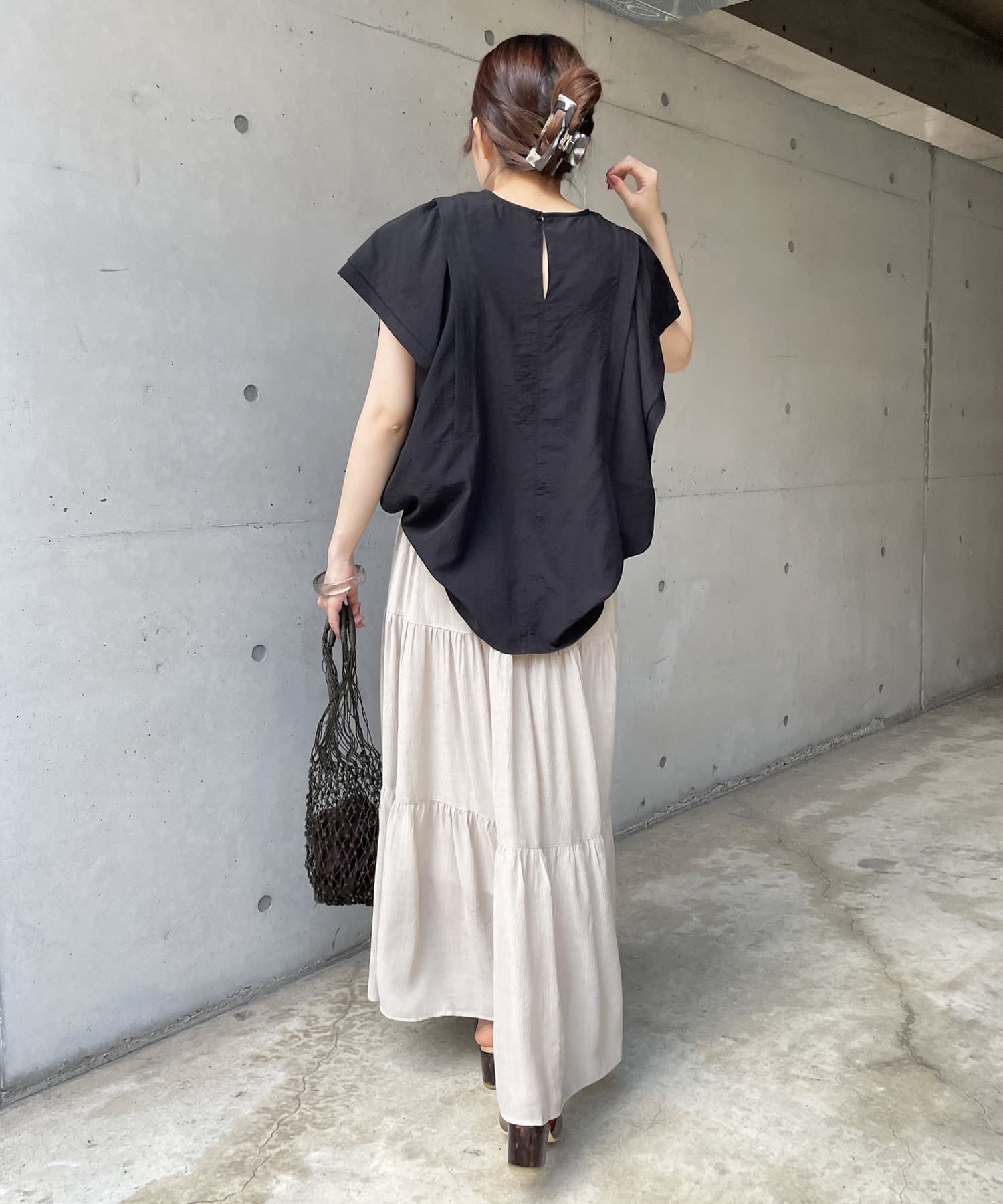・フレアな袖とヒップに被る丈感で体型カバーが叶います。
