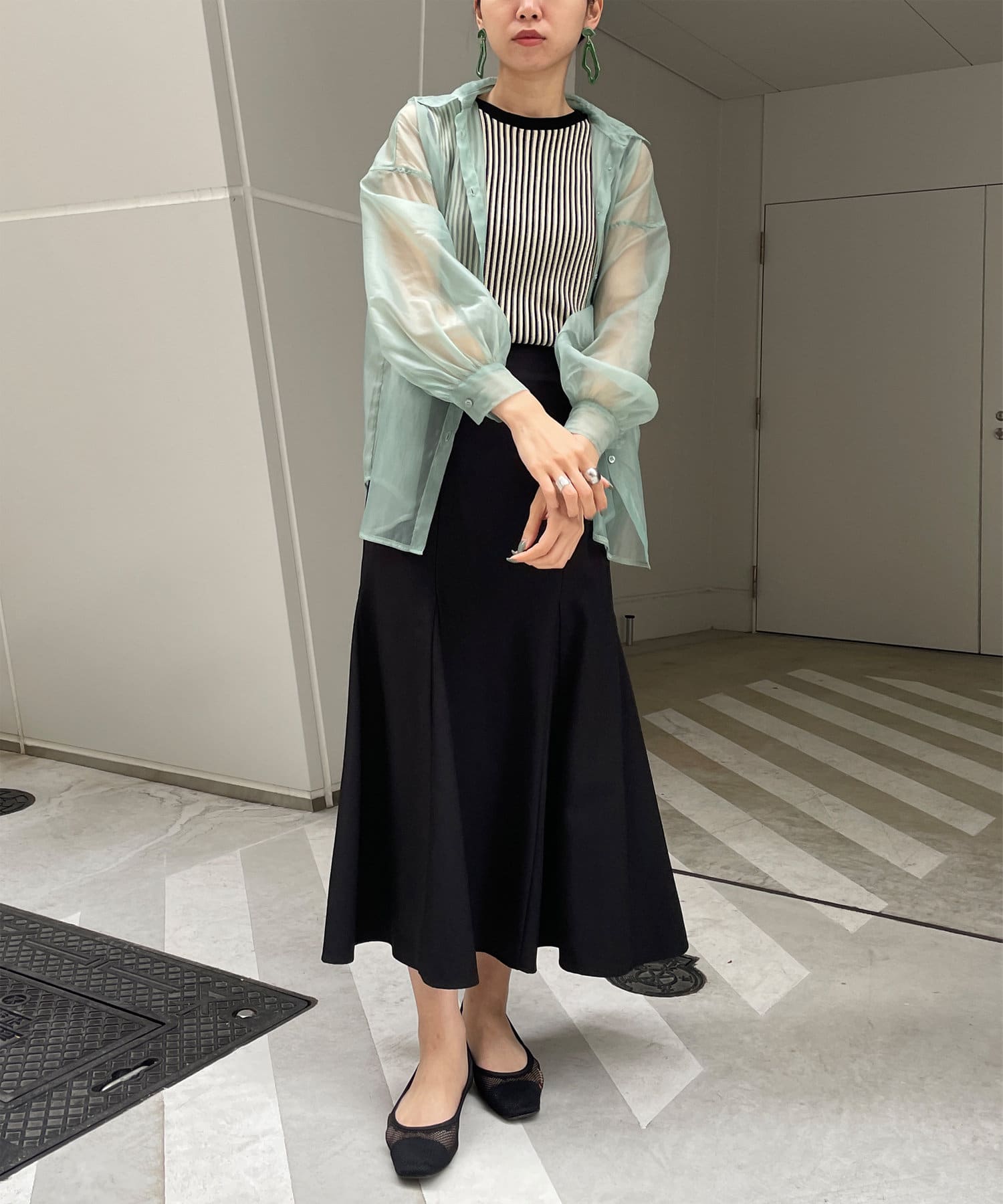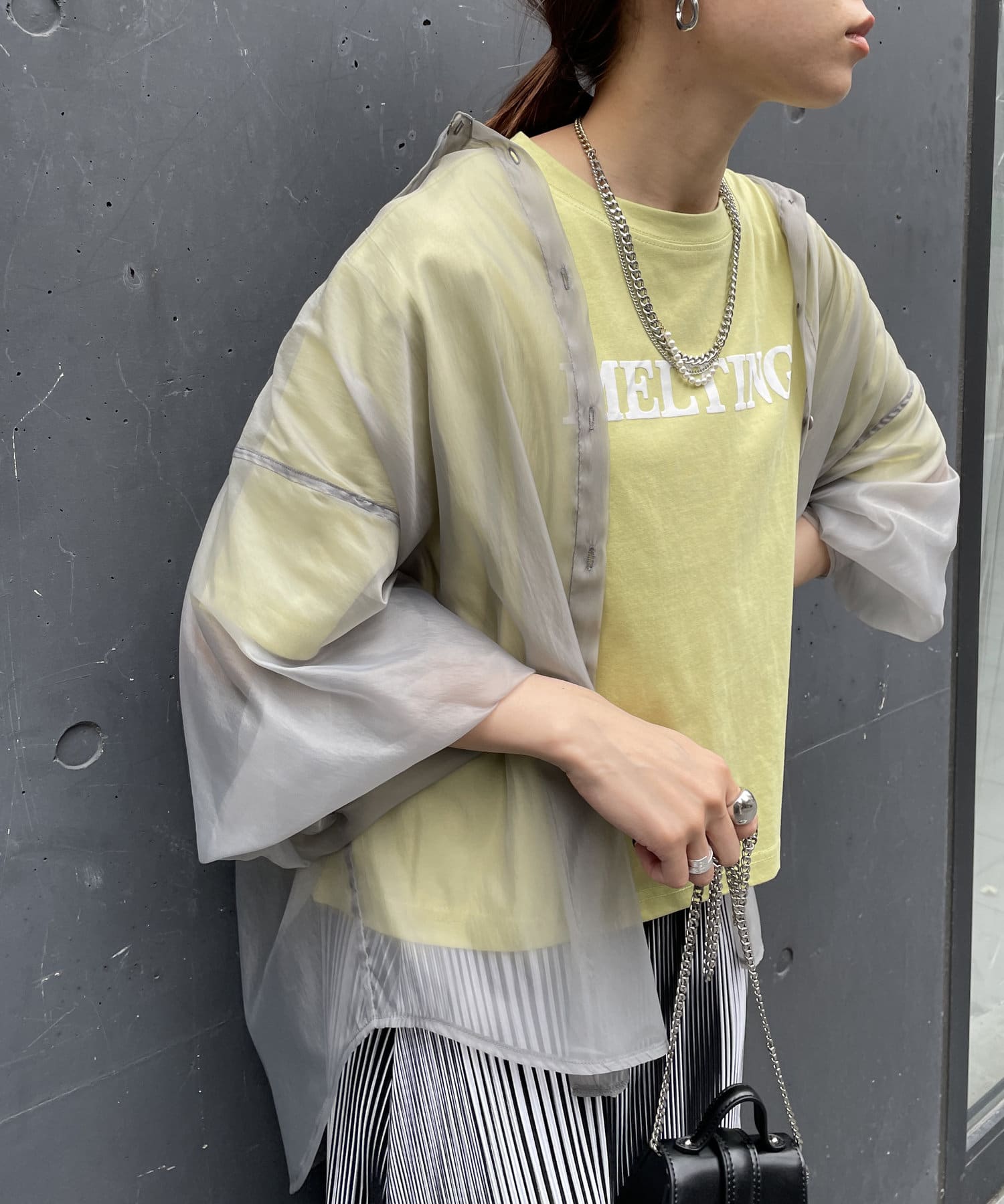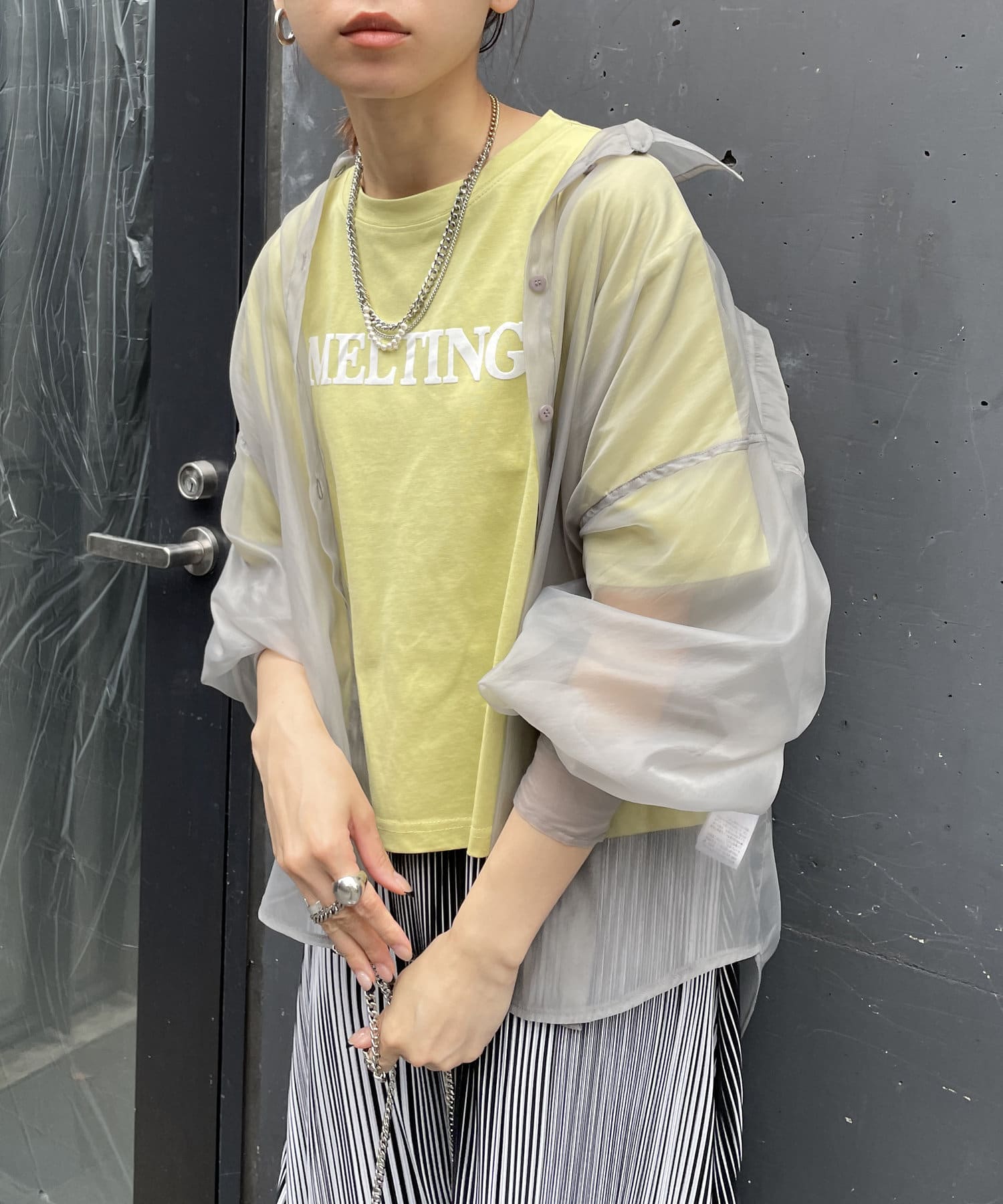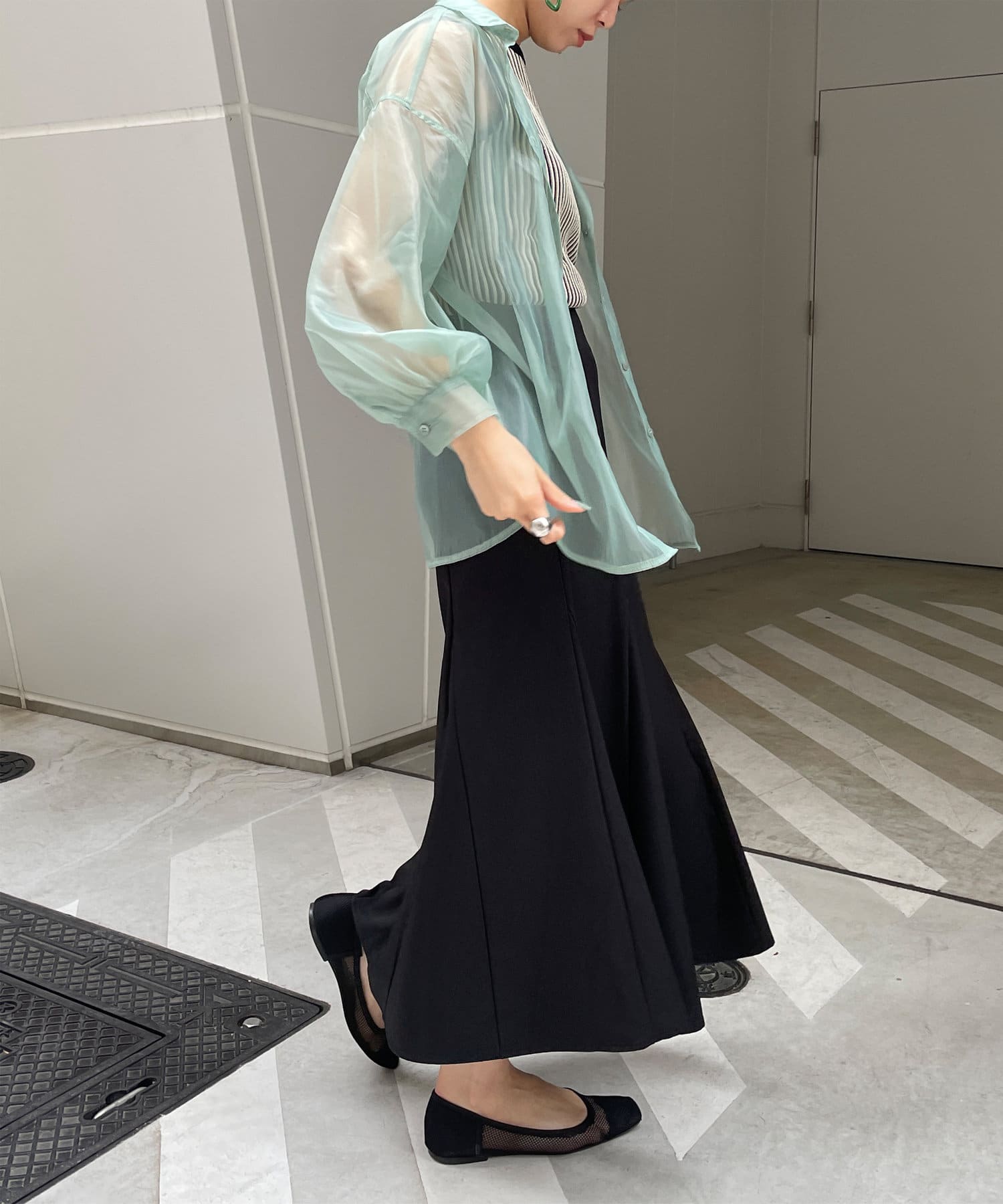 ・今季トレンドのシアーシャツです。