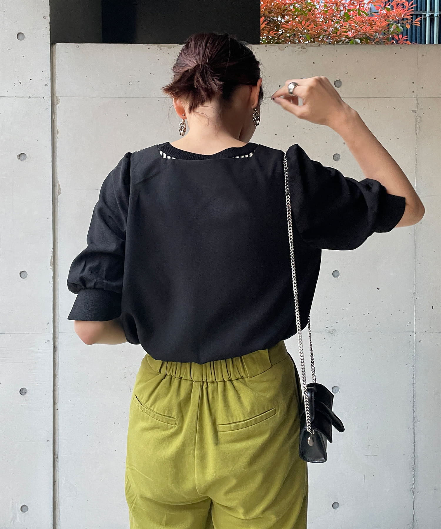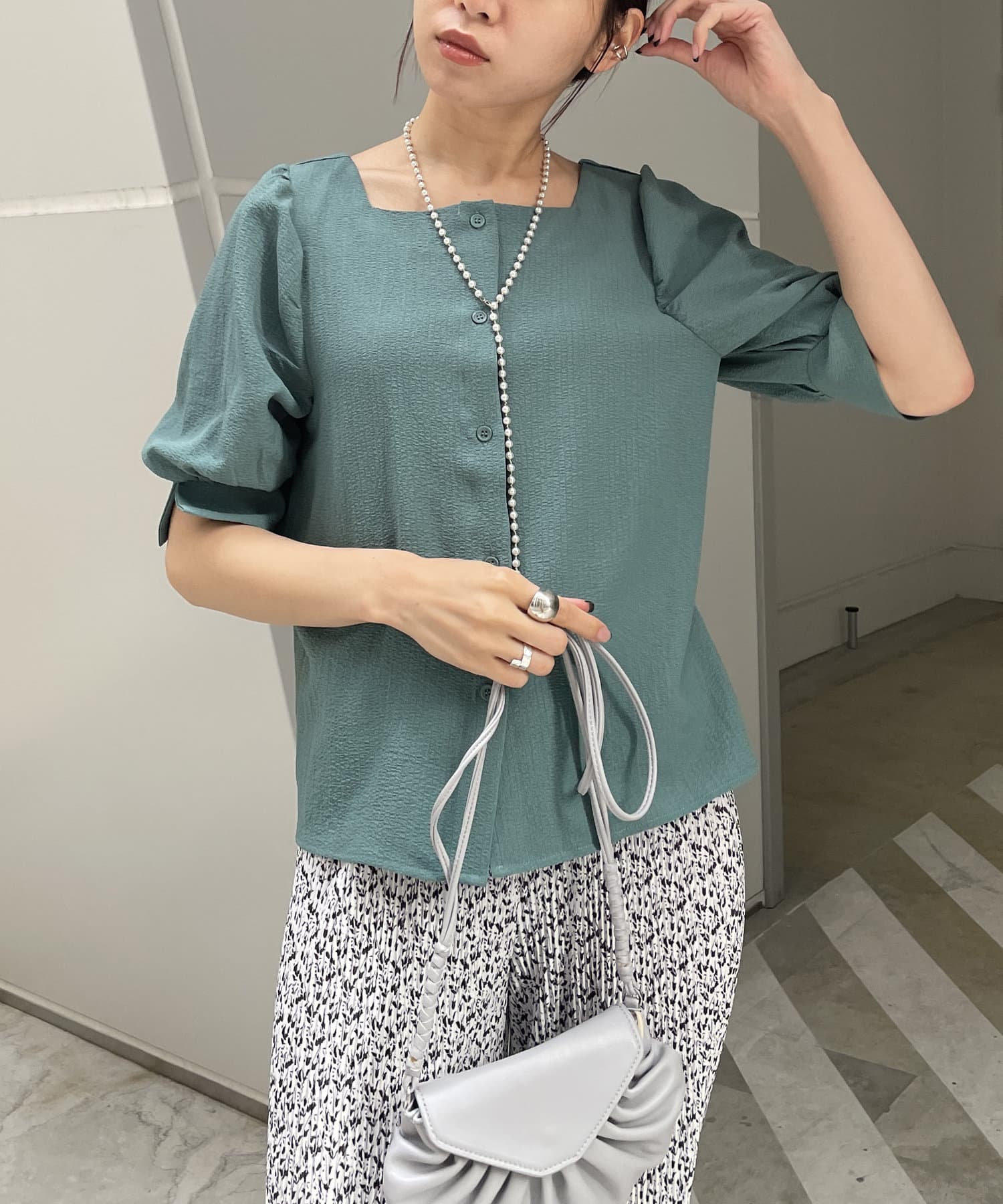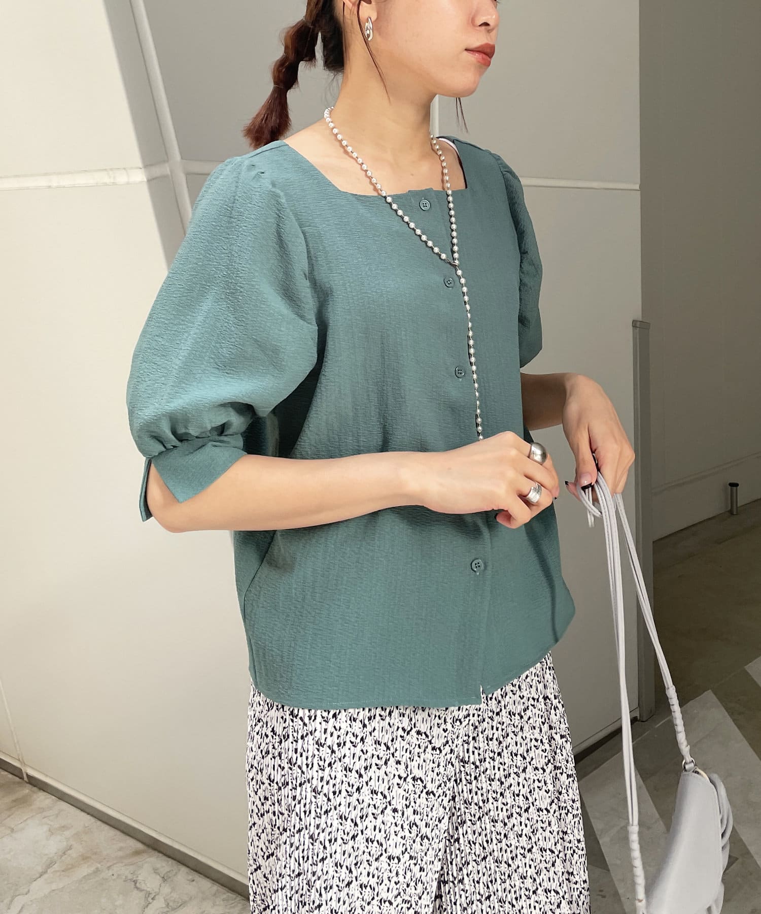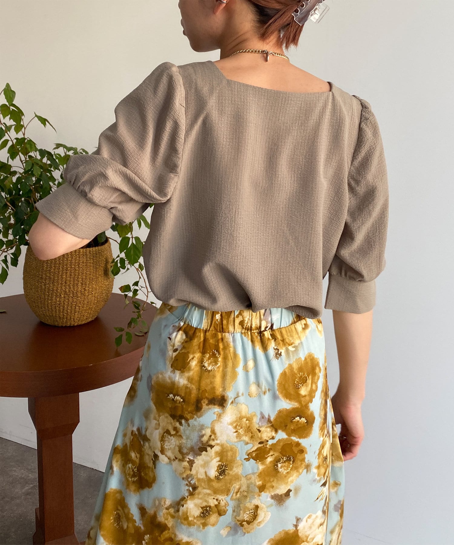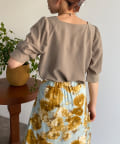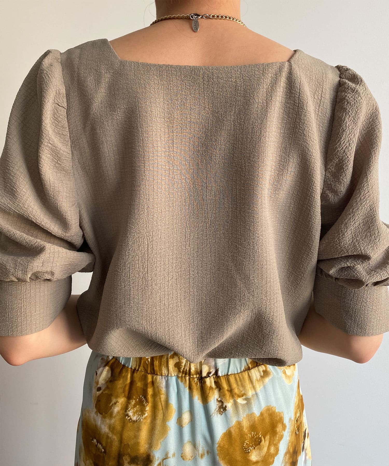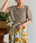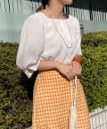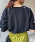 ・スクエアネックと程よくボリュームのあるパワショル袖が女性らしさを引き立てます。