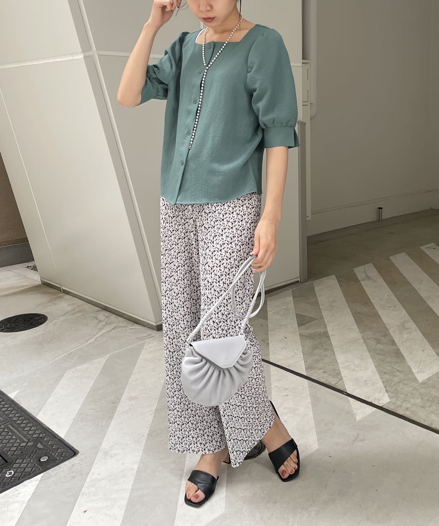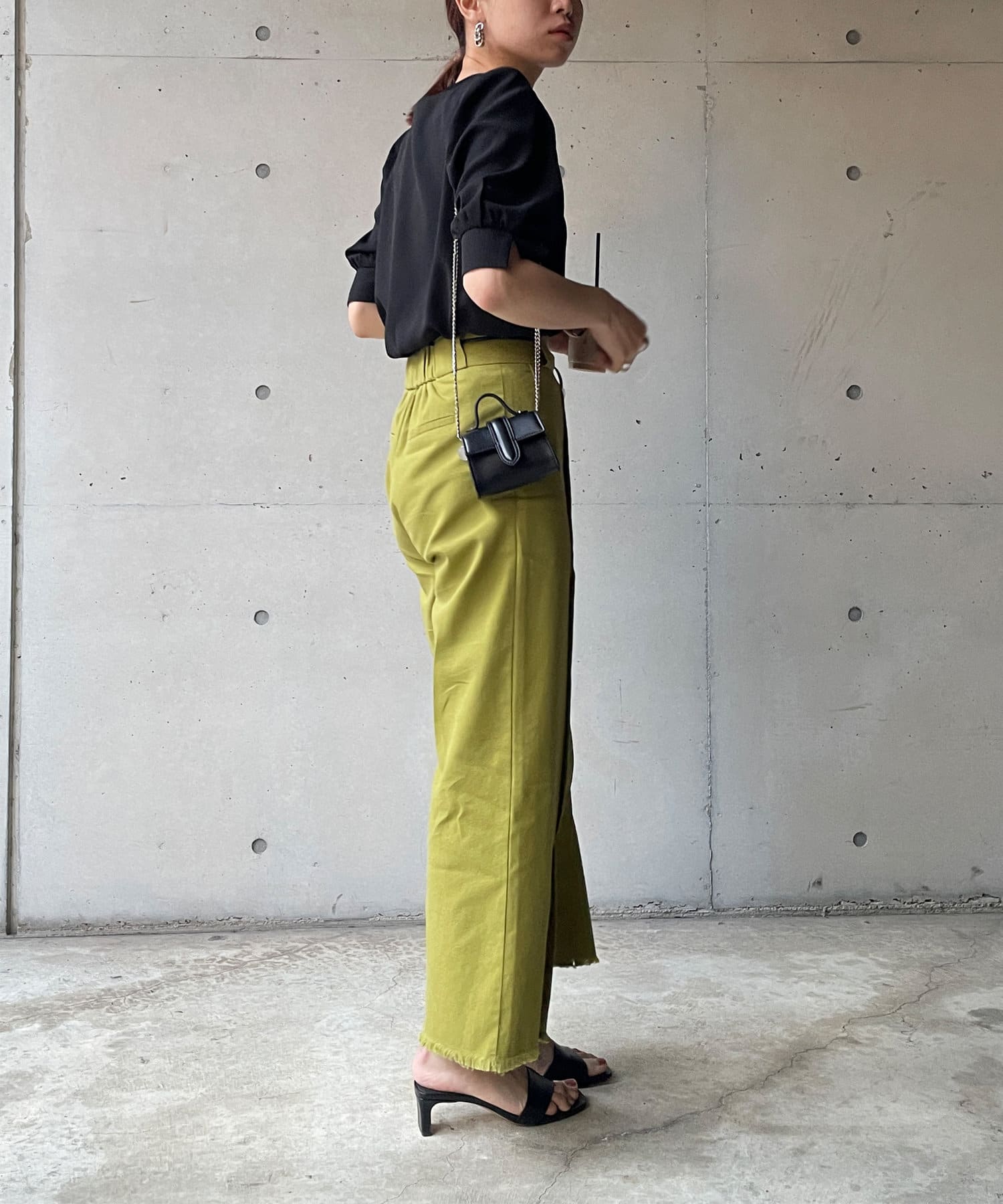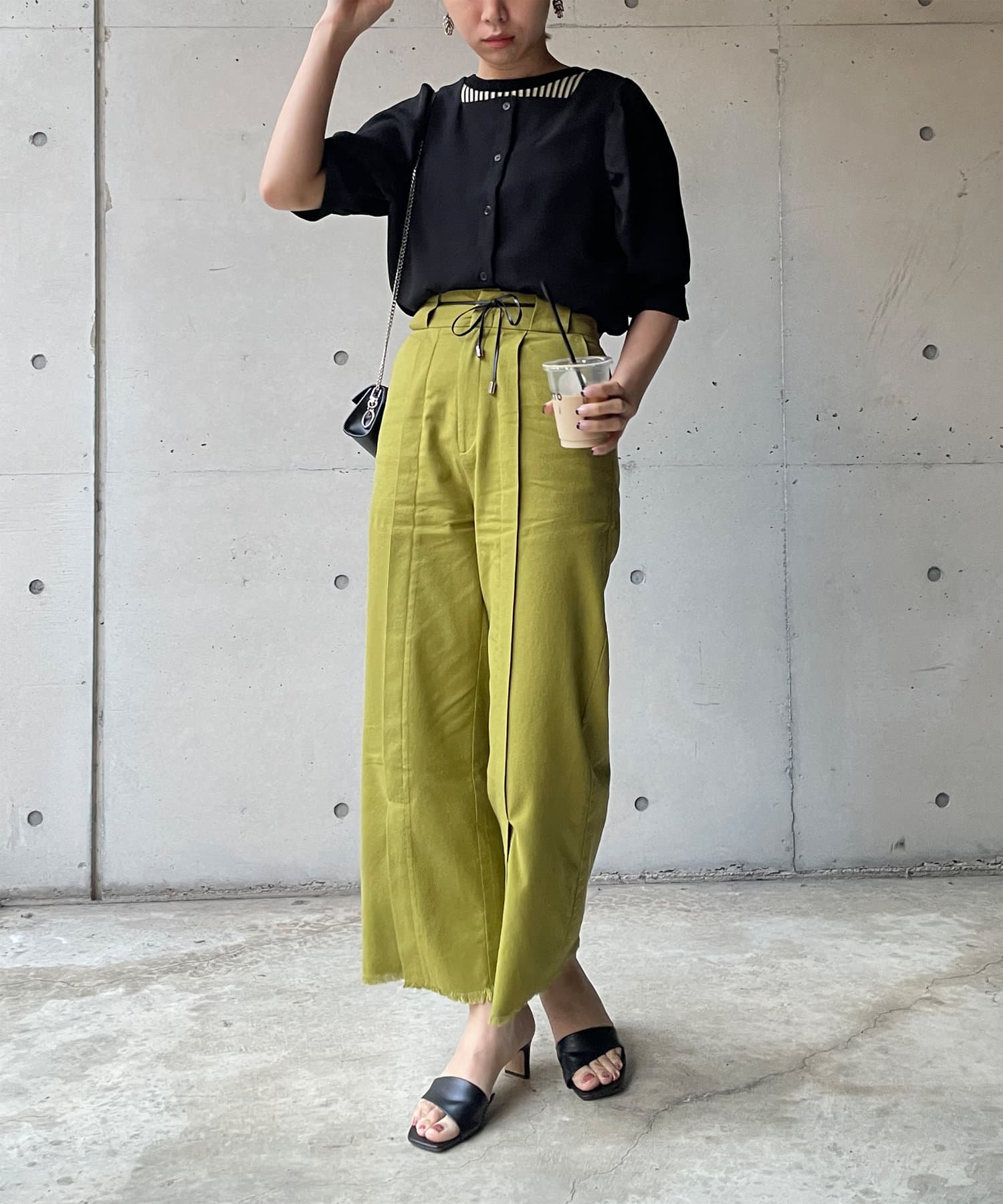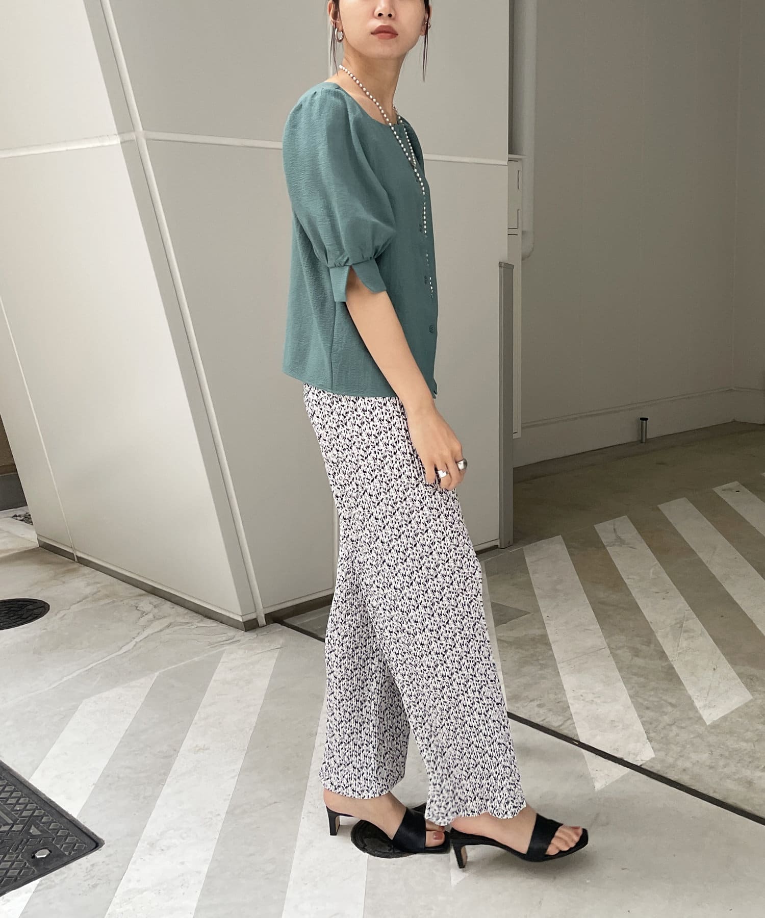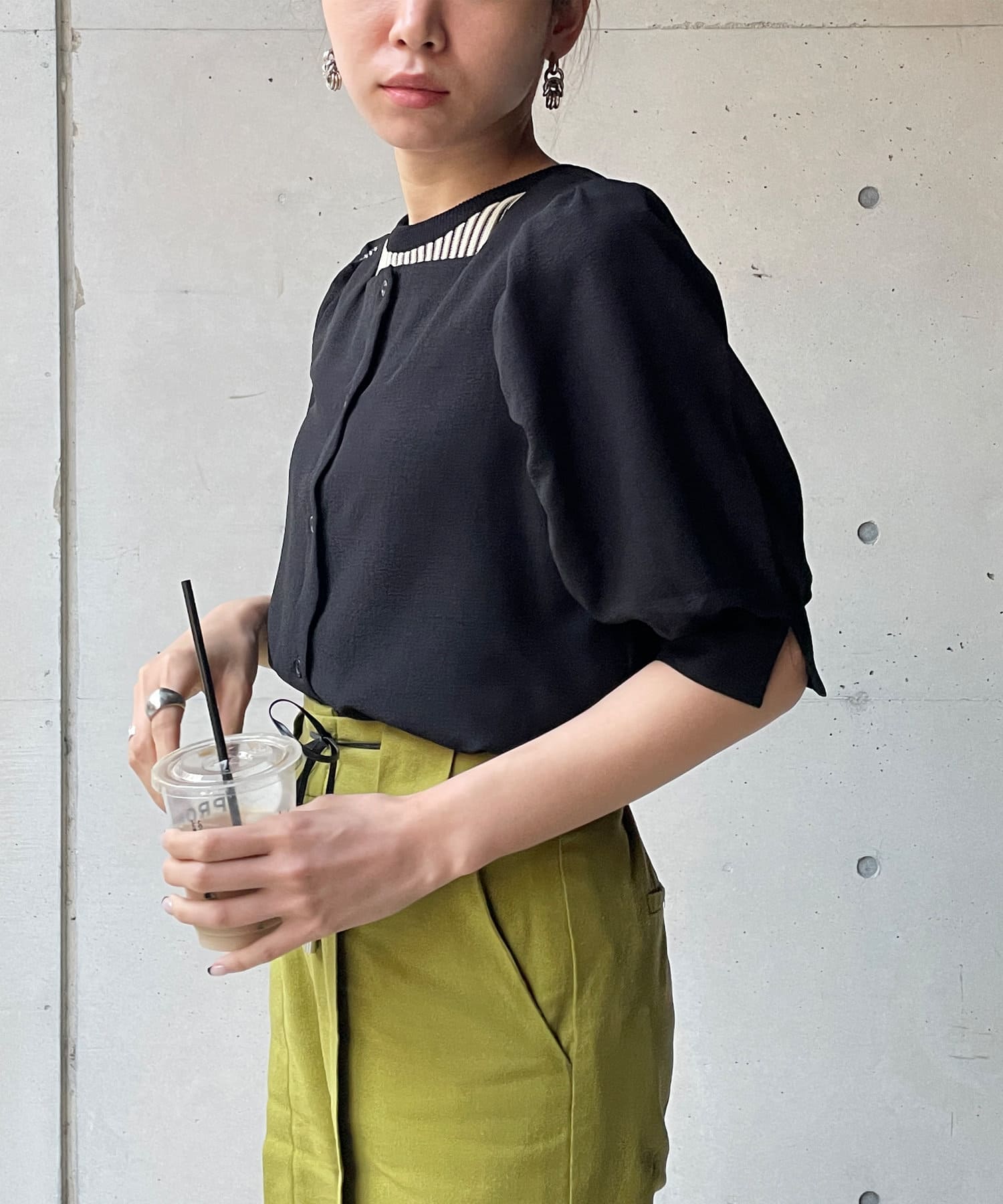 ・スクエアネックと程よくボリュームのあるパワショル袖が女性らしさを引き立てます。