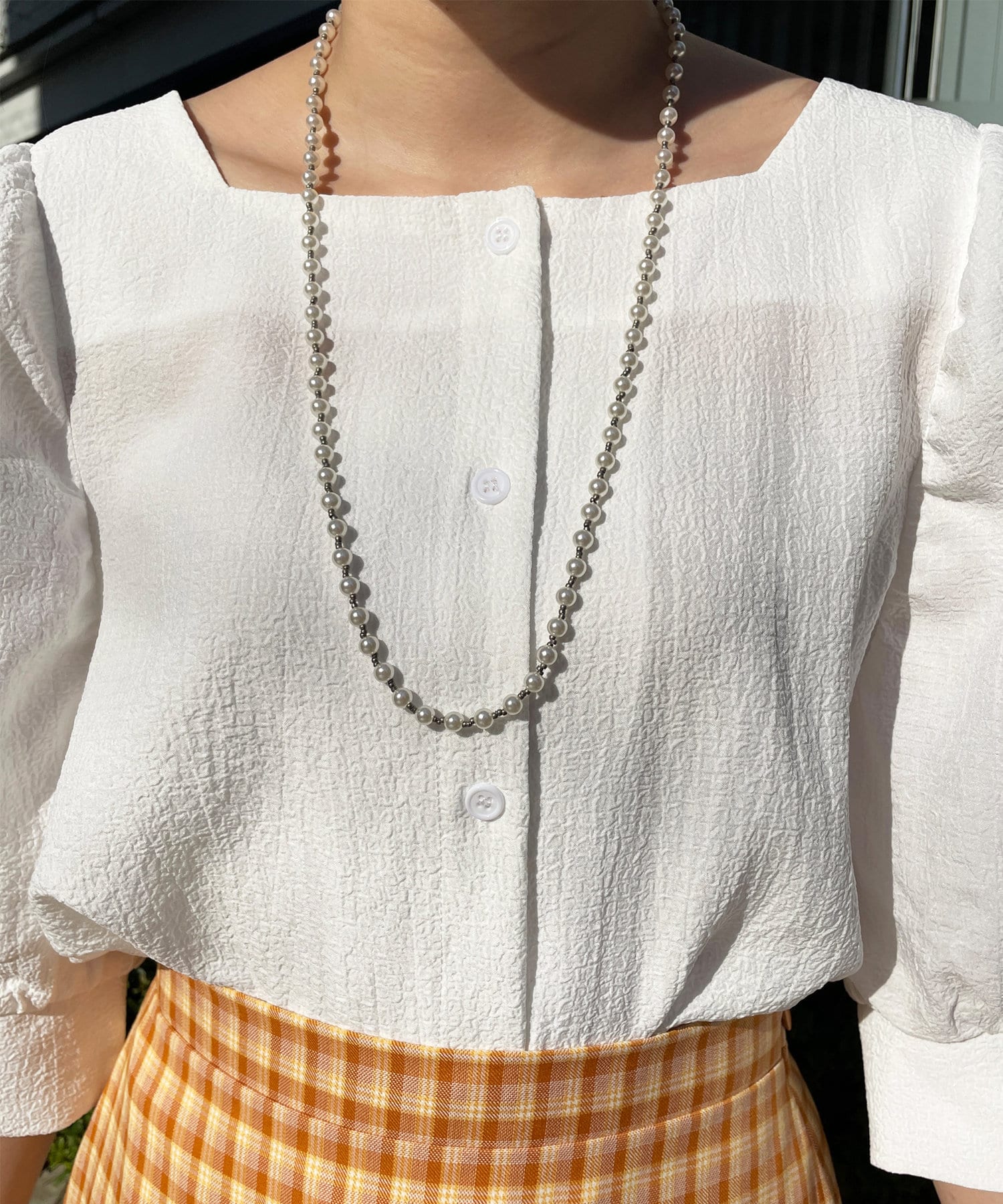 ・スクエアネックはデコルテ周りをキレイに見せてくれます。