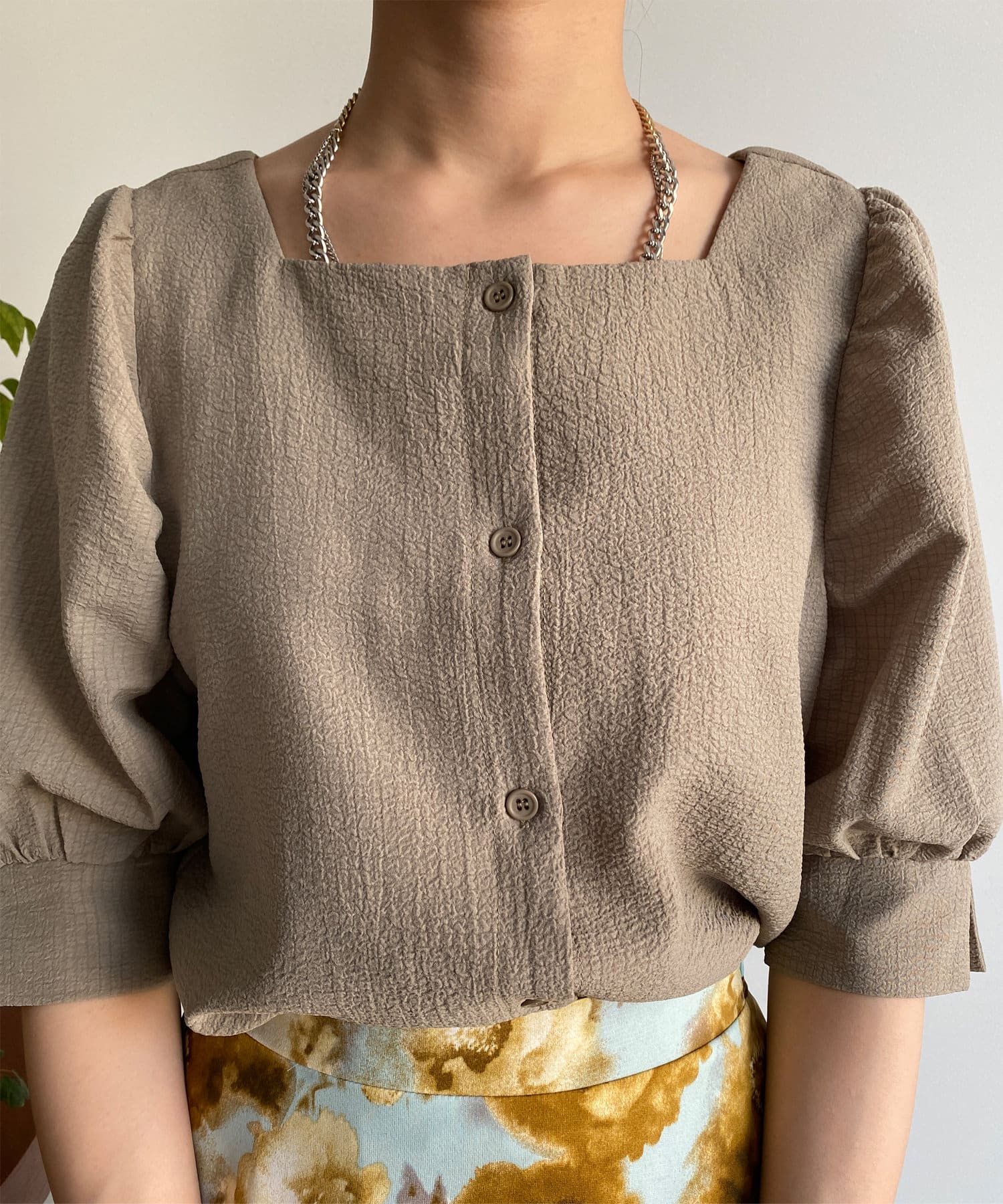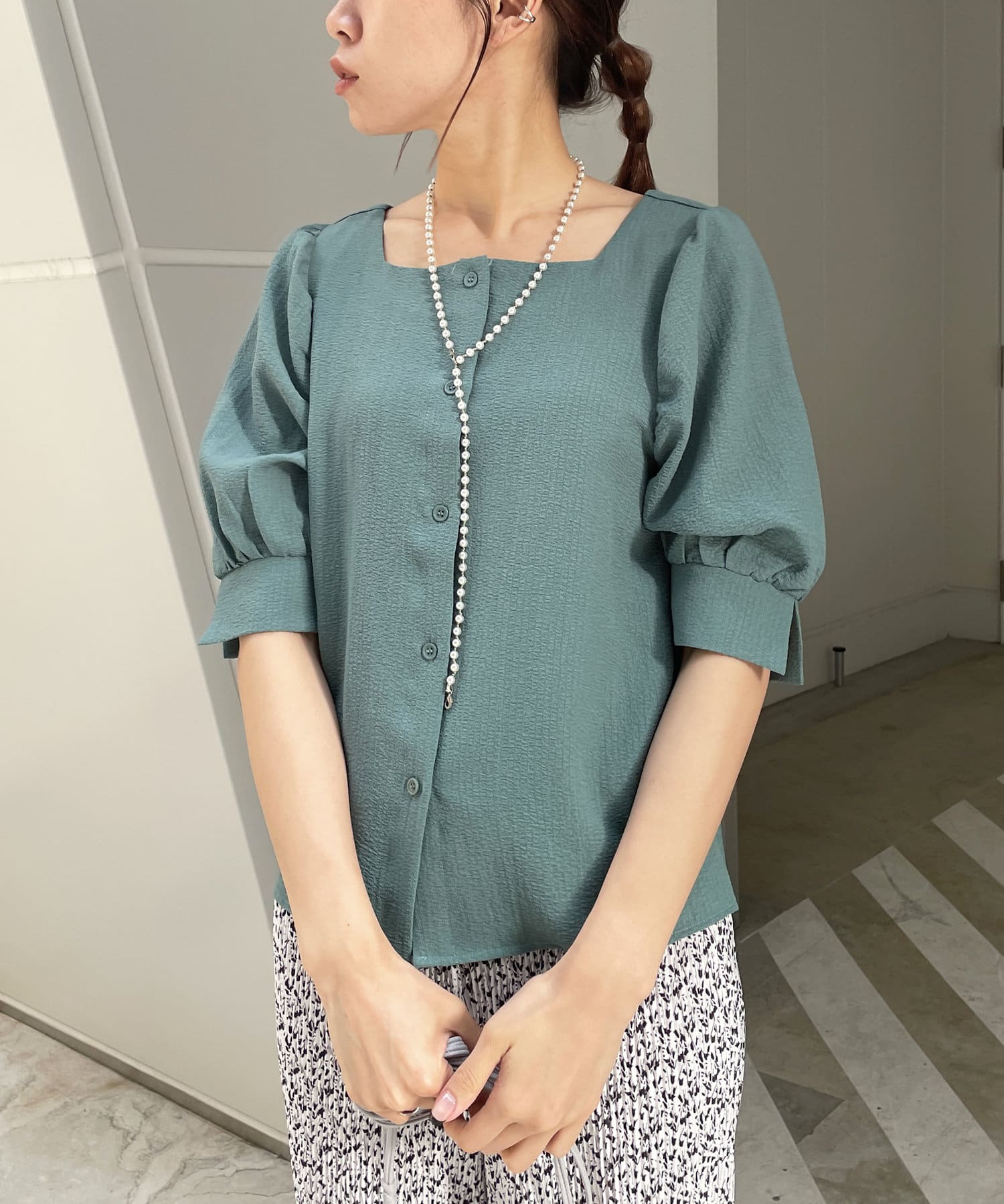 スクエアネック2WAYパワショルブラウス