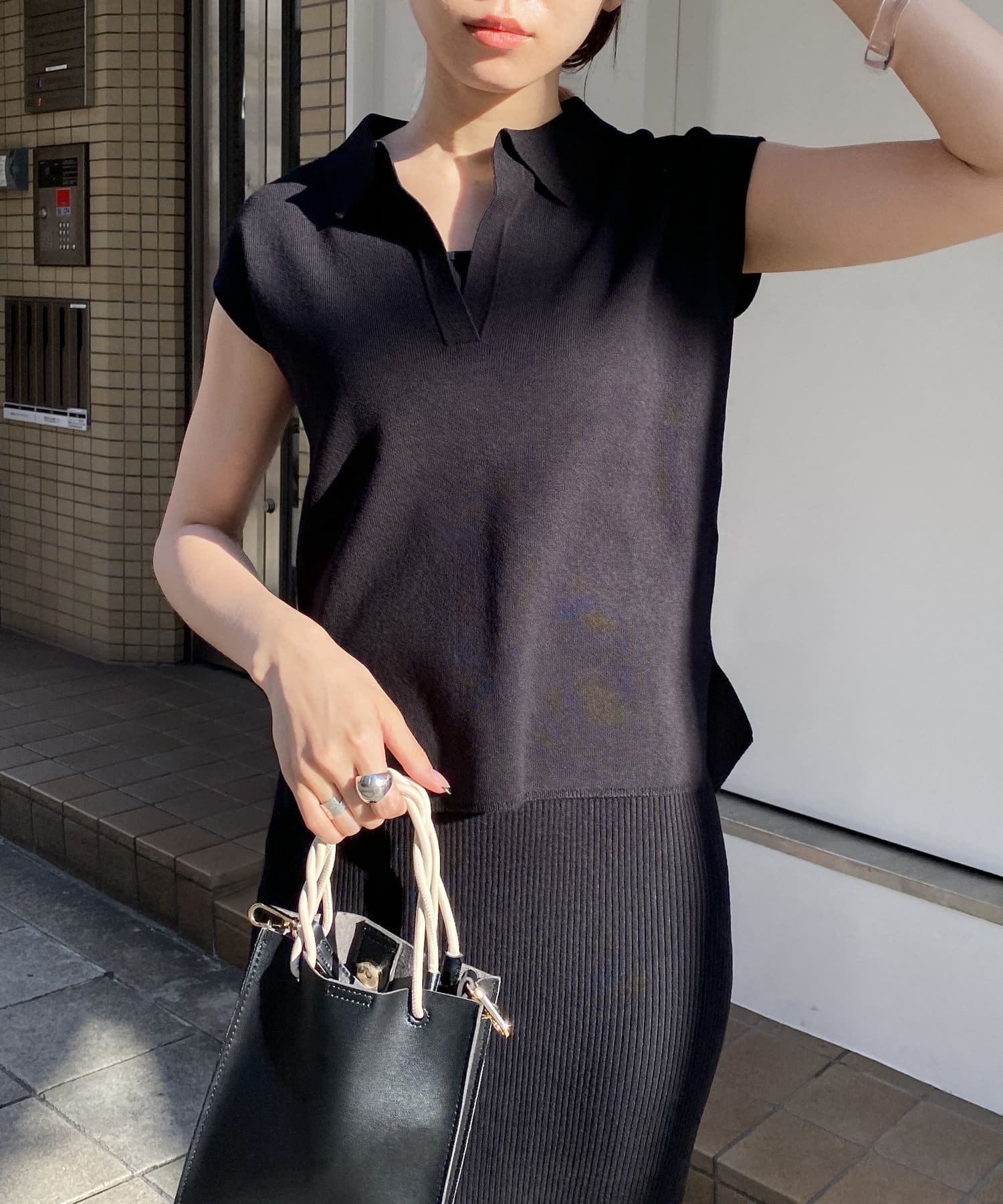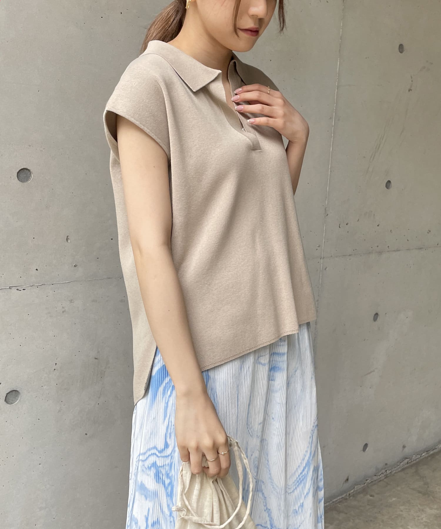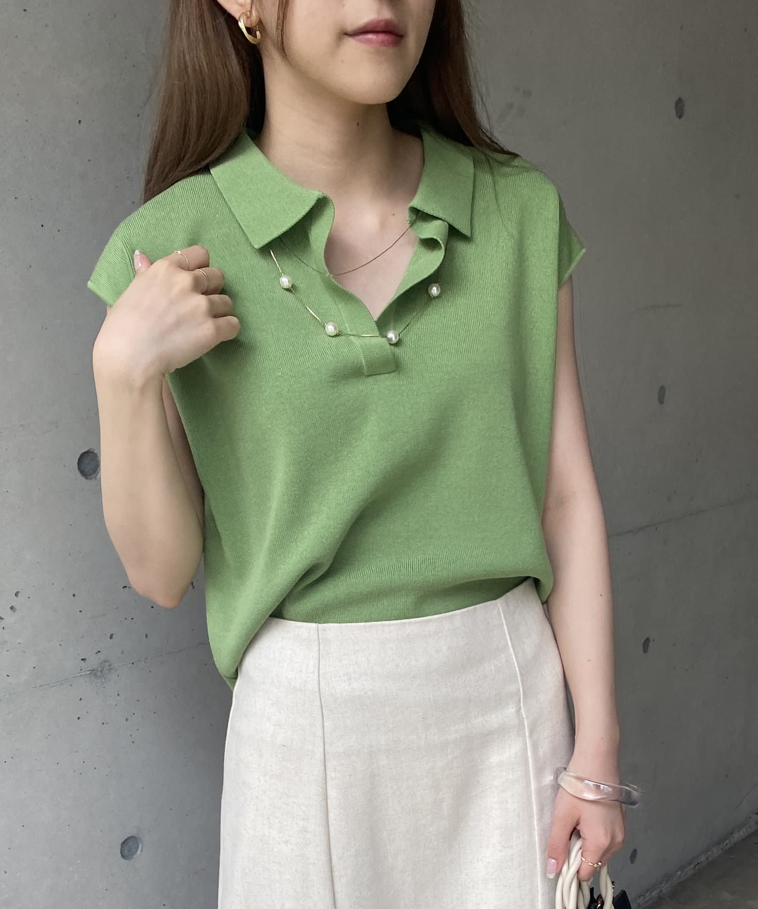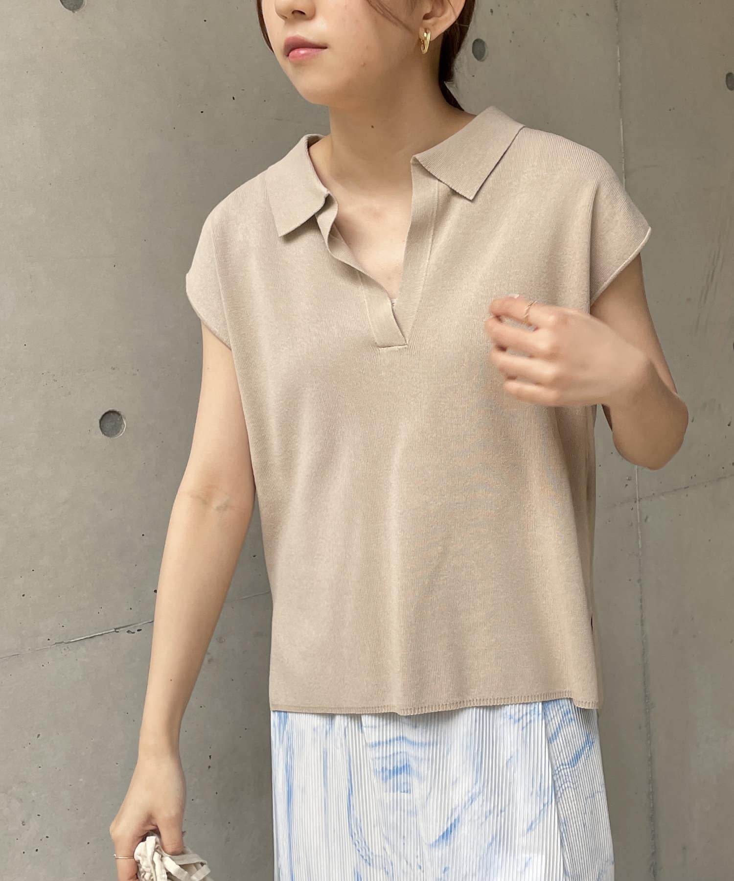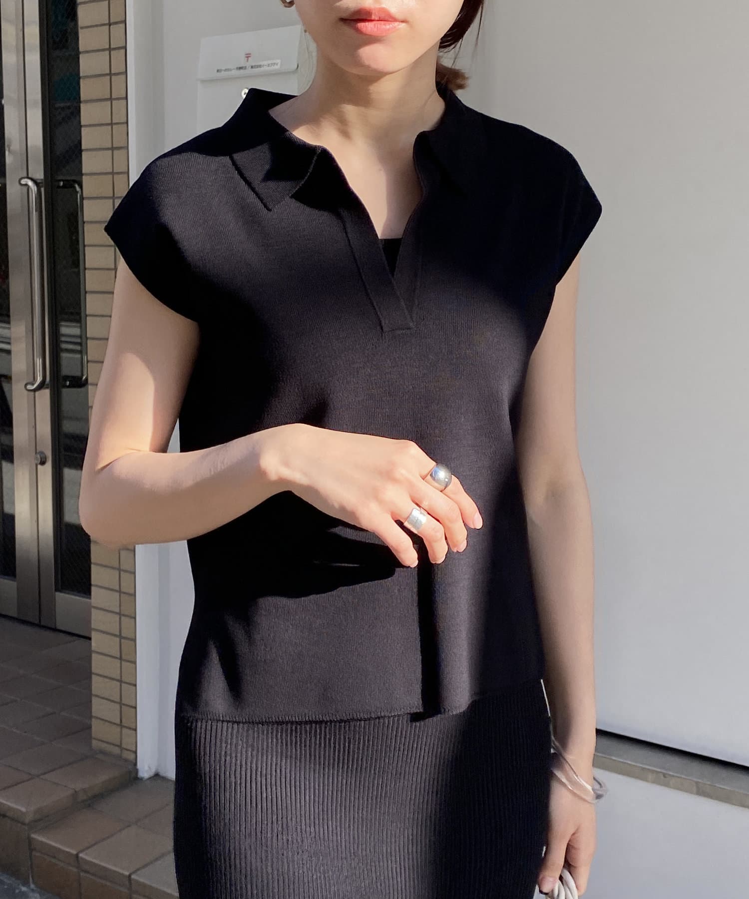 TOP > Thevon. > レディース > トップス > ニット/セーター > 【セットアップ可】スキッパーフレンチポロニット
