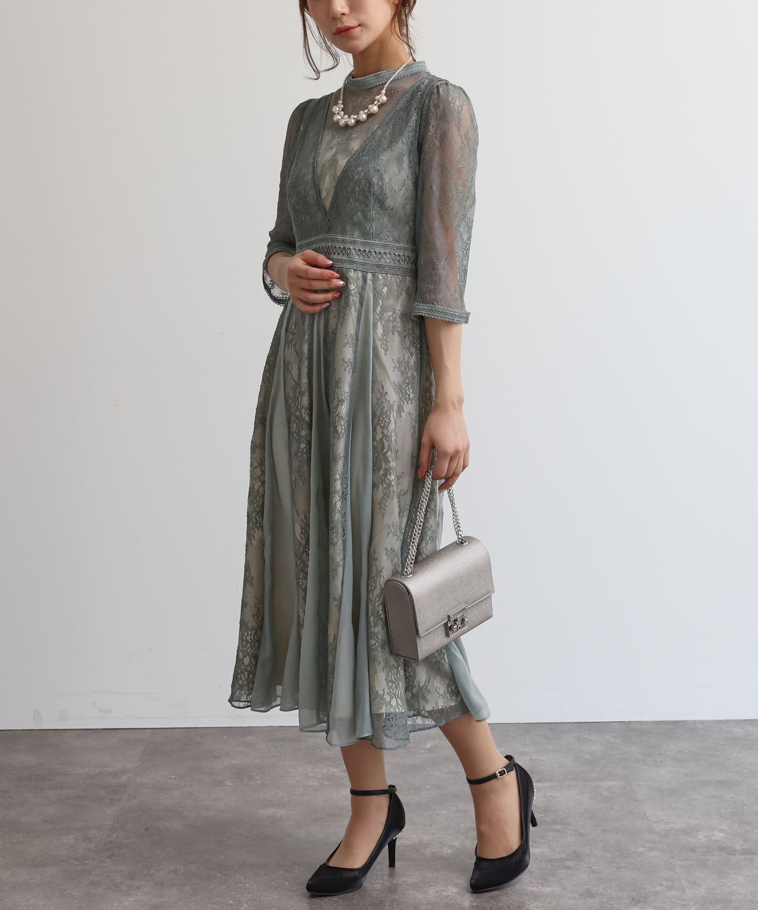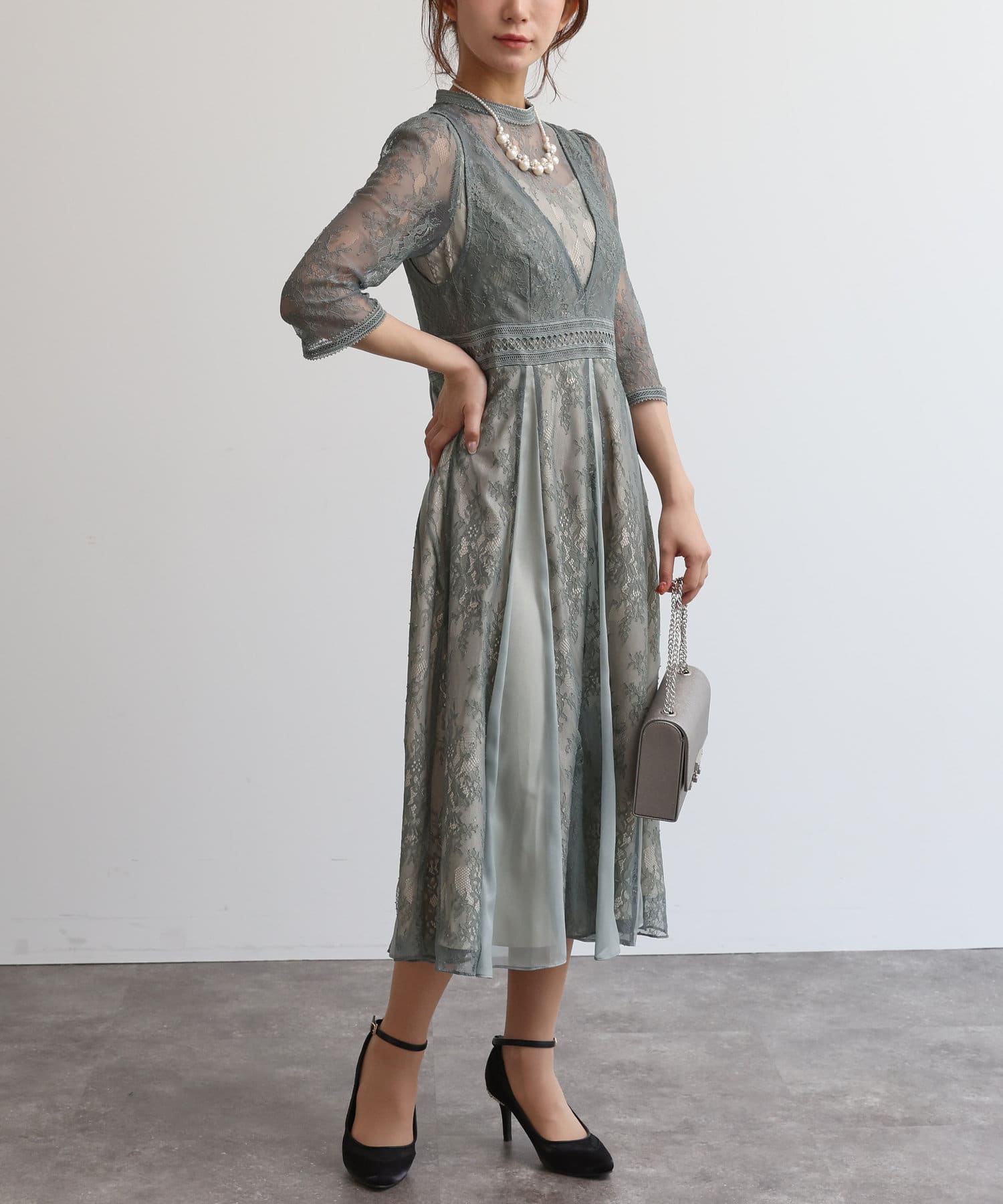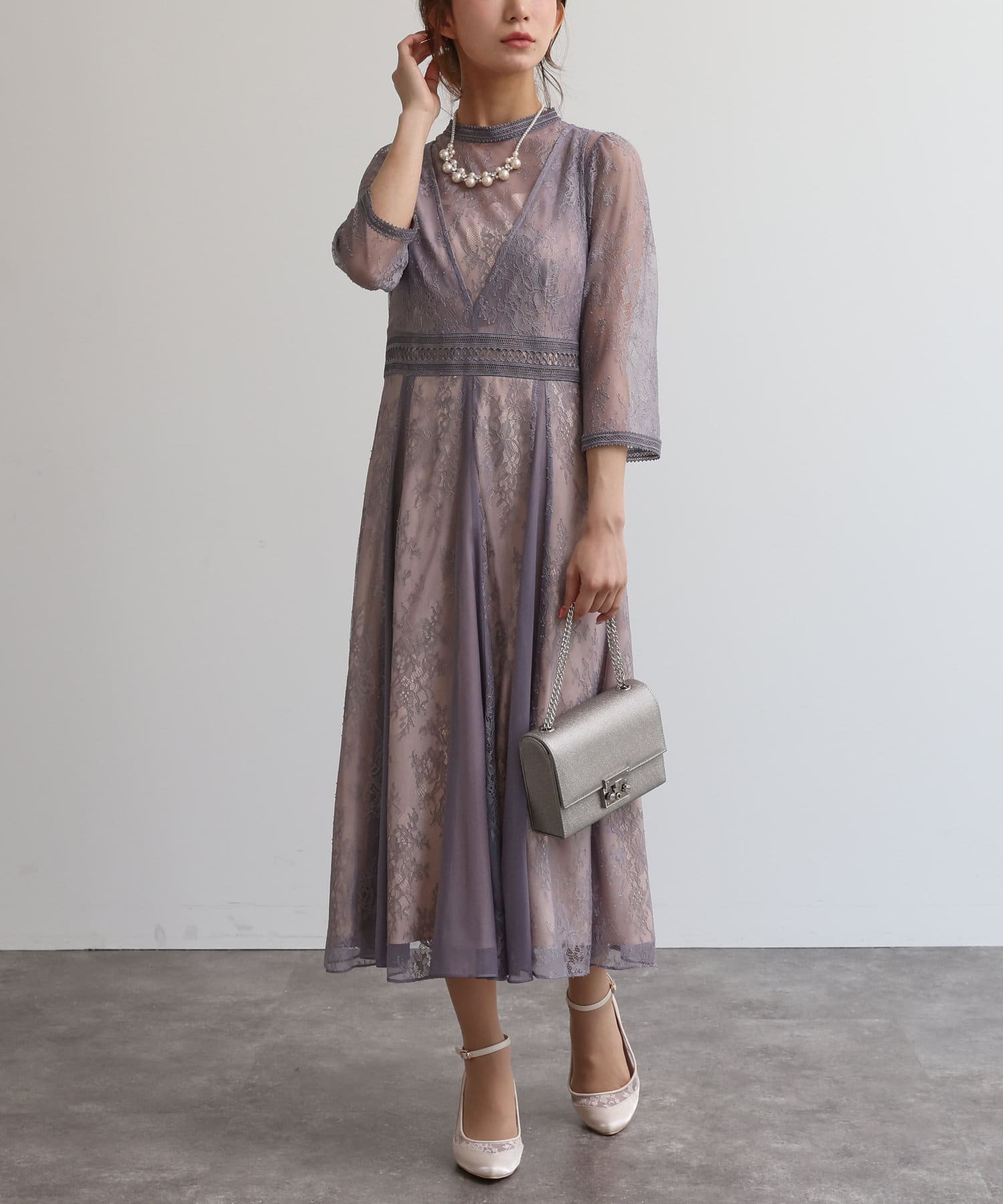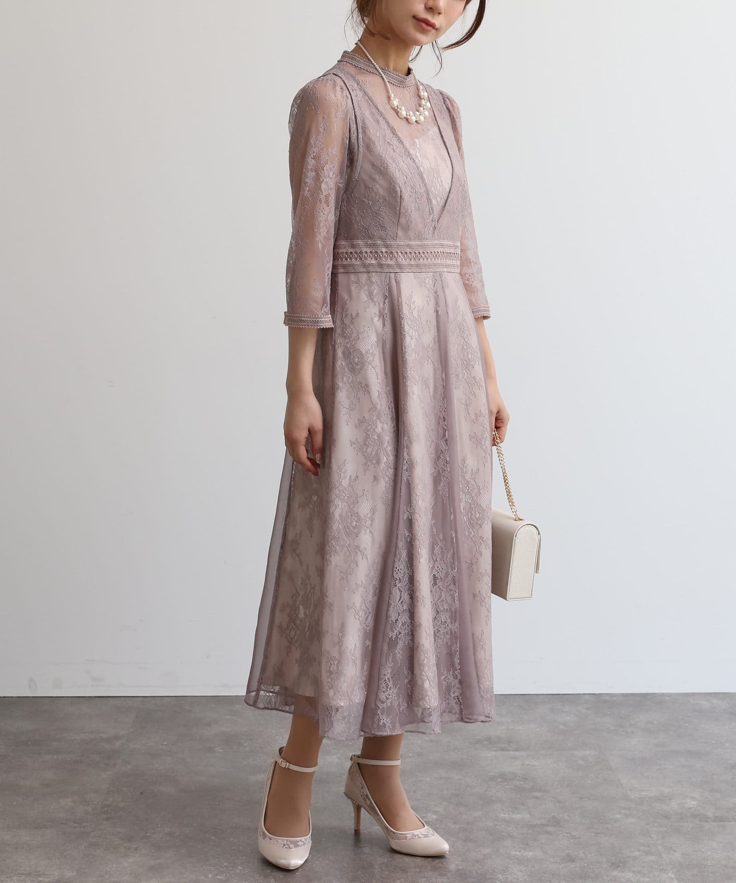 【オケージョン】レイヤードラッセルレースワンピース