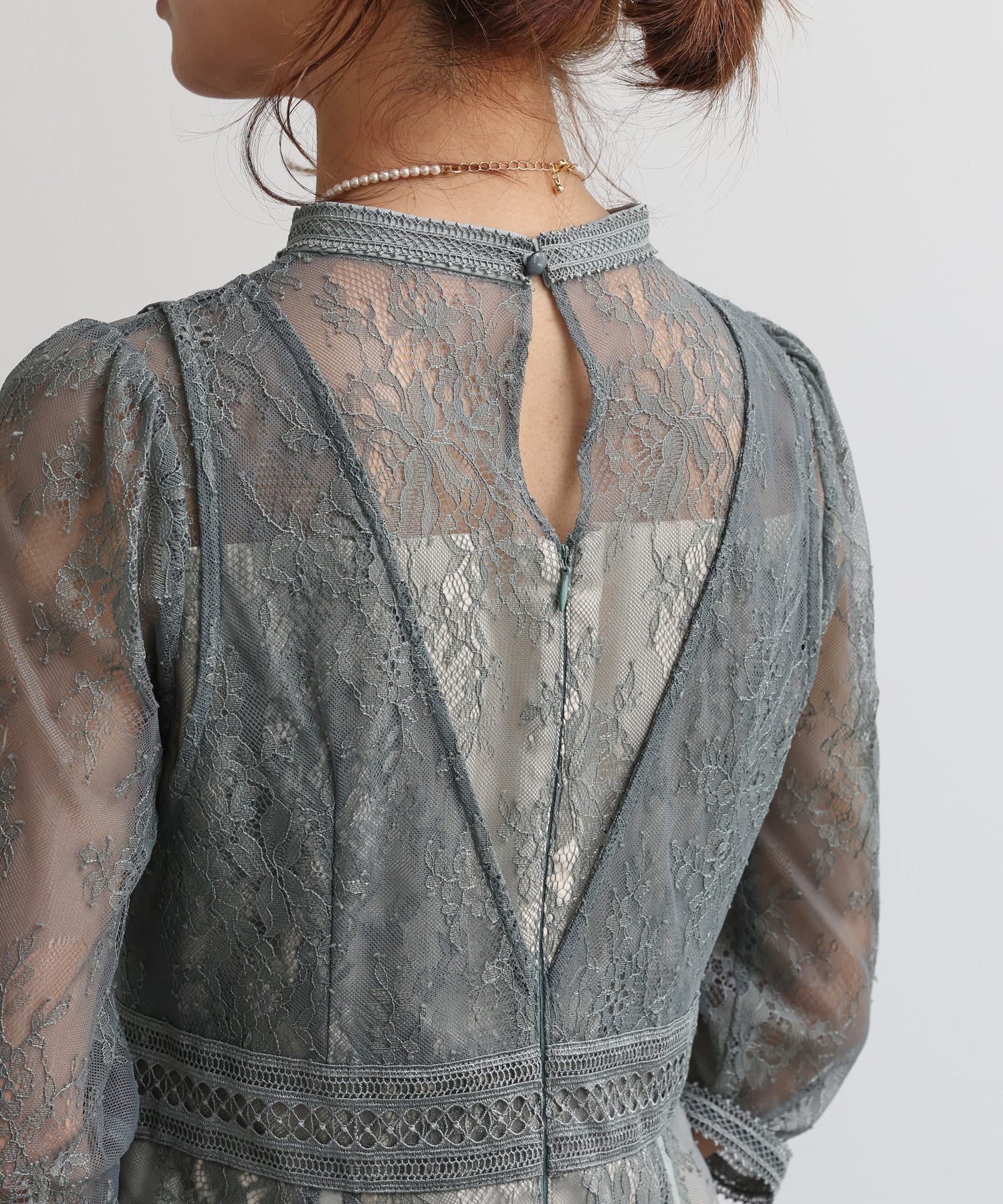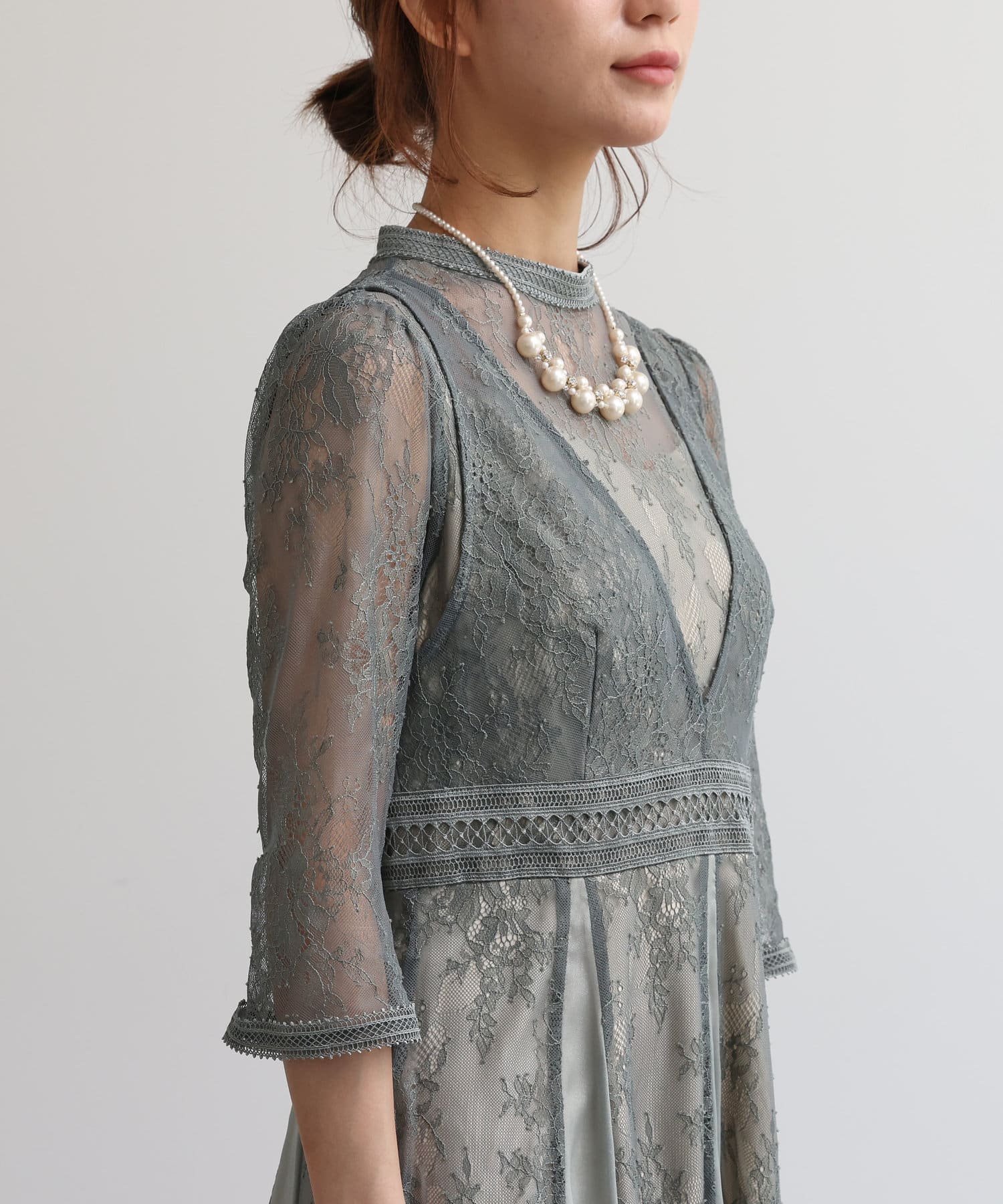 ・袖とデコルテは品のある透け感が魅力的です。