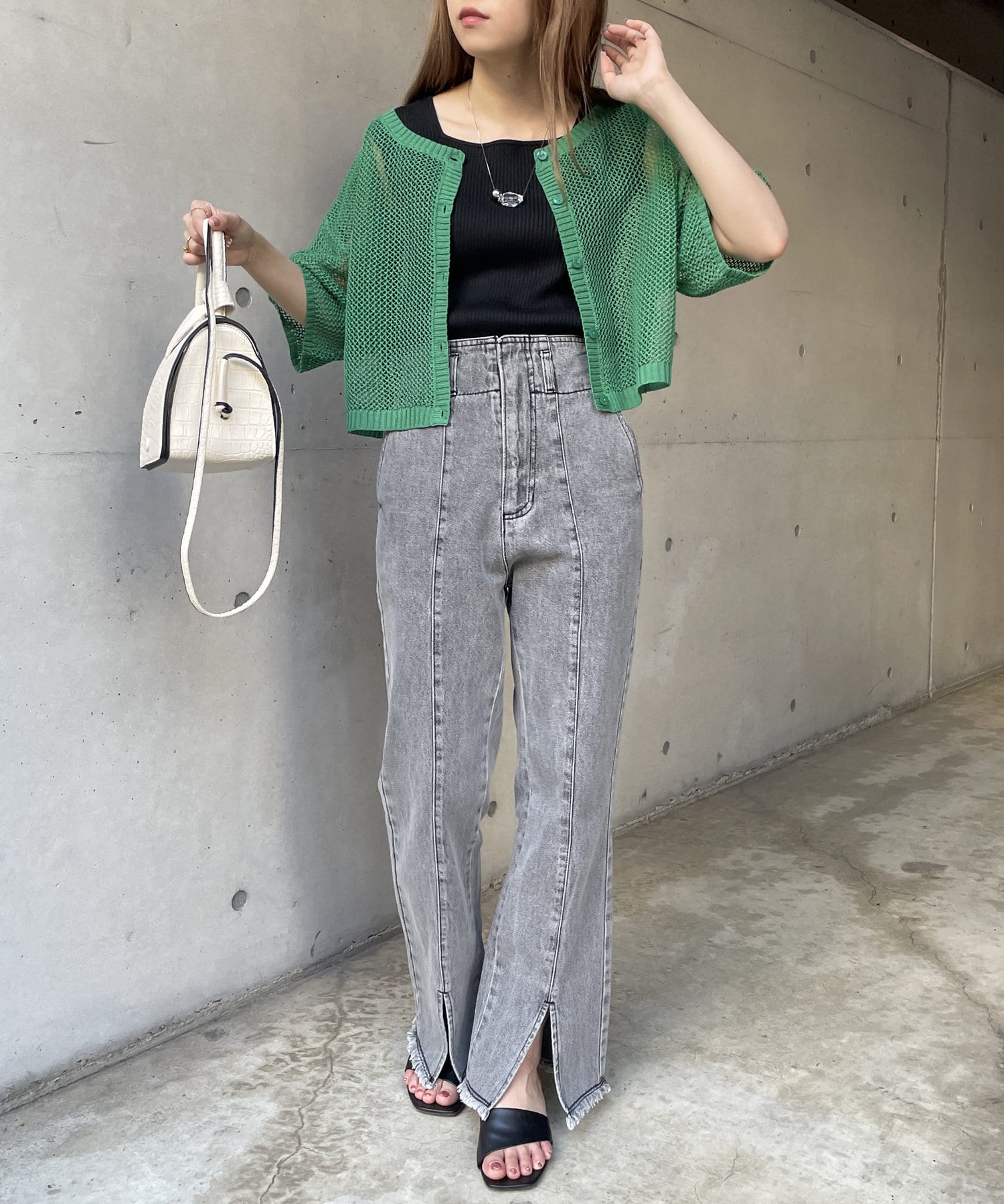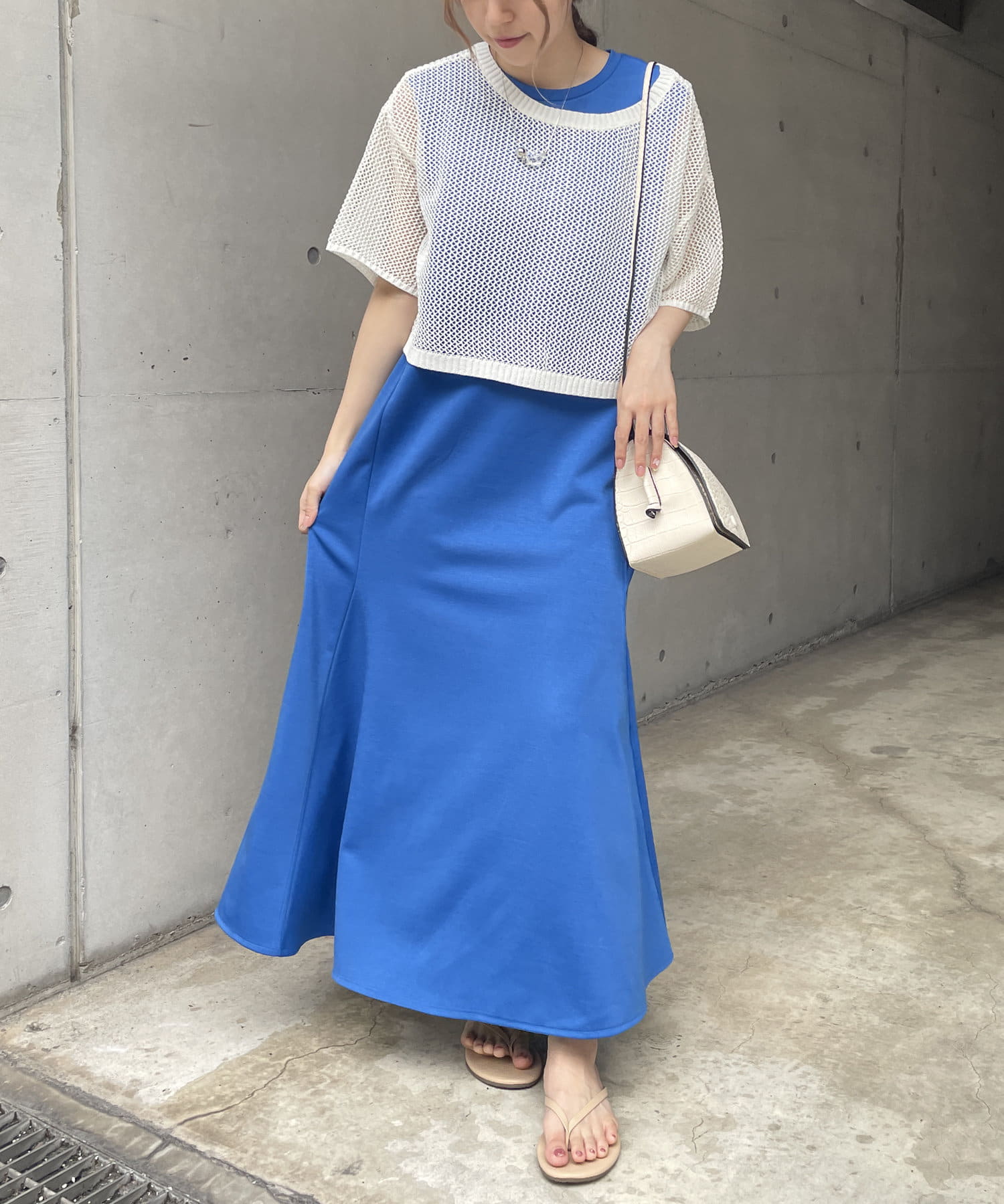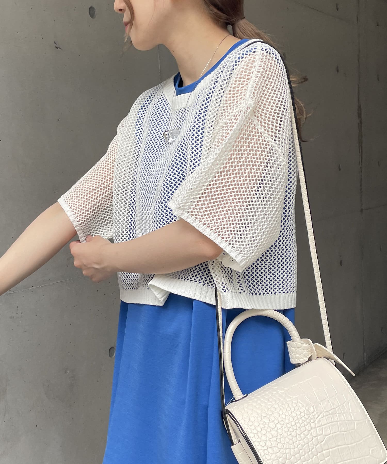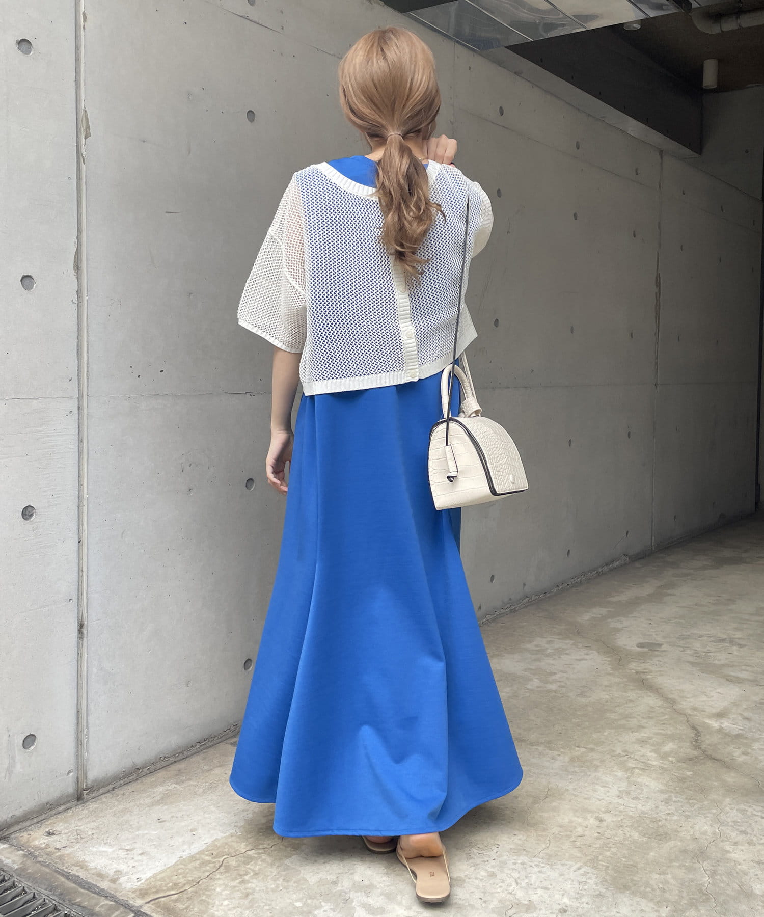 ニットタンクトップやキャミワンピースの上に羽織ると今年らしい着こなしになります。