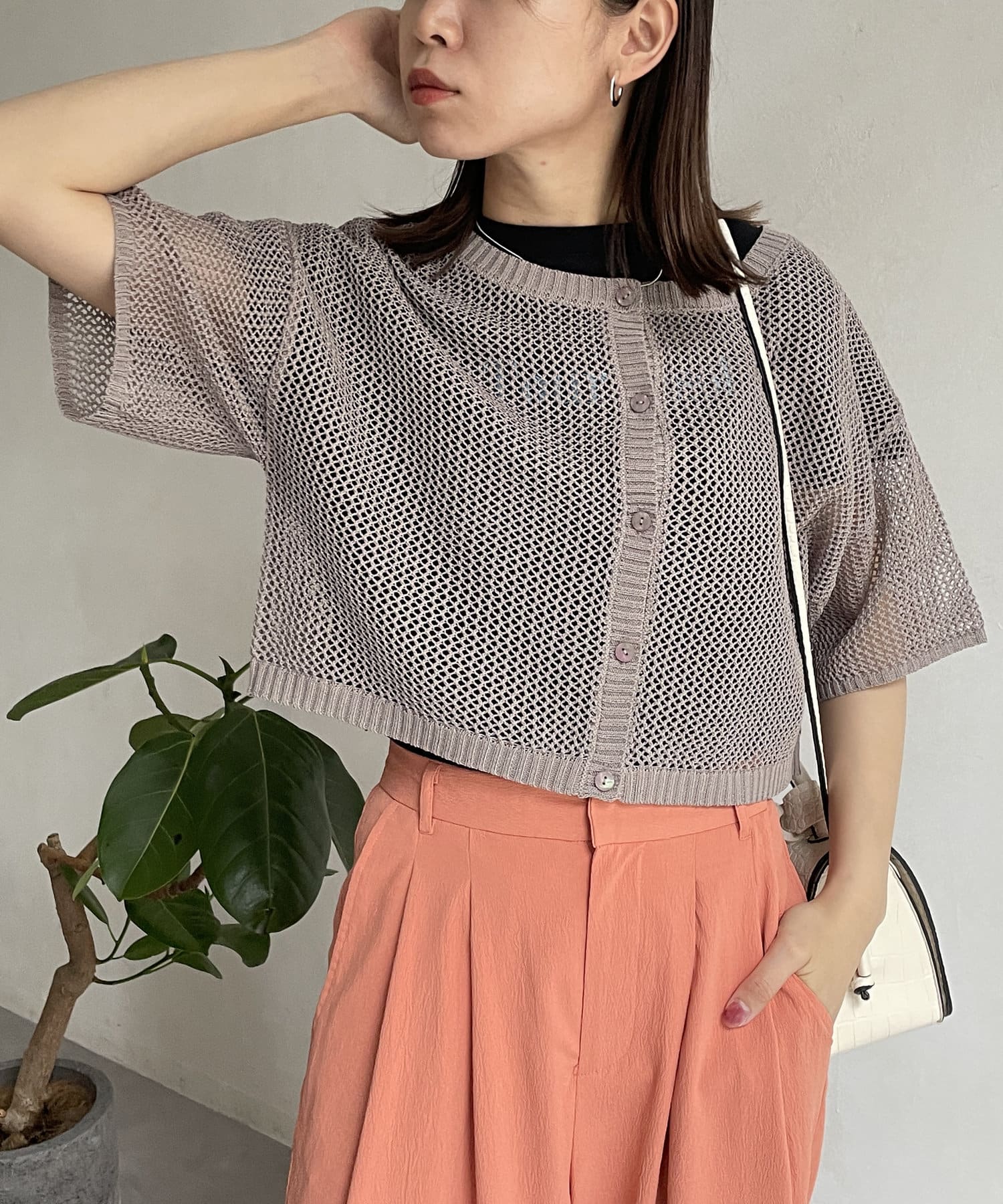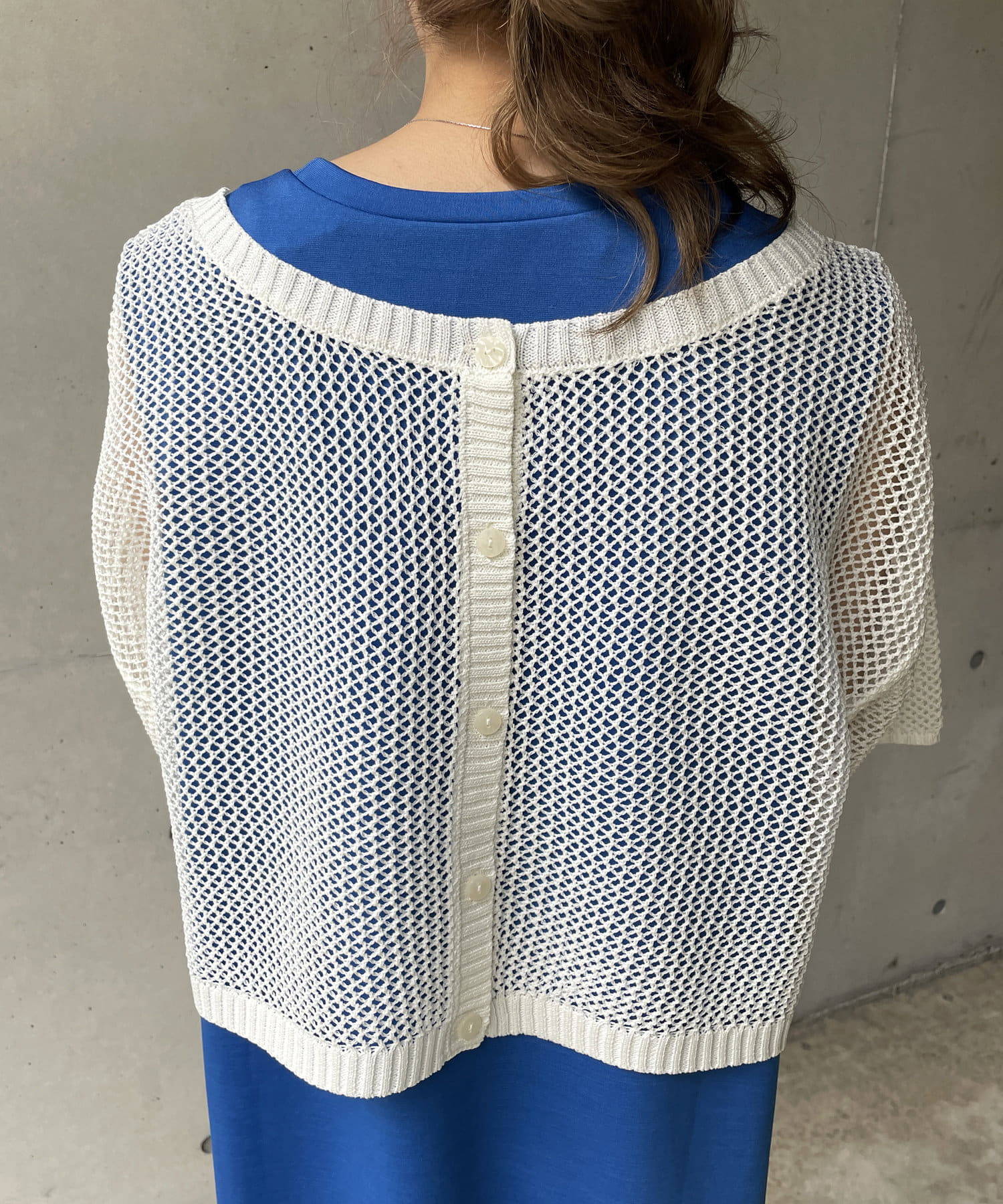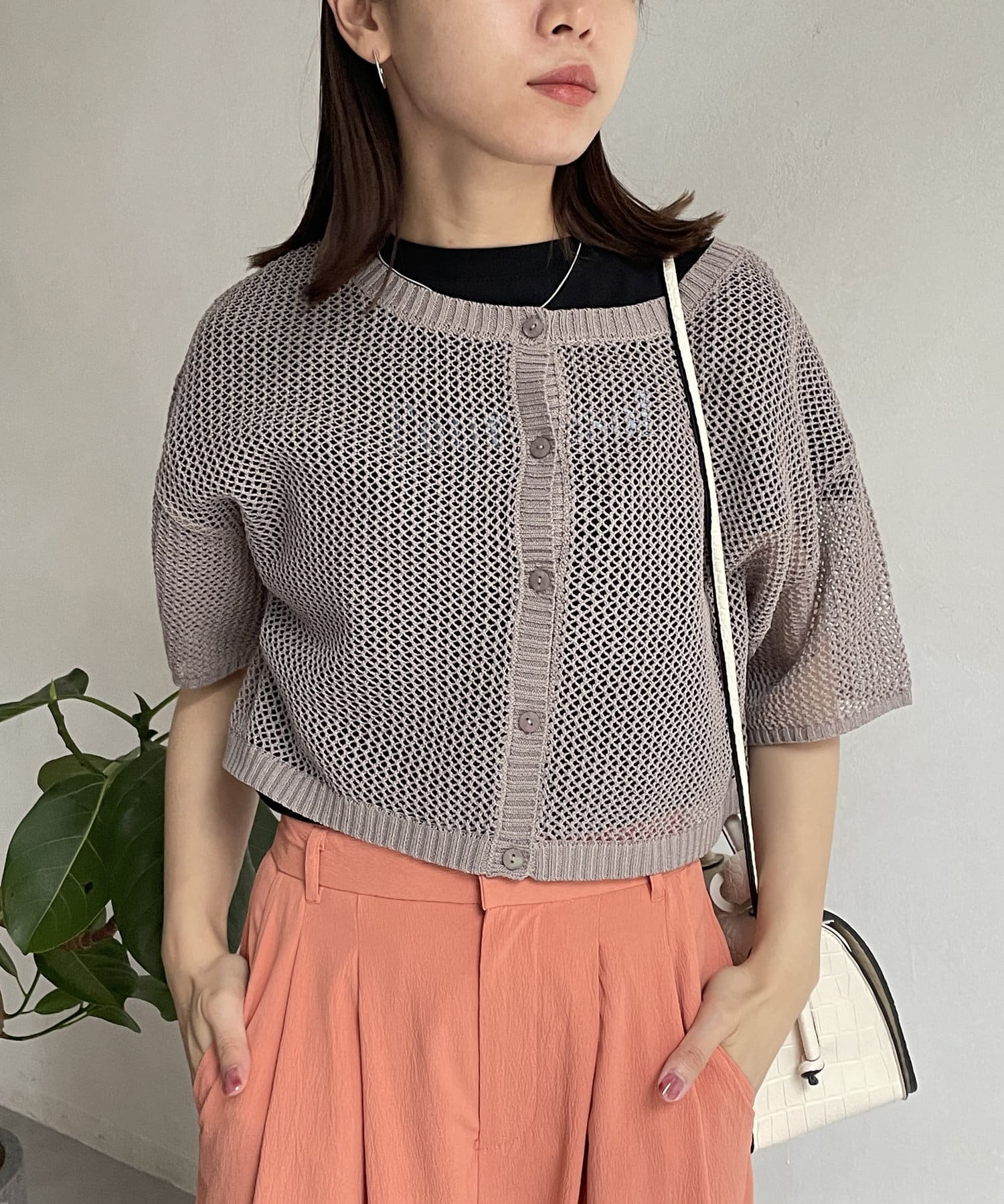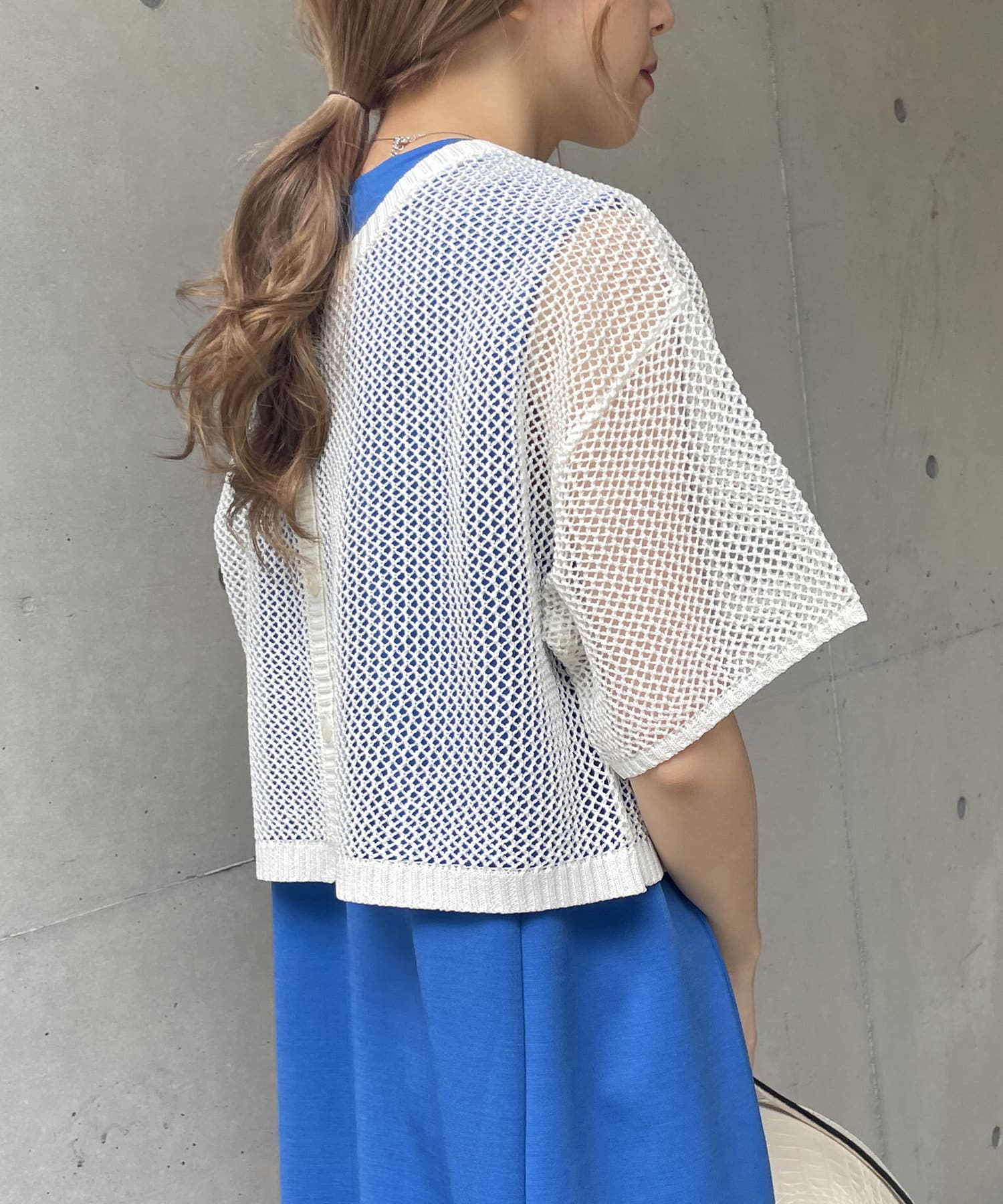 【前後2WAY】麻タッチメッシュ短丈半袖カーディガン