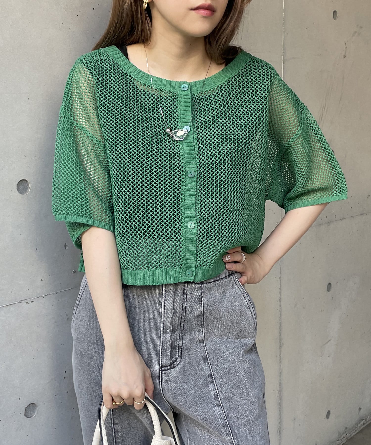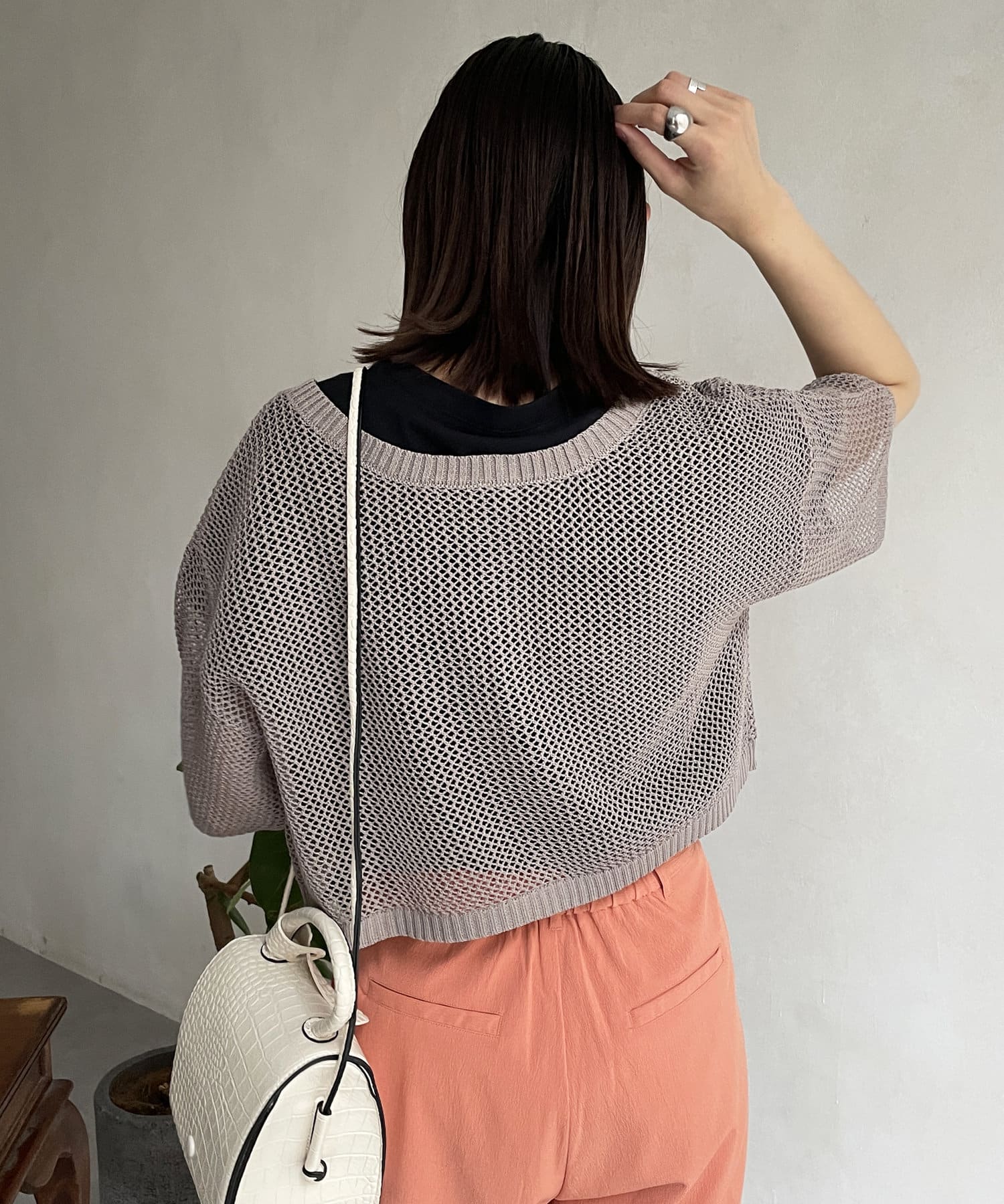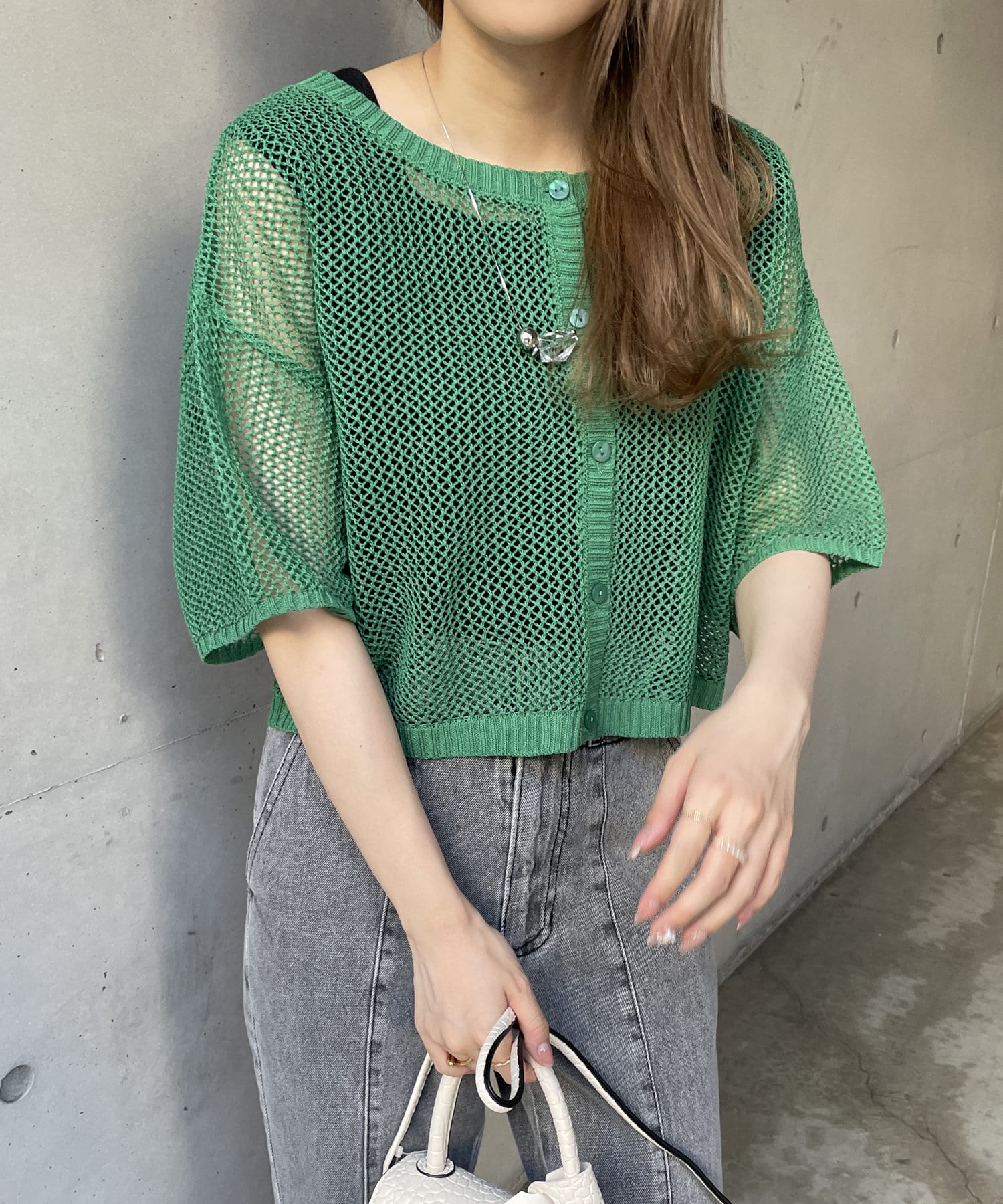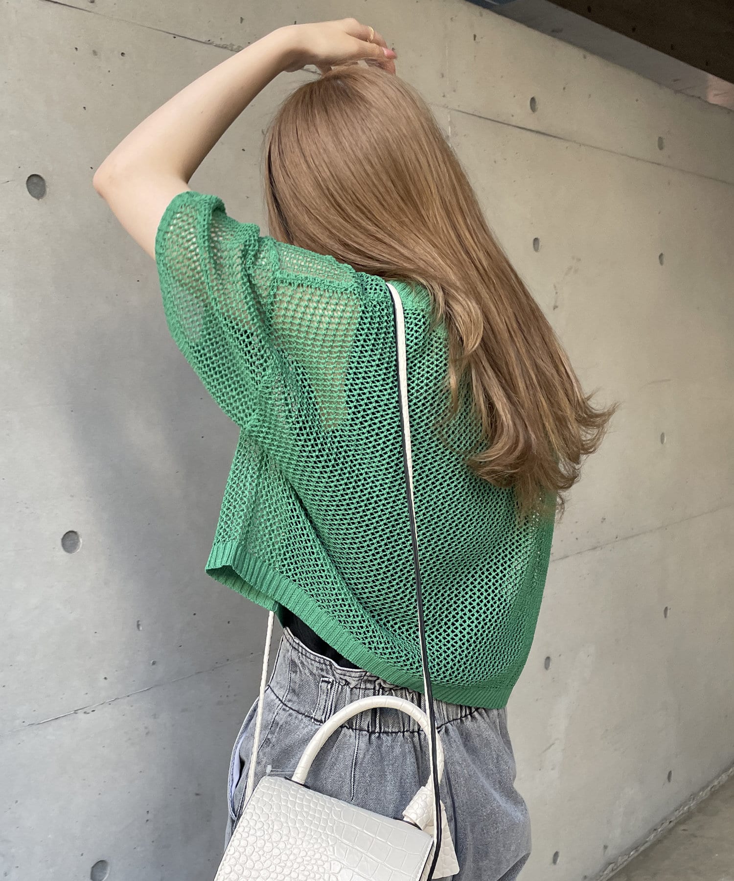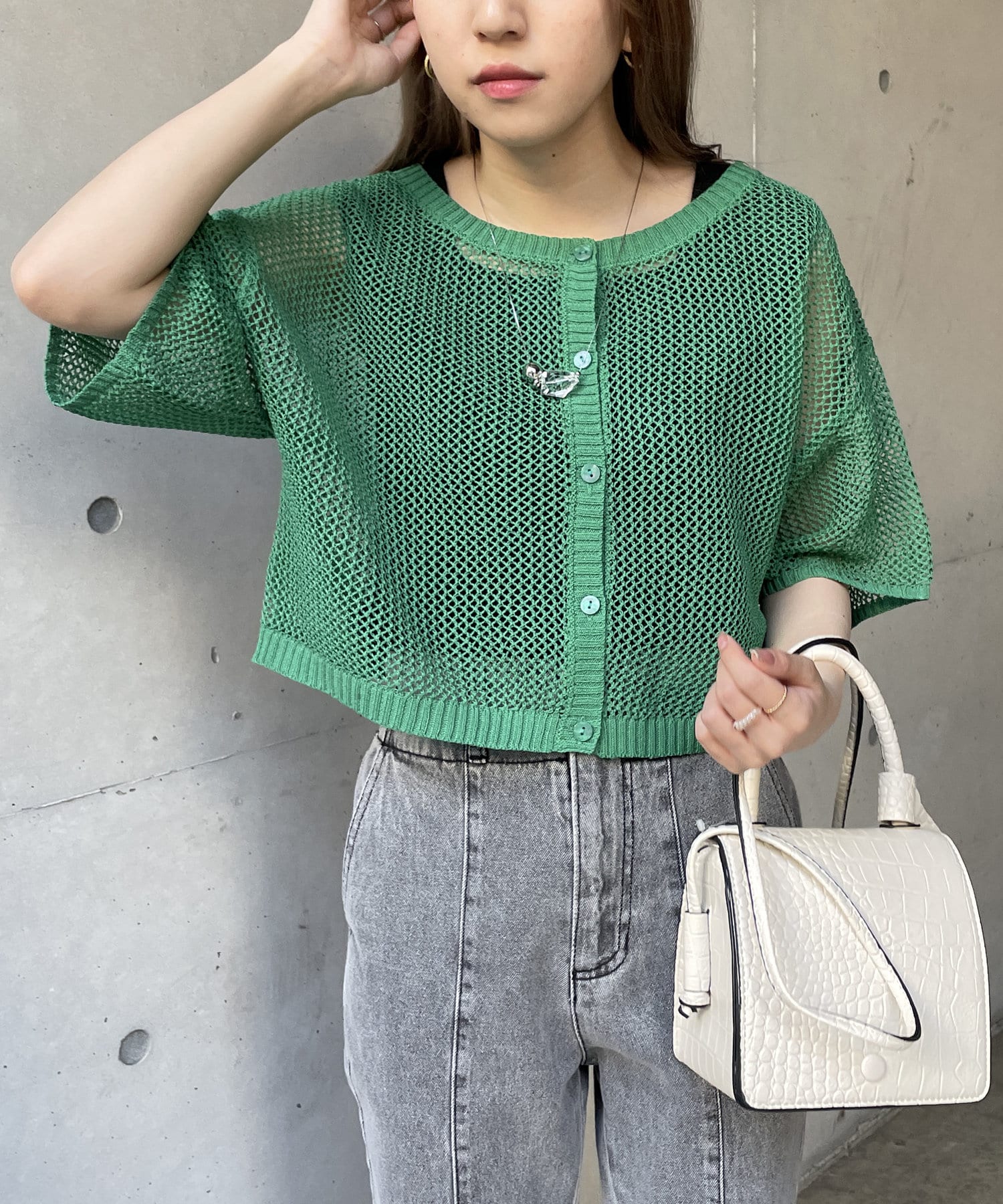 【前後2WAY】麻タッチメッシュ短丈半袖カーディガン