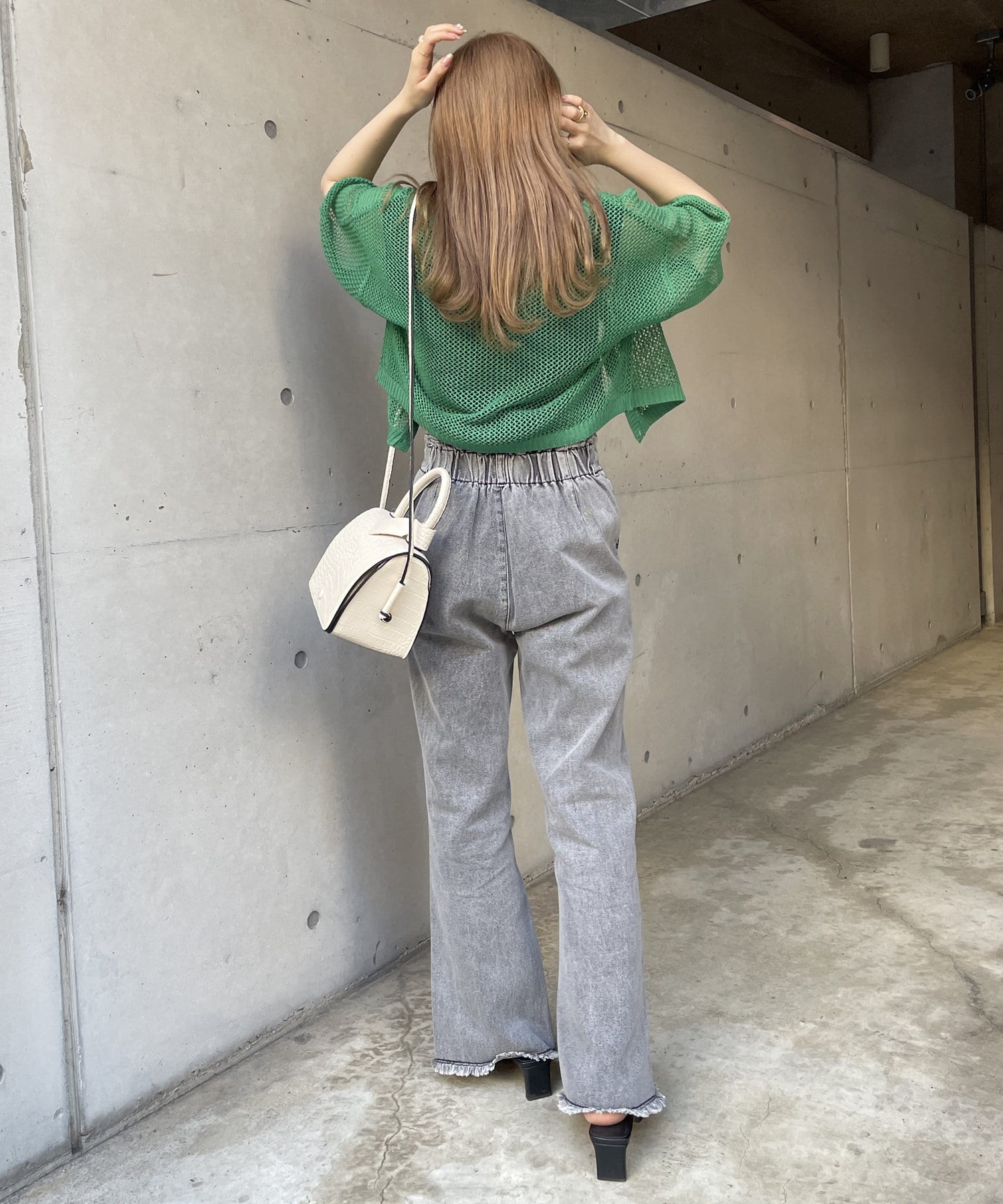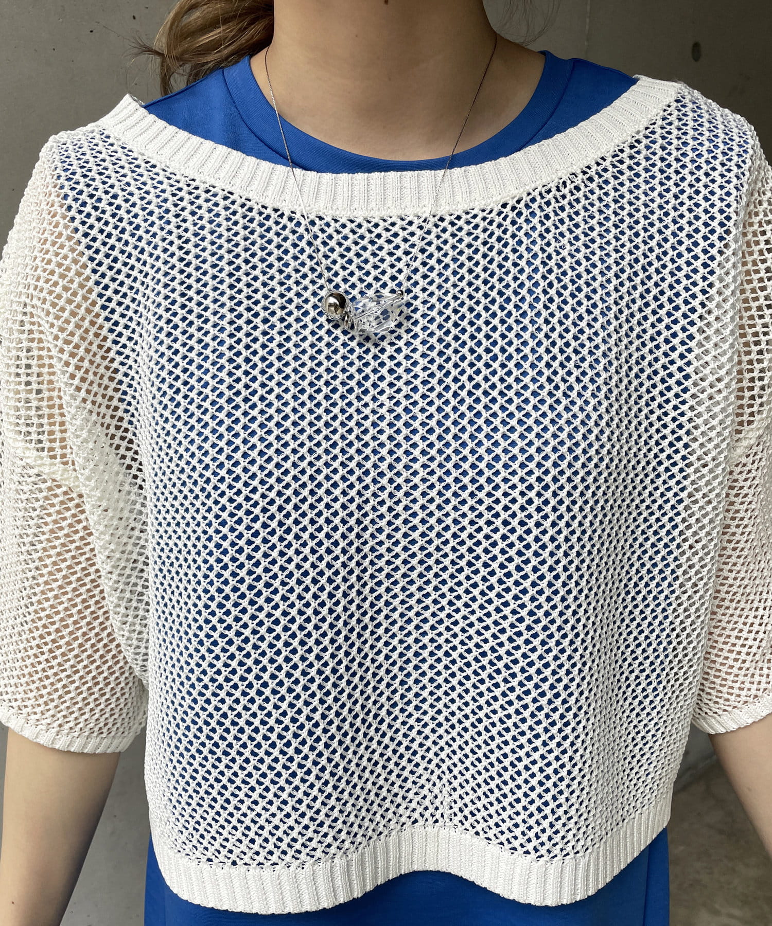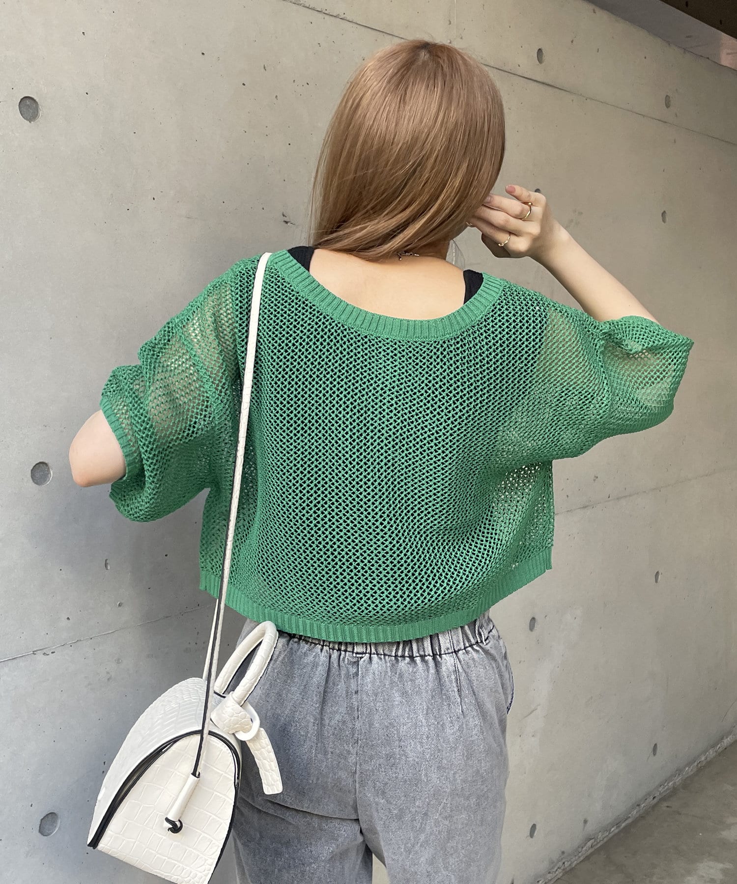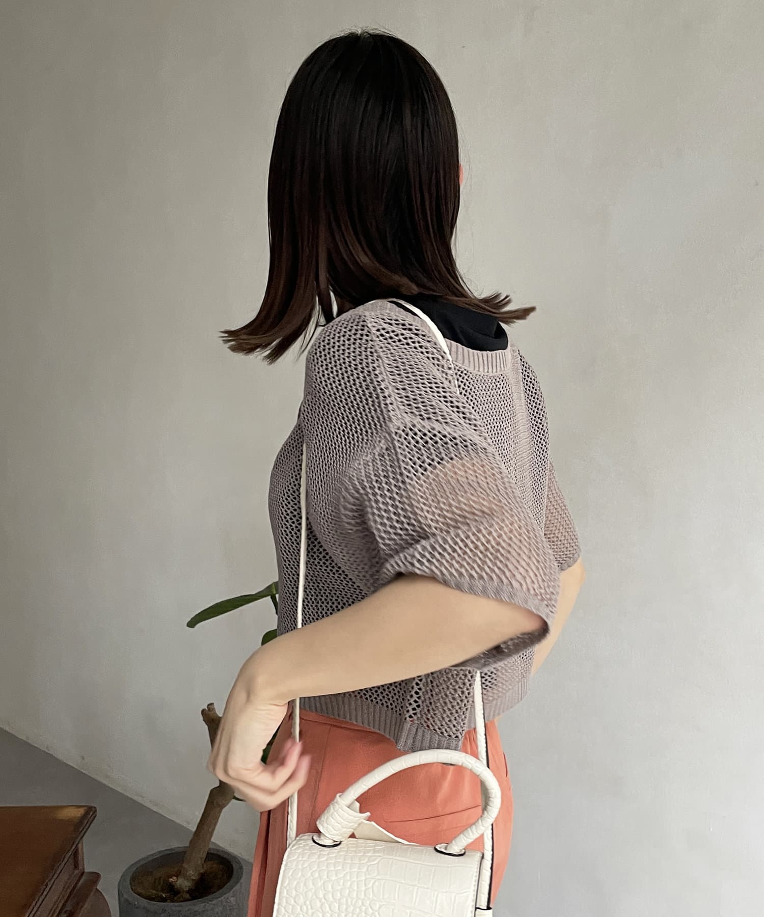 【前後2WAY】麻タッチメッシュ短丈半袖カーディガン