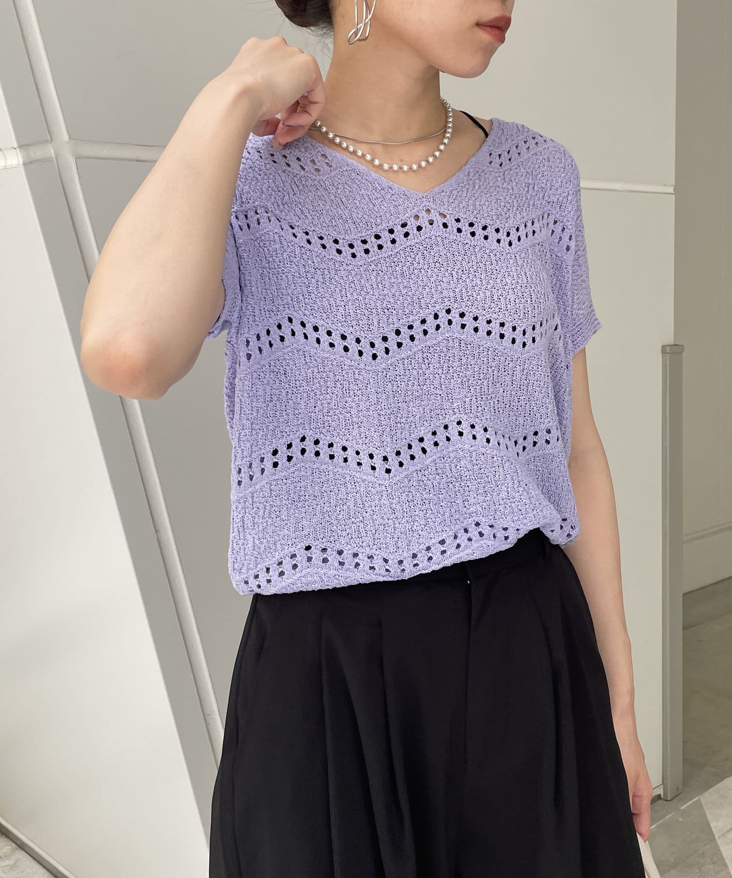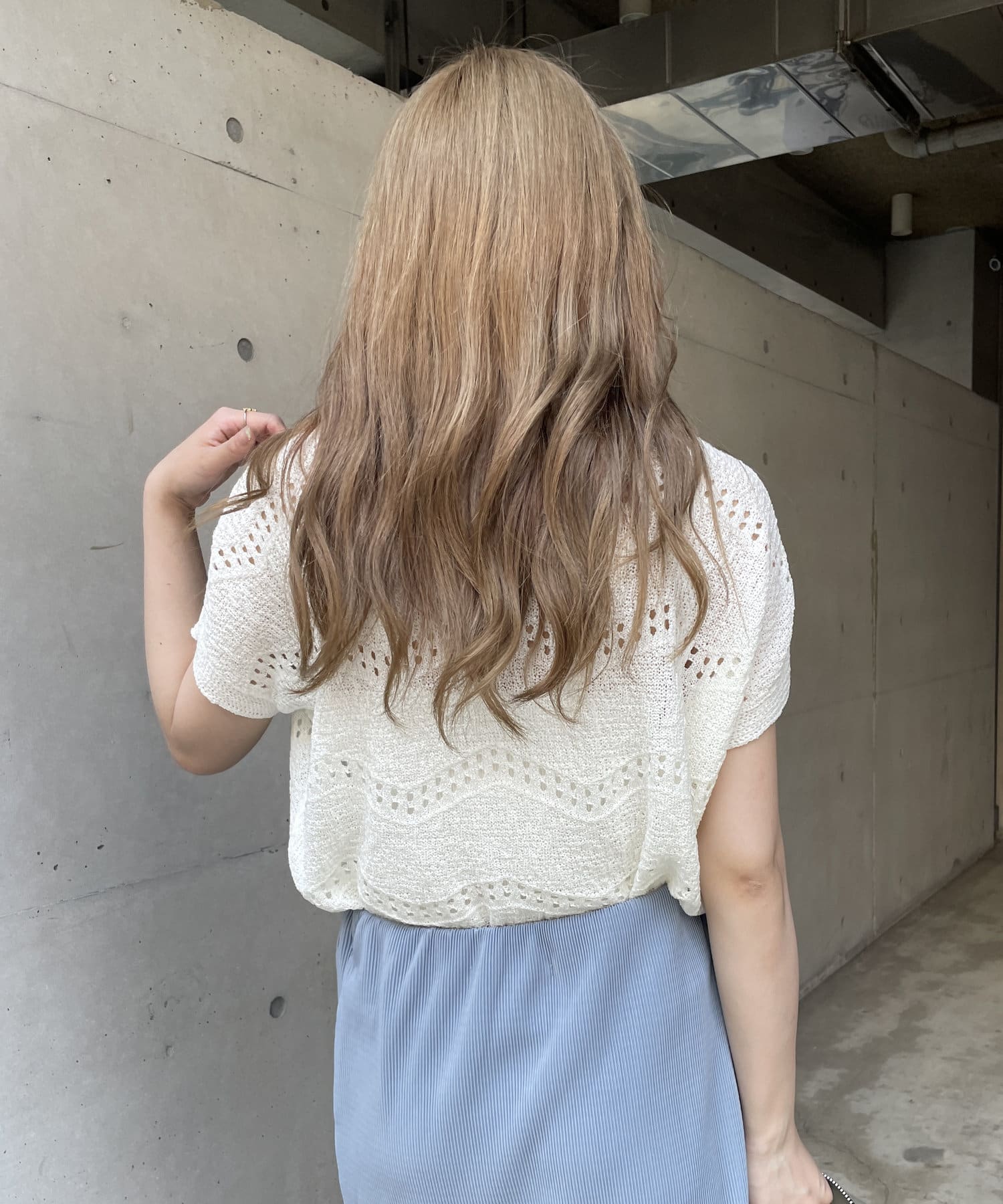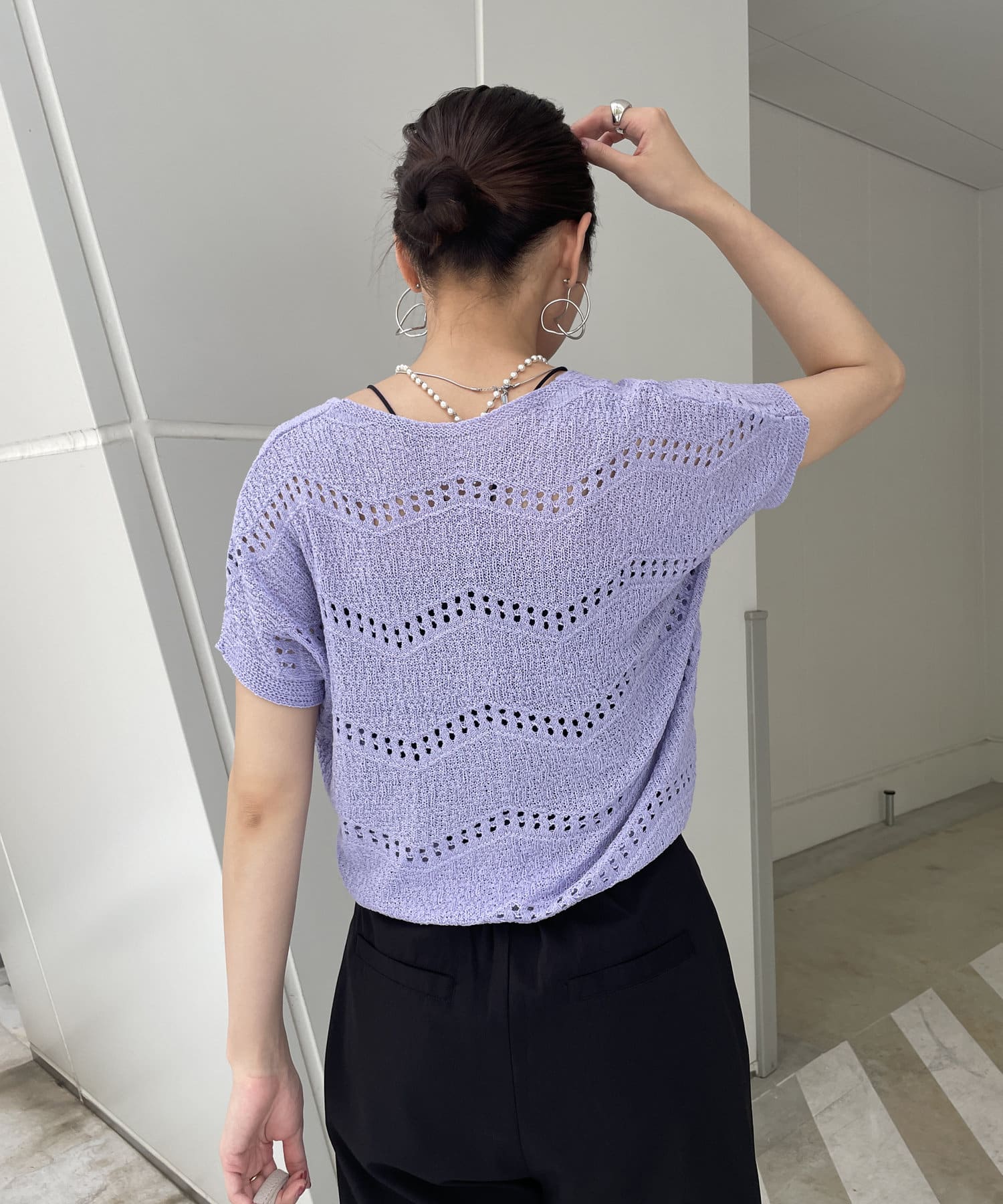 #サマーニット #透かし編み #ウェーブ柄 #短丈