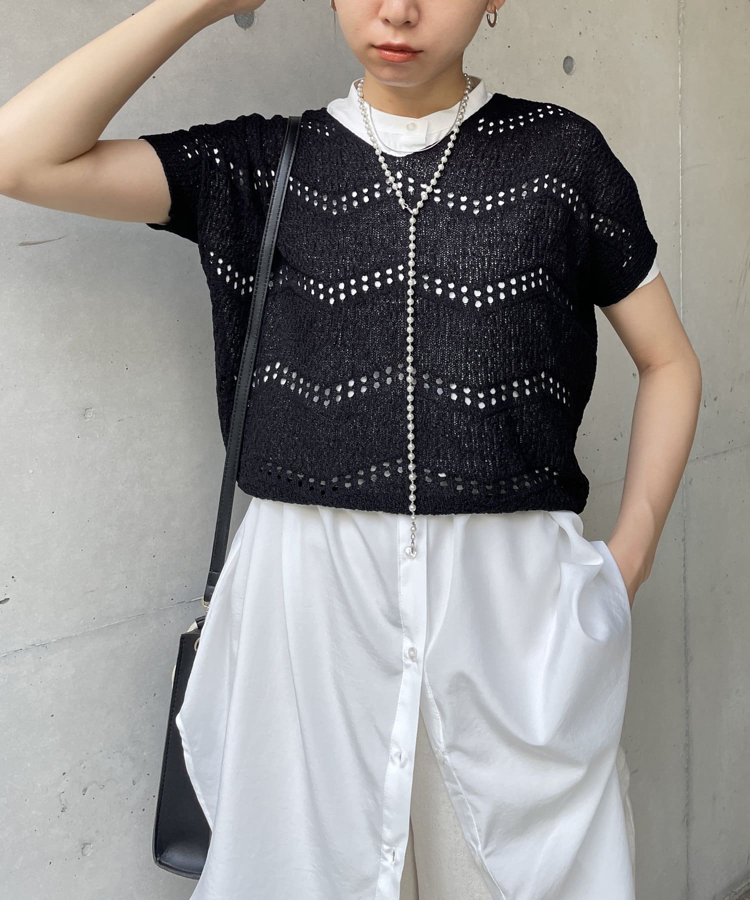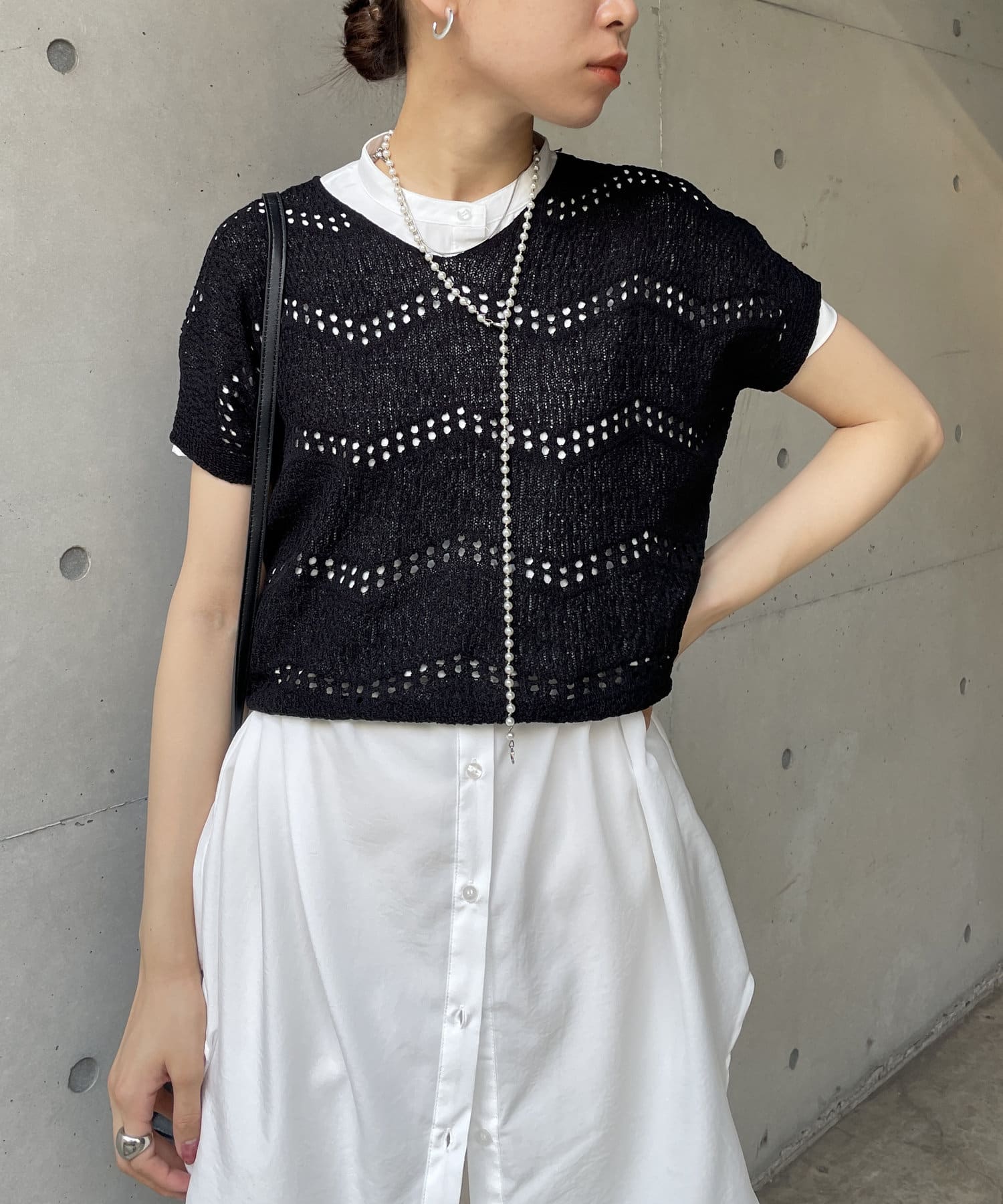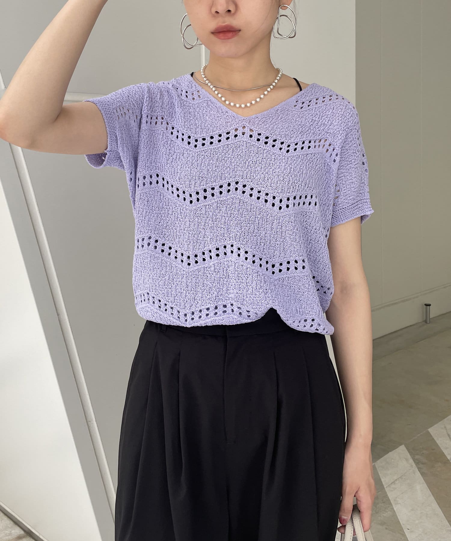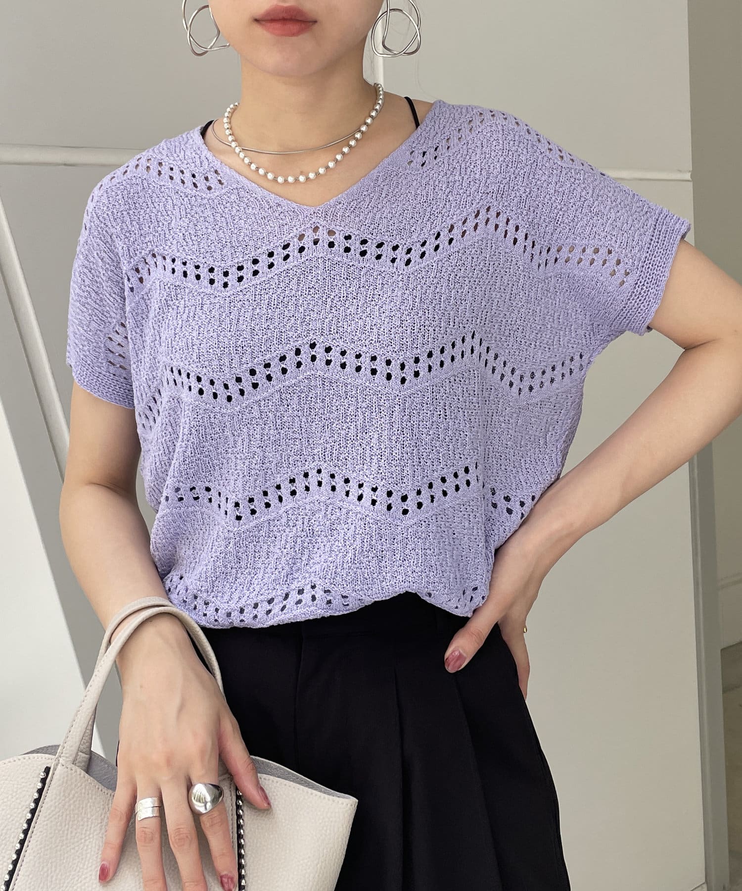 #サマーニット #透かし編み #ウェーブ柄 #短丈
