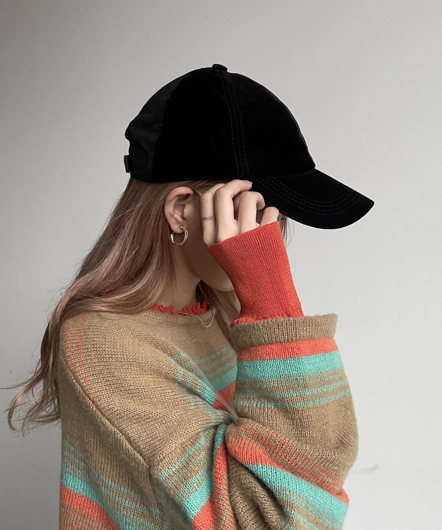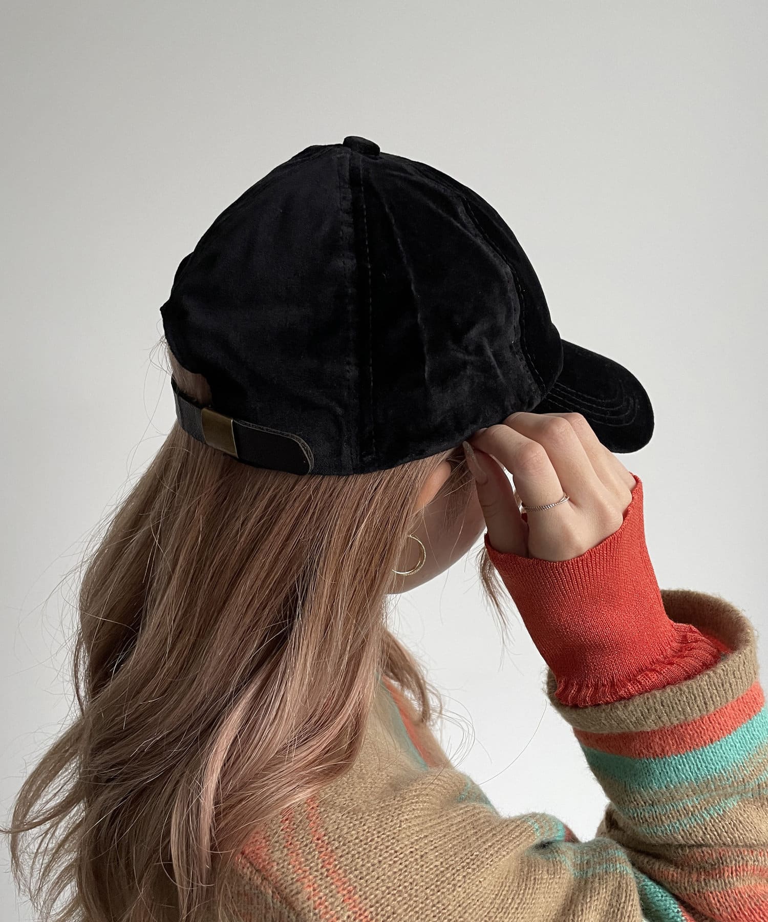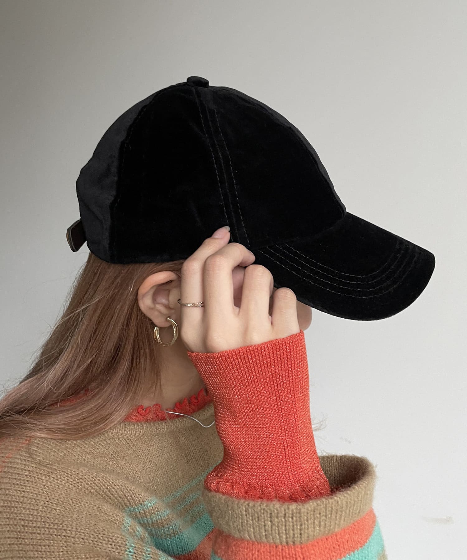 ・秋冬コーデにピッタリなベロア生地のキャップ。
