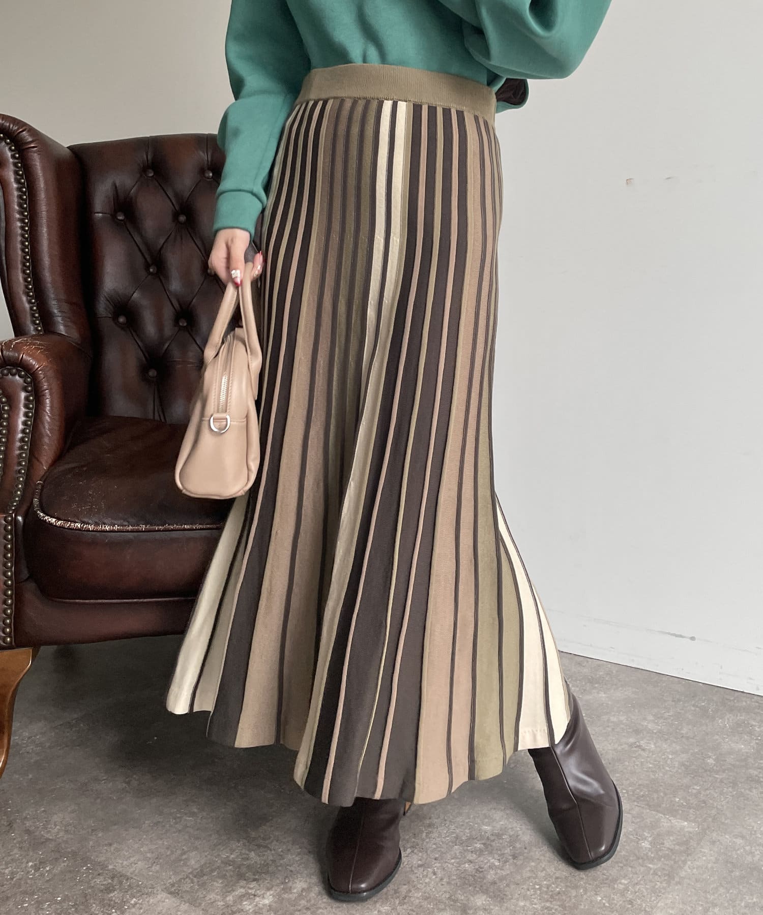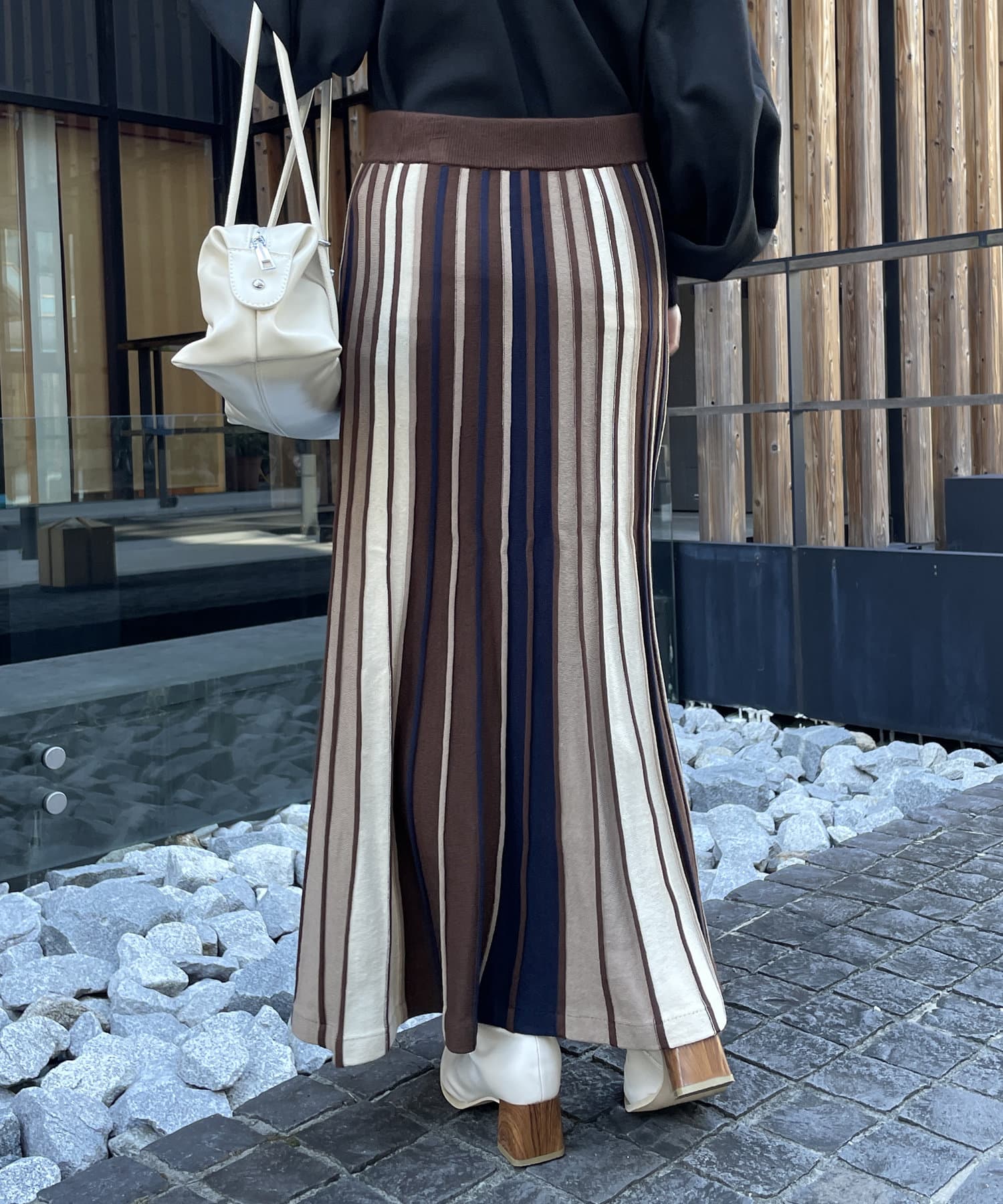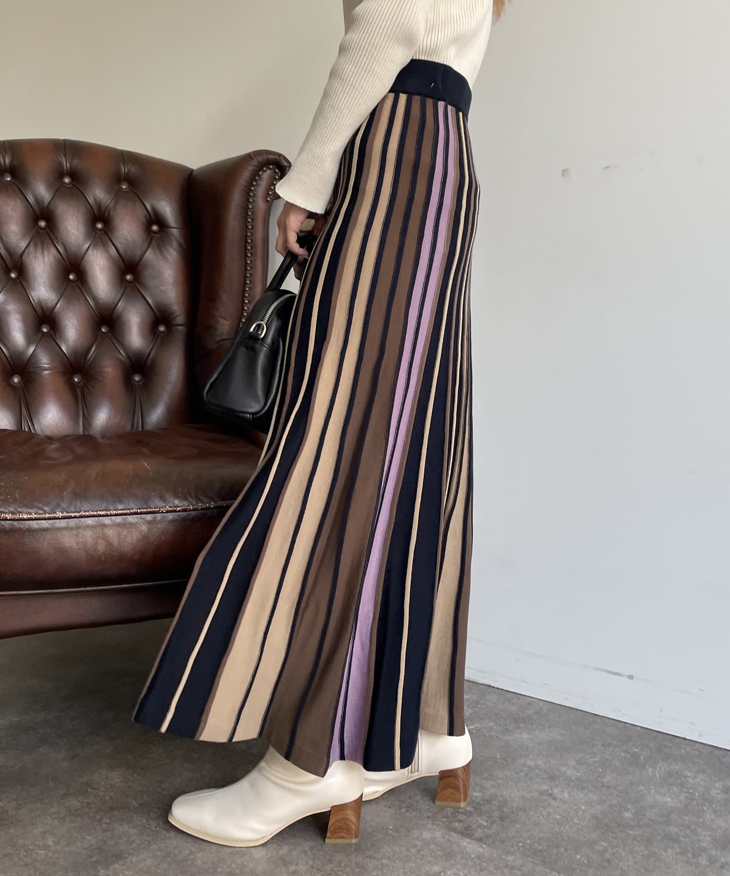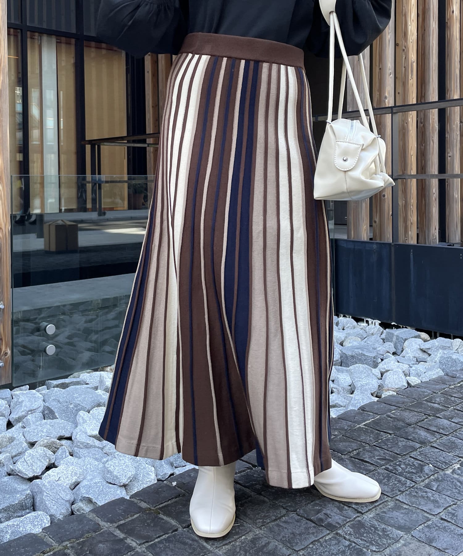 TOP > Thevon. > レディース > スカート > スカート > ストライプ柄ニットフレアスカート