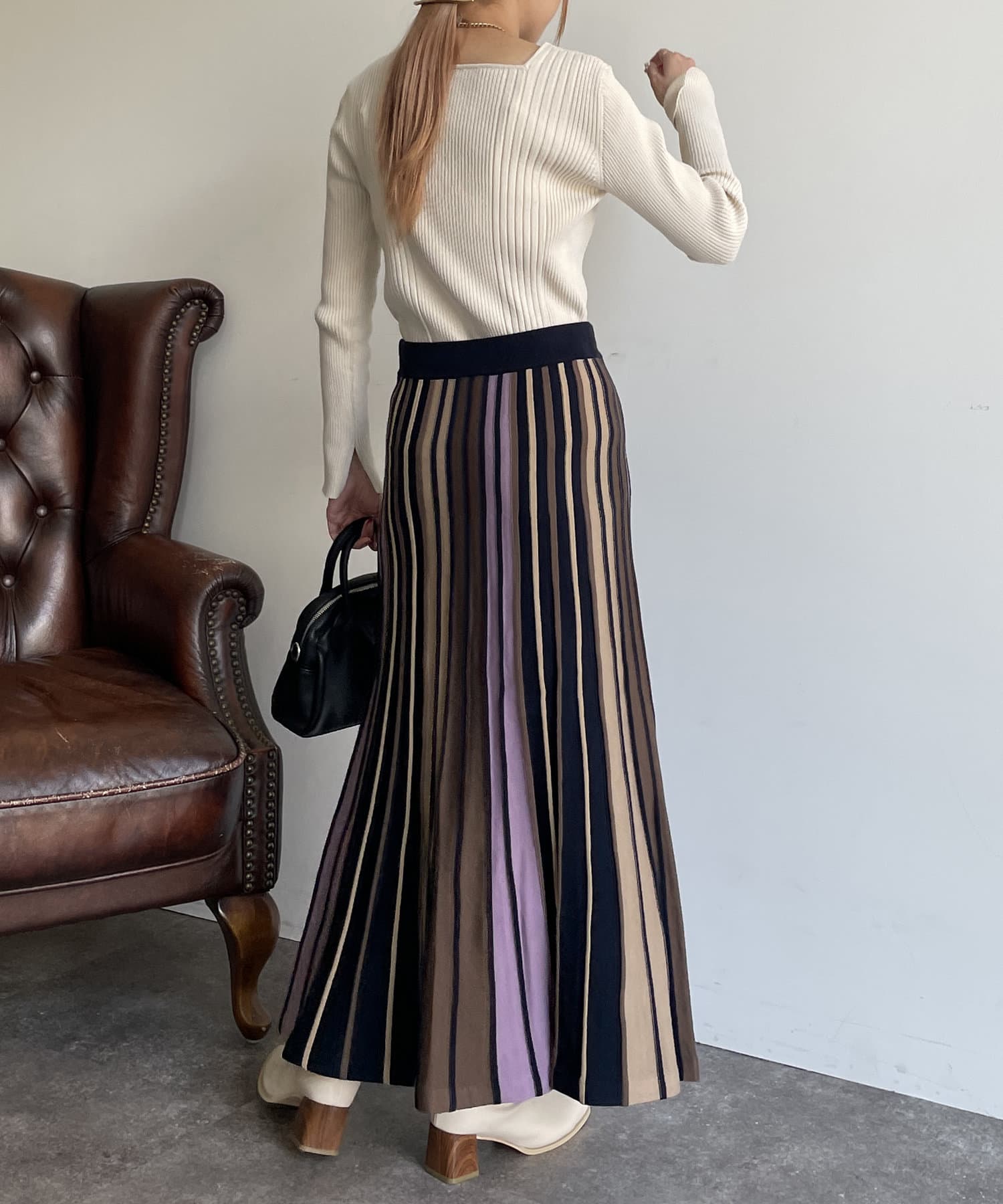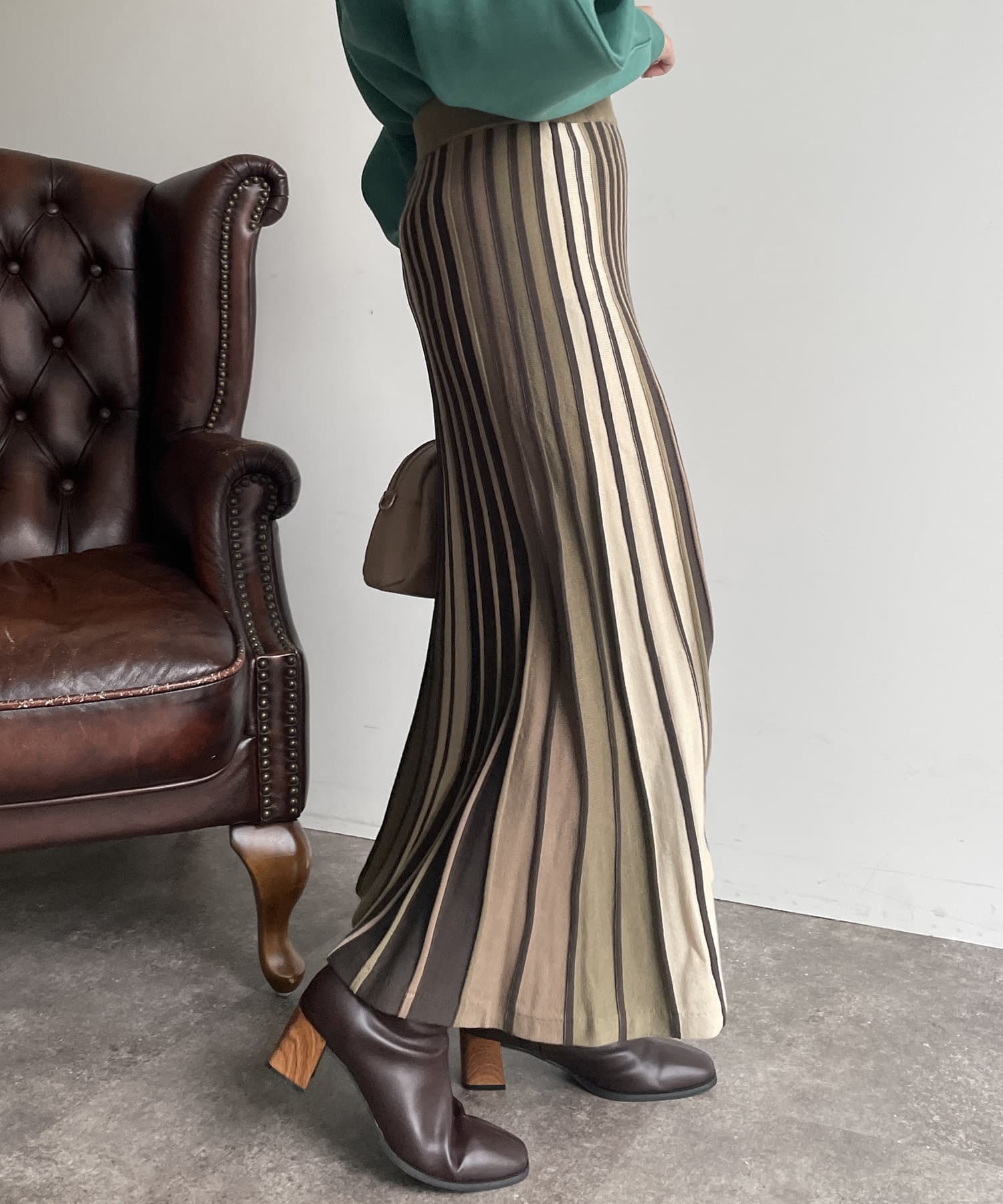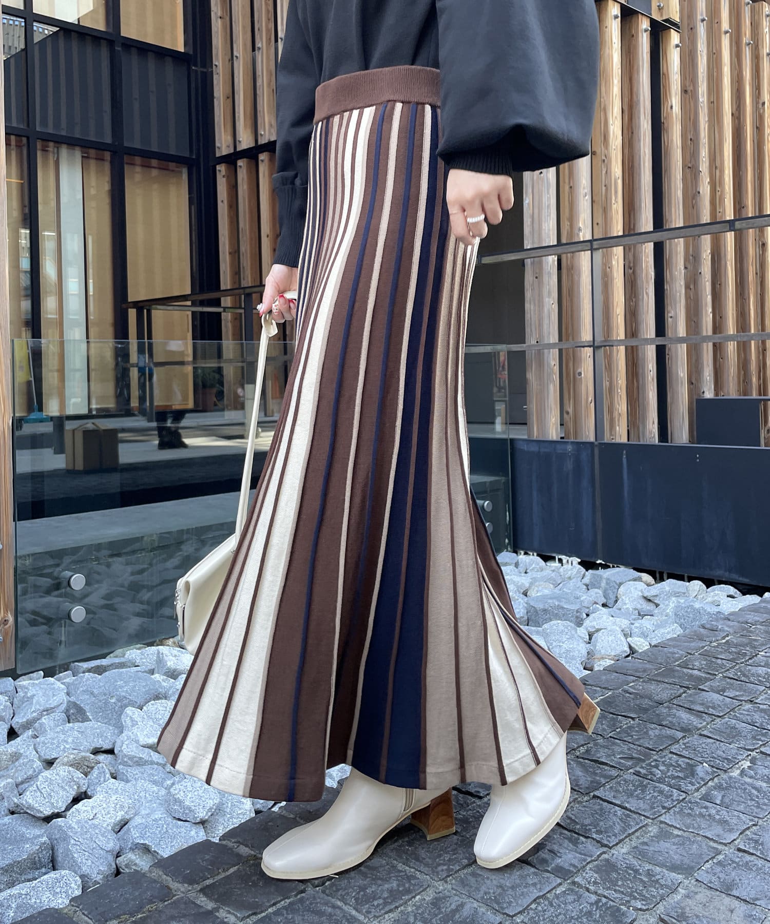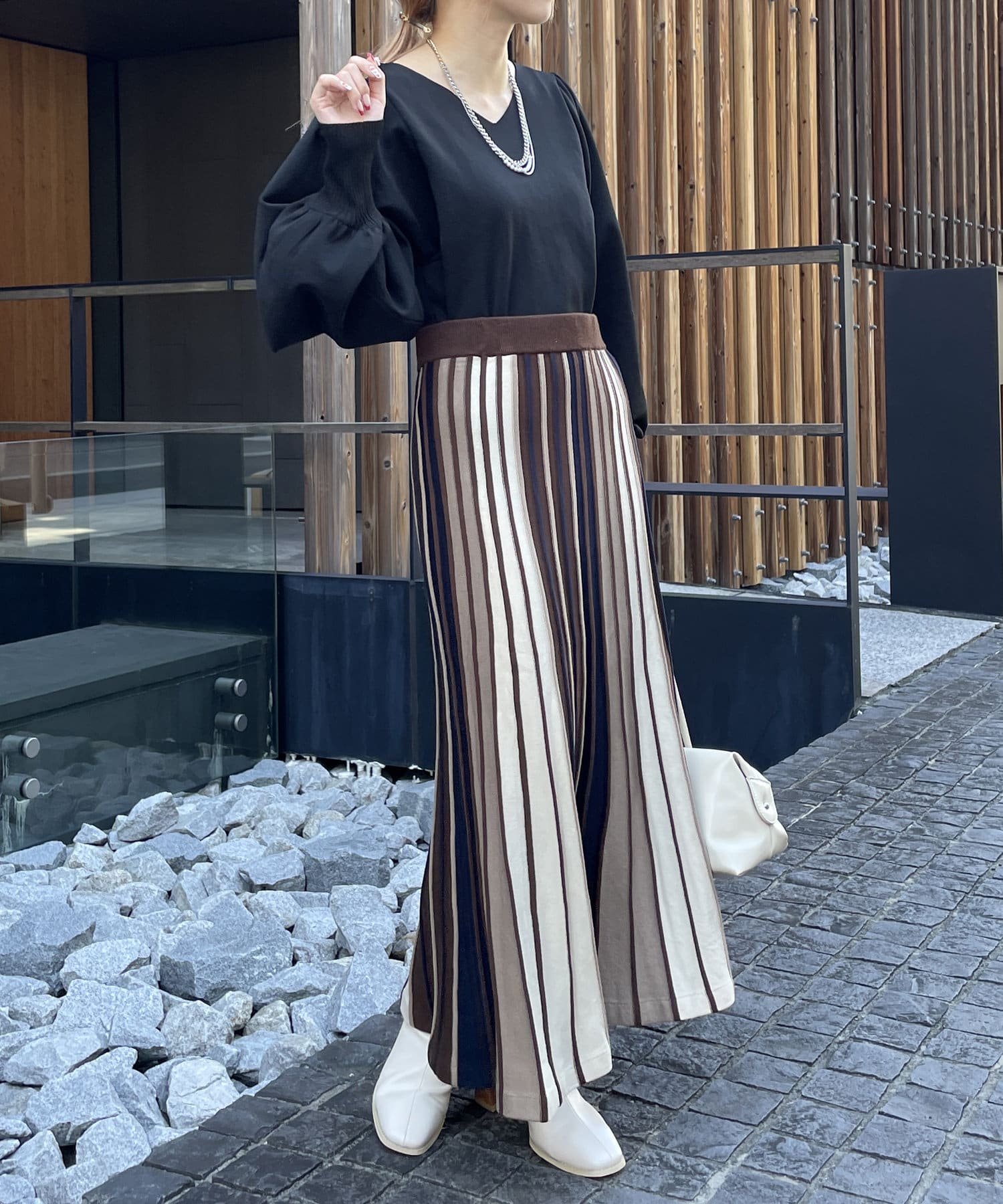 TOP > Thevon. > レディース > スカート > スカート > ストライプ柄ニットフレアスカート