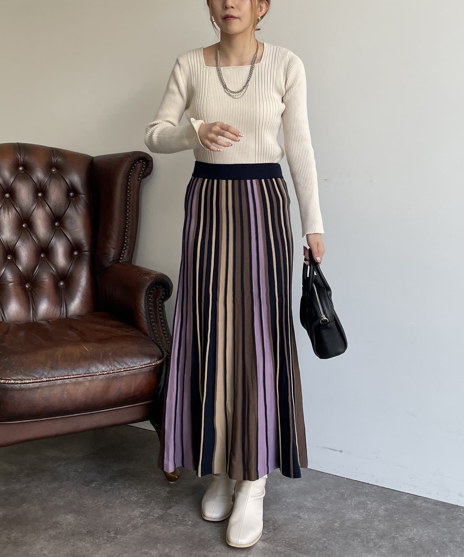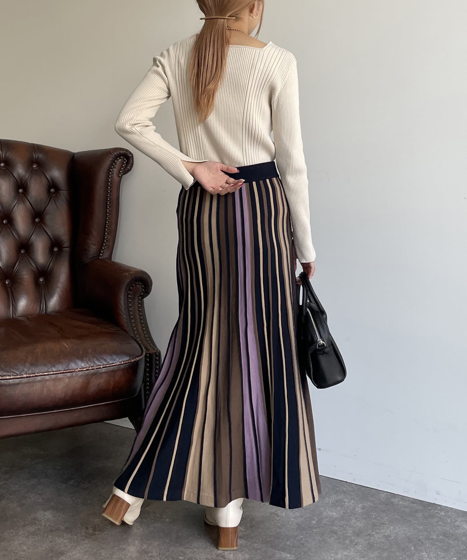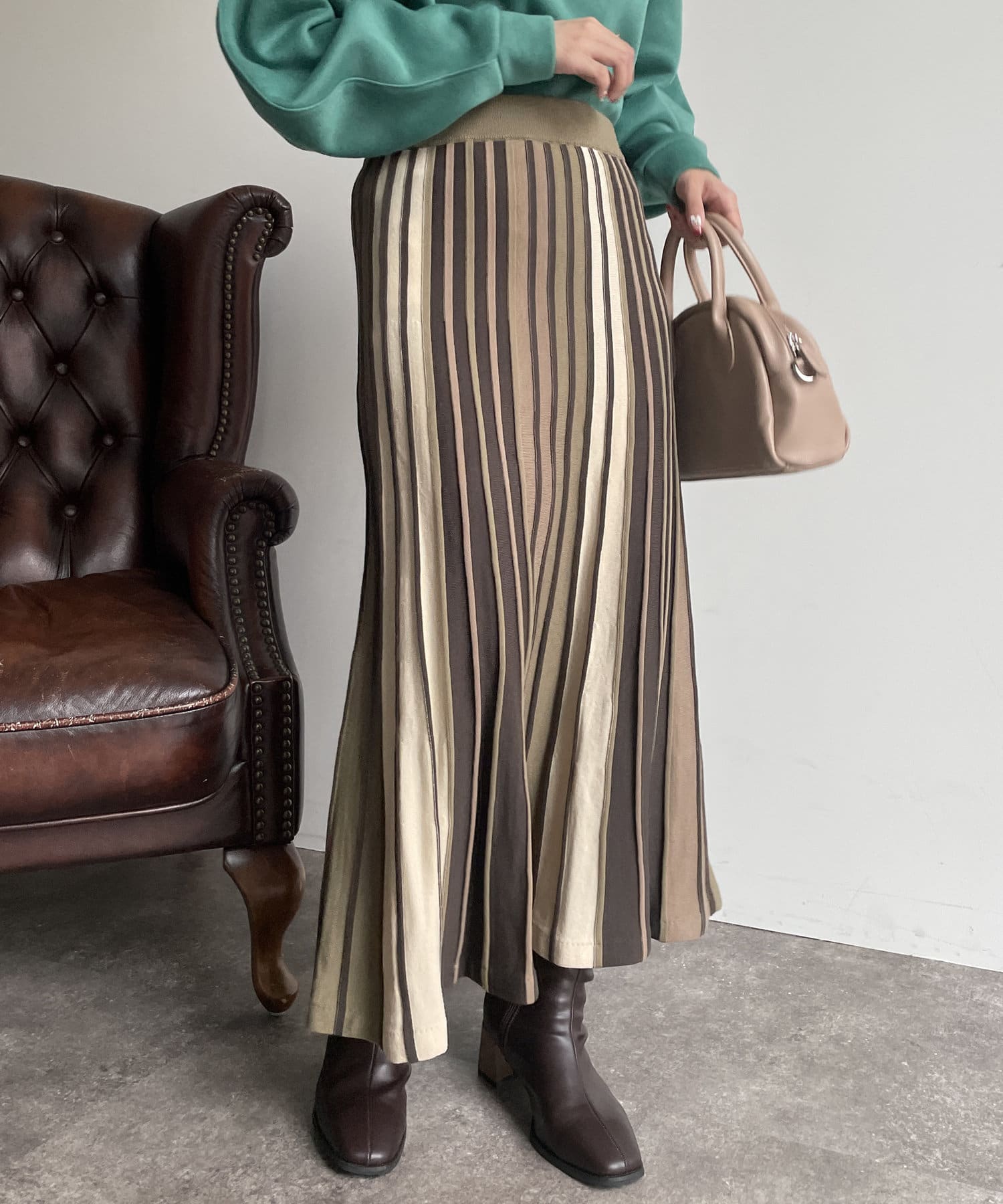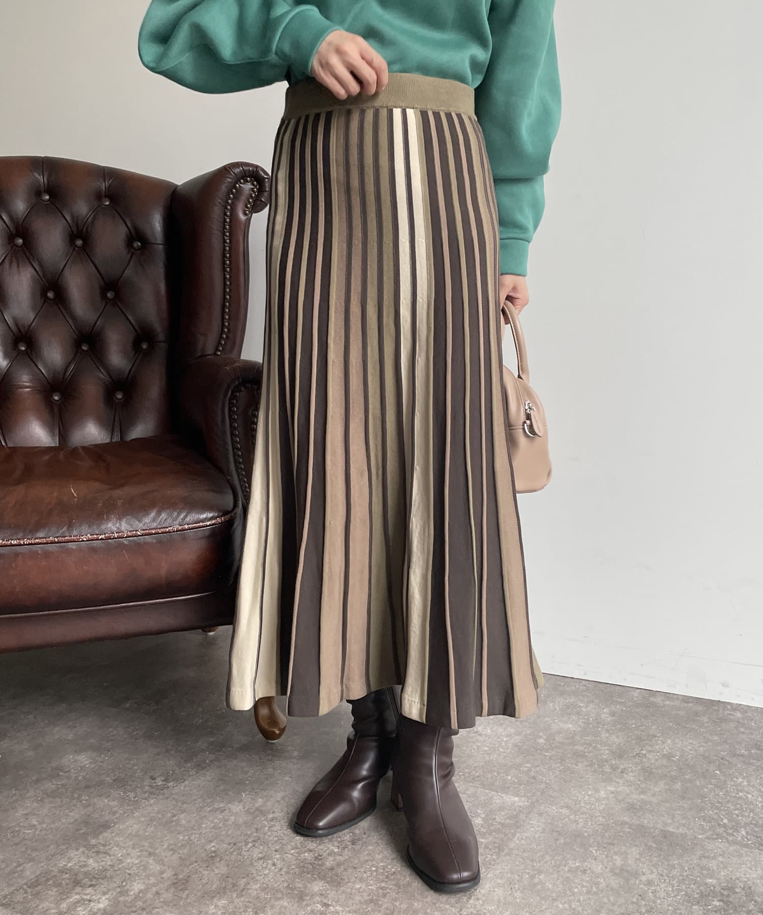 TOP > Thevon. > レディース > スカート > スカート > ストライプ柄ニットフレアスカート