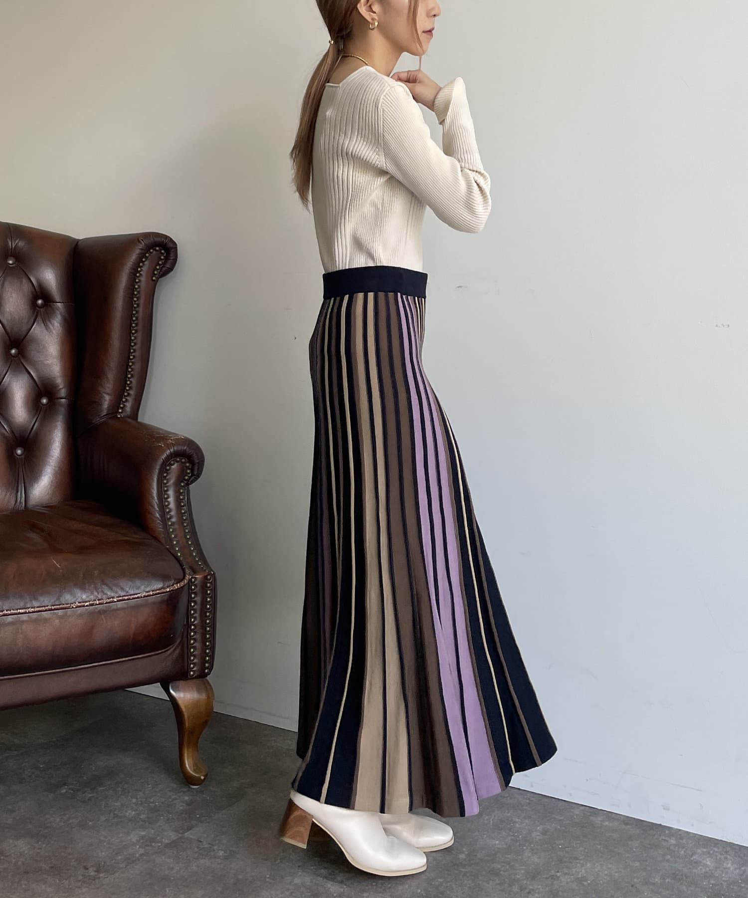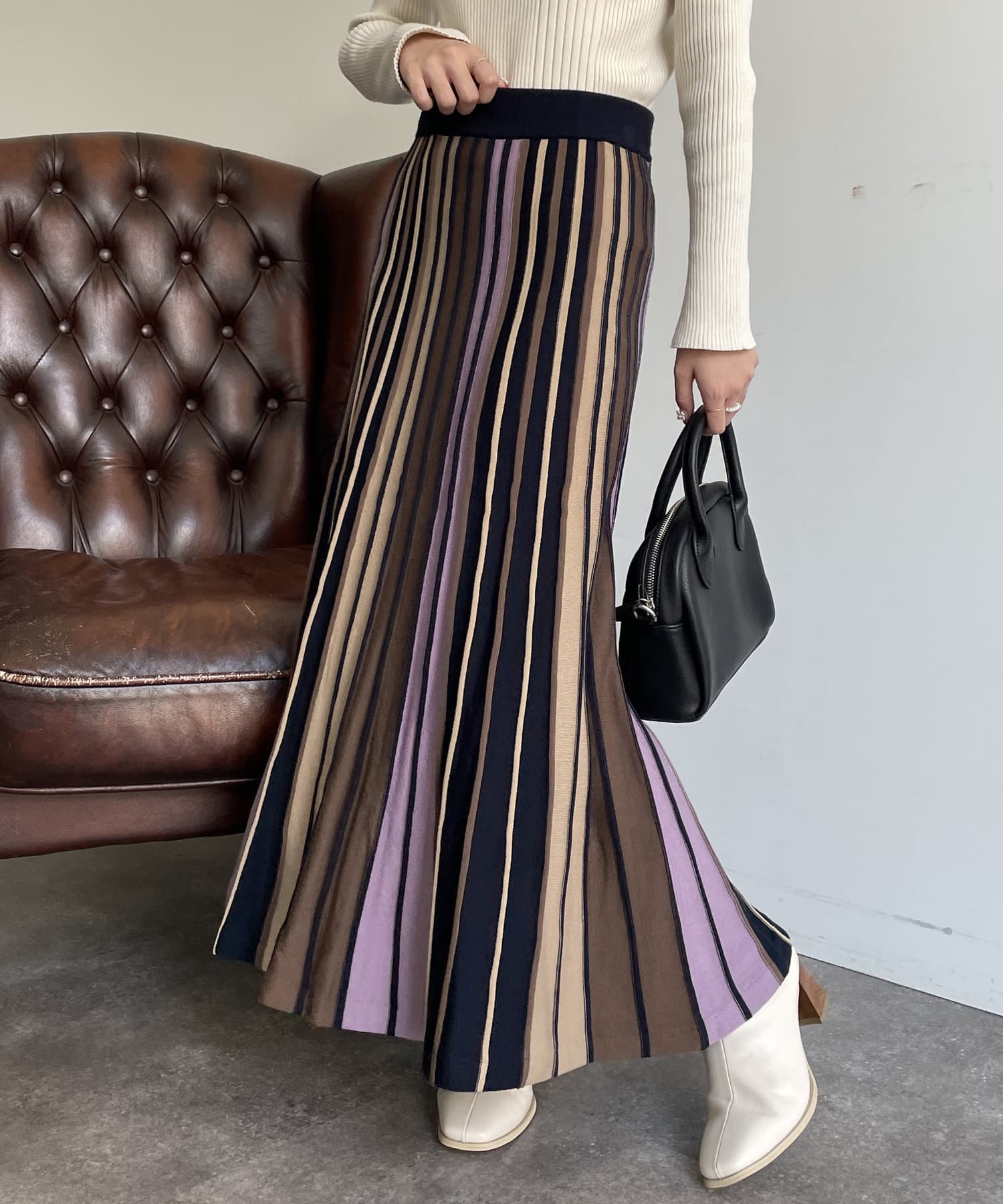 • Thevon.(ゼヴォン) ストライプ柄ニットフレアスカート