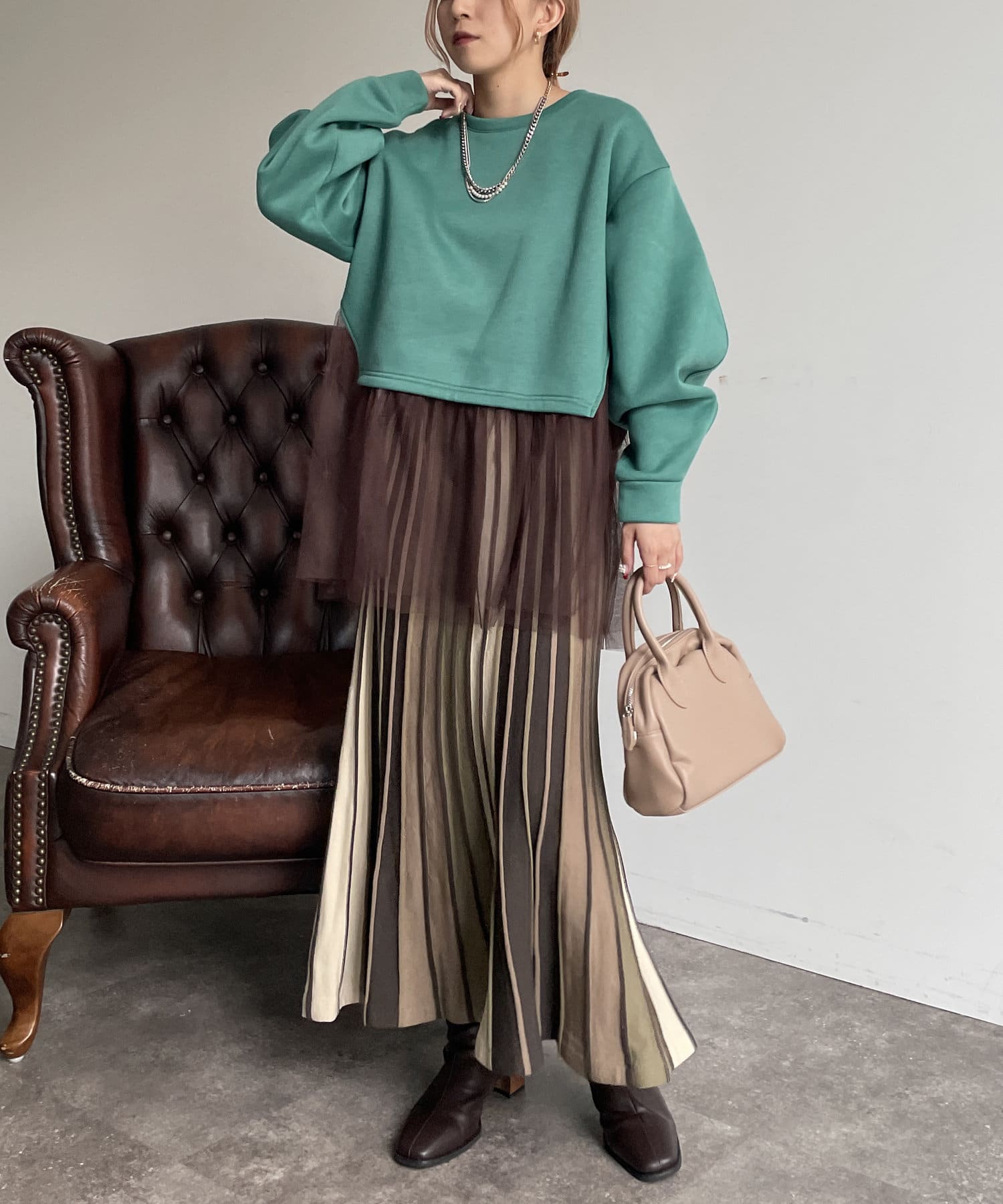 ・ブラウスやコンパクトなトップスと合わせたり足元をブーツにしたキレイめコーデはもちろん、ゆるっとしたスウェットやニットでカジュアルダウンさせた着こなしも楽しめます。