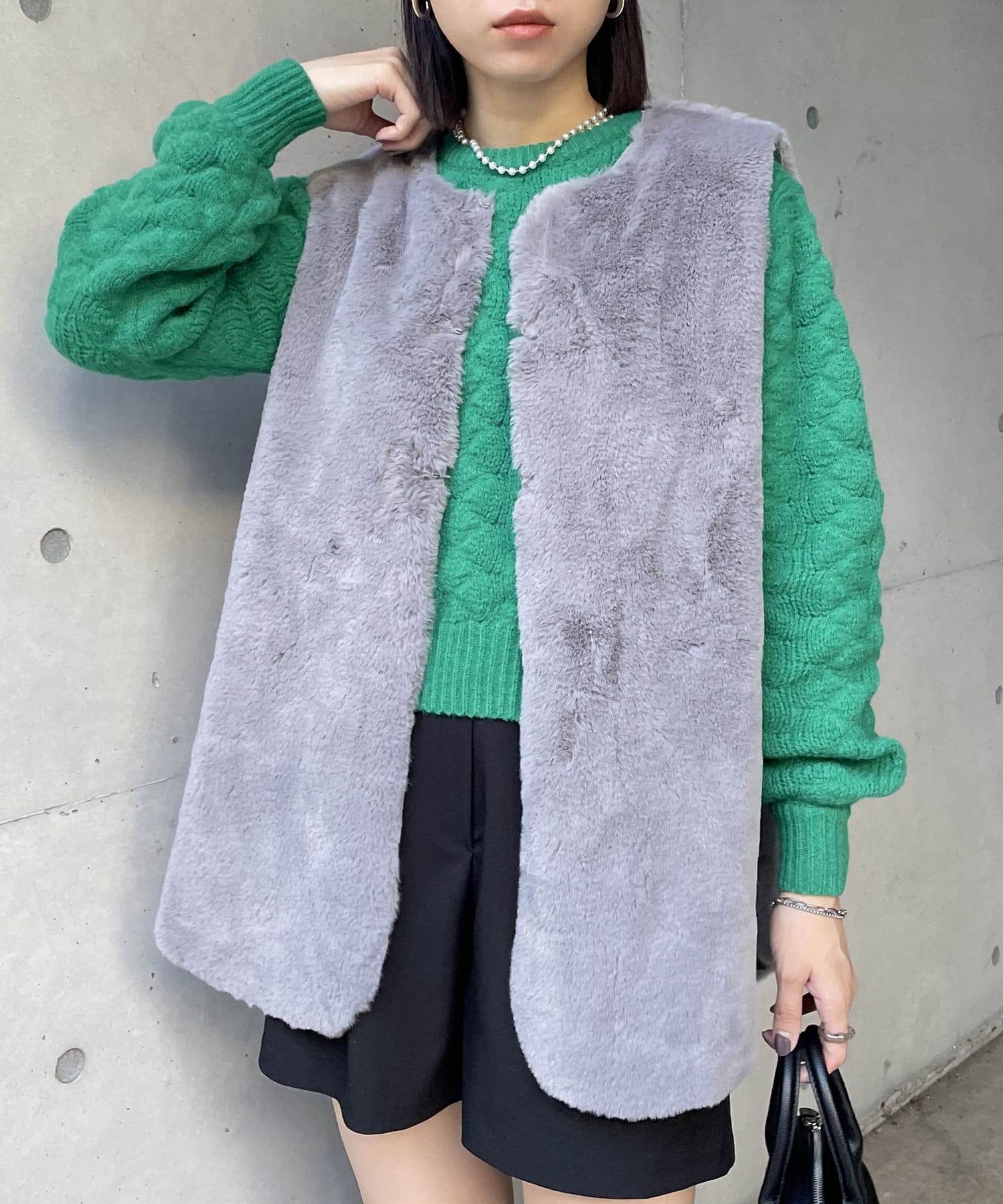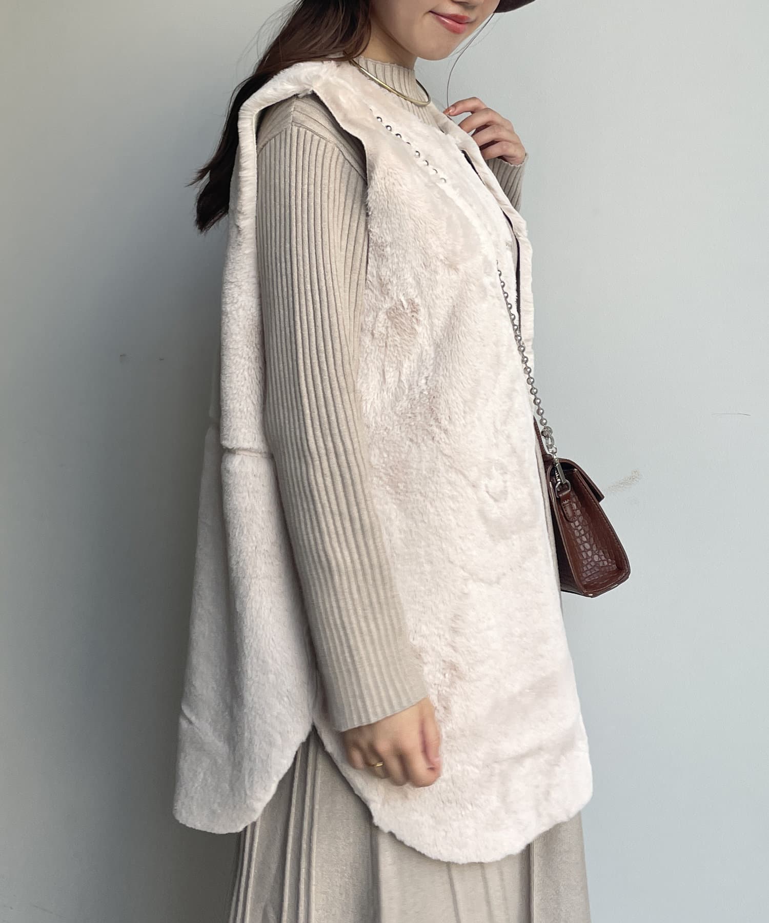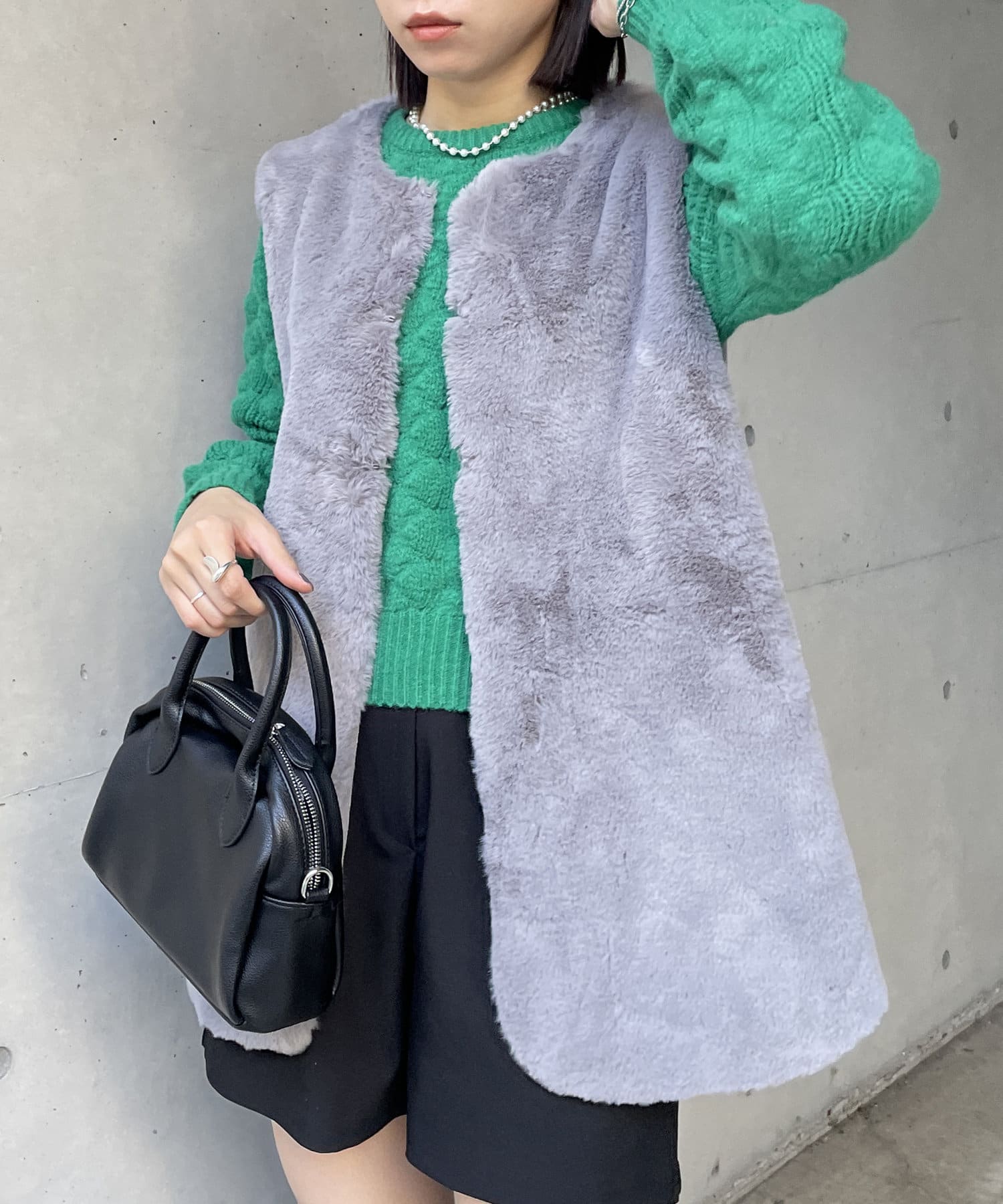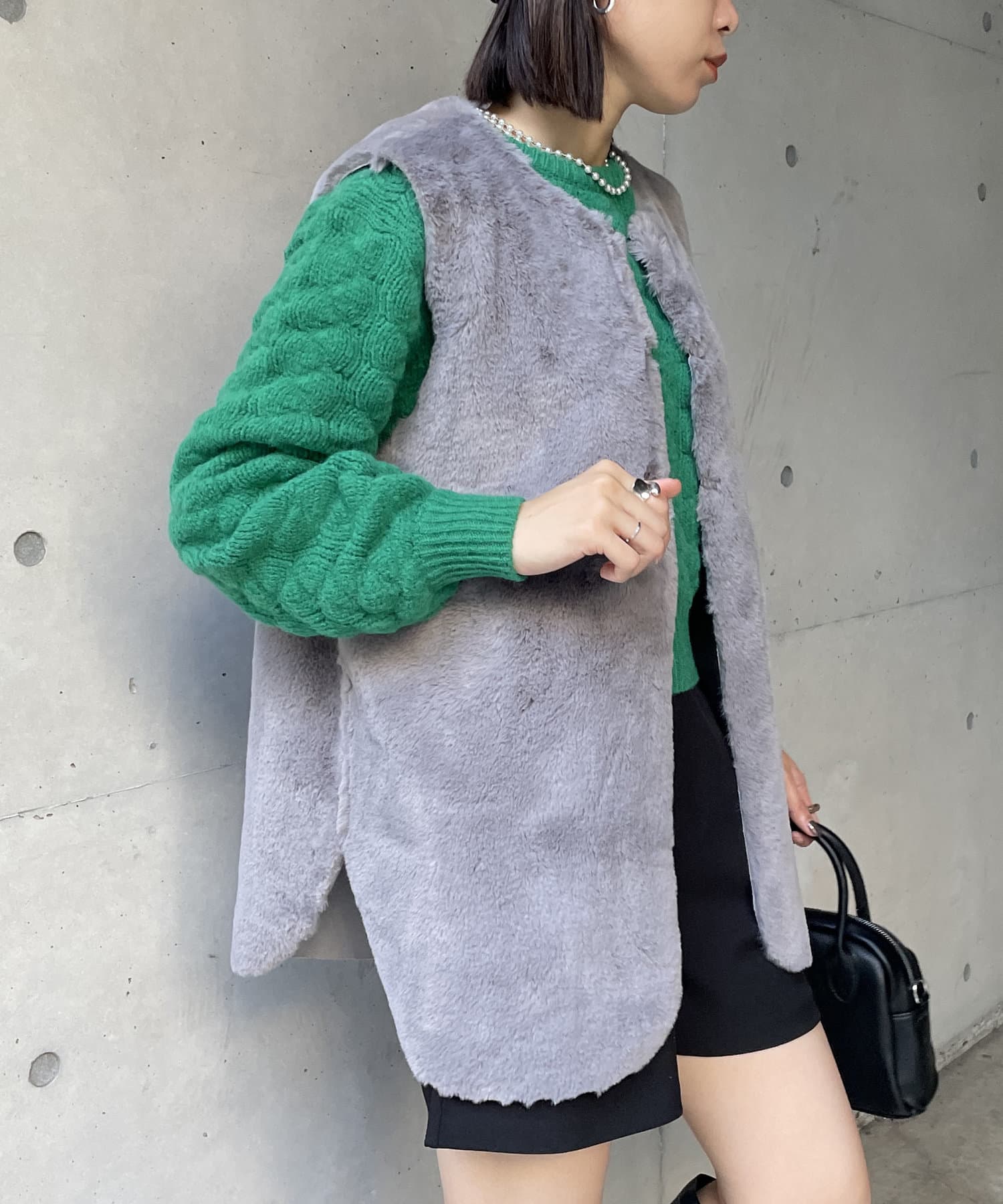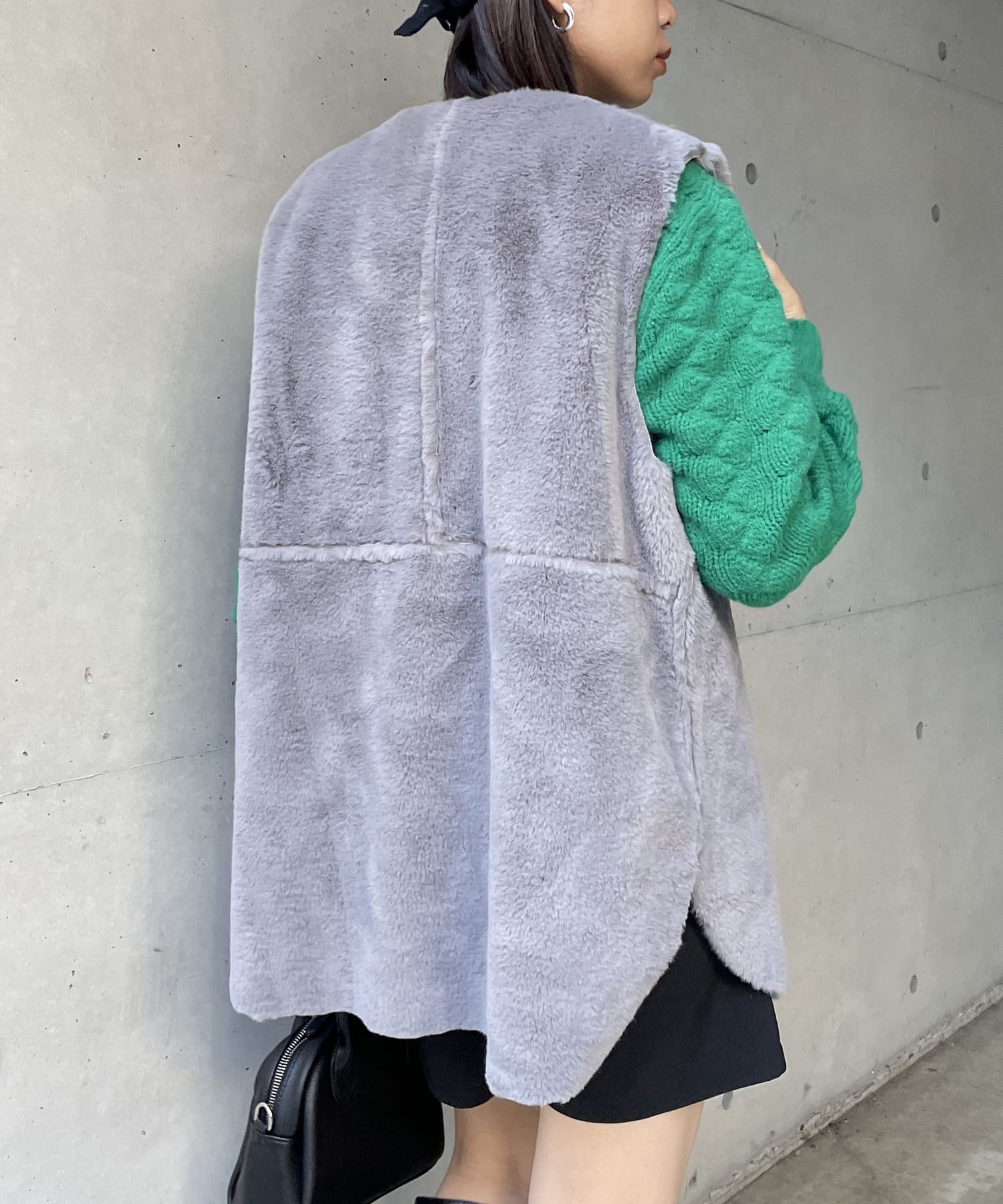 ・キレイめな印象で着れるファーベスト。