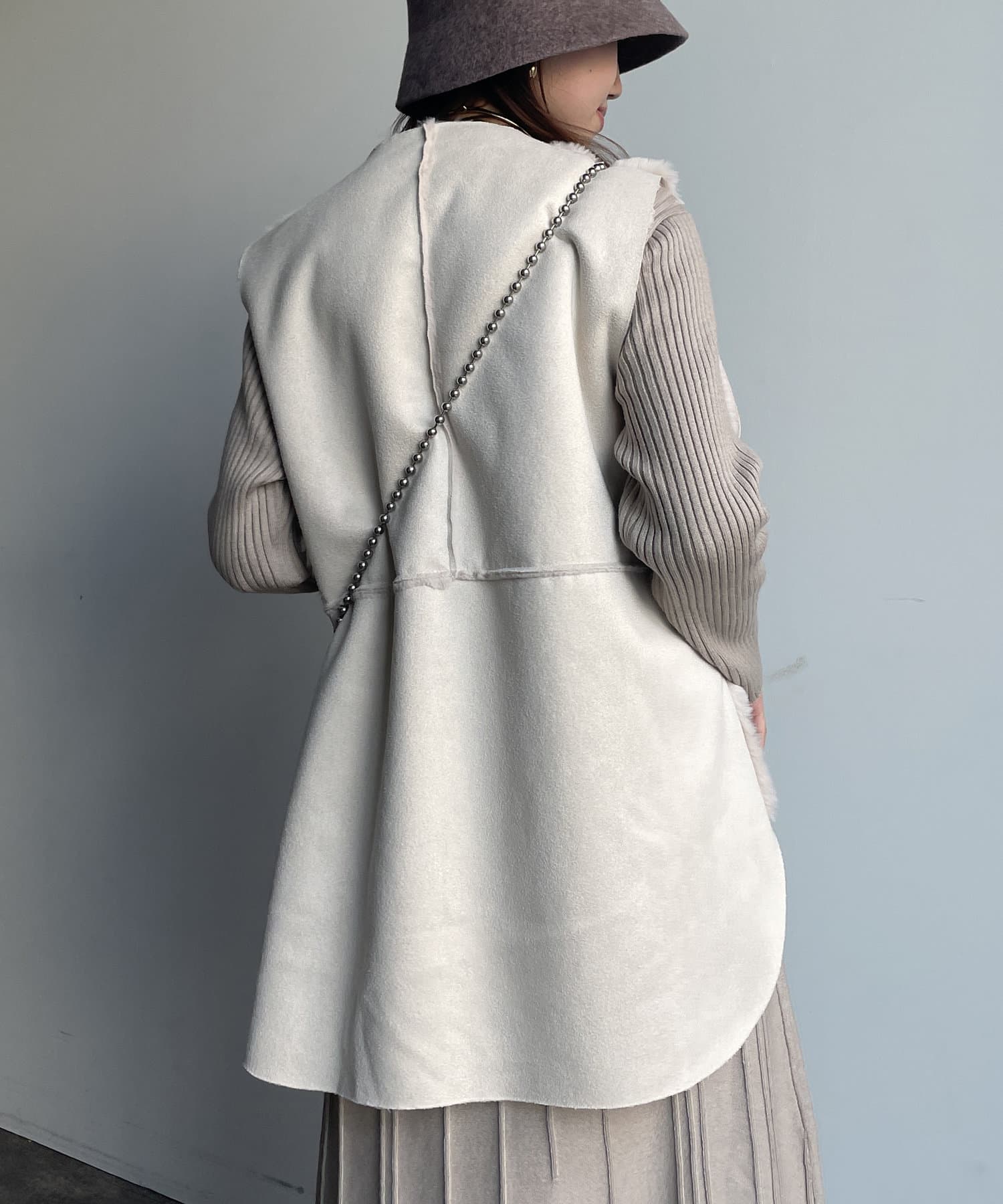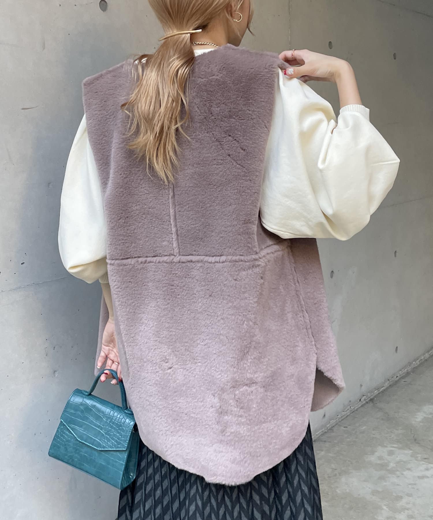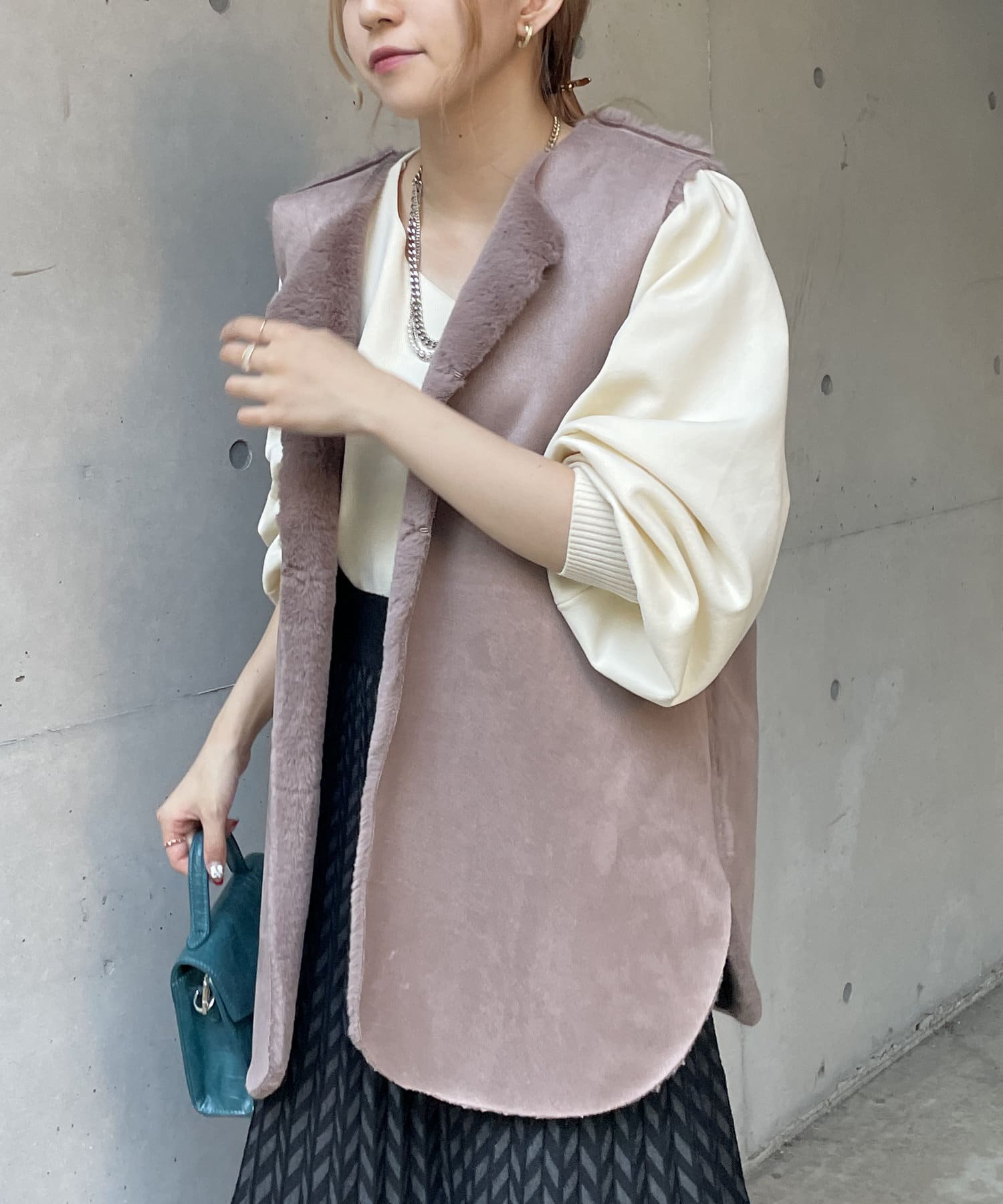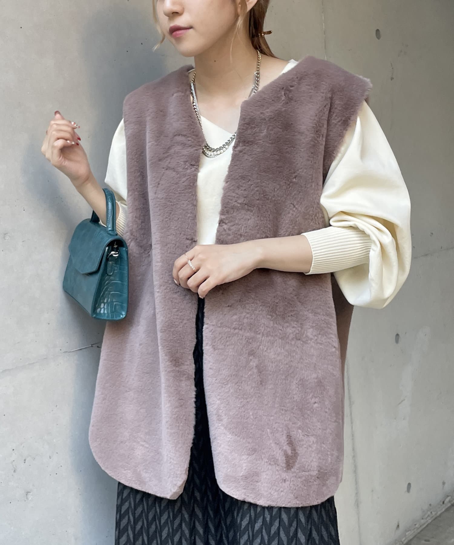 ・キレイめな印象で着れるファーベスト。