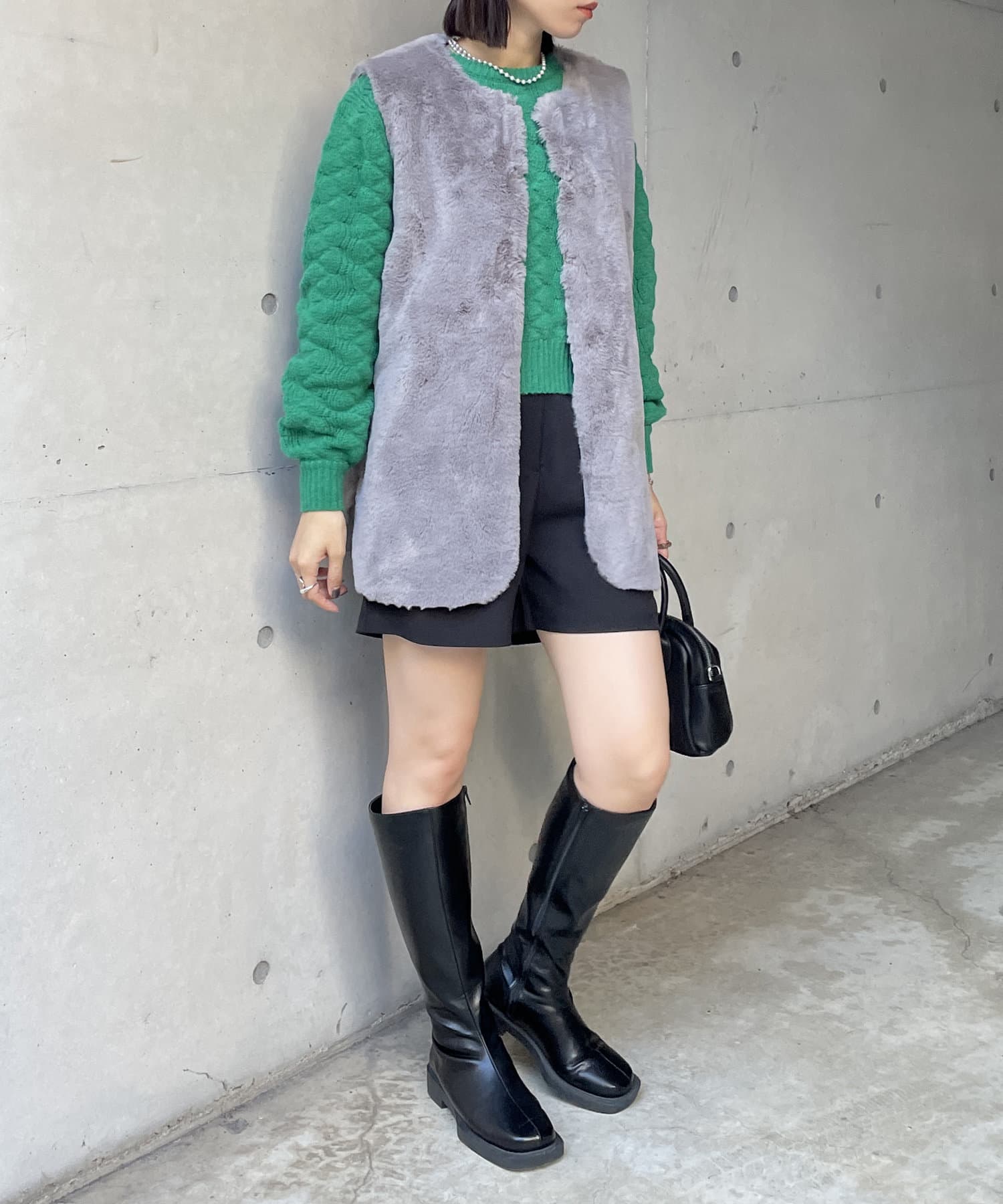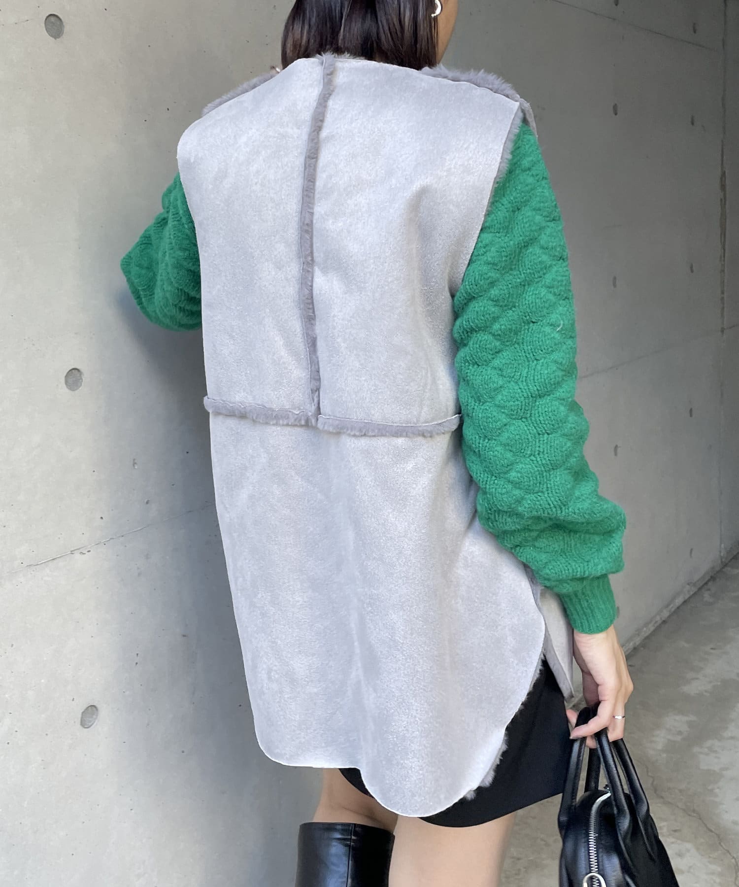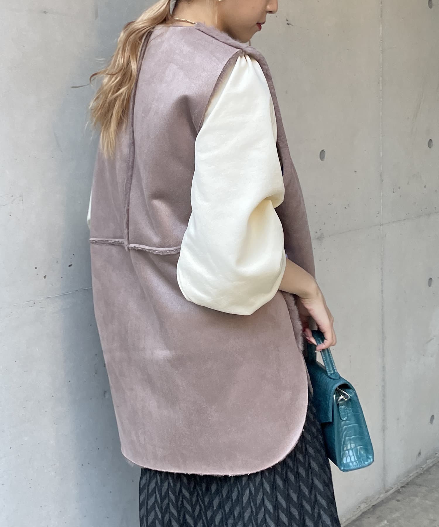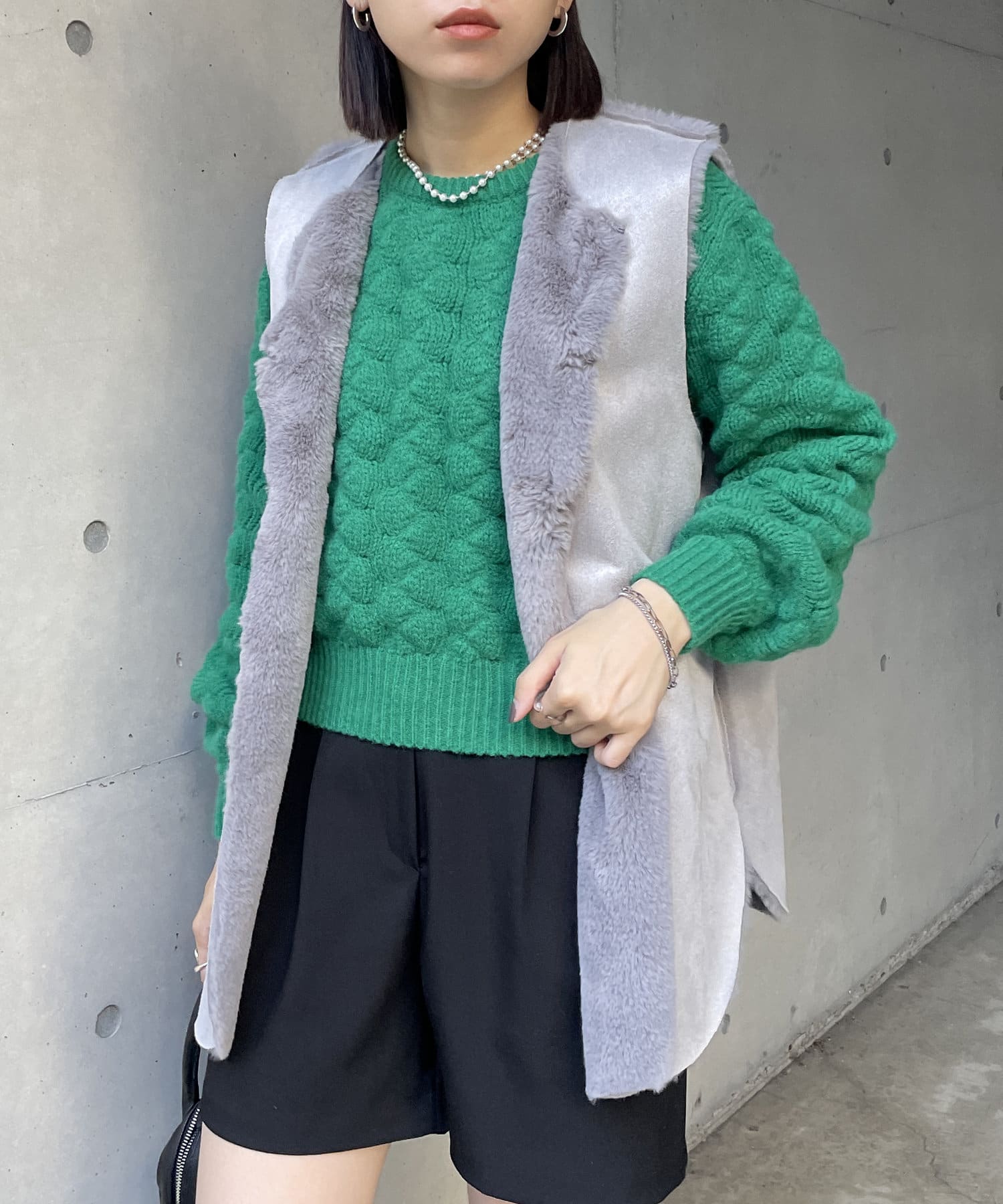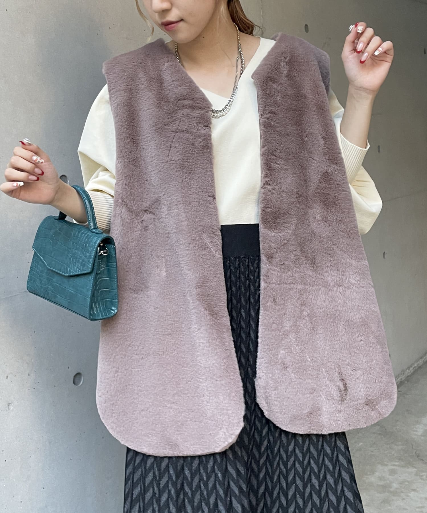 ・キレイめな印象で着れるファーベスト。