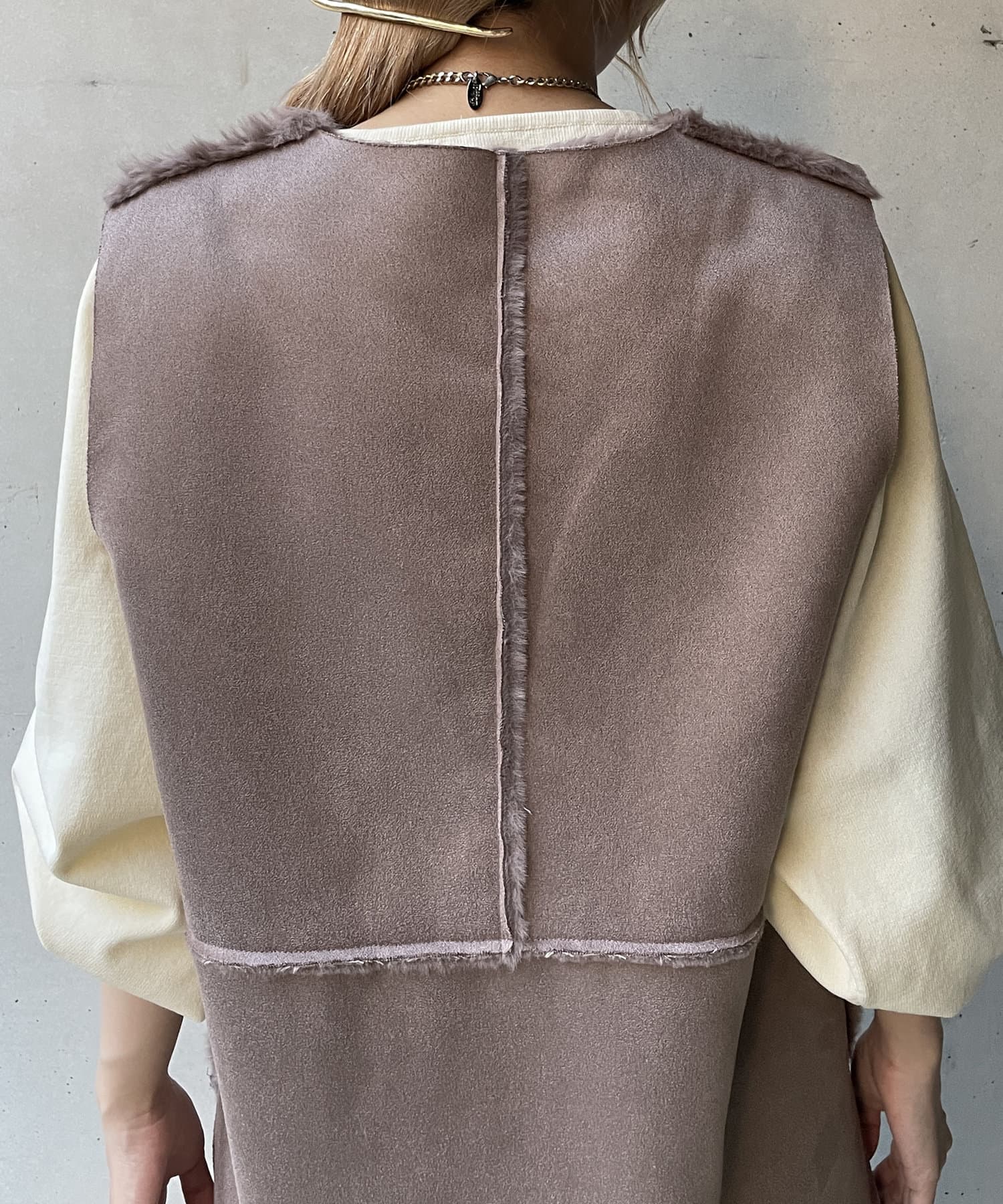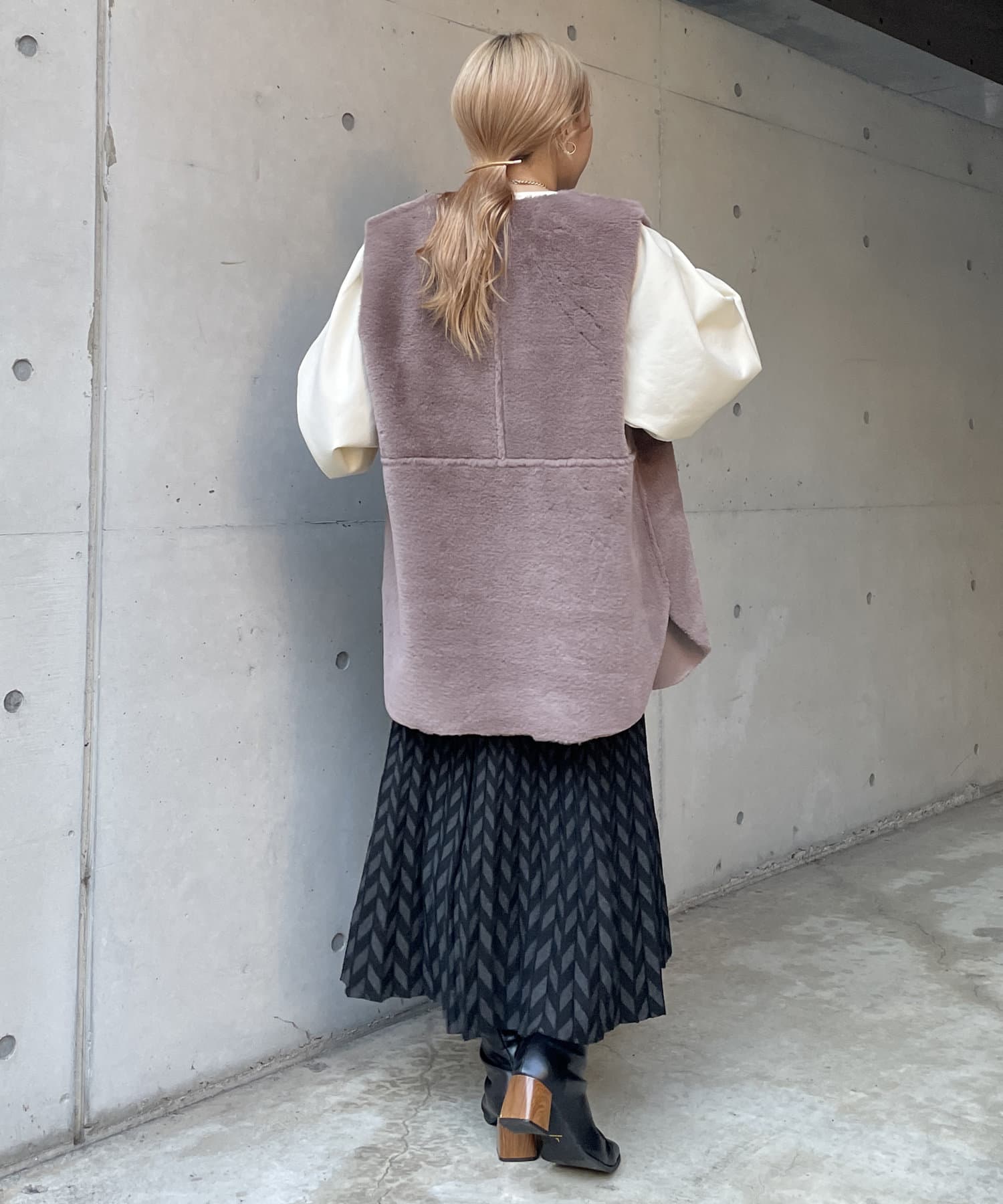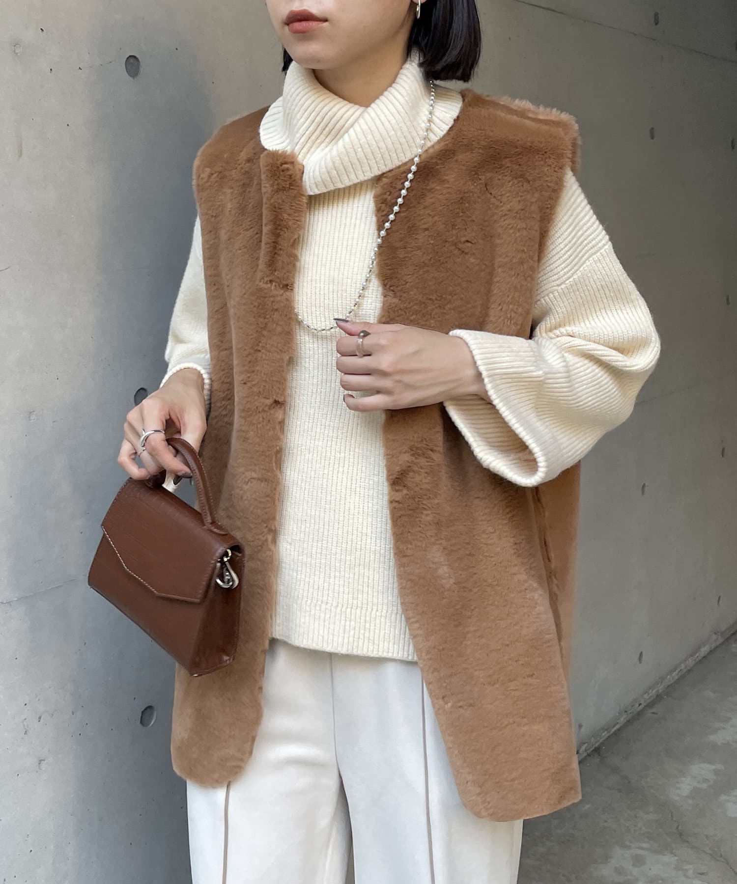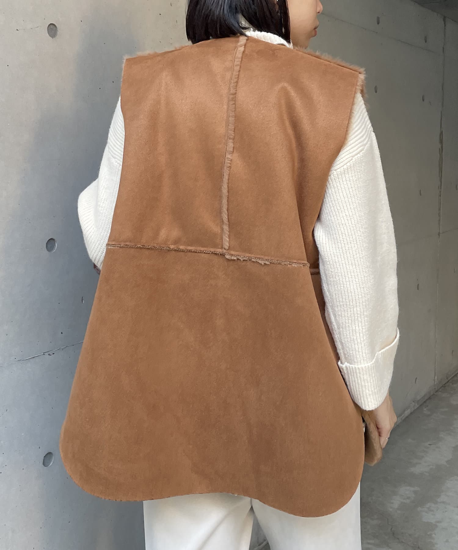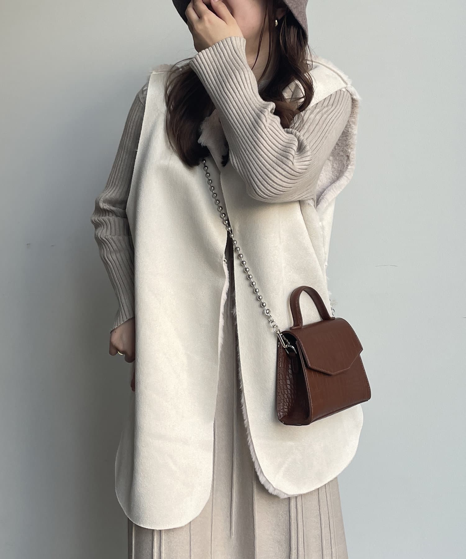・キレイめな印象で着れるファーベスト。