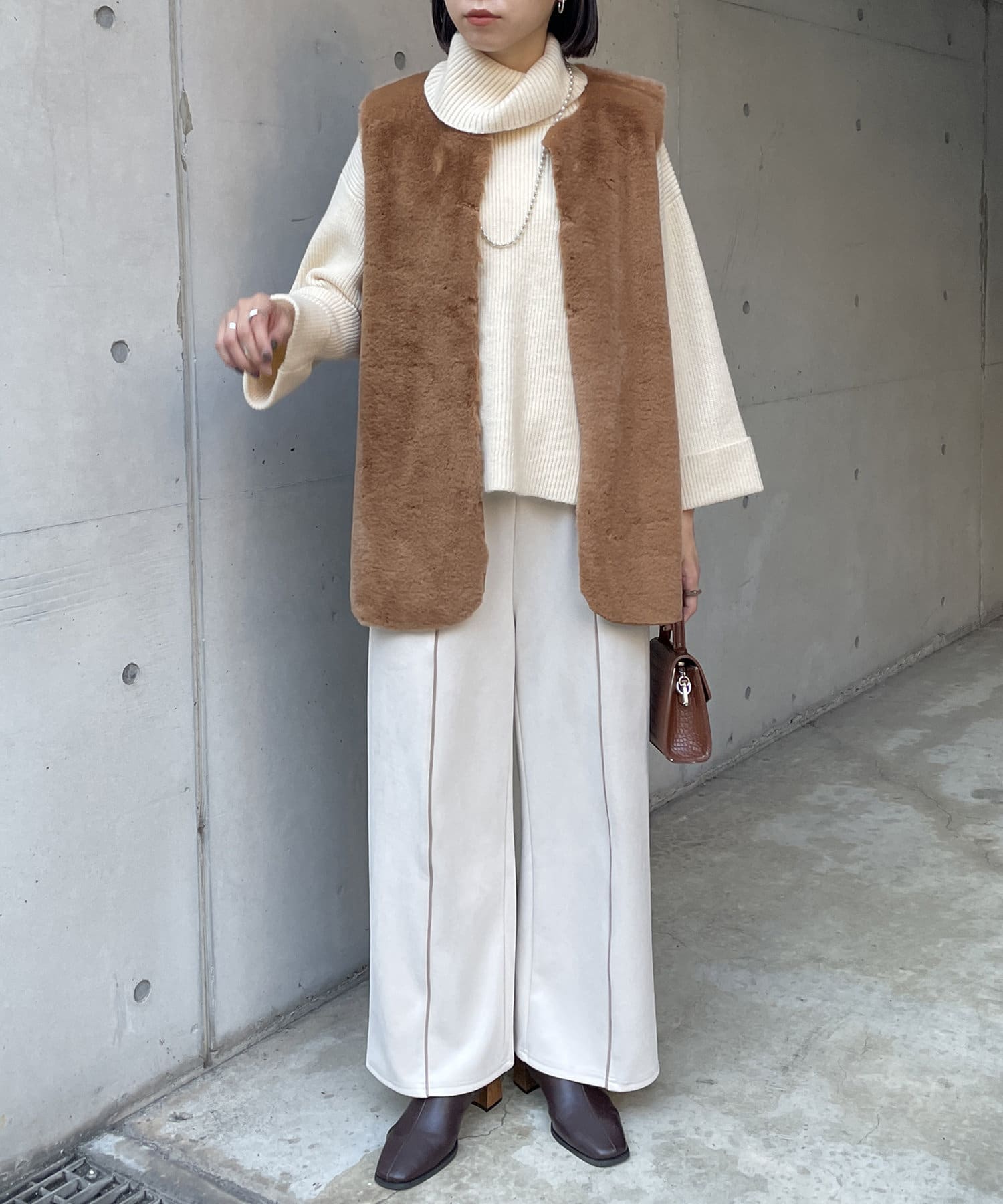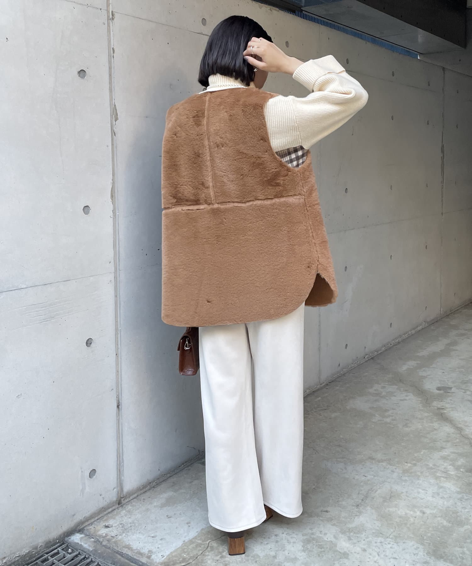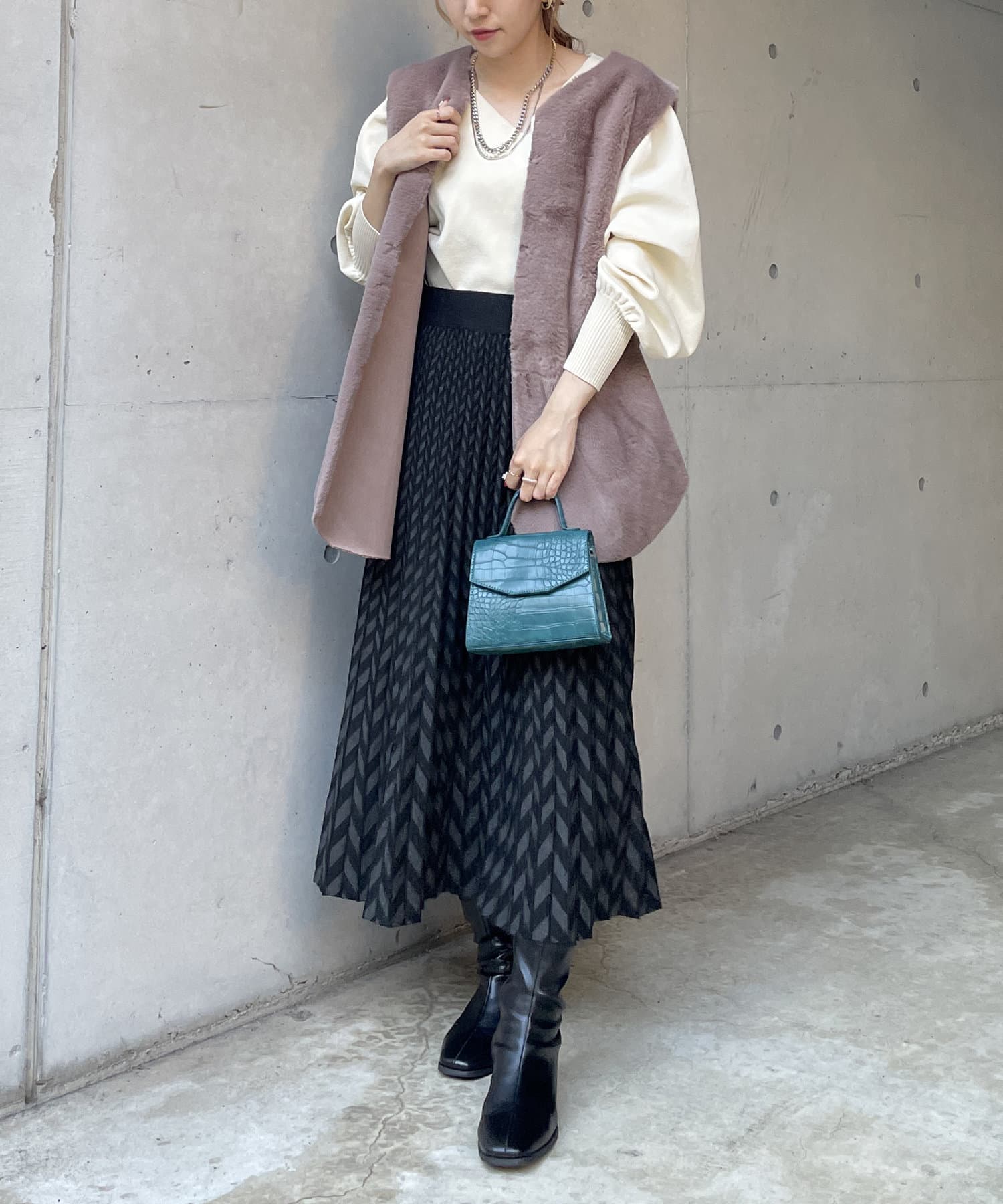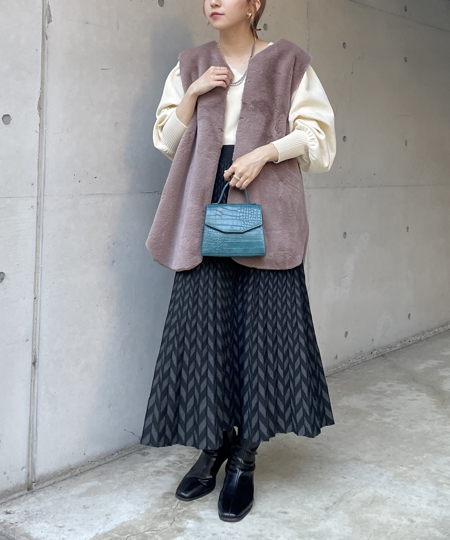 ・キレイめな印象で着れるファーベスト。