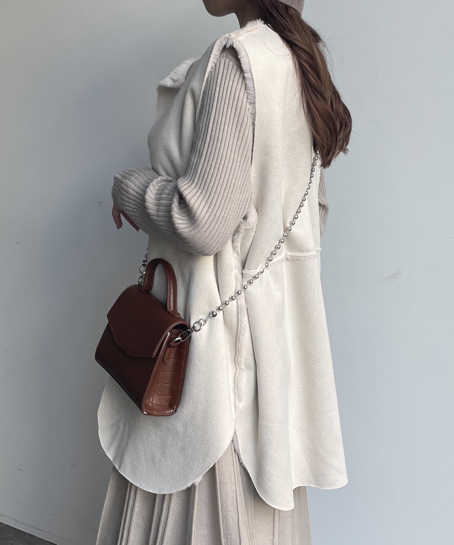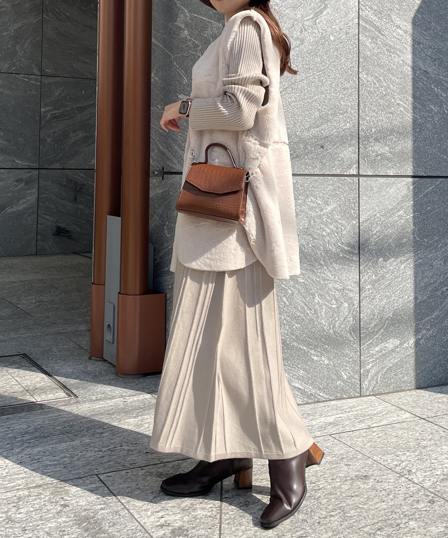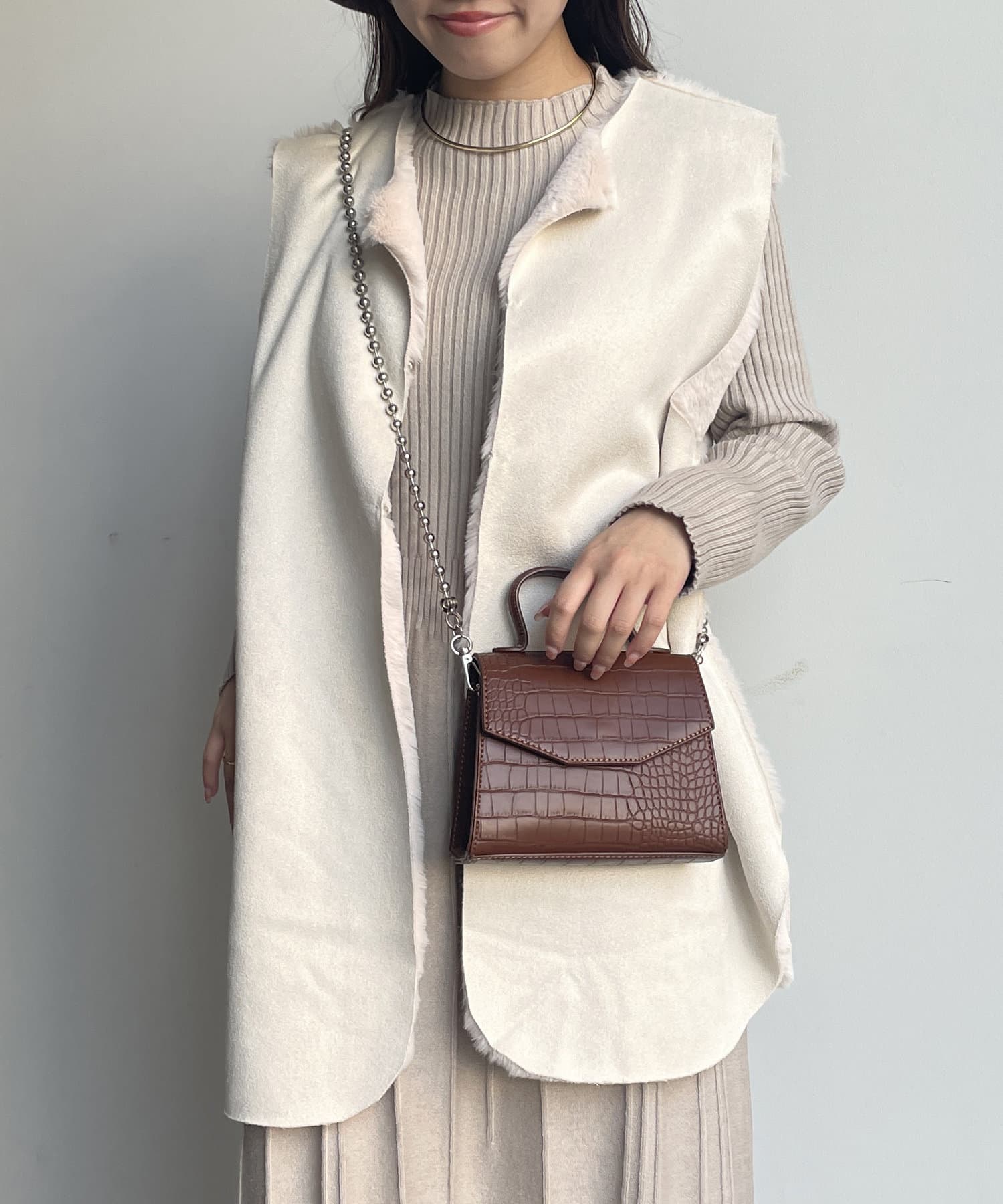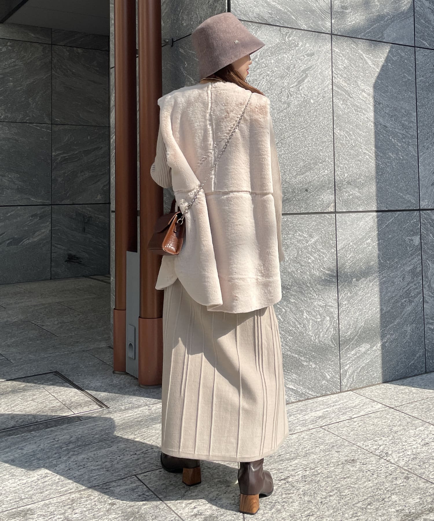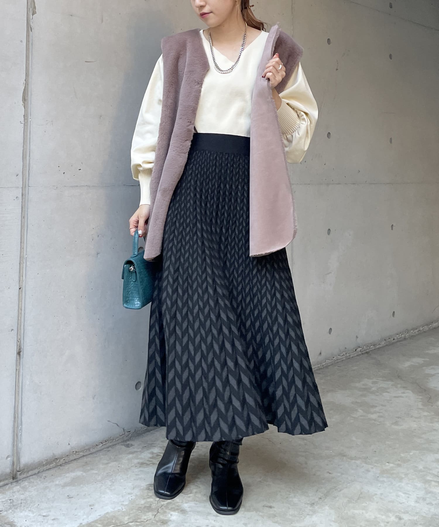 ・キレイめな印象で着れるファーベスト。