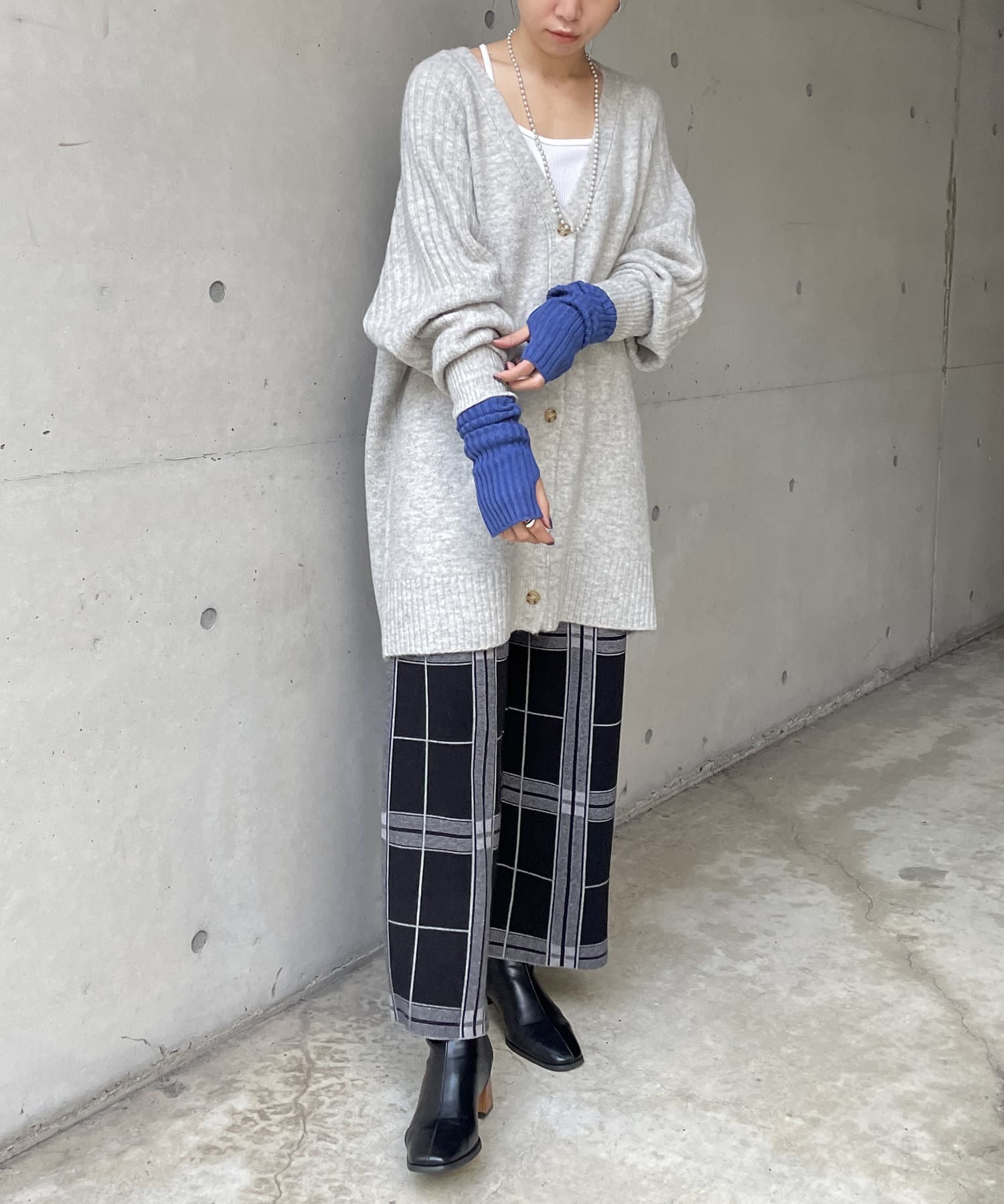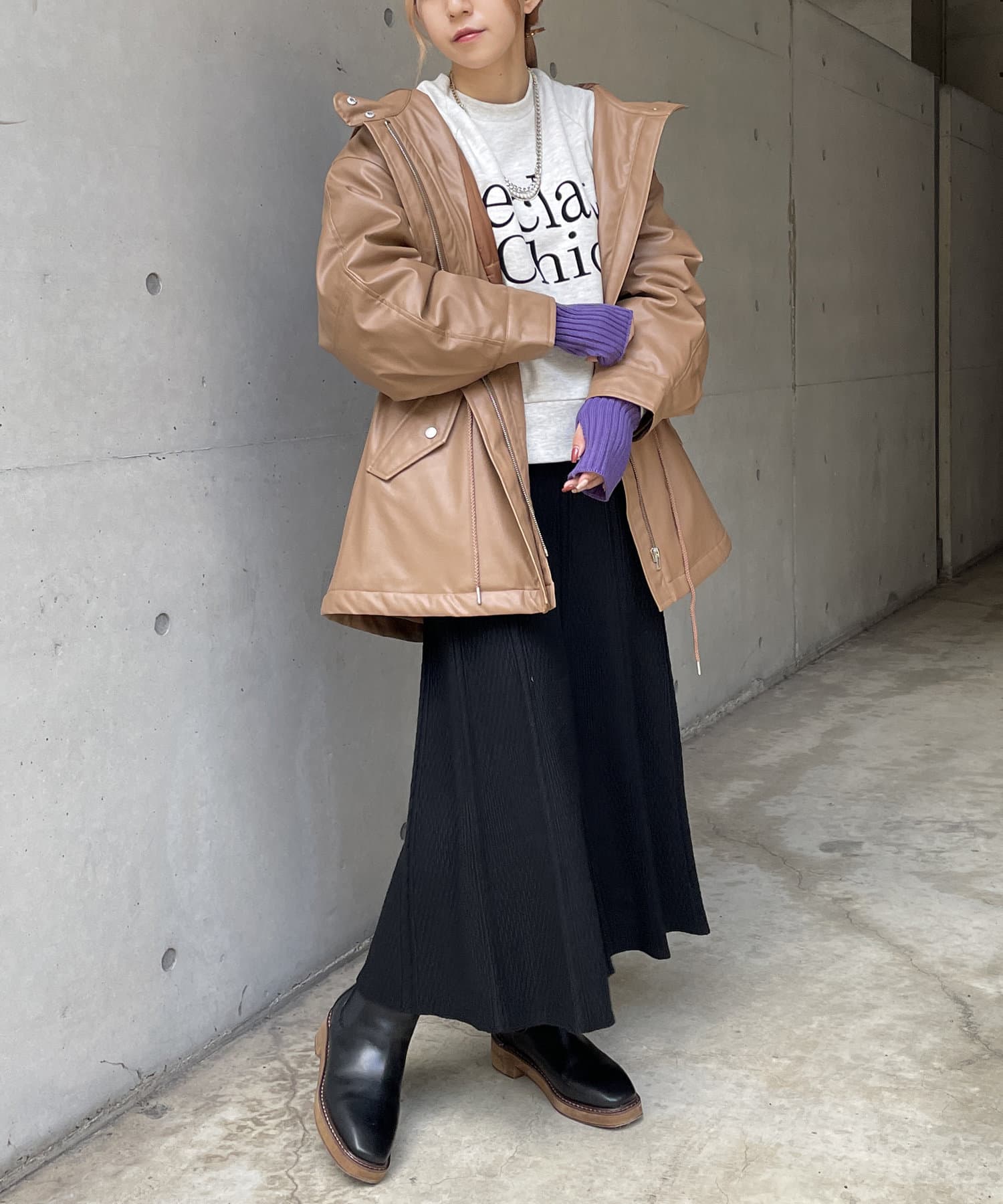 長めでタイトなシルエットなので、そもままピタッとつけたり、たるませたりとコーデの幅が広がります。