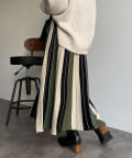 配色ストライプニットスカート