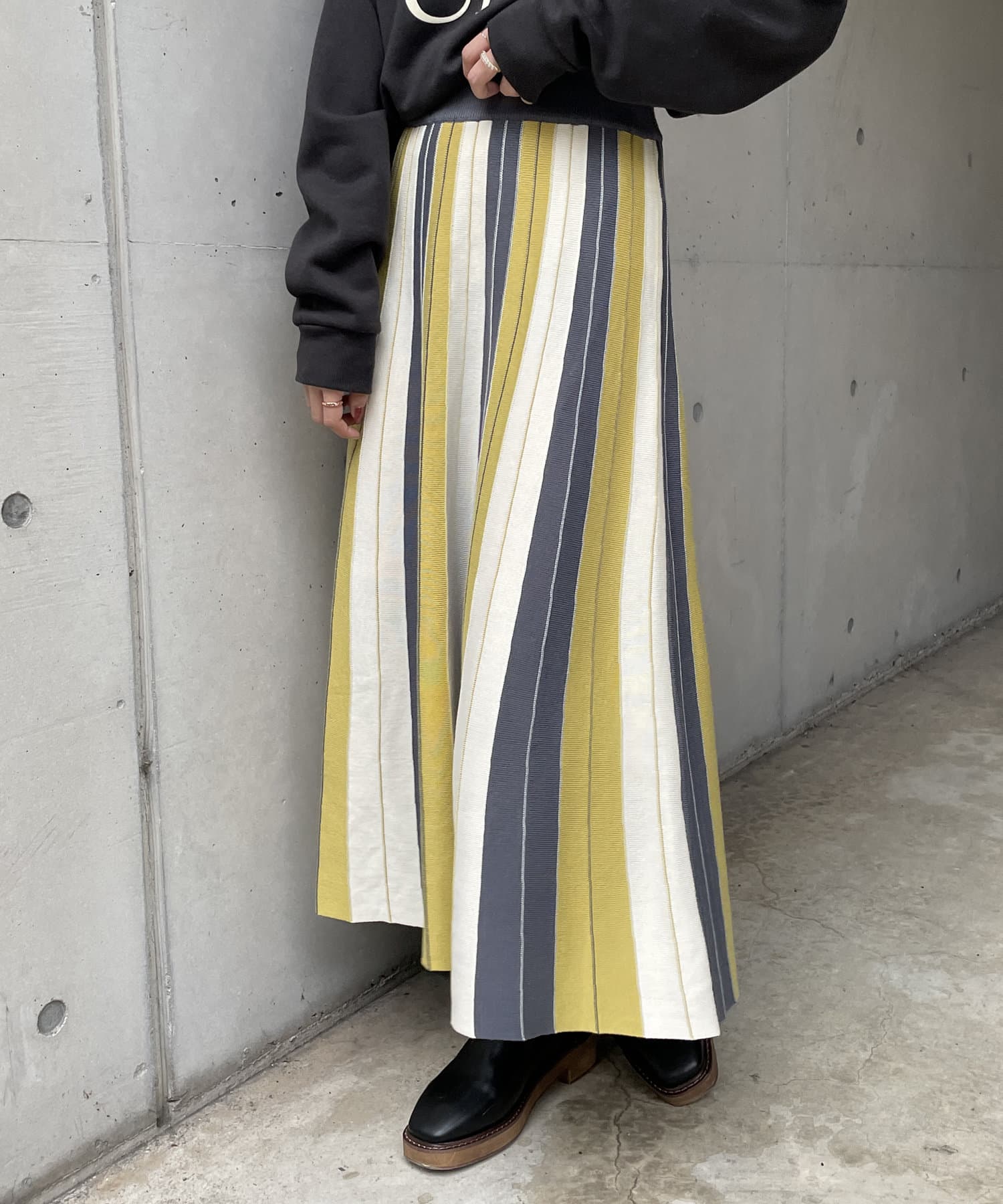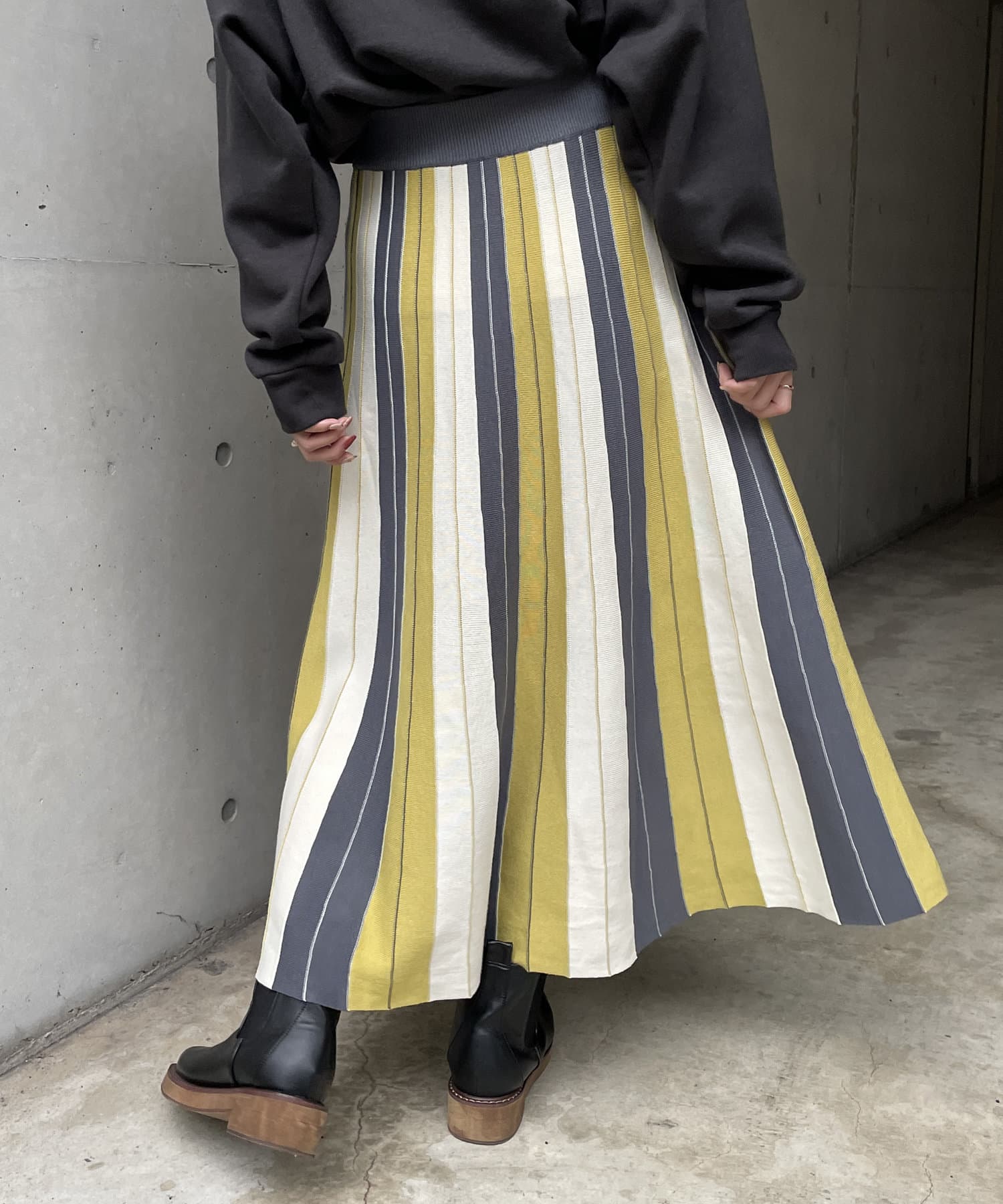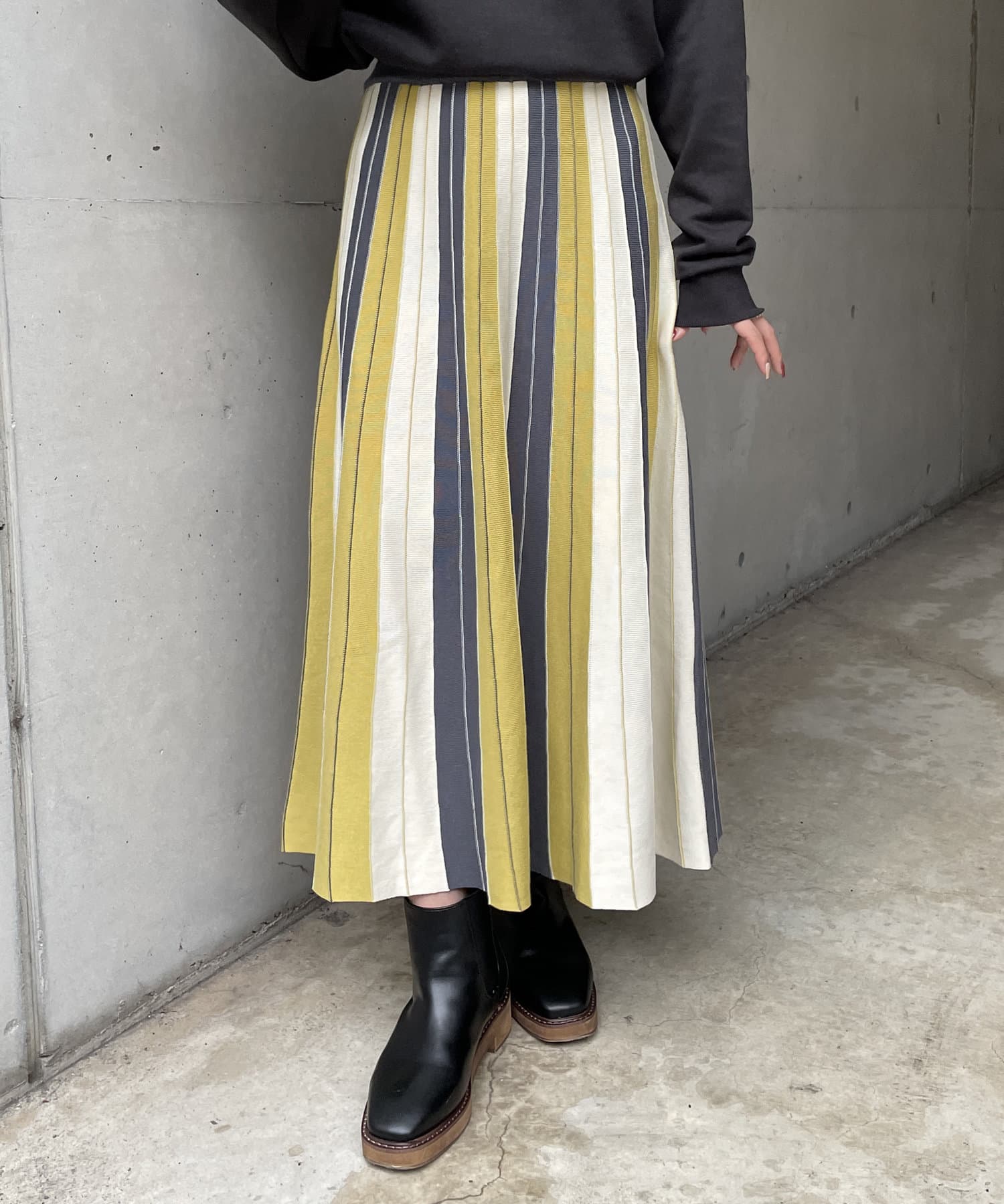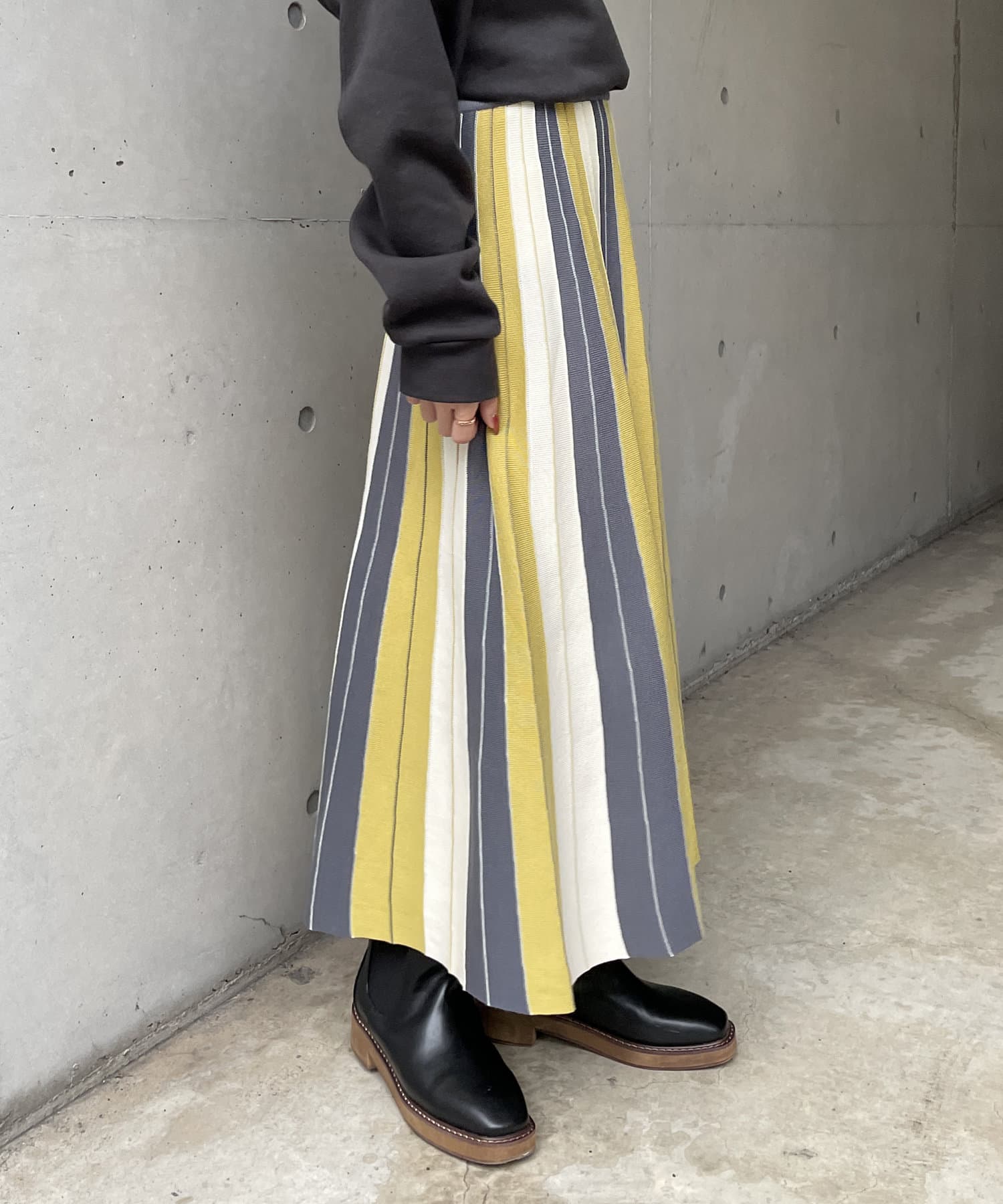 #配色 #バイカラー #ストライプ #ニットスカート