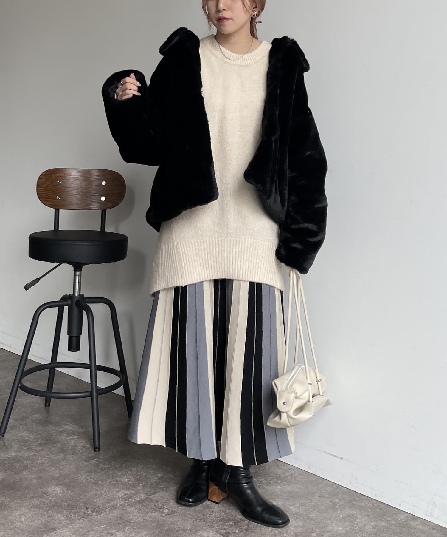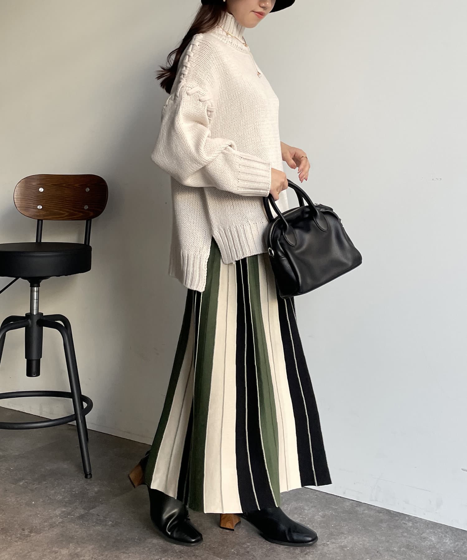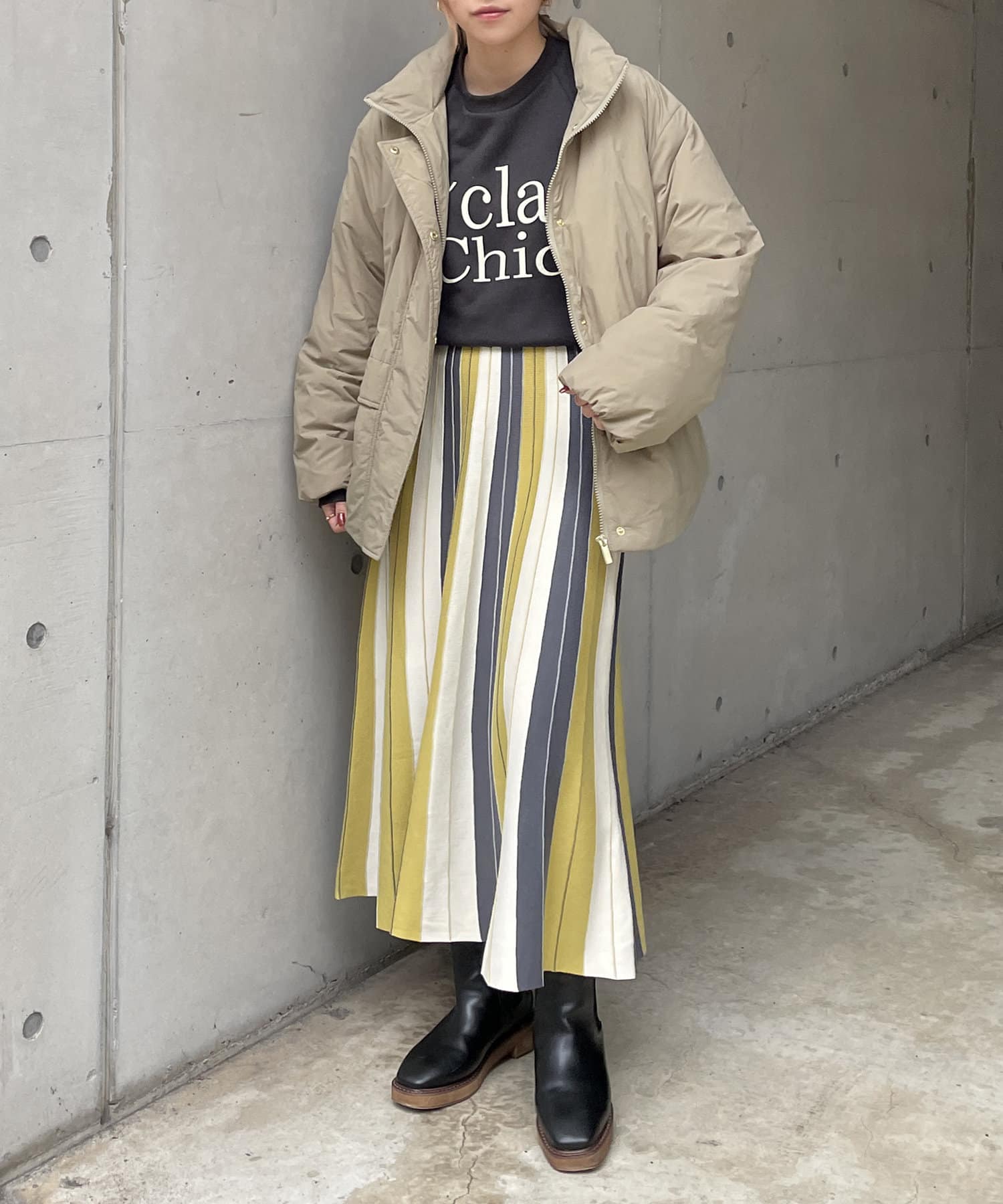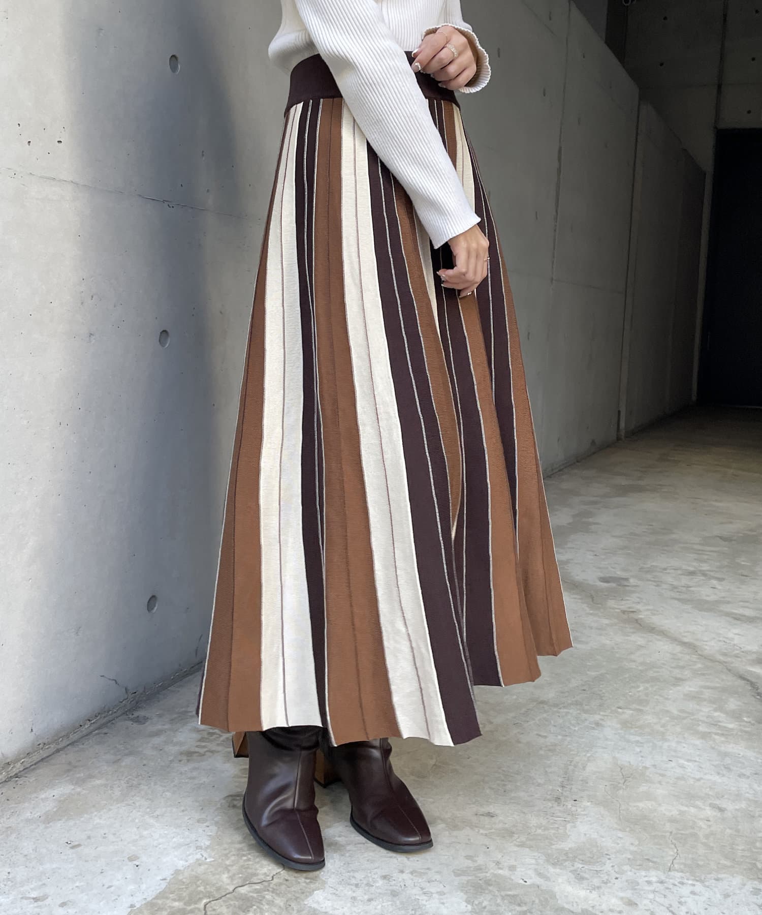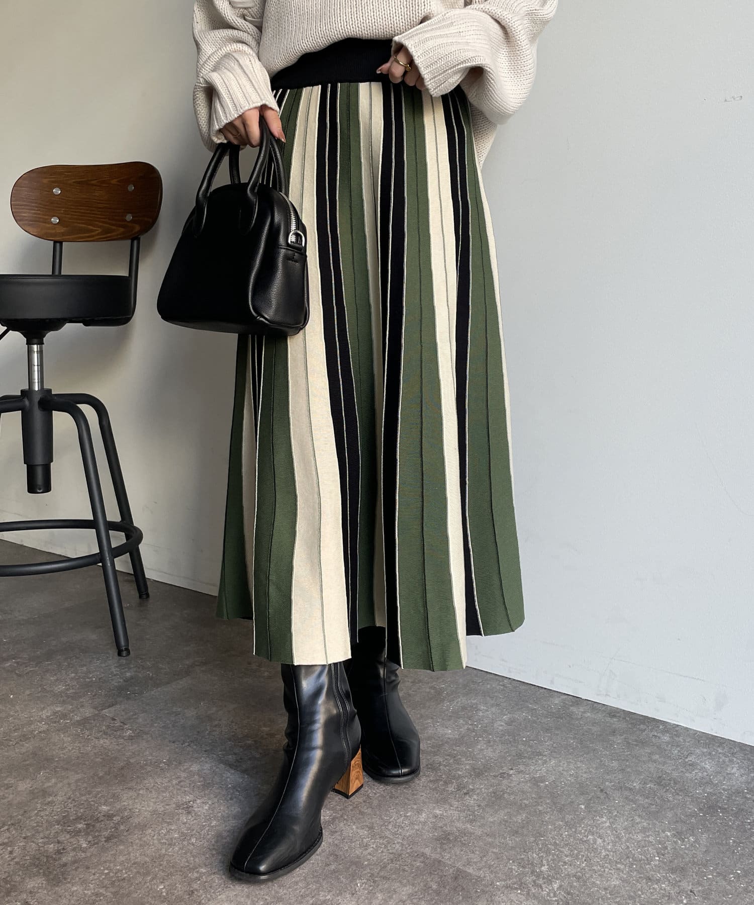 #配色 #バイカラー #ストライプ #ニットスカート