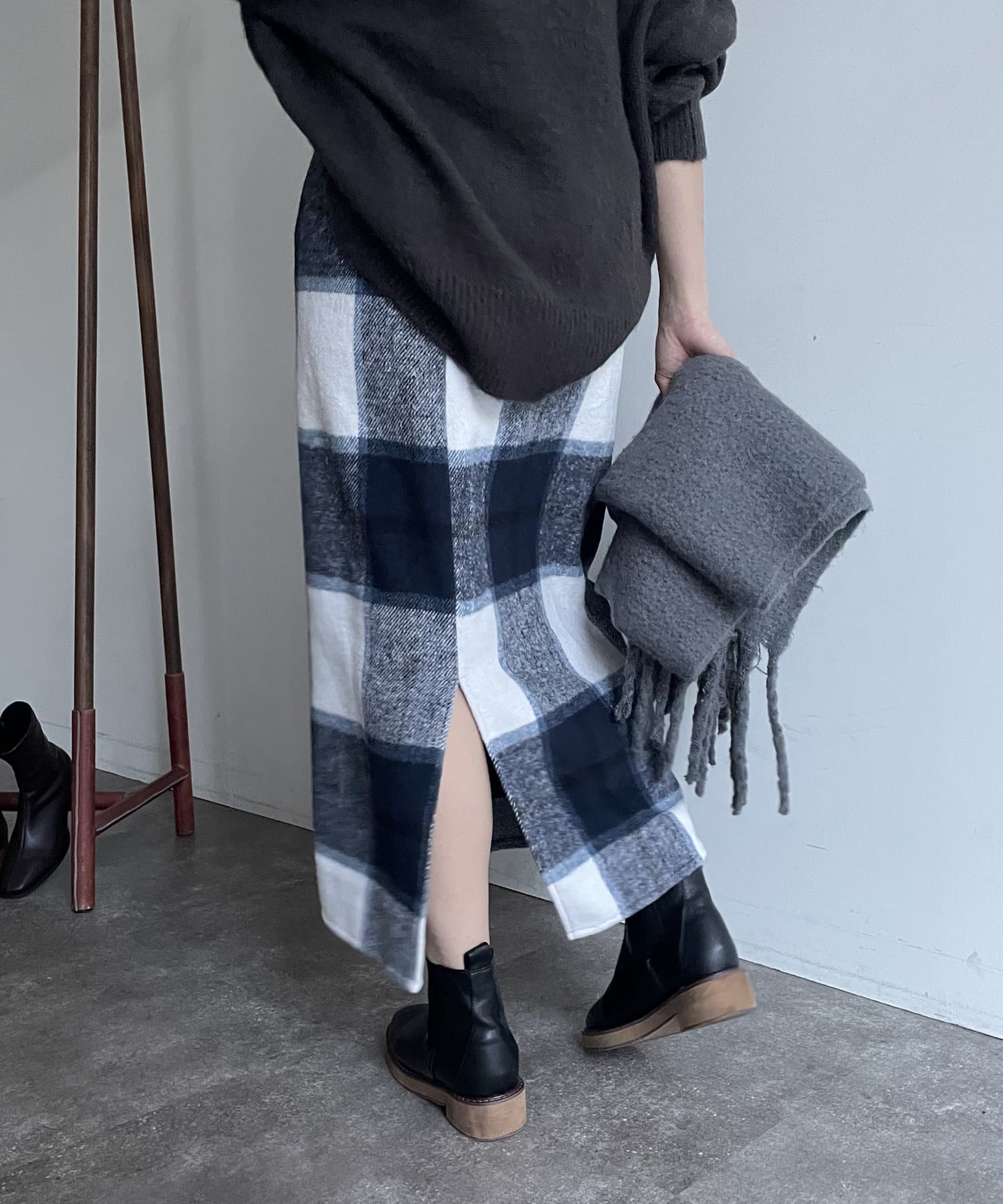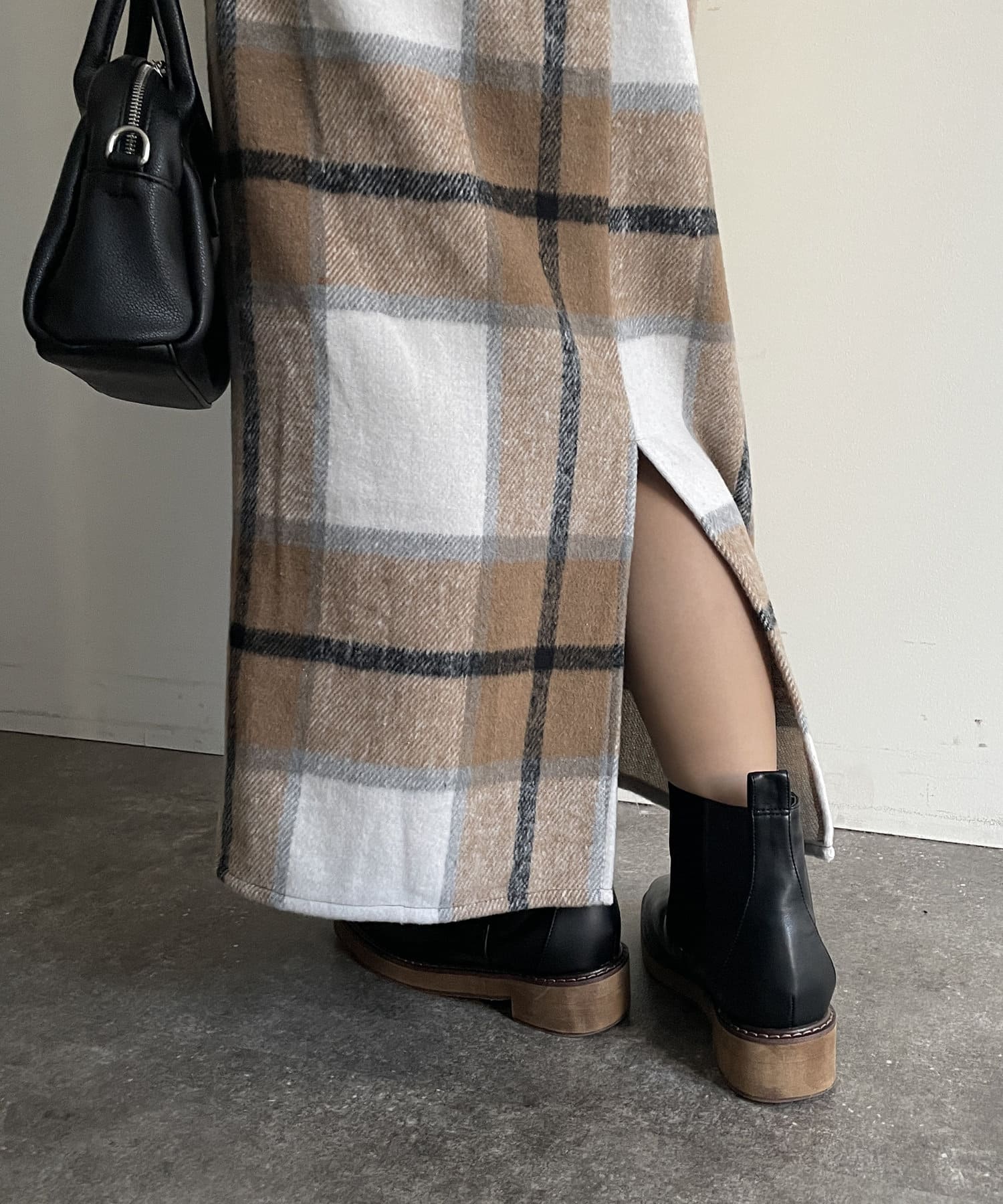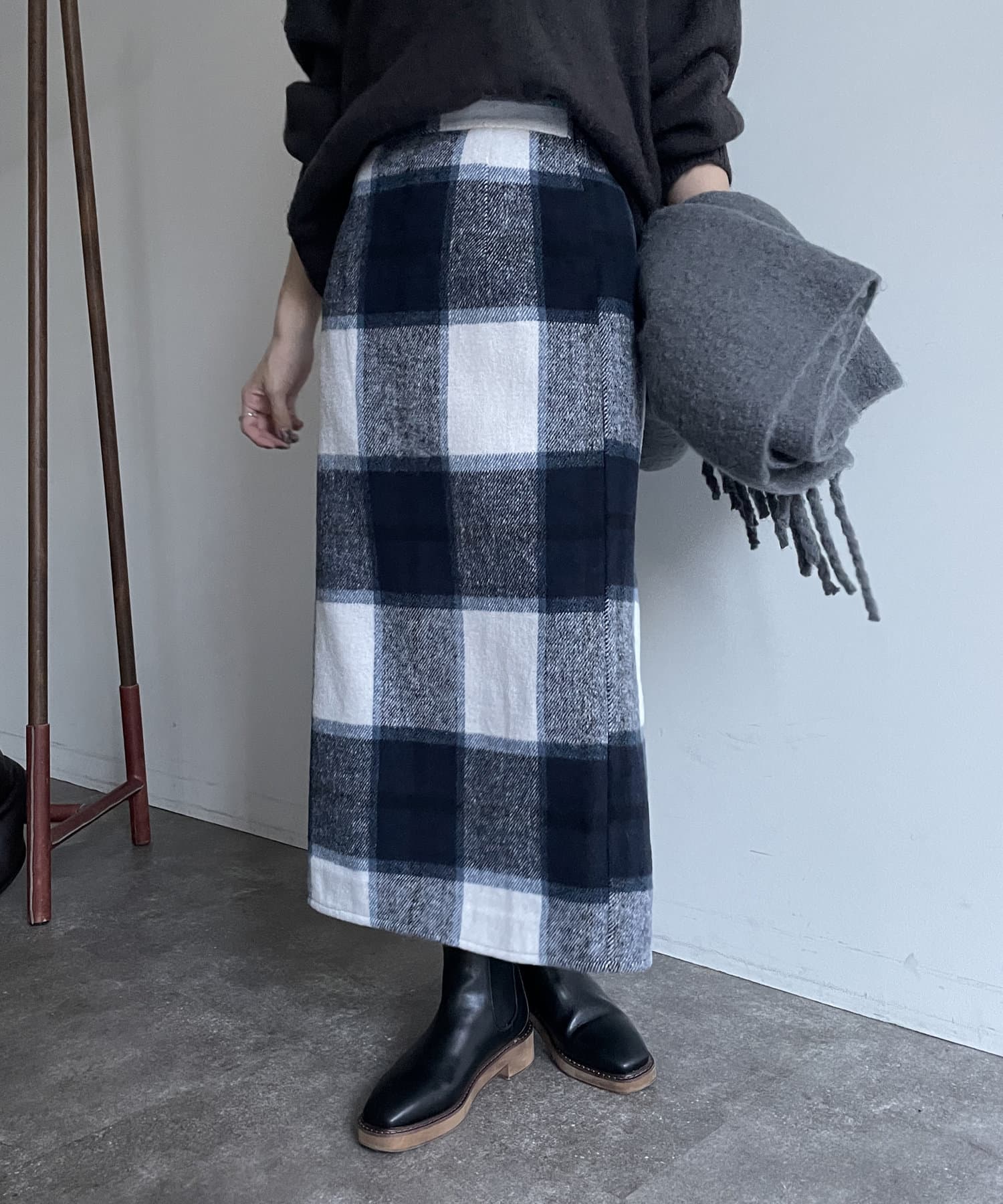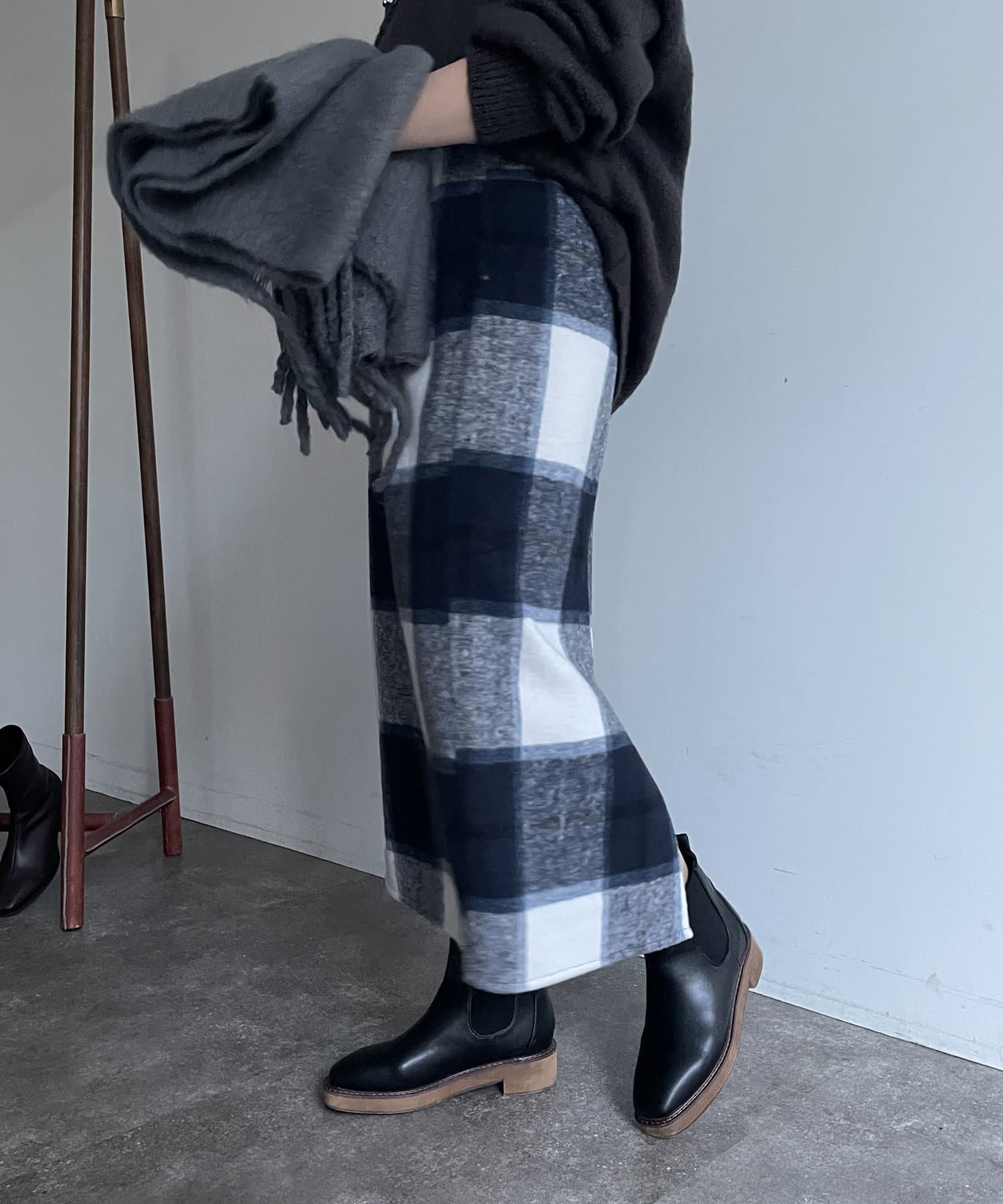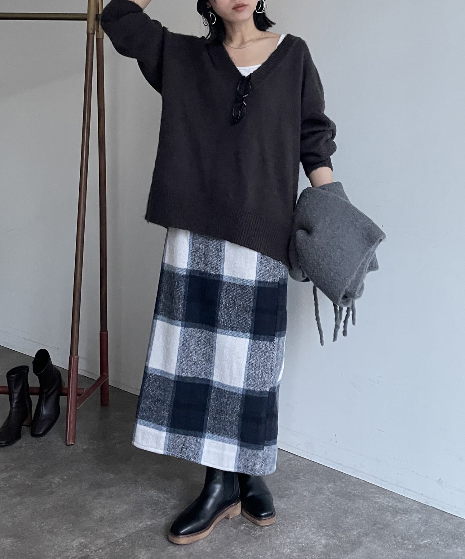 ・大きめのチェック柄と表面の起毛感が秋冬らしい印象に