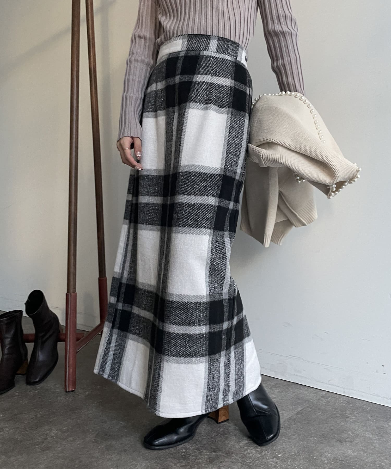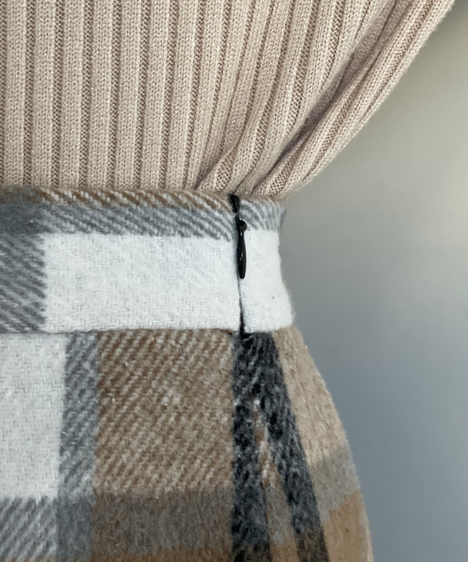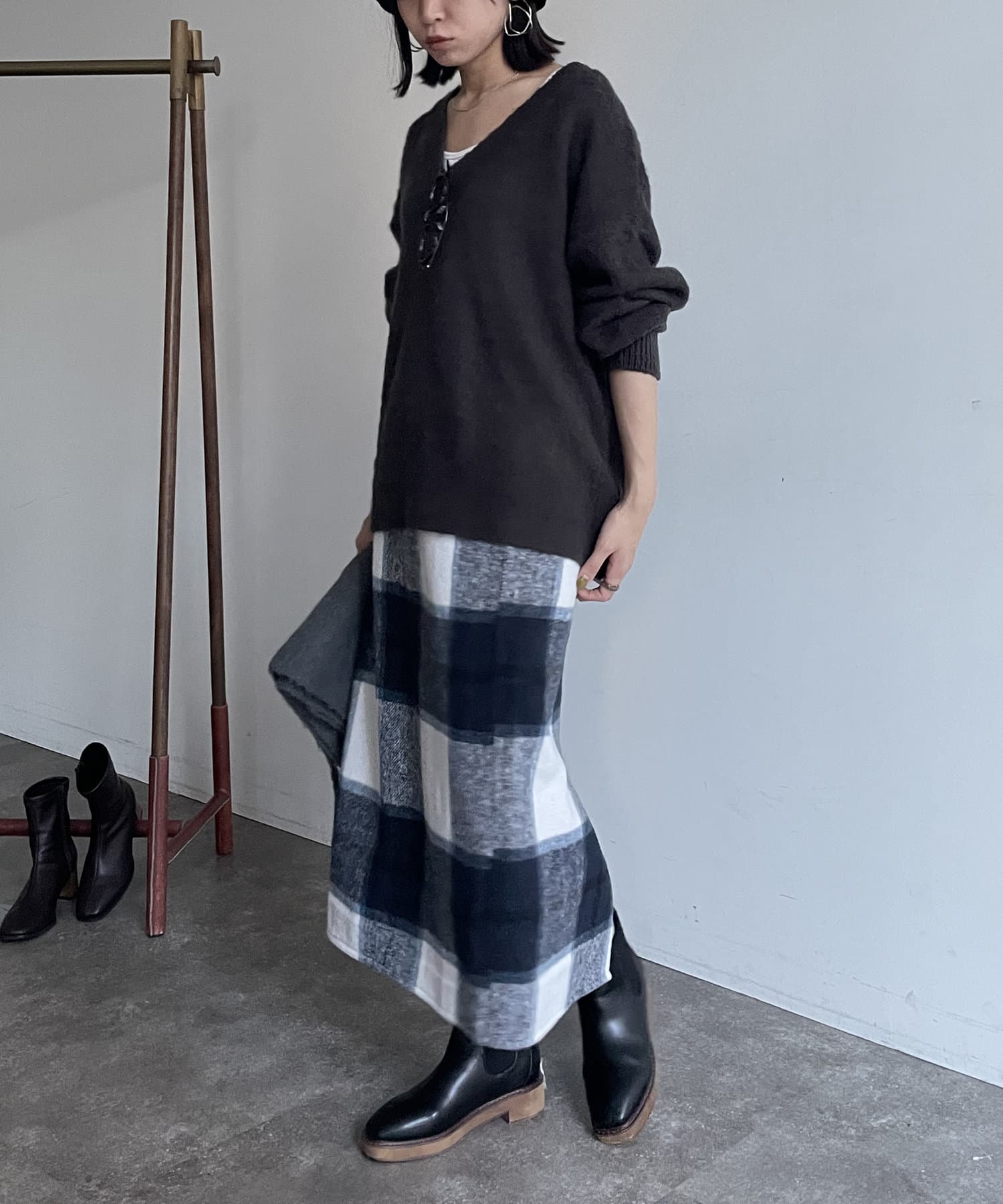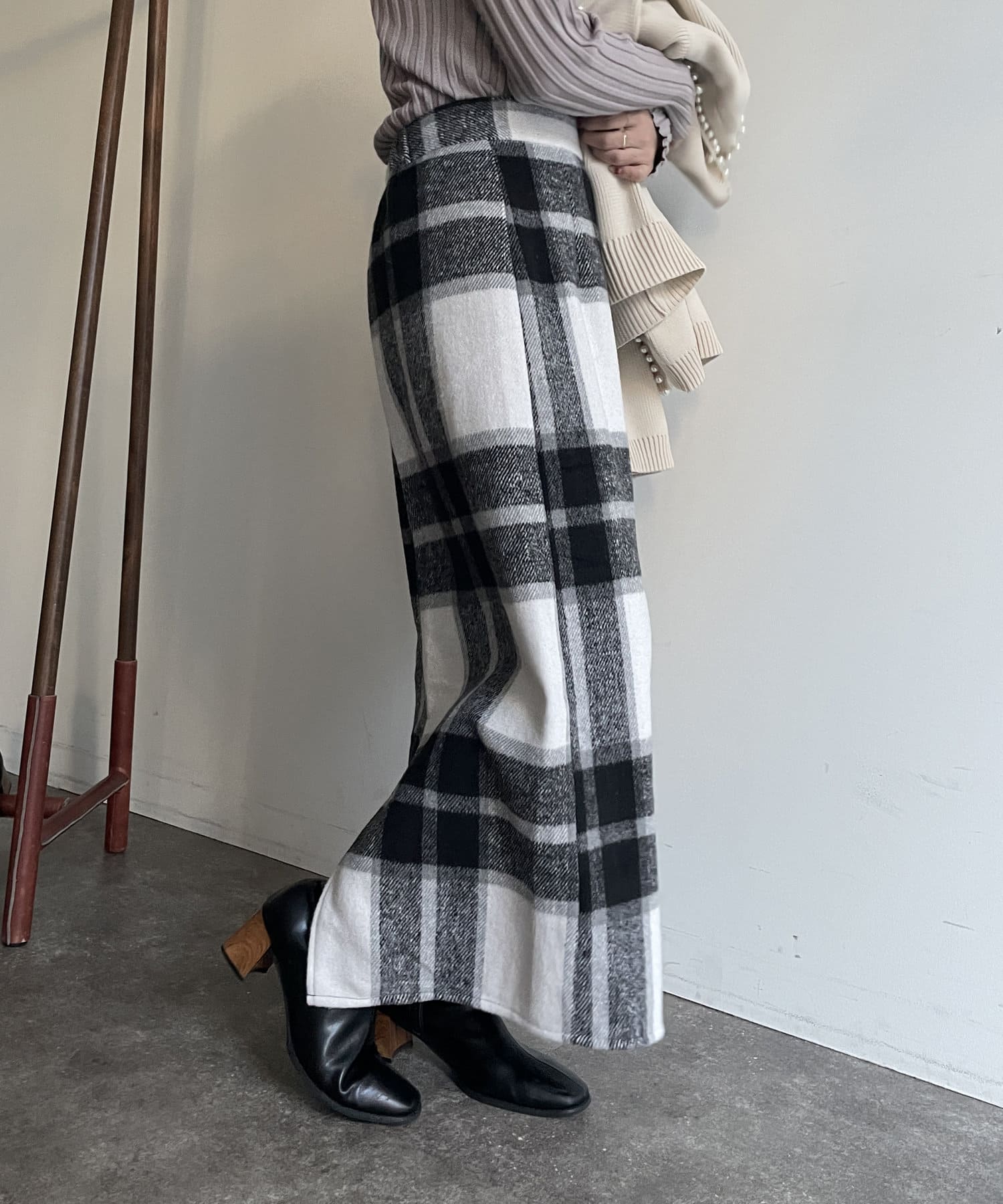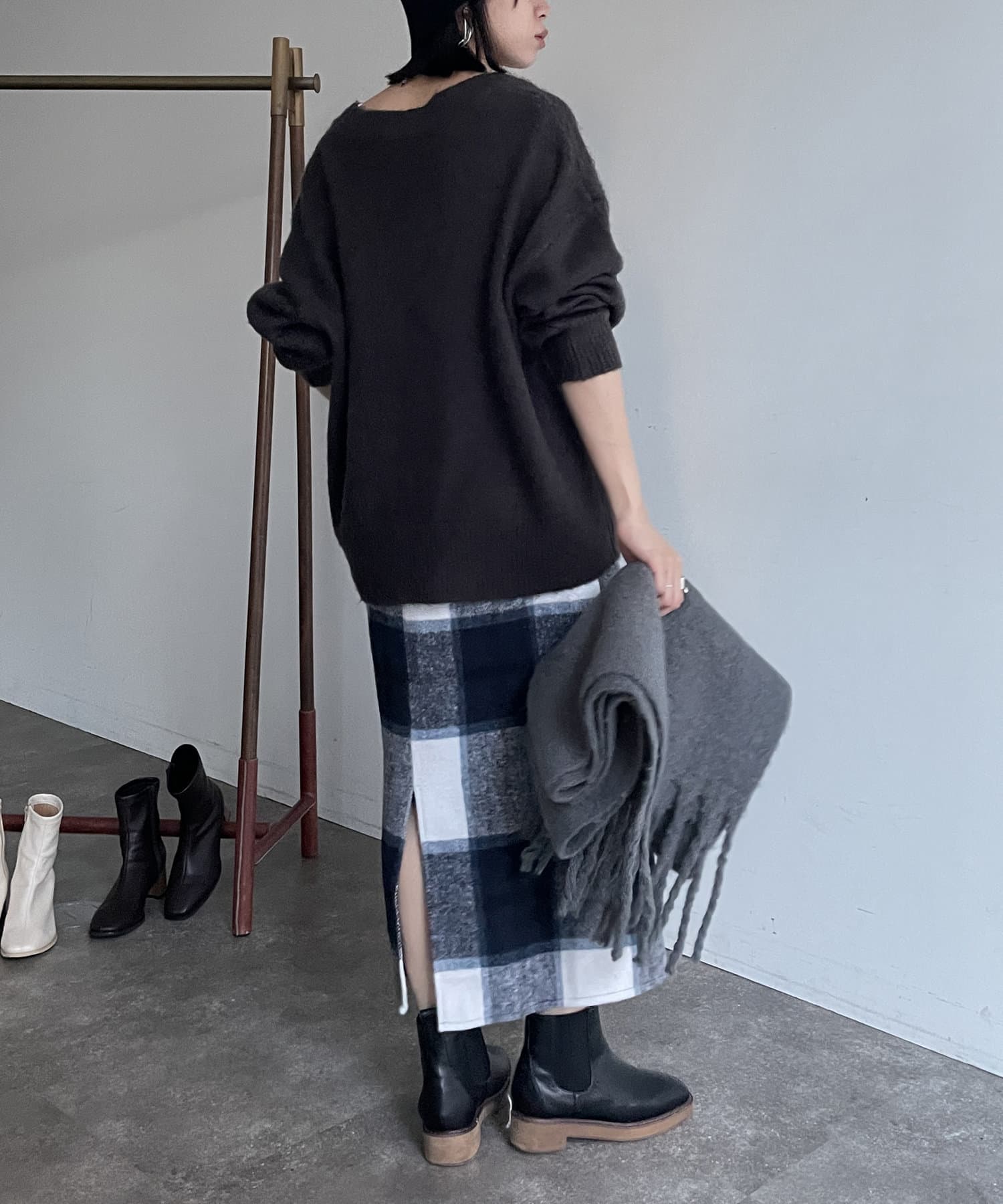 ・大きめのチェック柄と表面の起毛感が秋冬らしい印象に