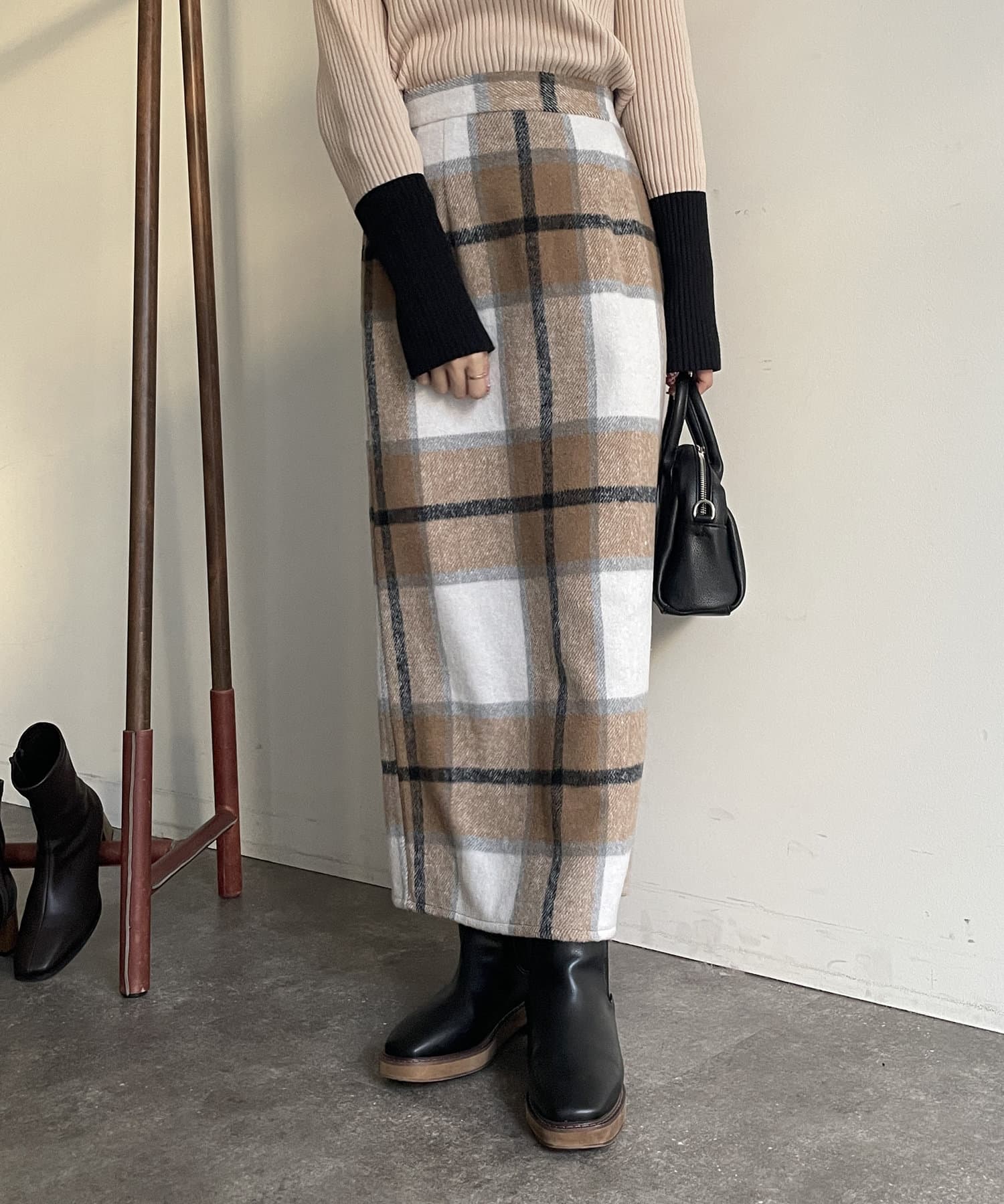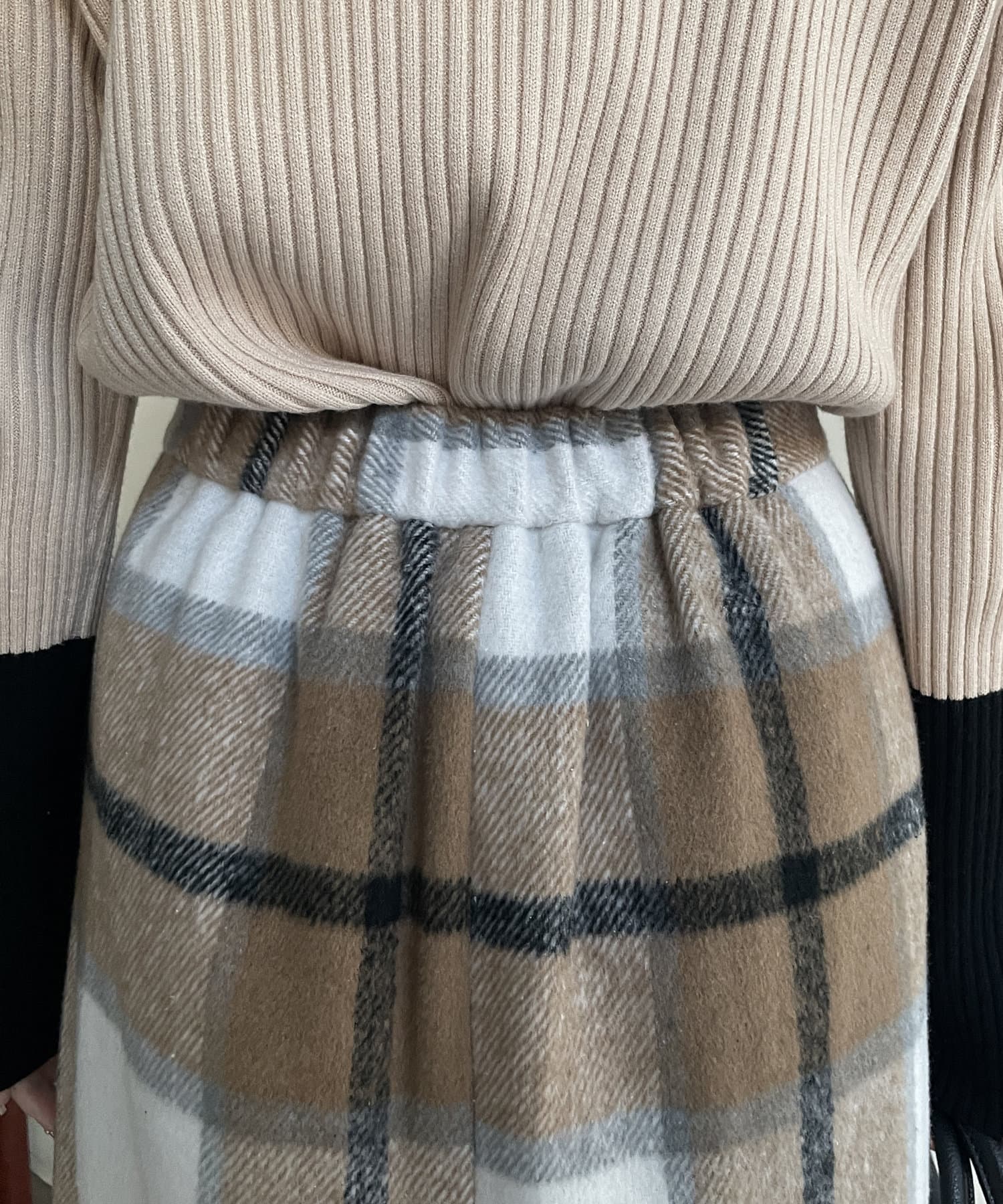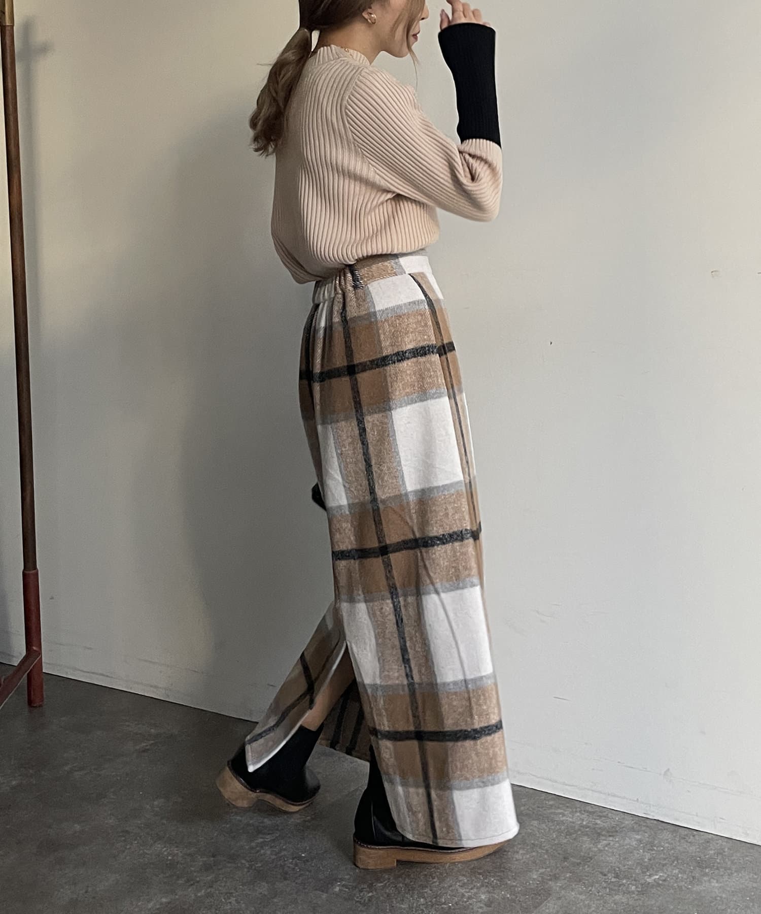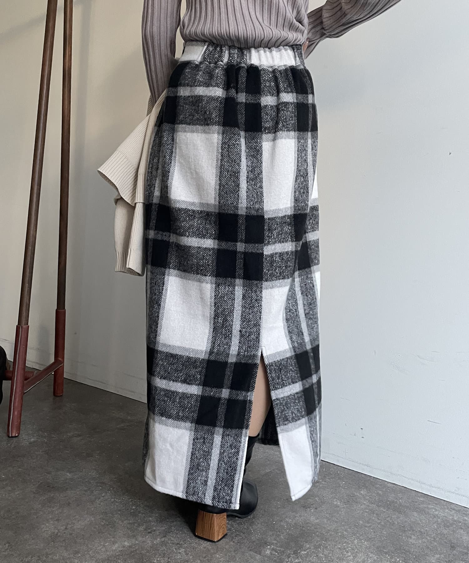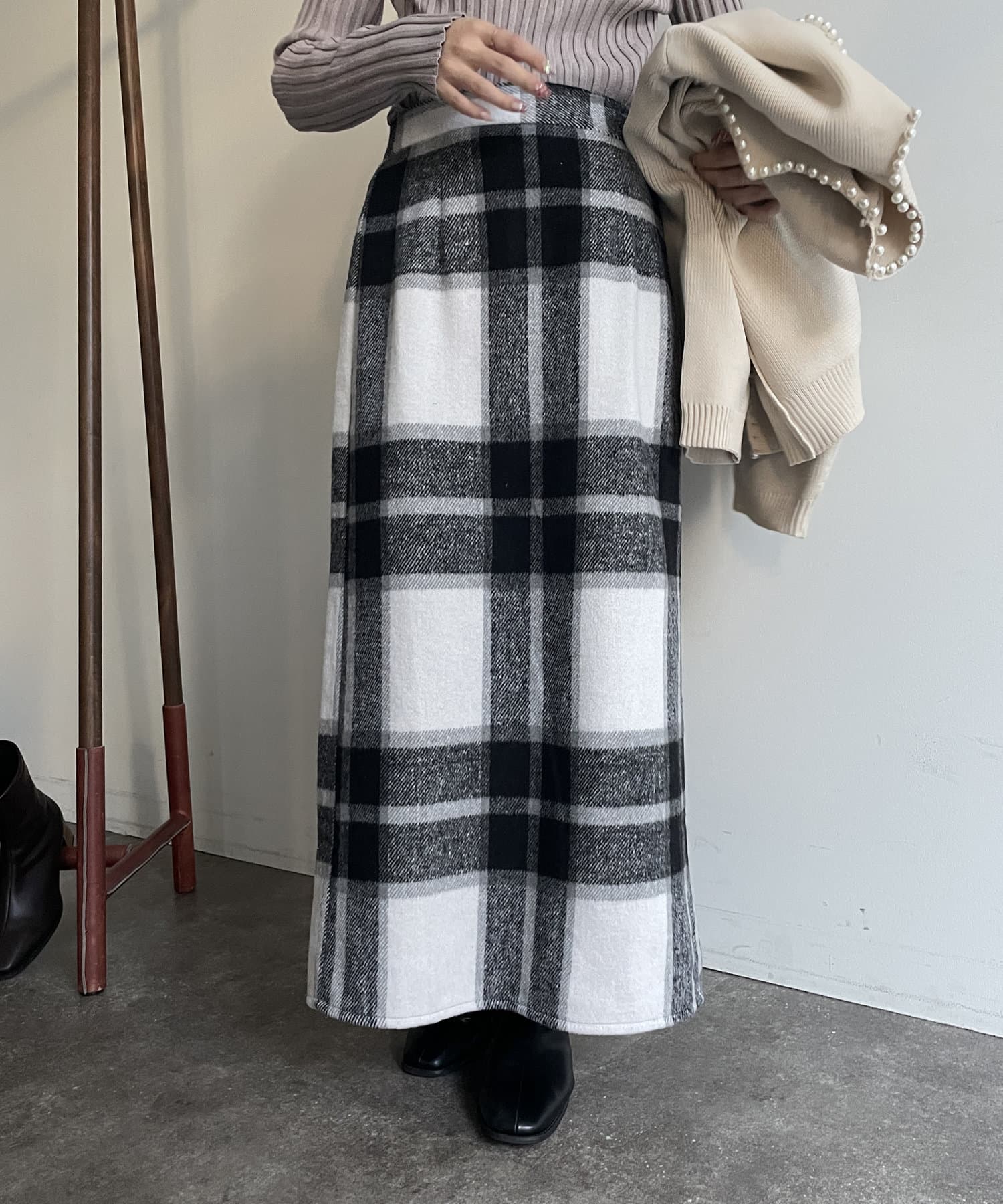 ・大きめのチェック柄と表面の起毛感が秋冬らしい印象に