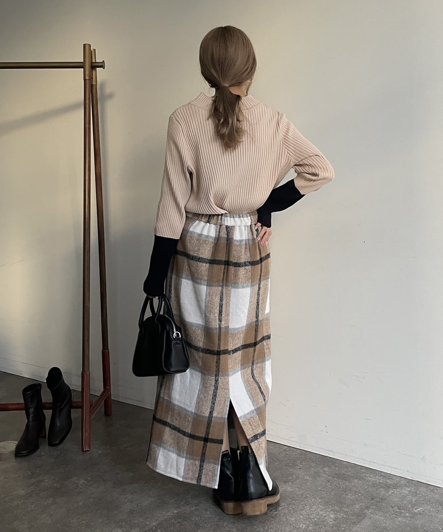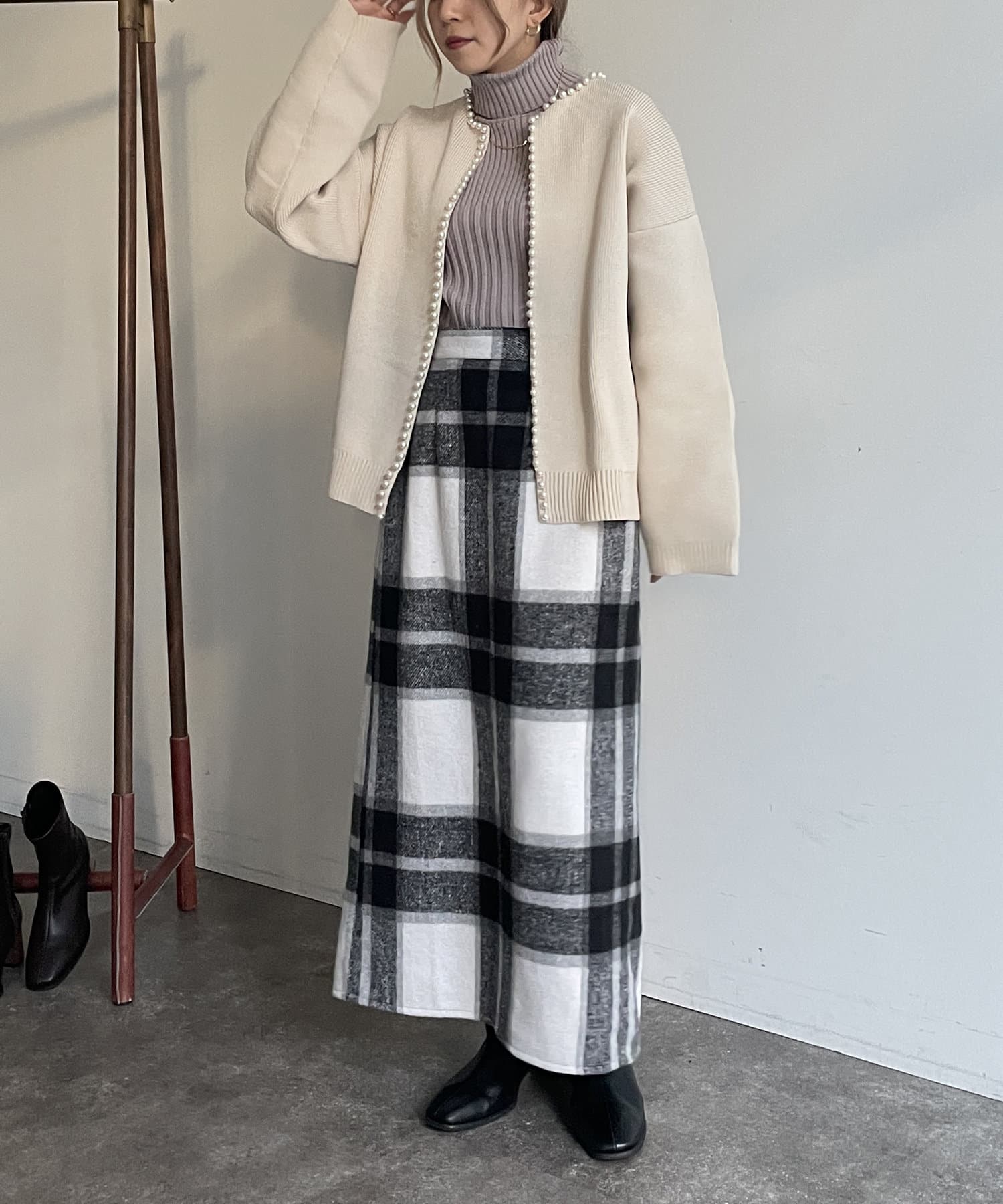 ・大きめの柄が魅力なのでシンプルなリブニットを合わせたり、