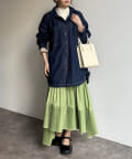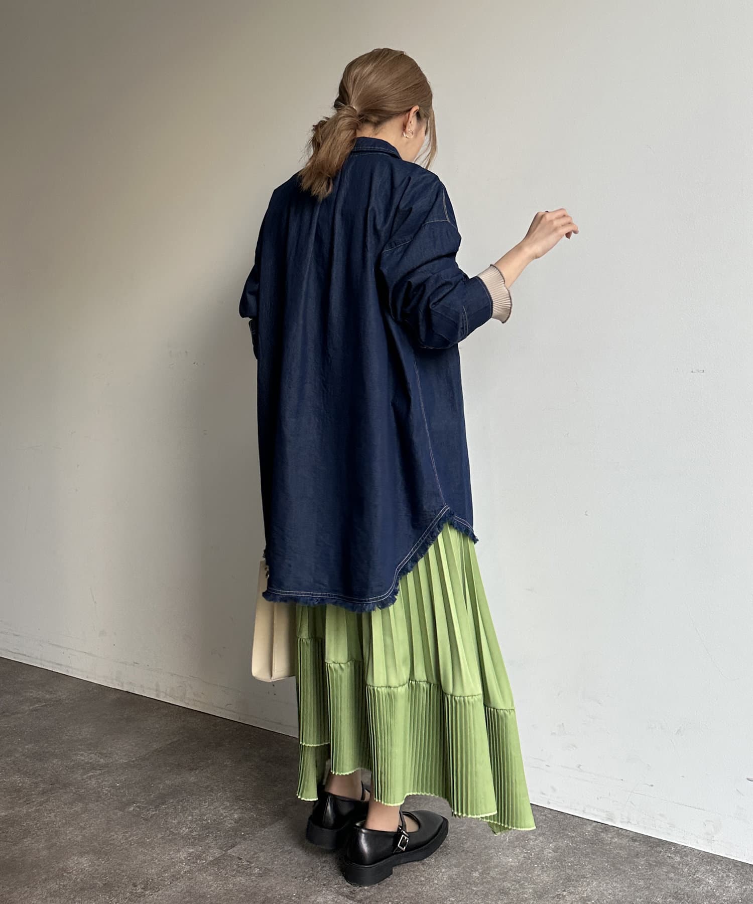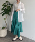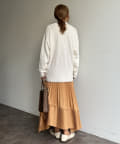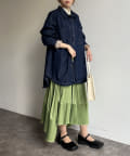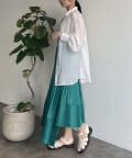 ・ハリのある生地と裾切替で程よく広がるシルエットに
