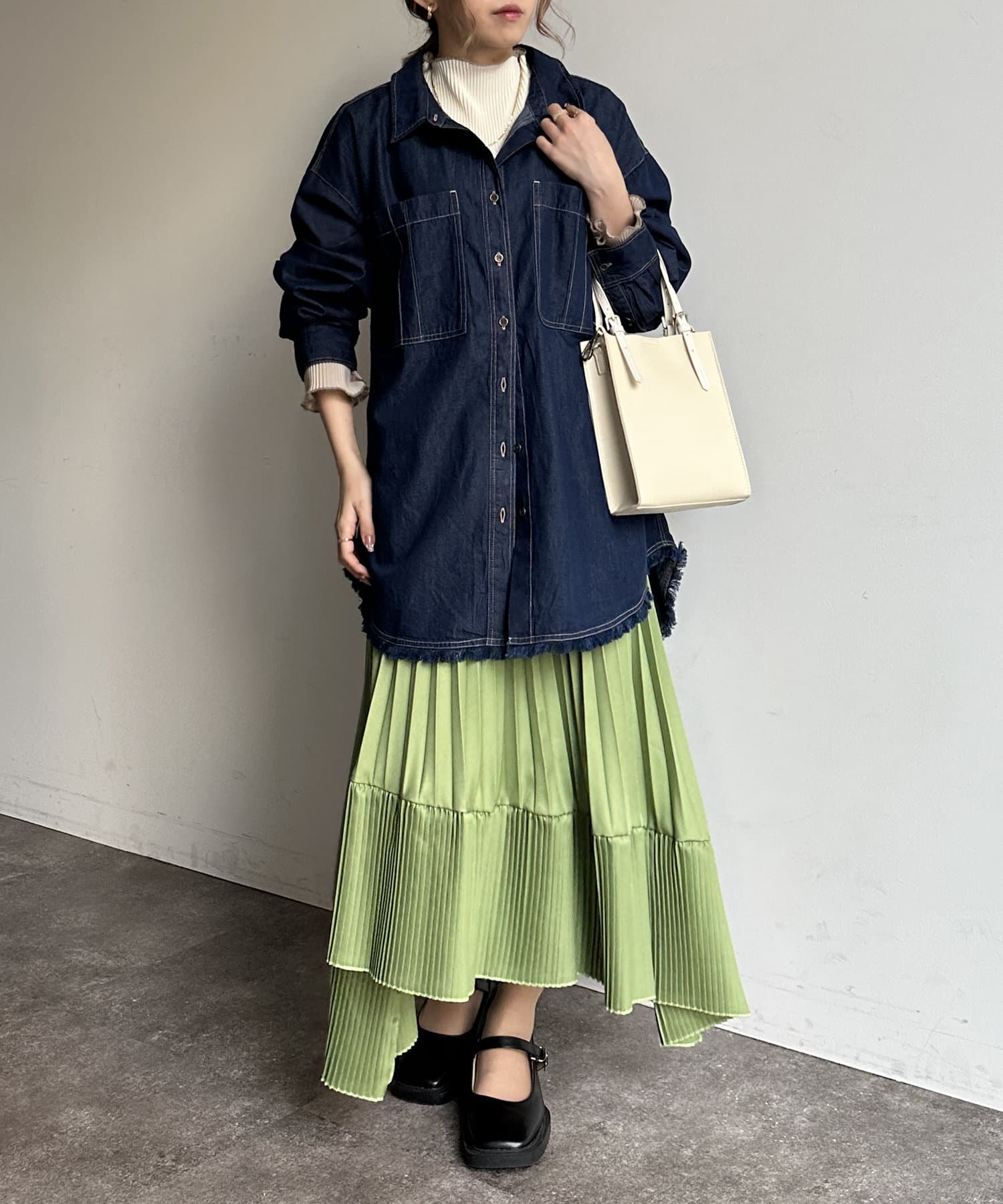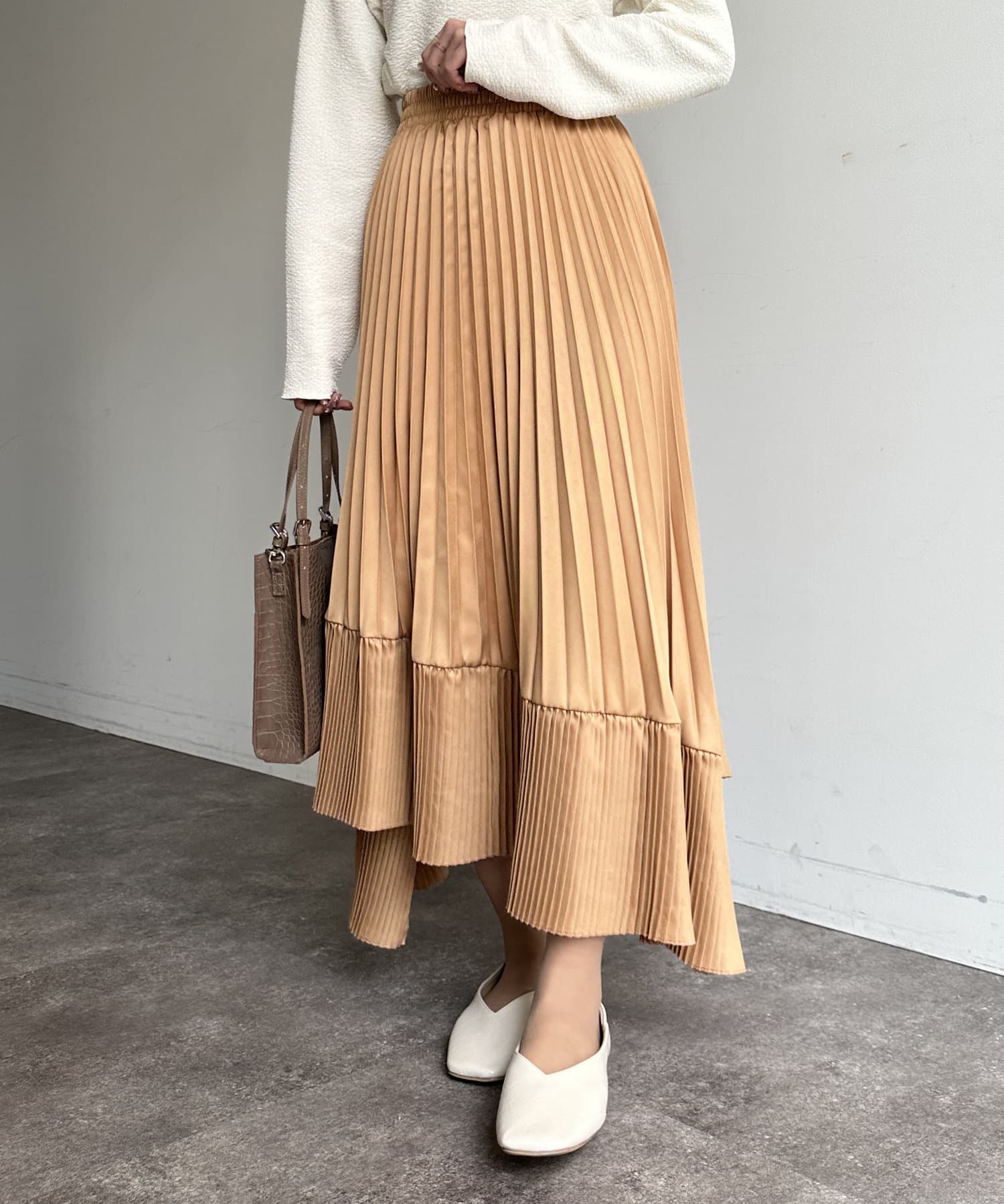・ランダムなプリーツ切替デザインが魅力のスカート