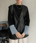 • Thevon.(ゼヴォン) サイドオープン合皮Vベスト