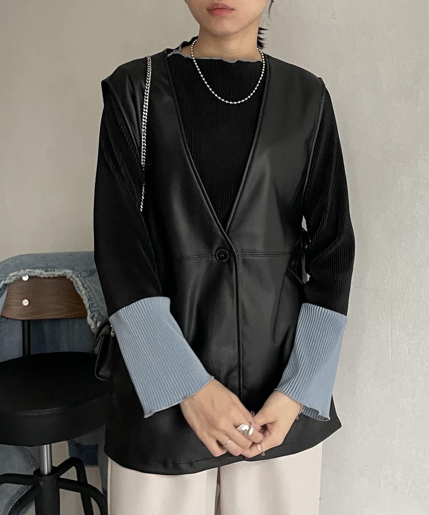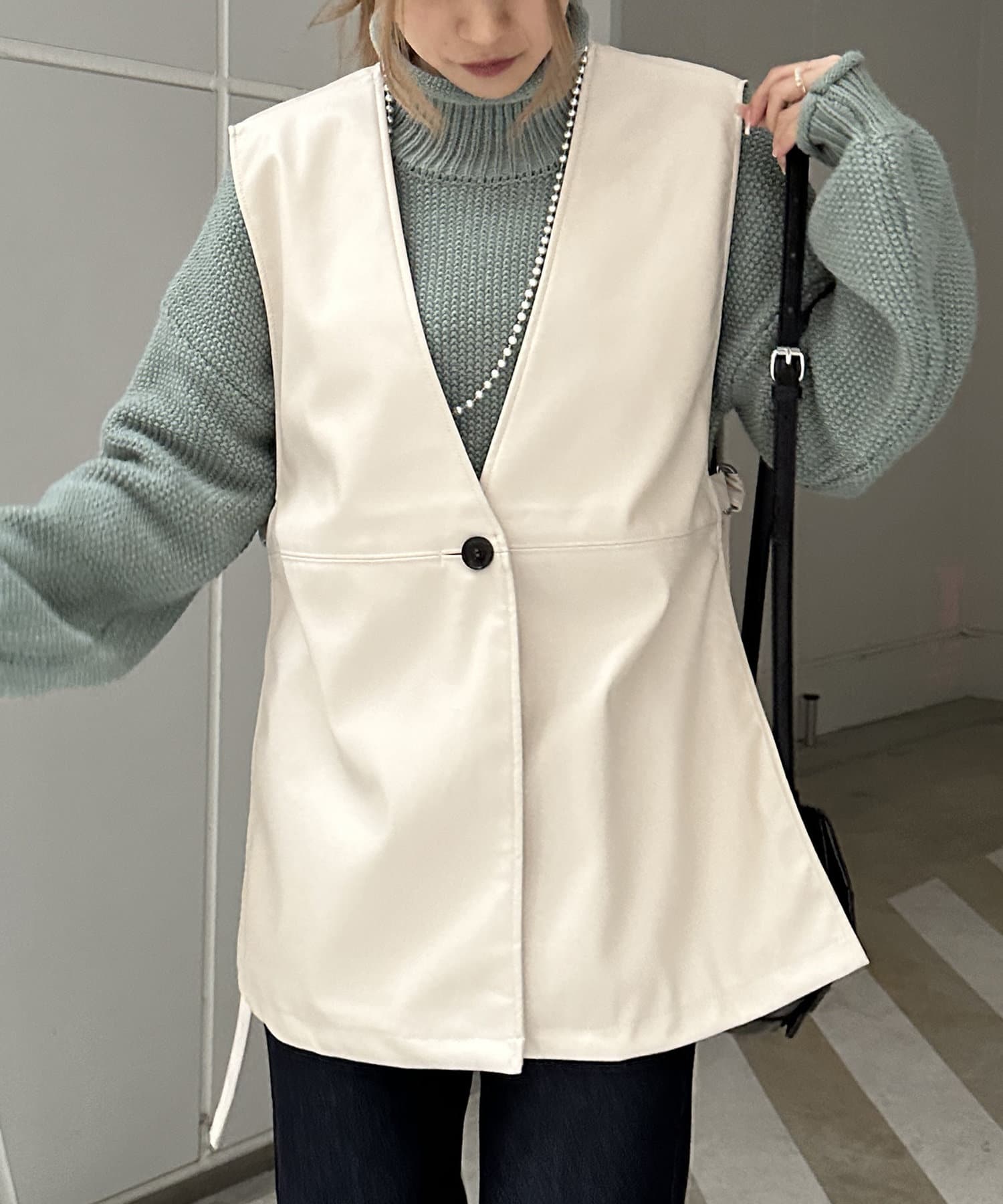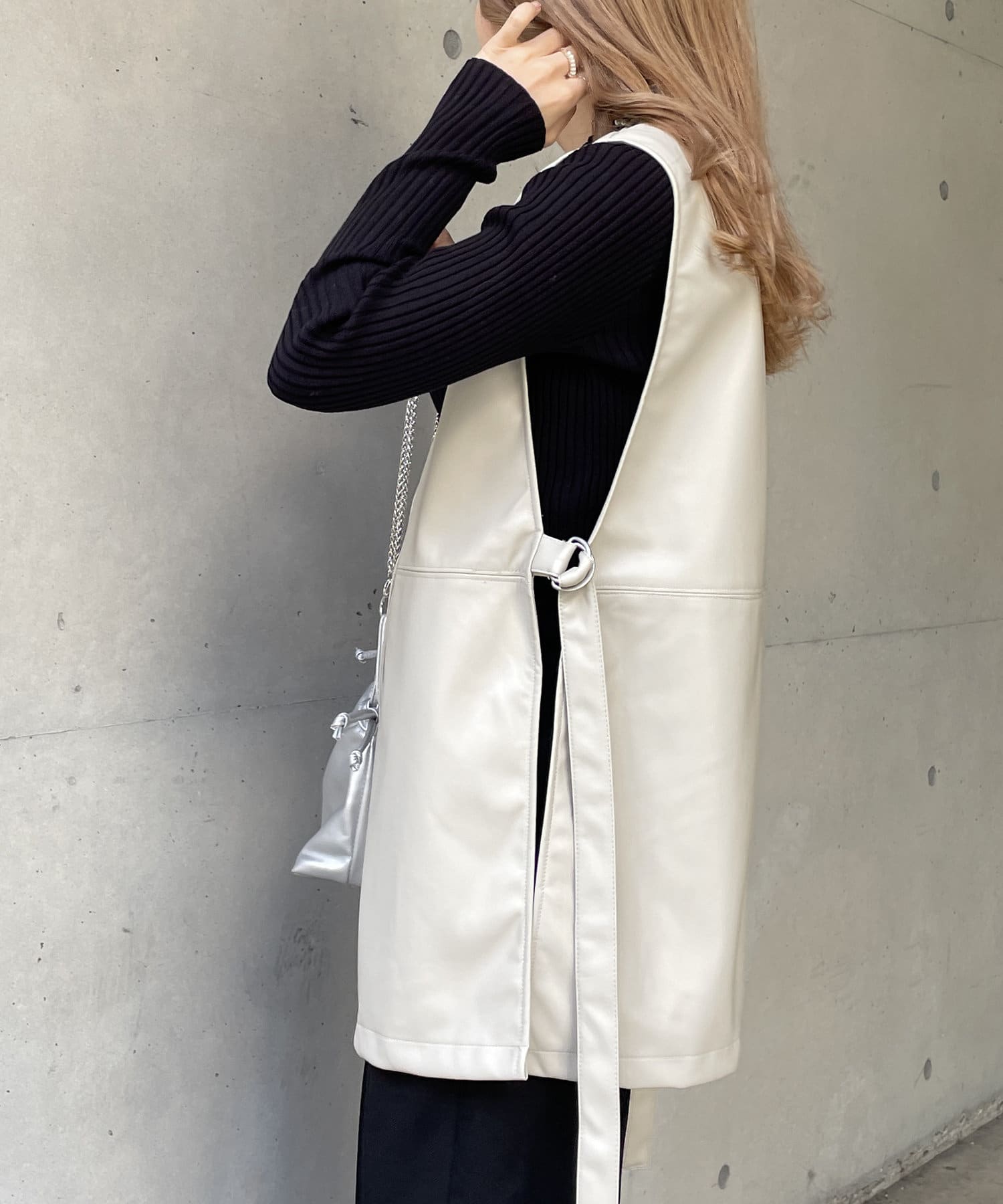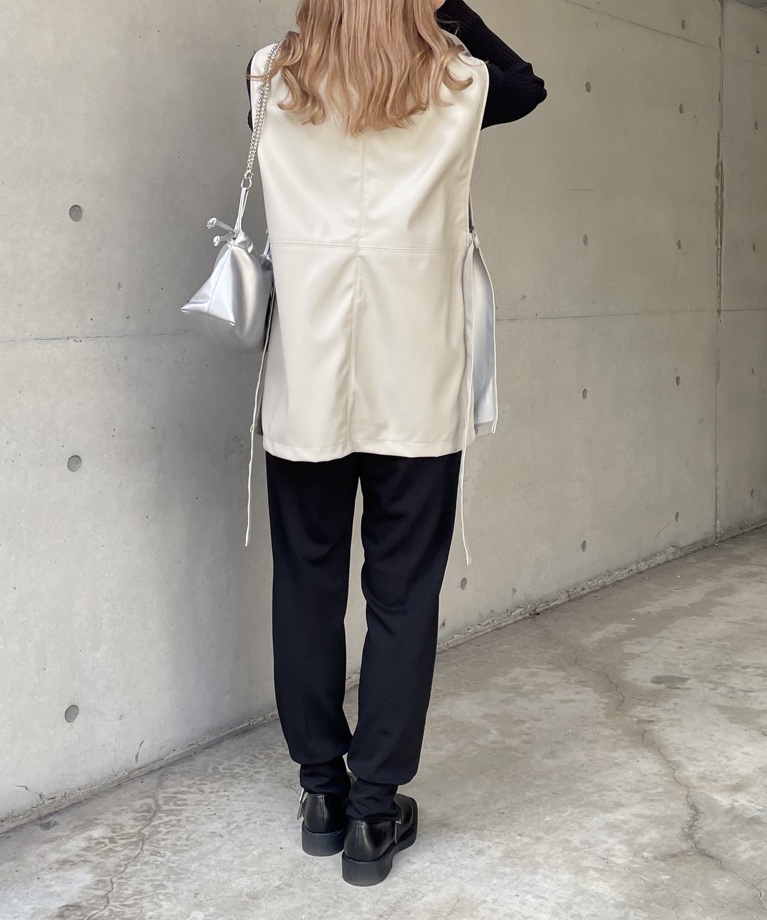 TOP > Thevon. > レディース > トップス > ベスト/ジレ > サイドオープン合皮Vベスト