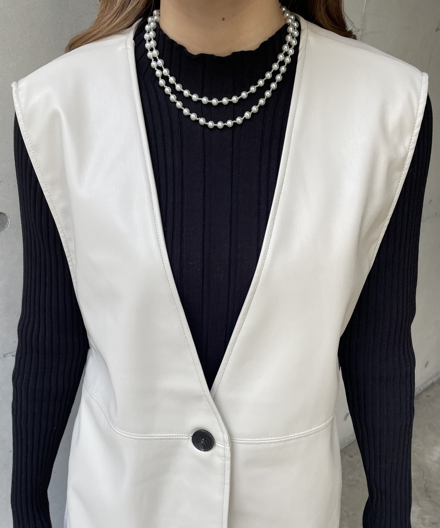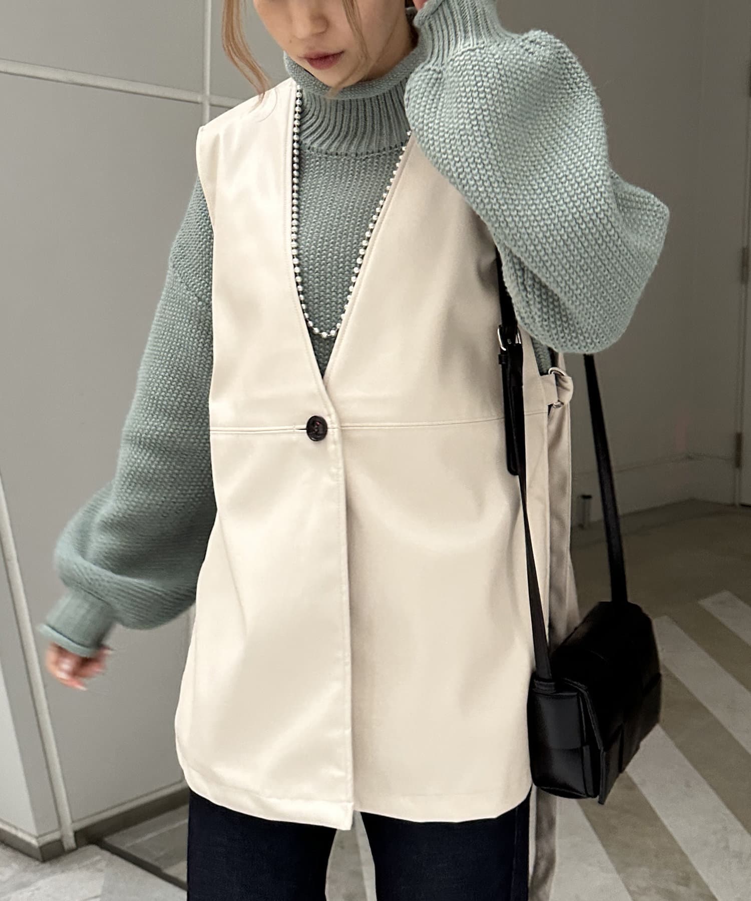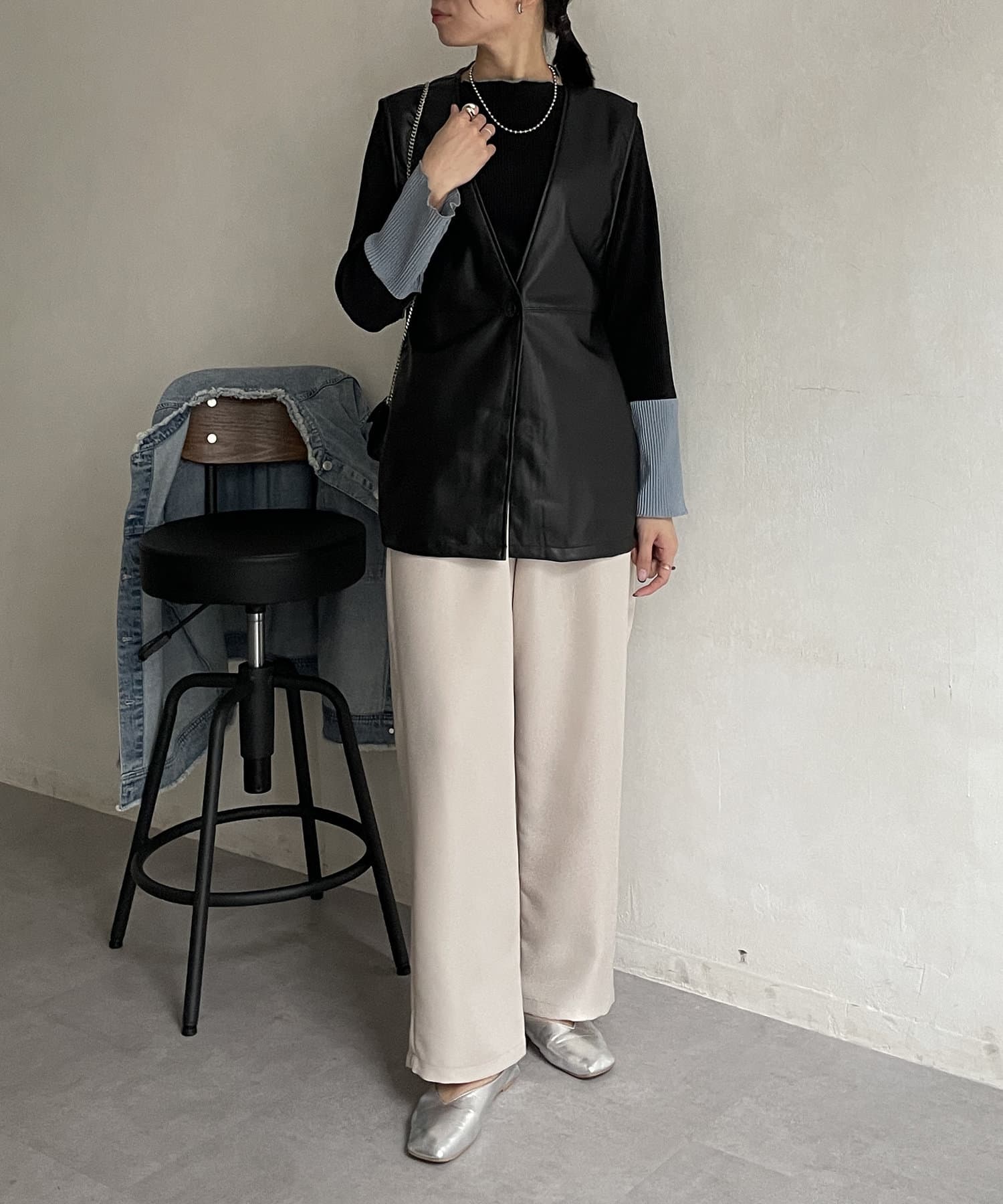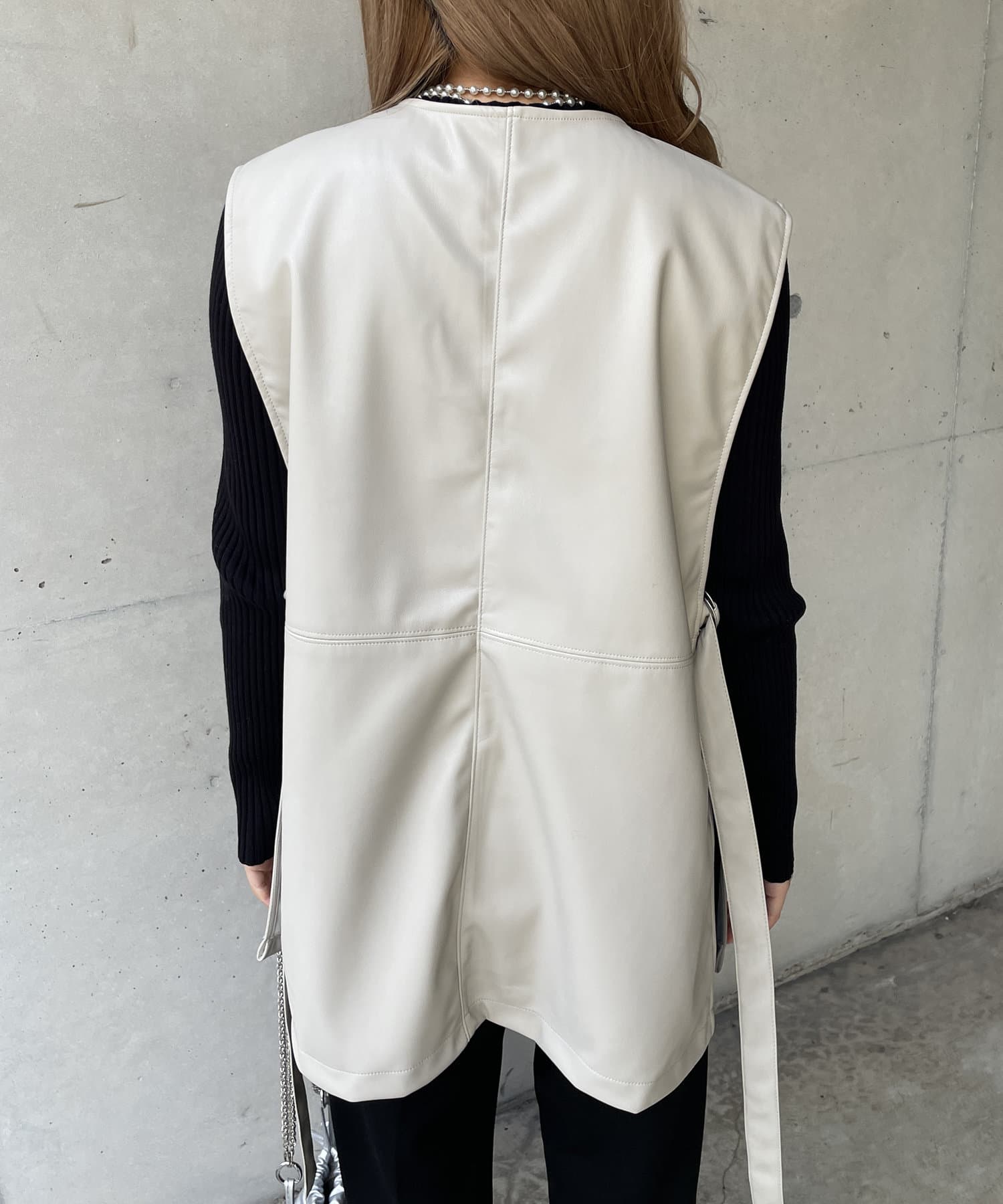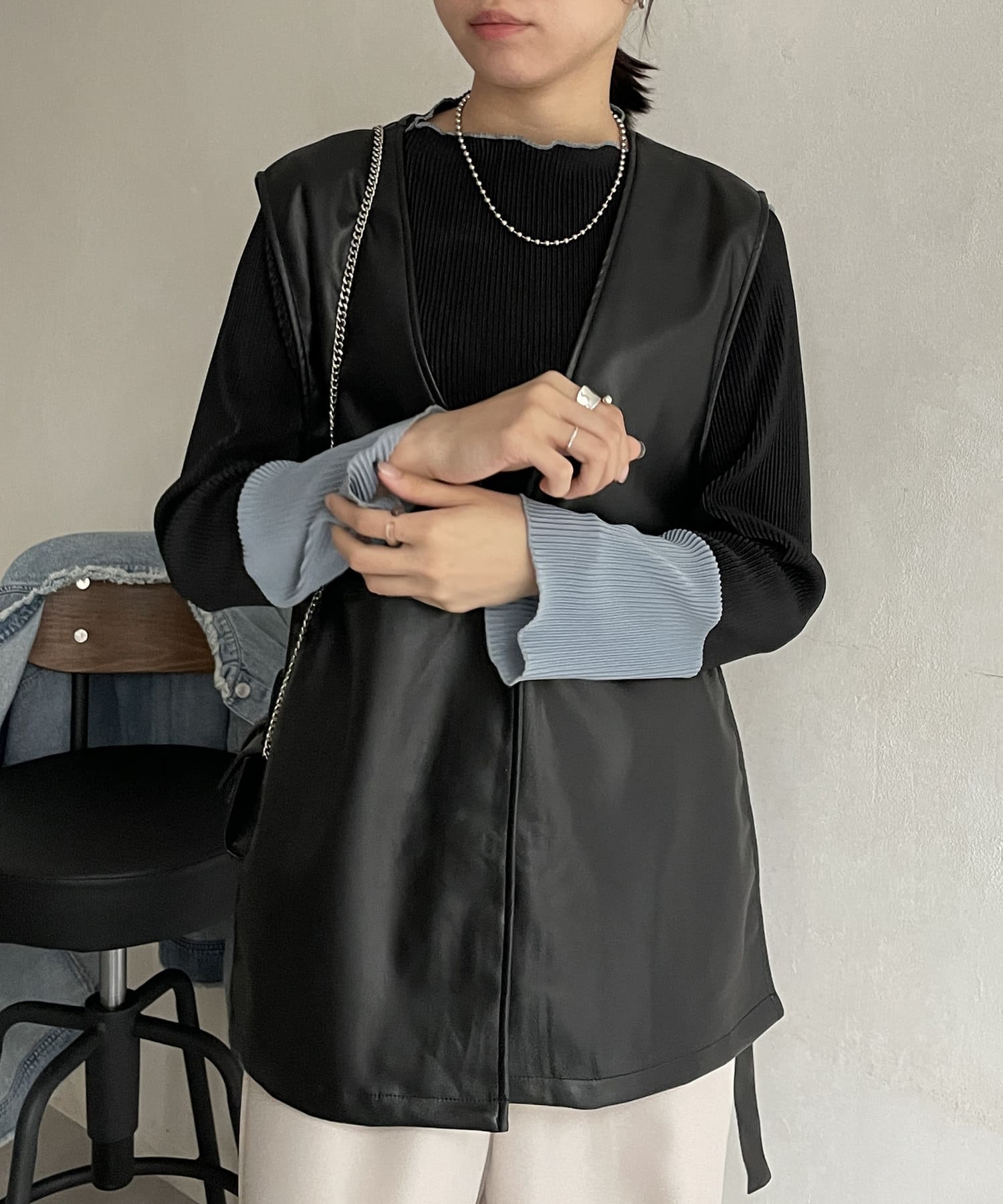 TOP > Thevon. > レディース > トップス > ベスト/ジレ > サイドオープン合皮Vベスト