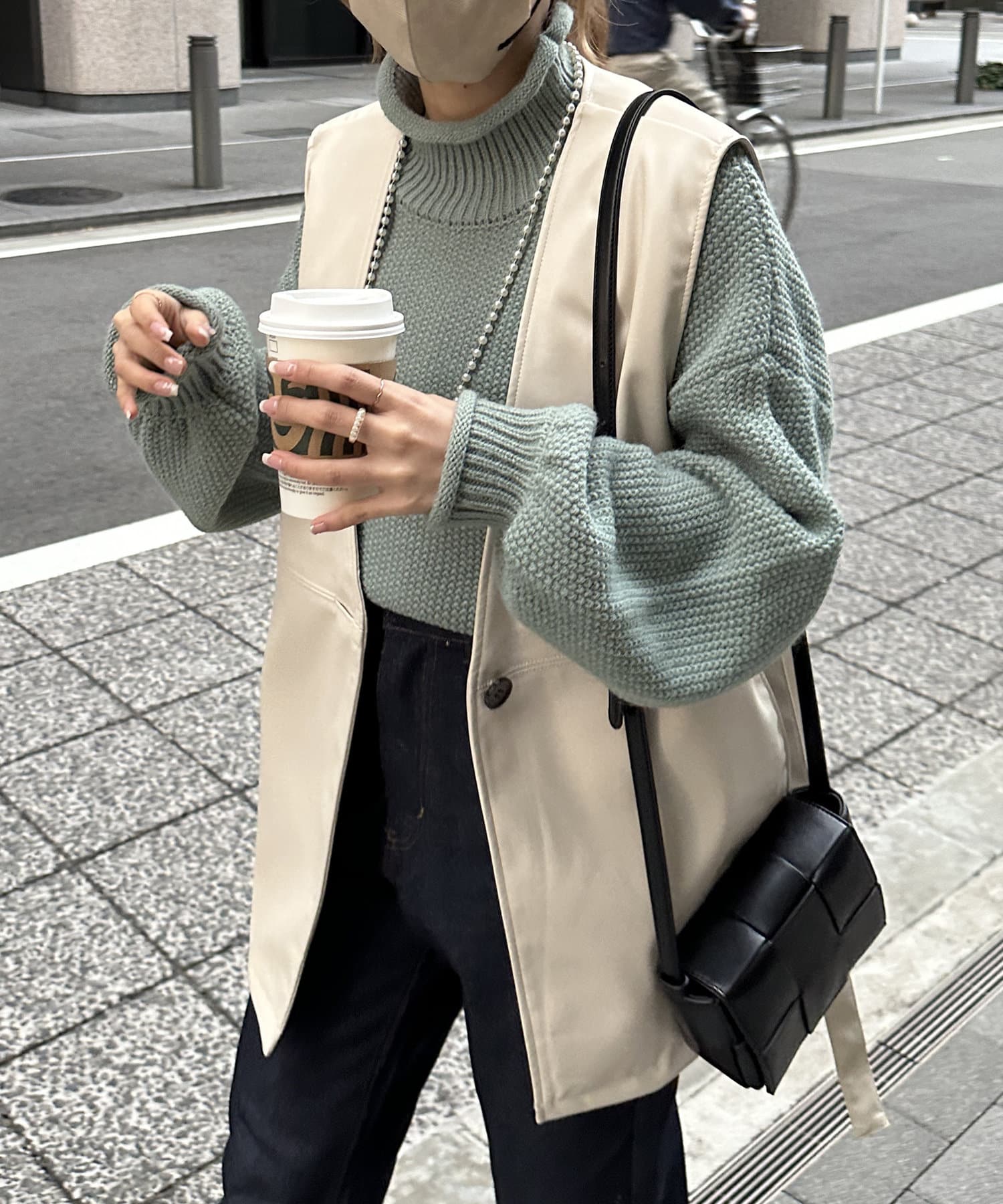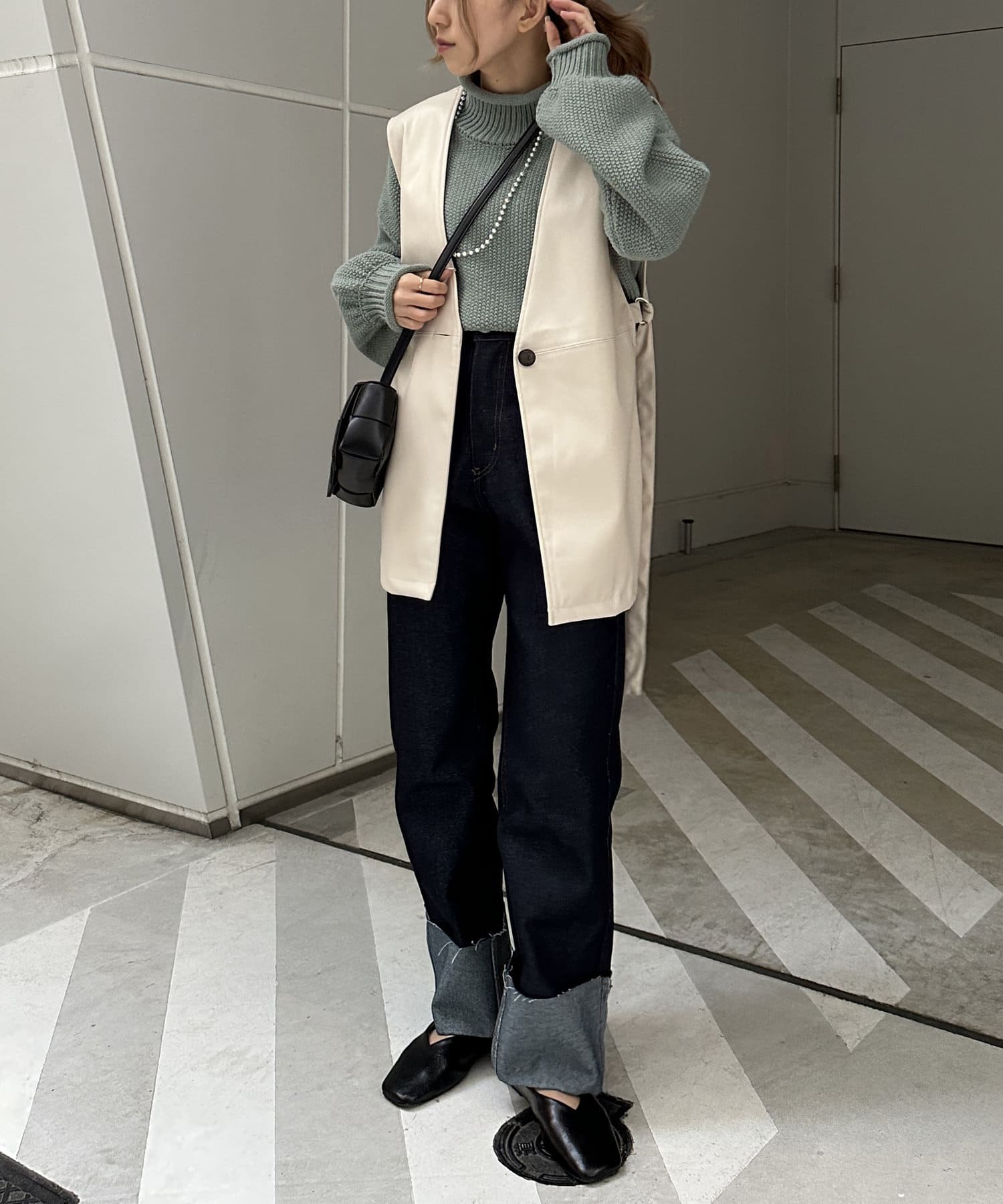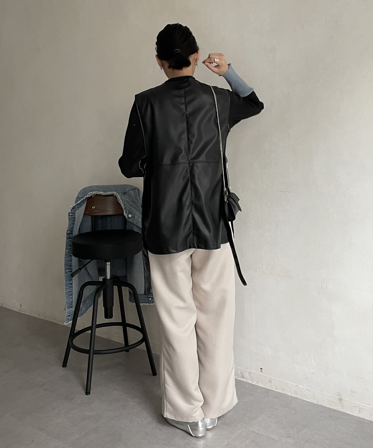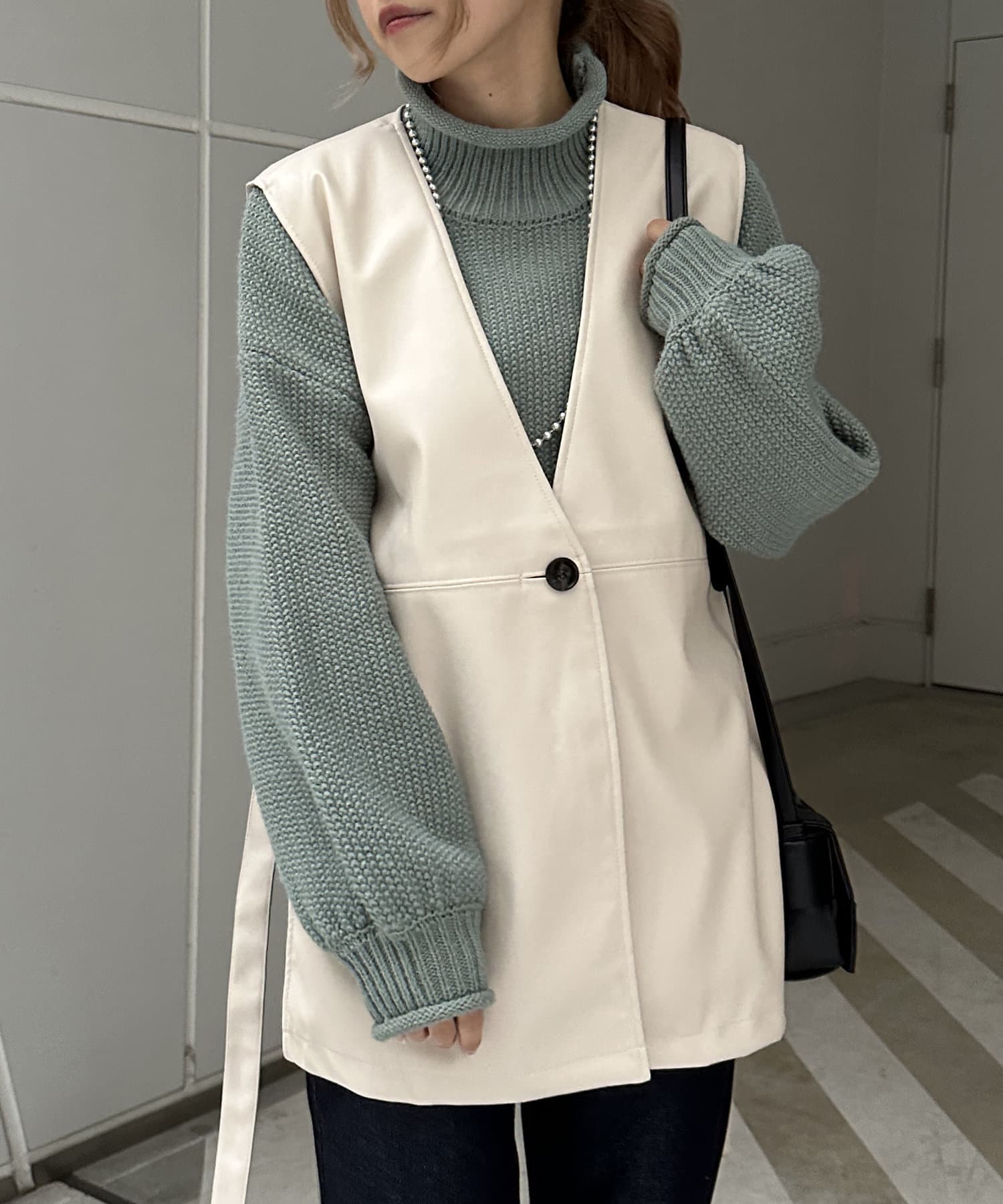 TOP > Thevon. > レディース > トップス > ベスト/ジレ > サイドオープン合皮Vベスト