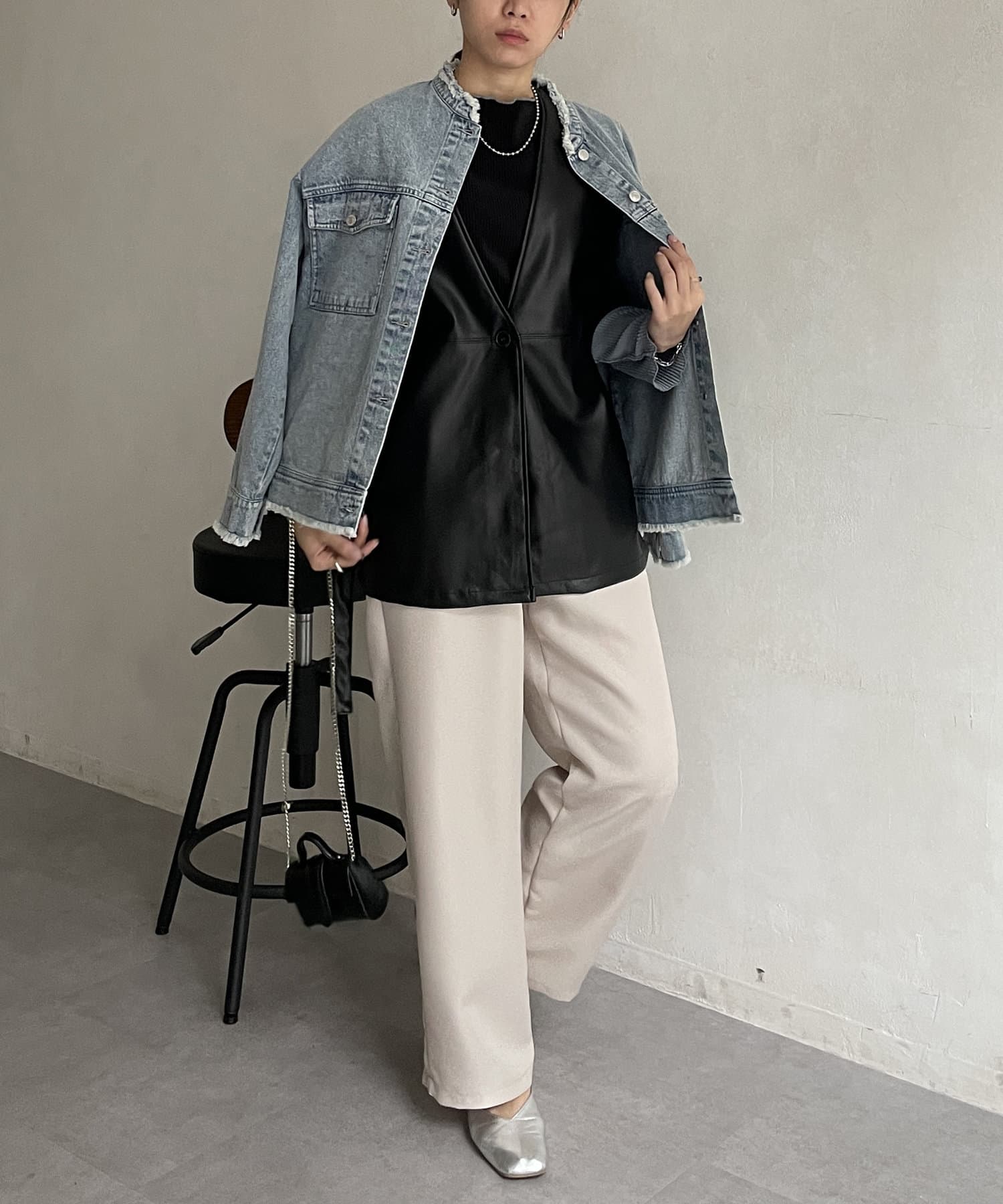 ・カジュアルコーデでも羽織るだけでモードな雰囲気に様変わりします。