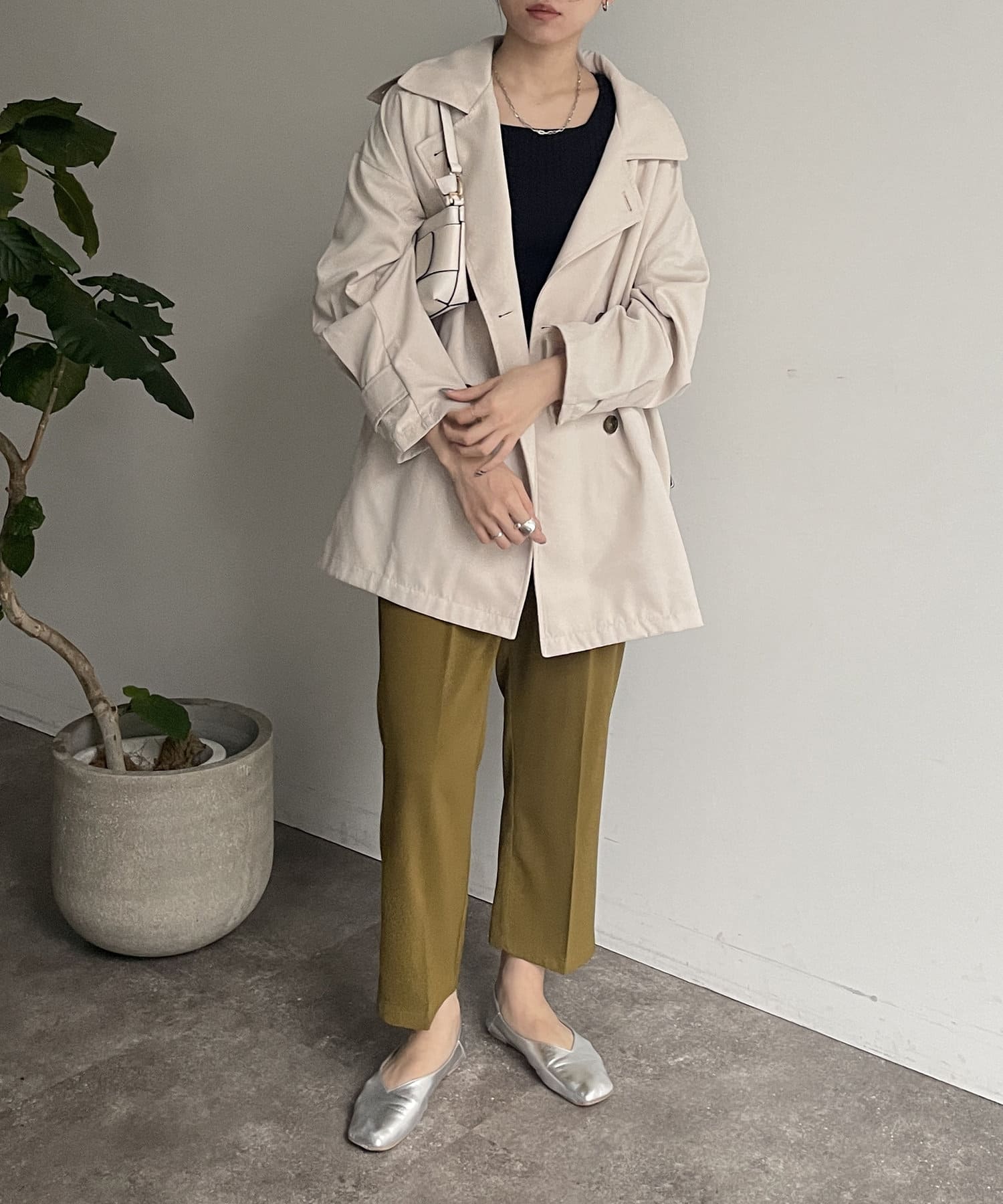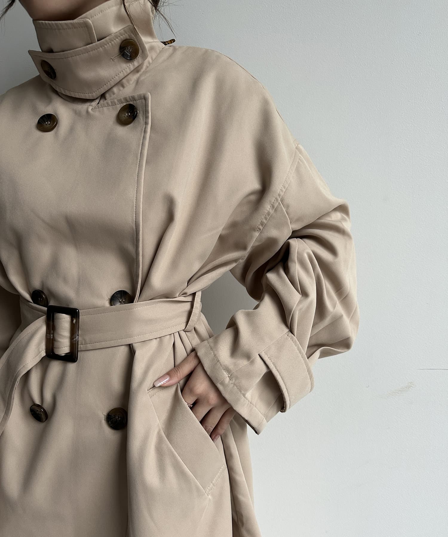 #ミドル丈 #トレンチ #スタンドネック #ジャケット