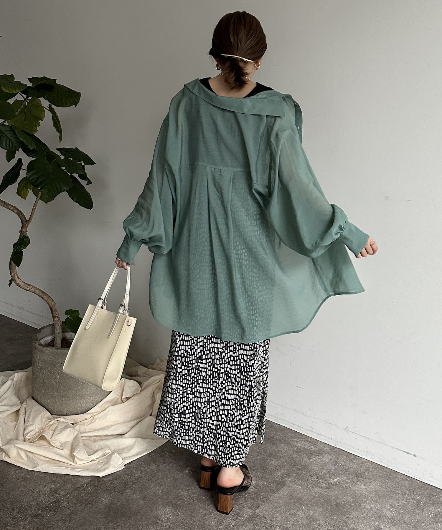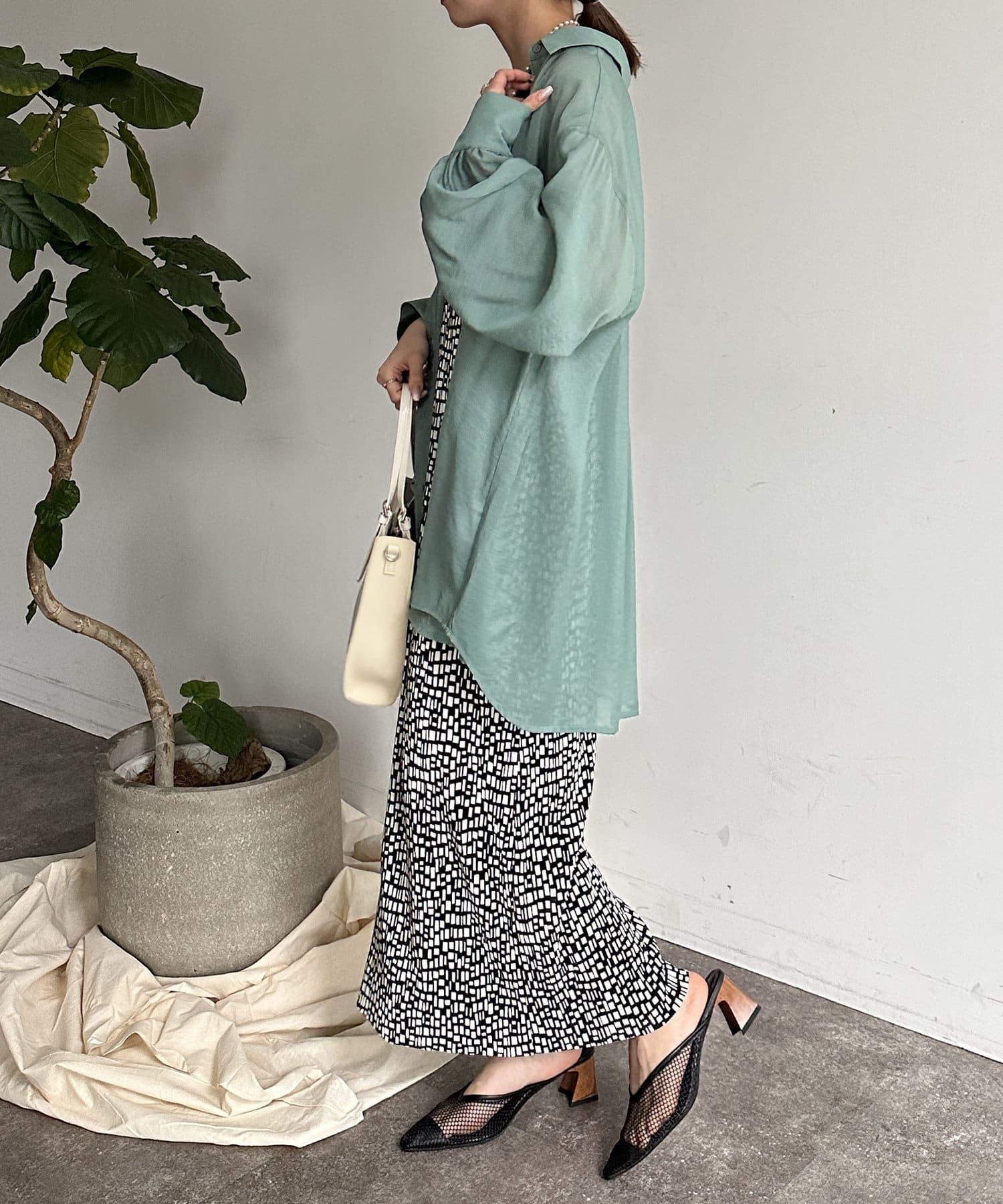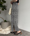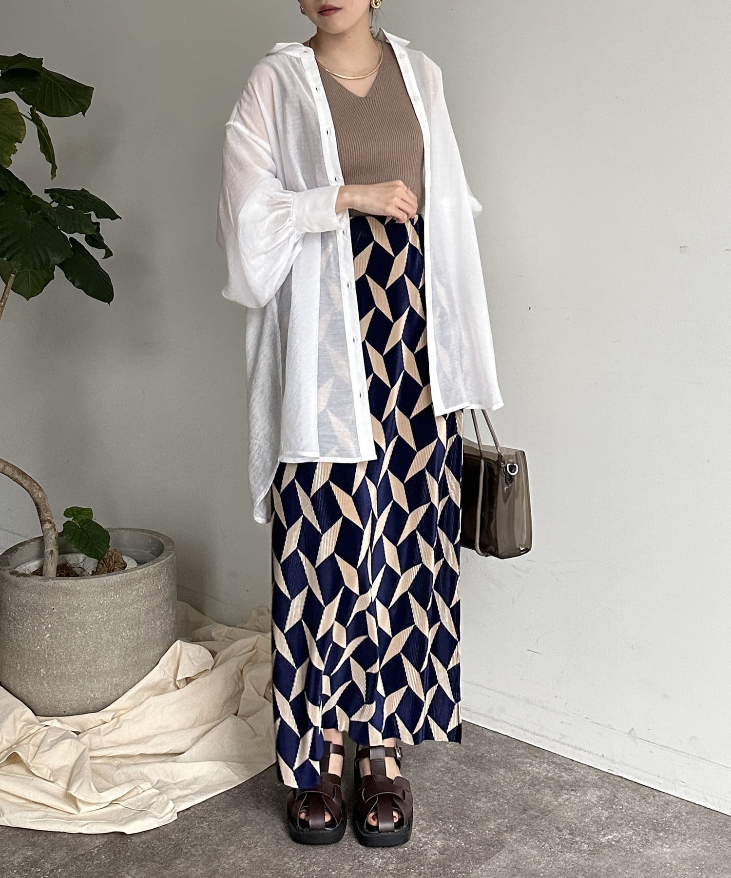 ・柄スカートを主役に、その他はベーシックなアイテムを合わせるだけで様になります。