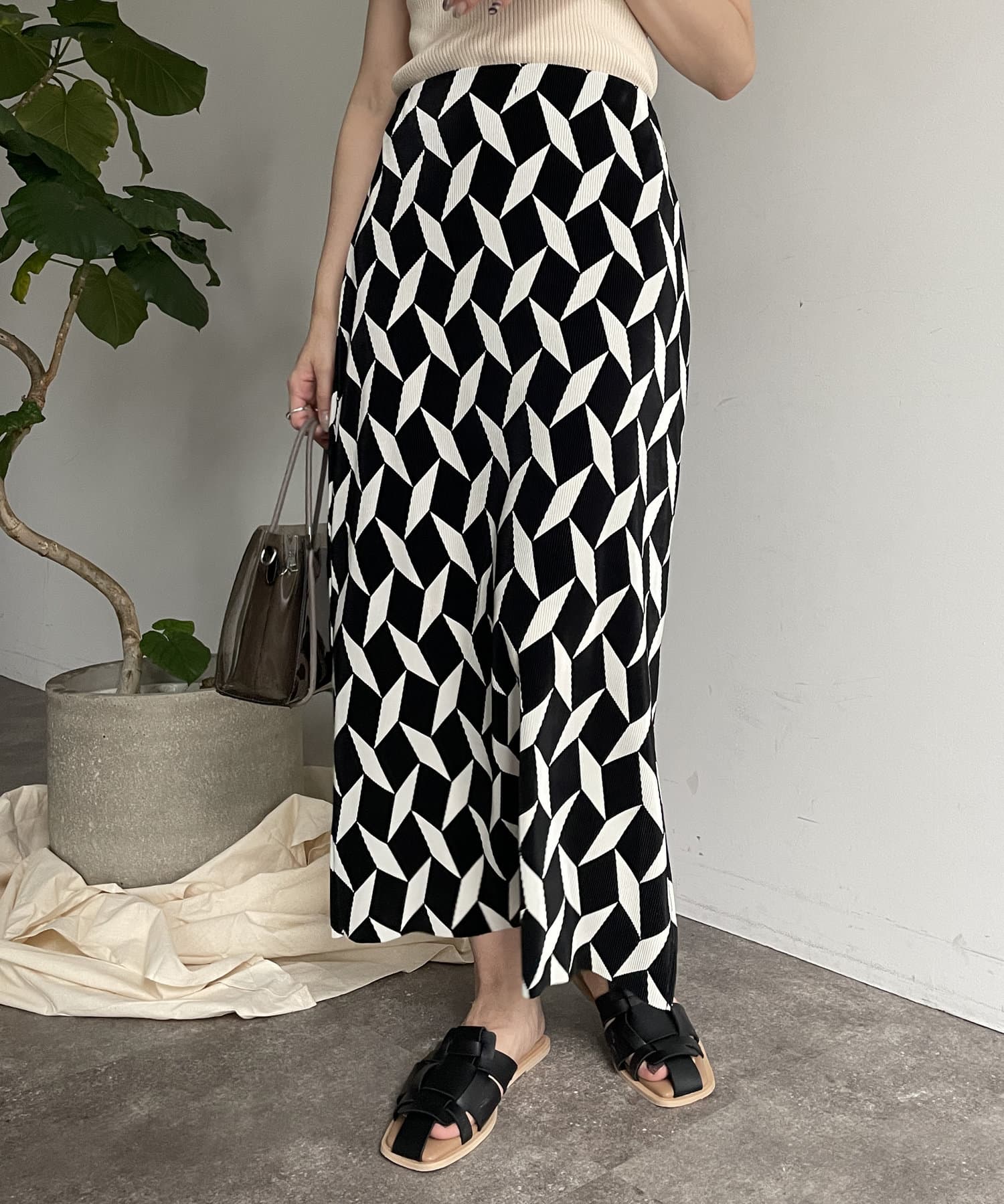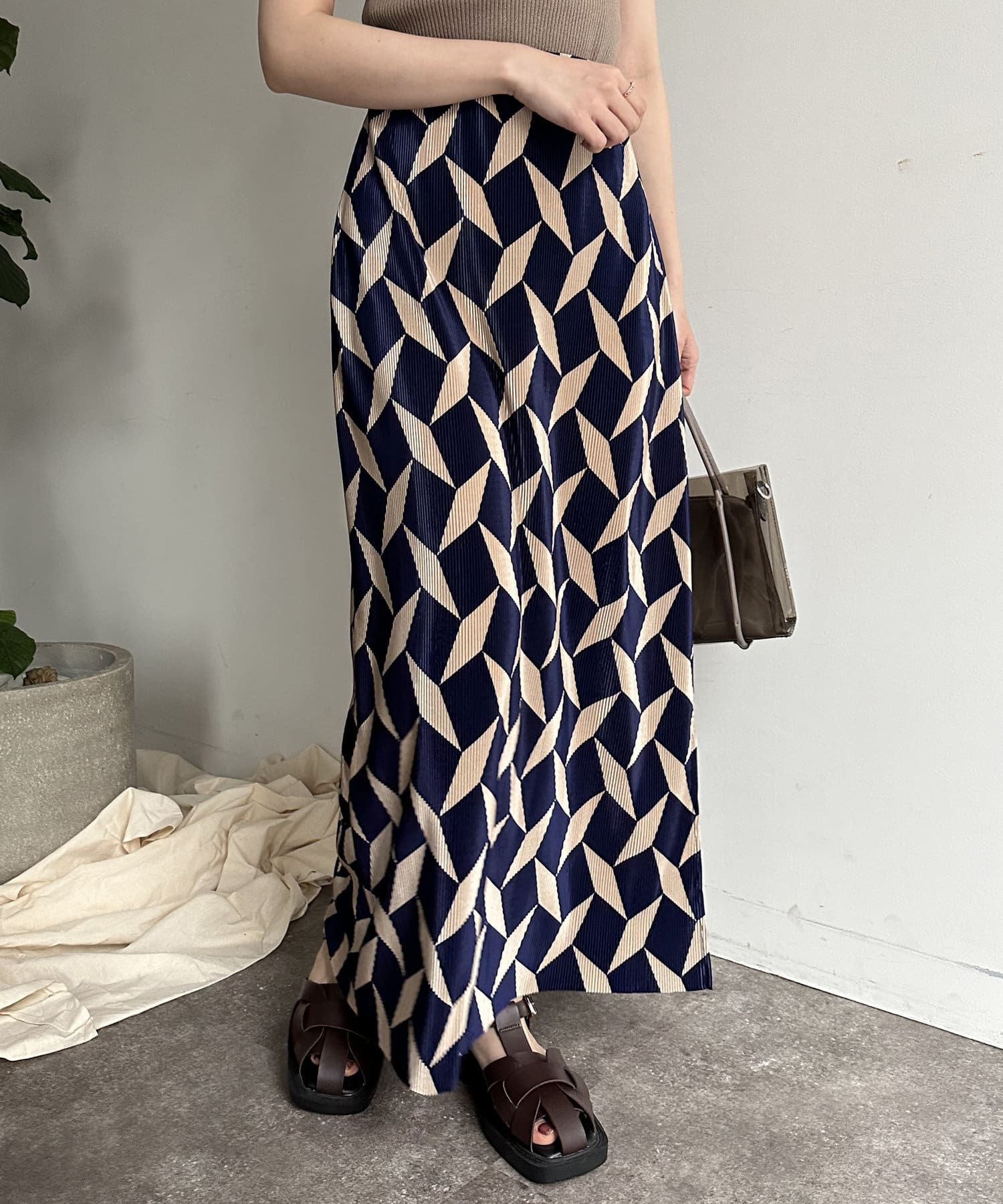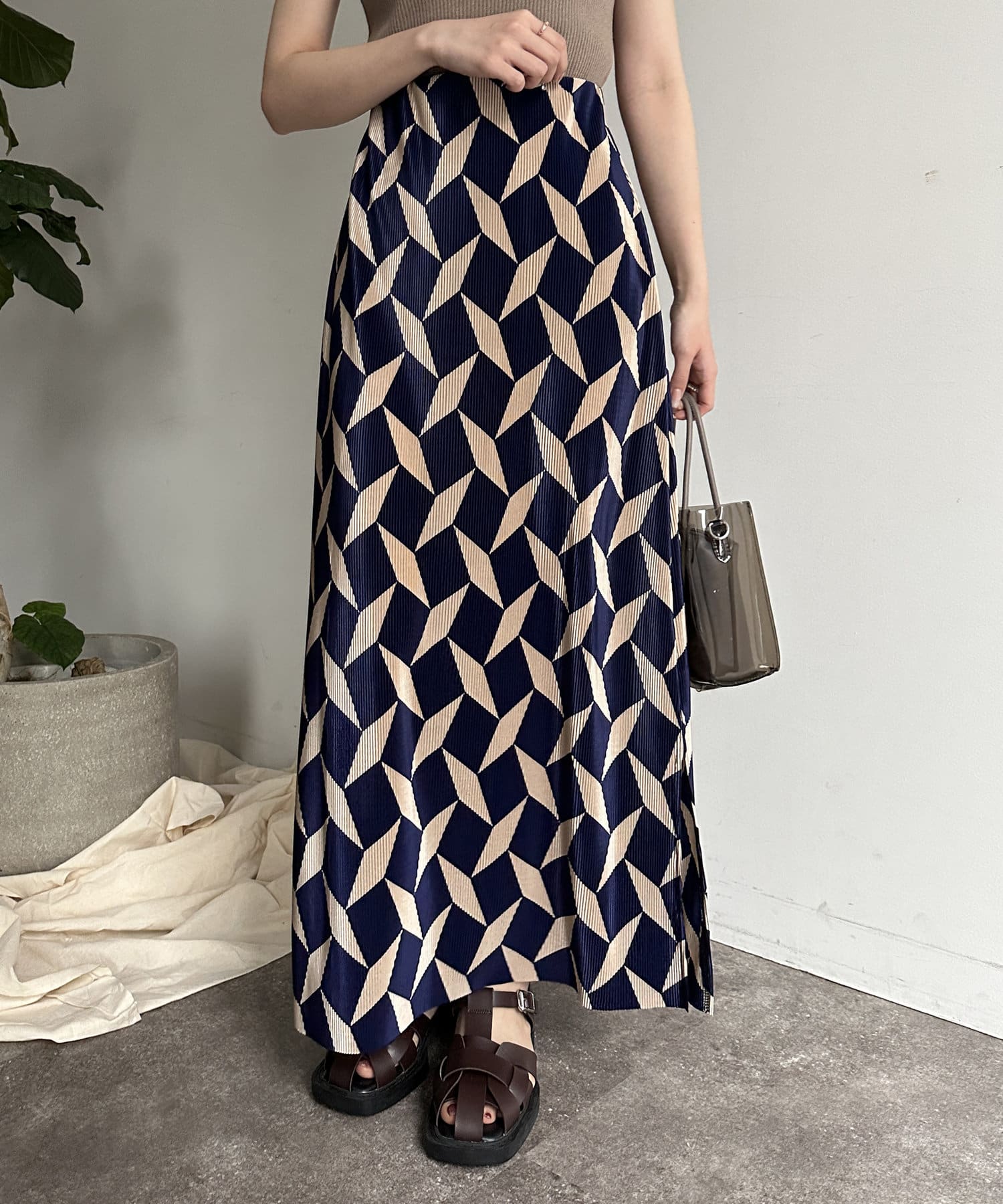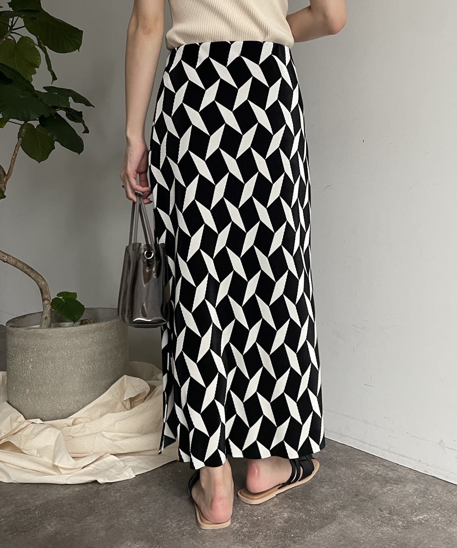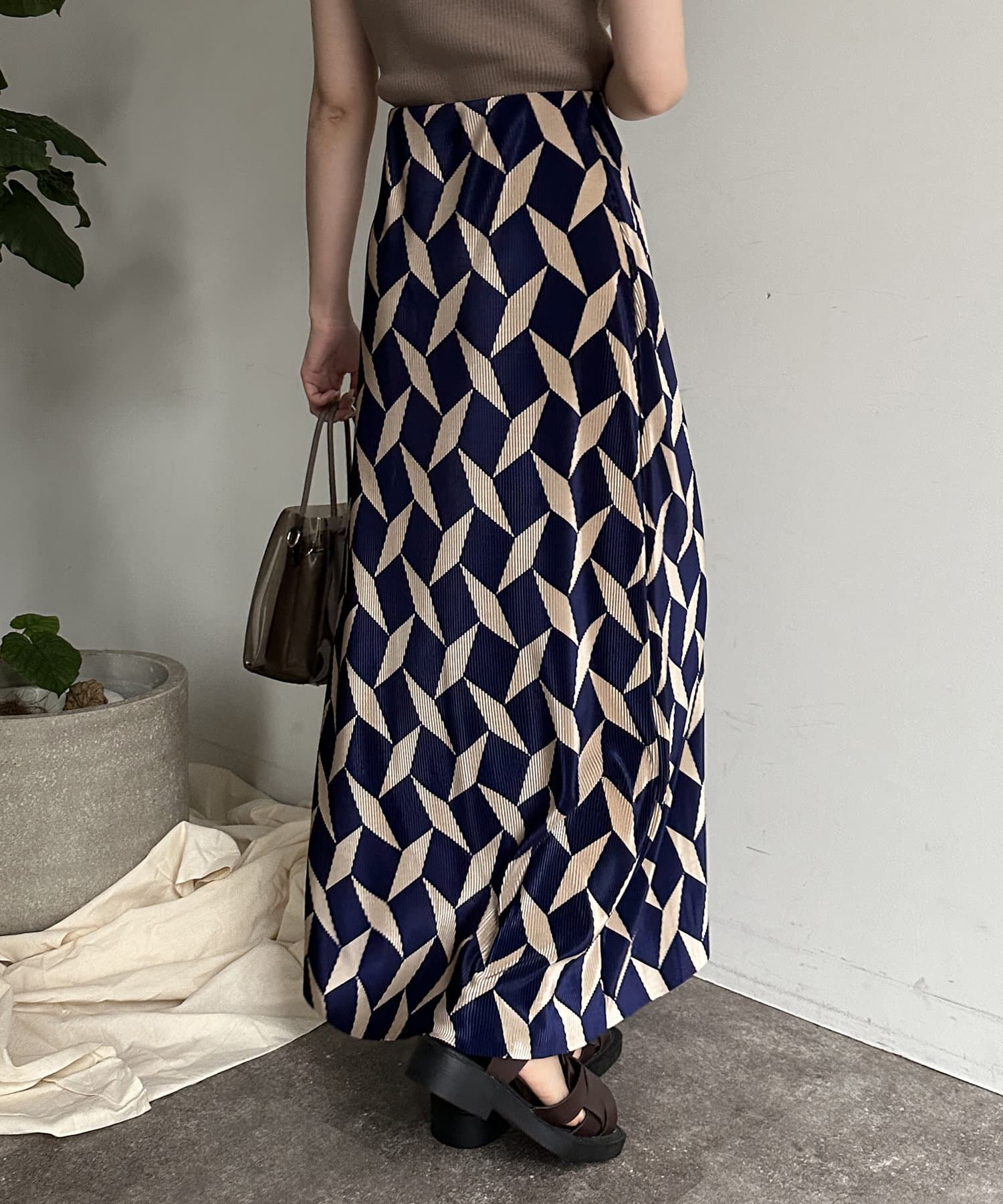 幾何柄プリーツナロースカート