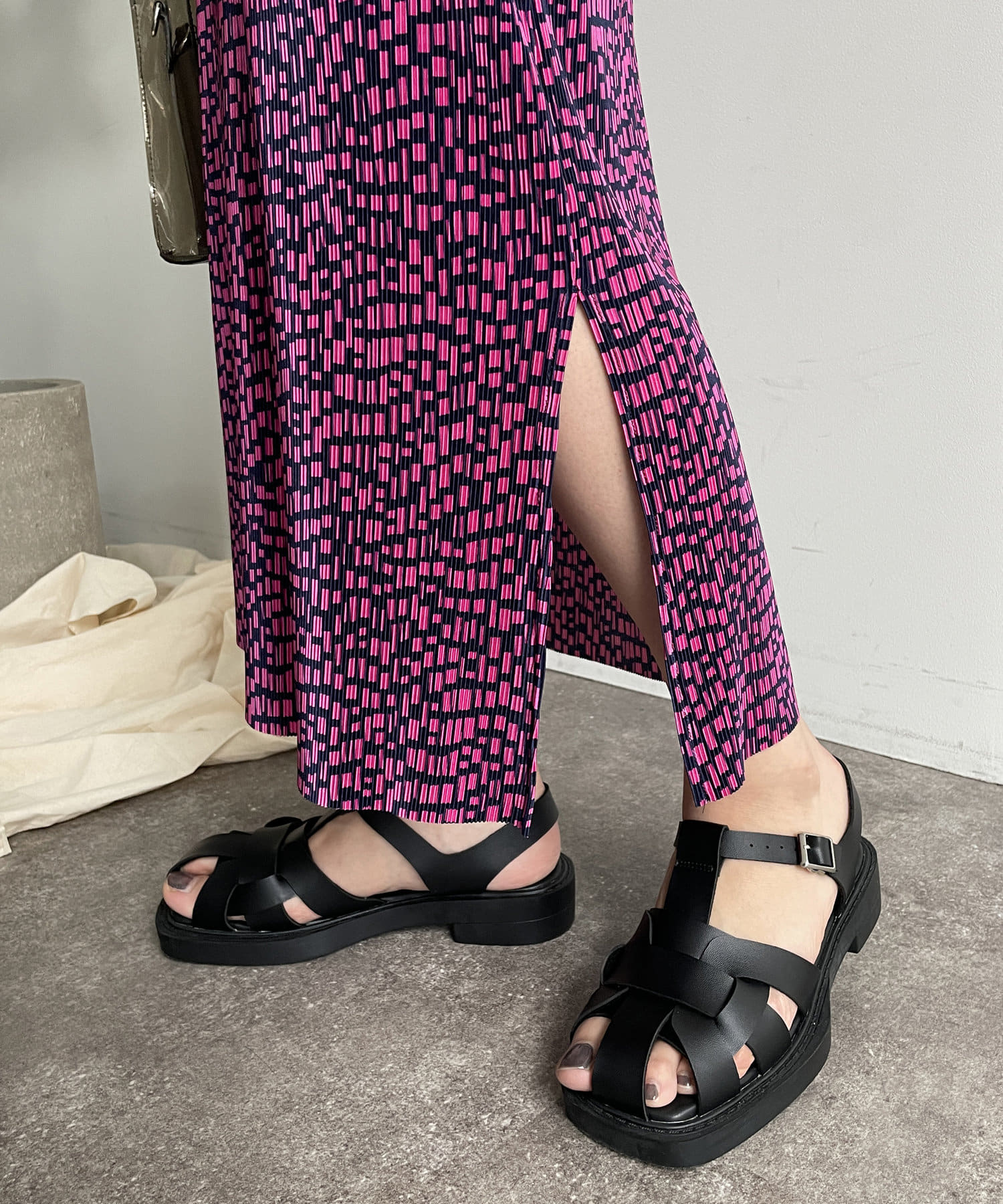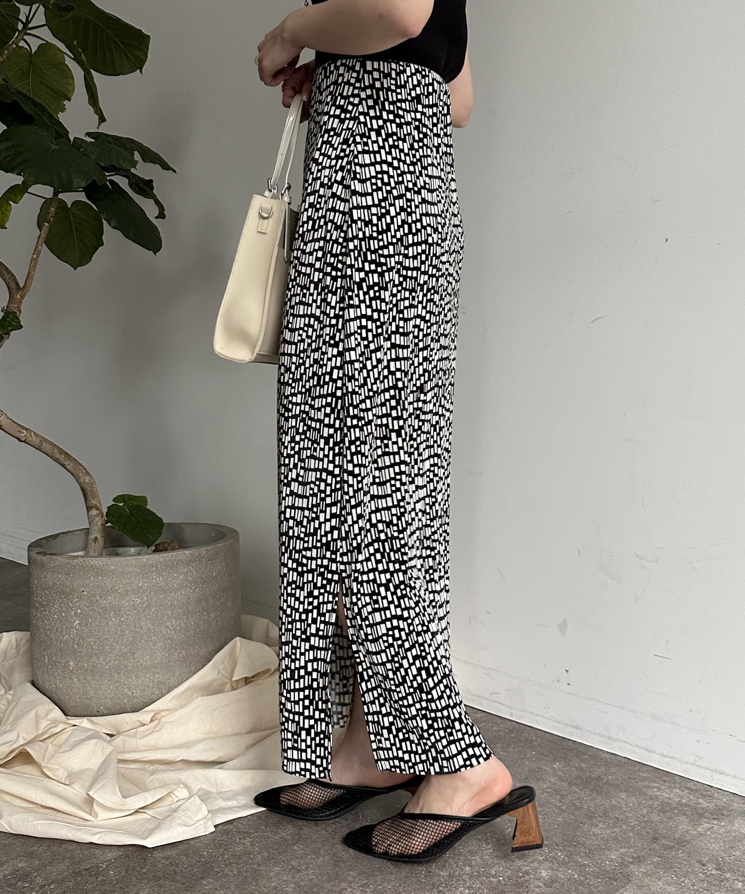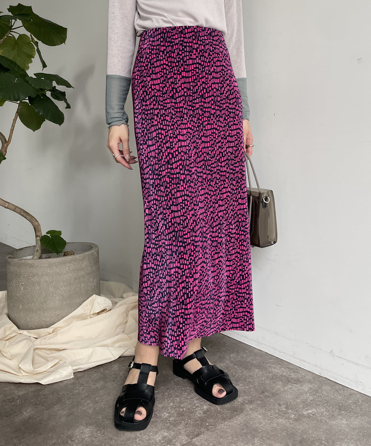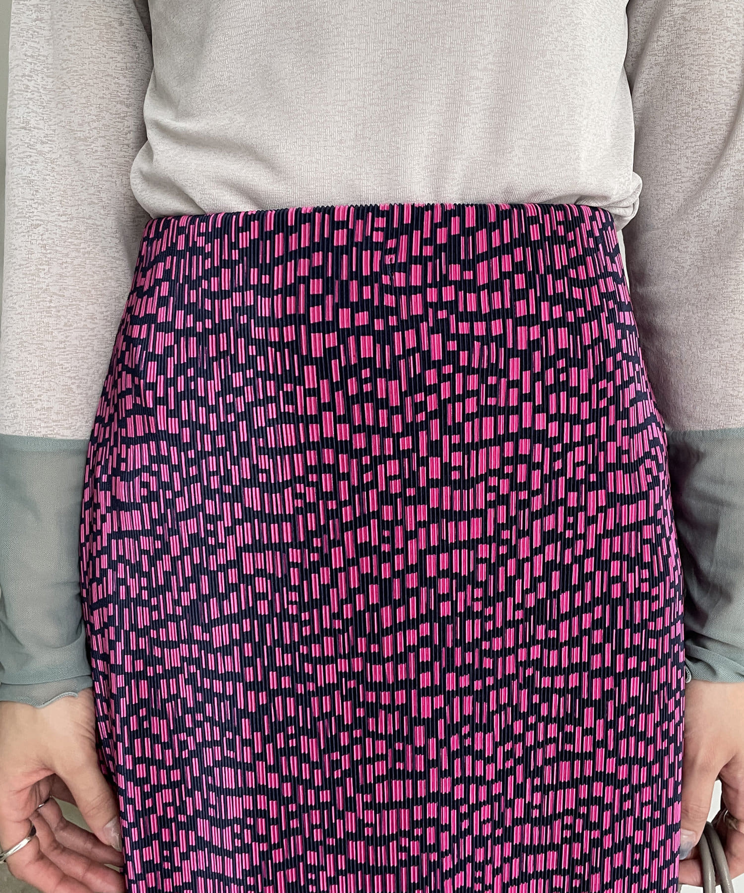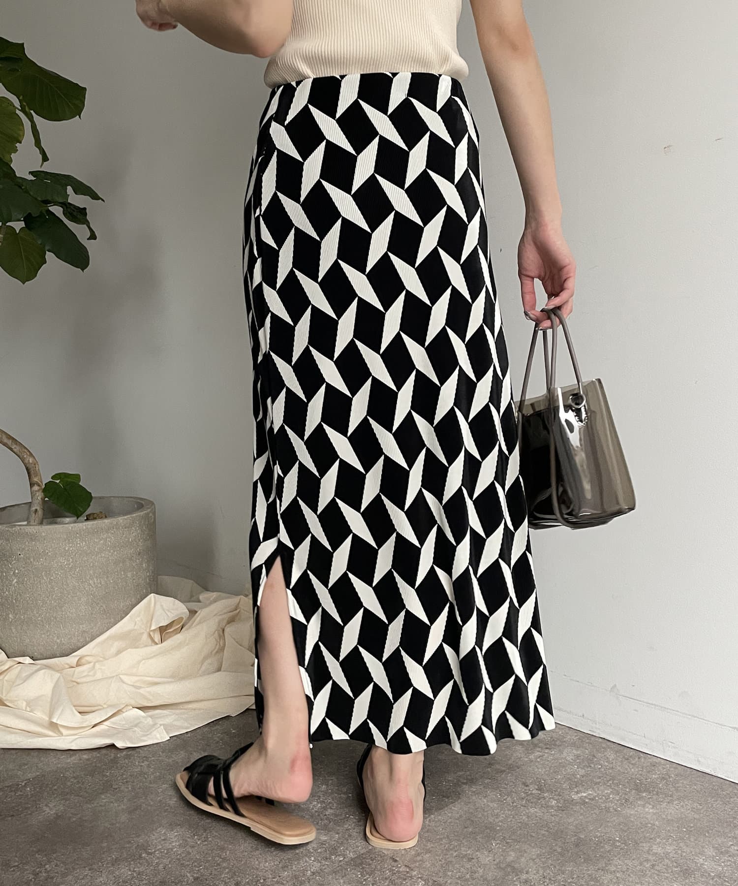 幾何柄プリーツナロースカート